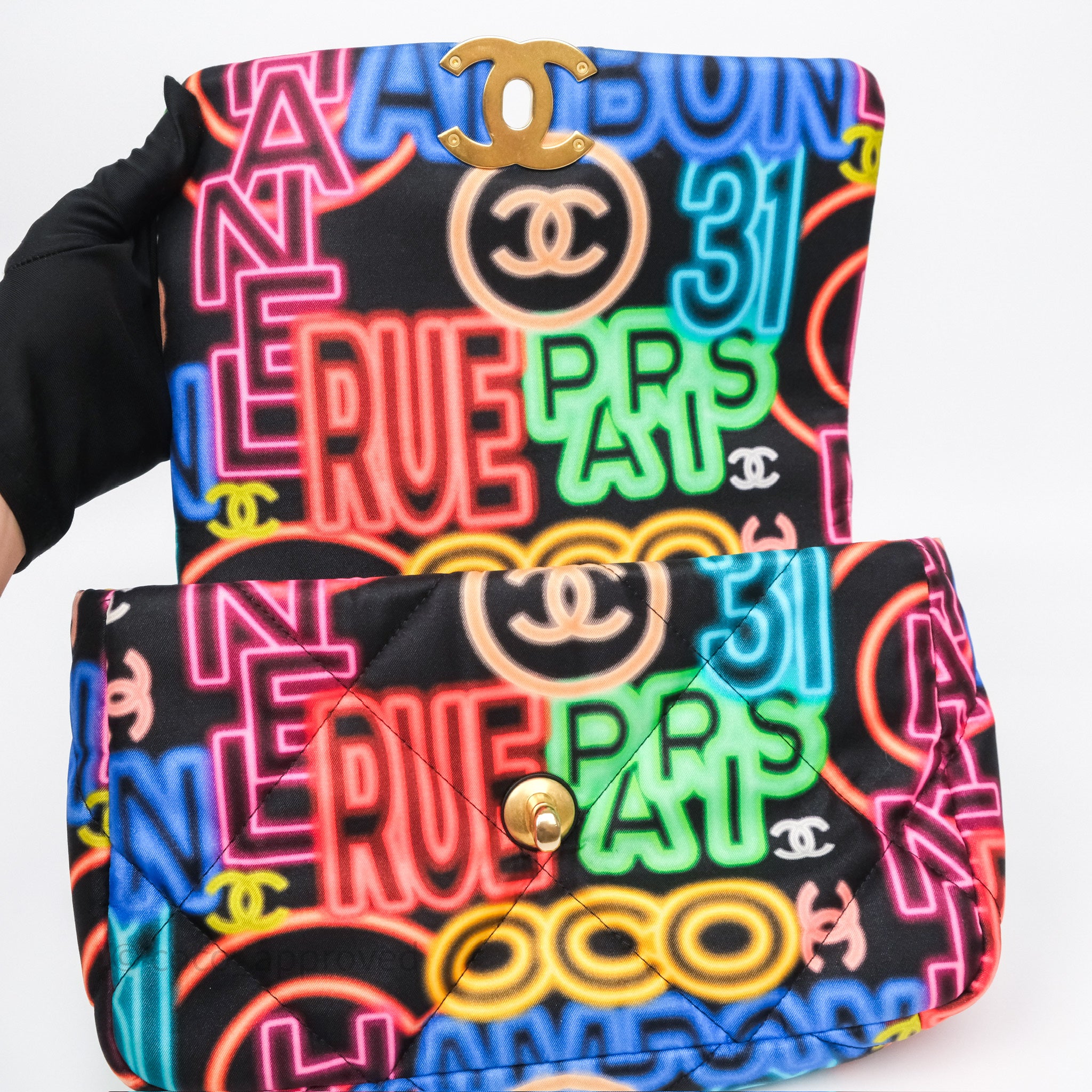 Chanel 19 Small Black Multicolor Fabric Printed Mixed Hardware is now sold. Please subscribe for any updates if similar item becomes available.