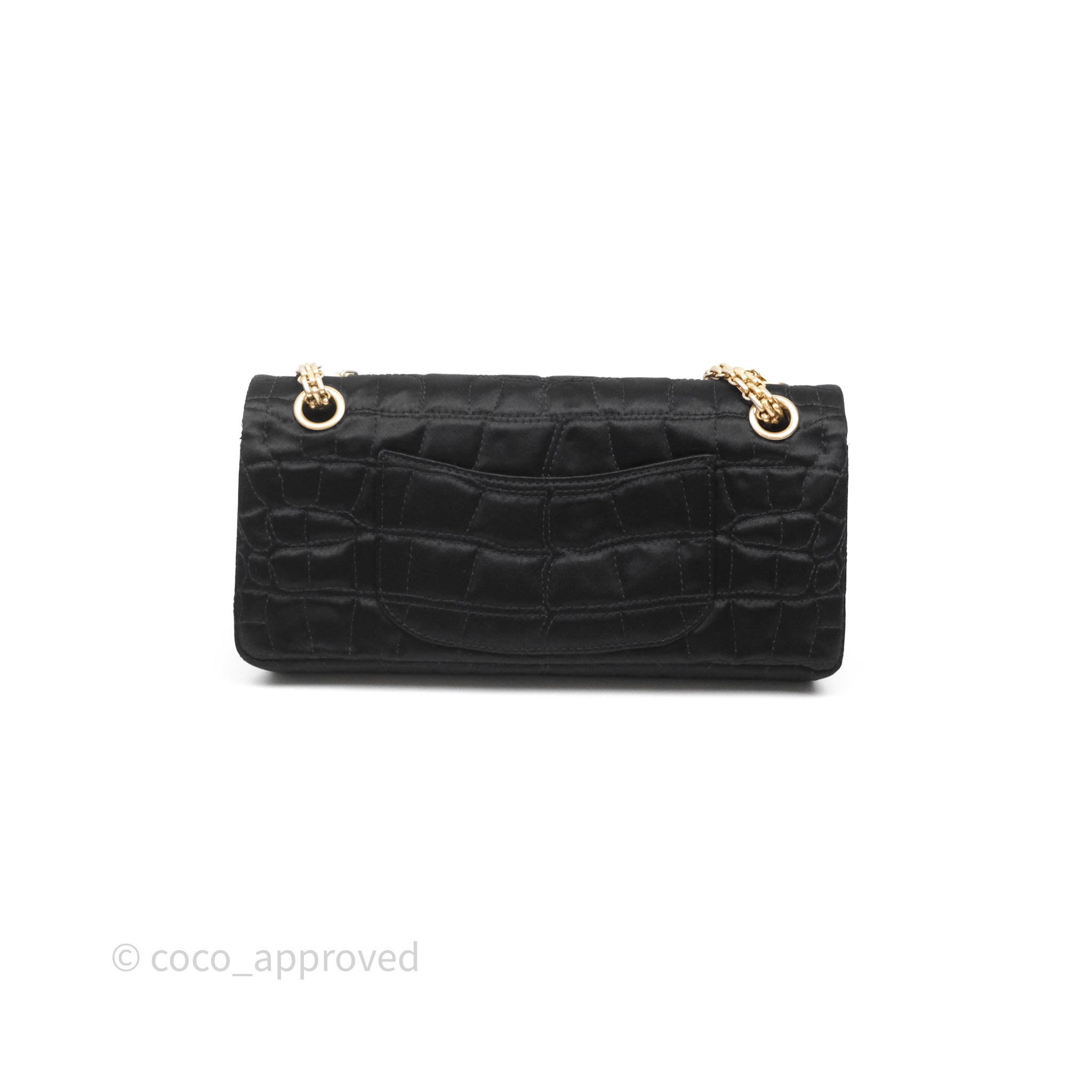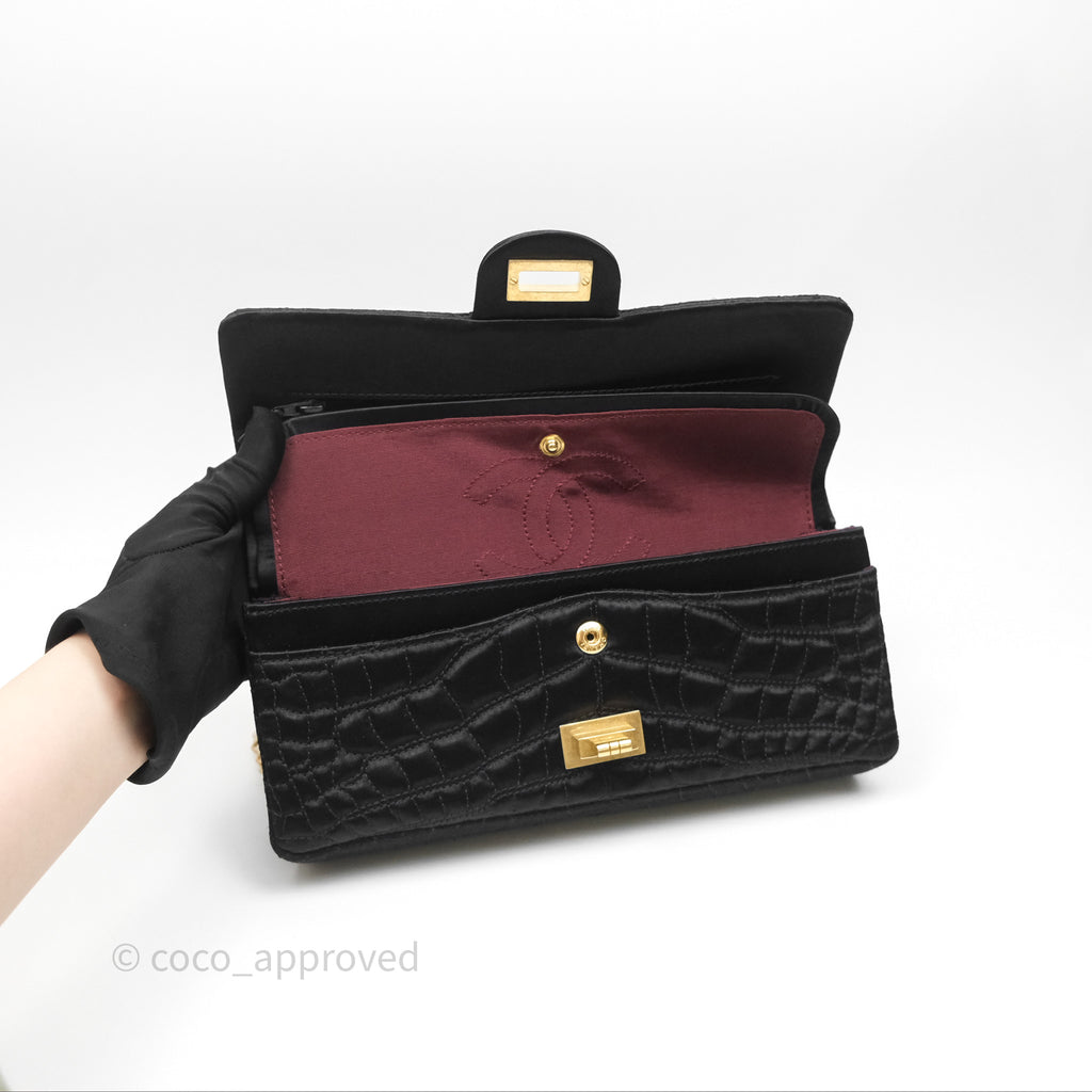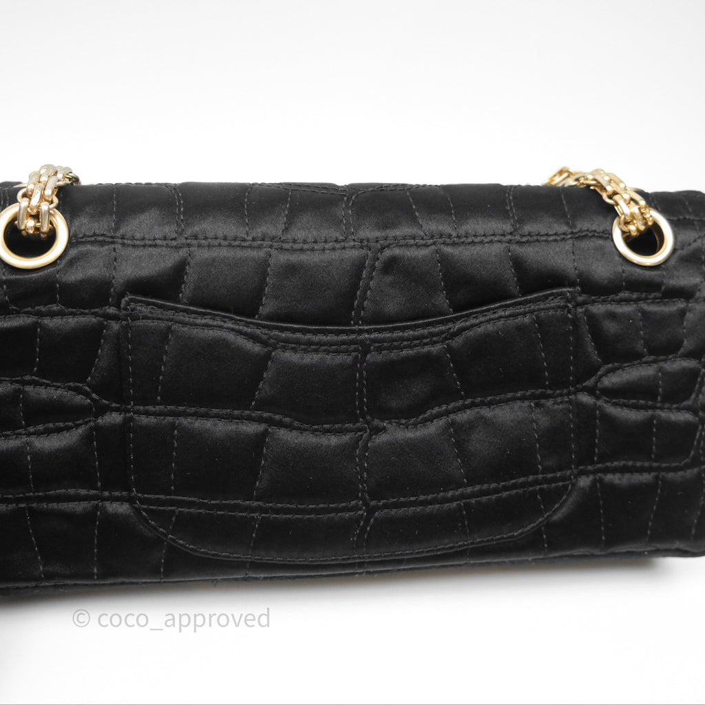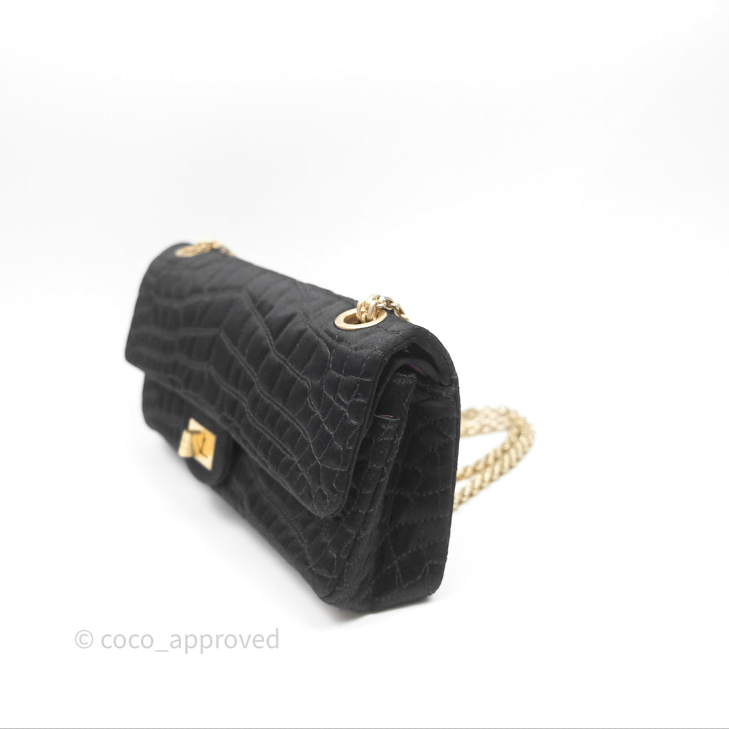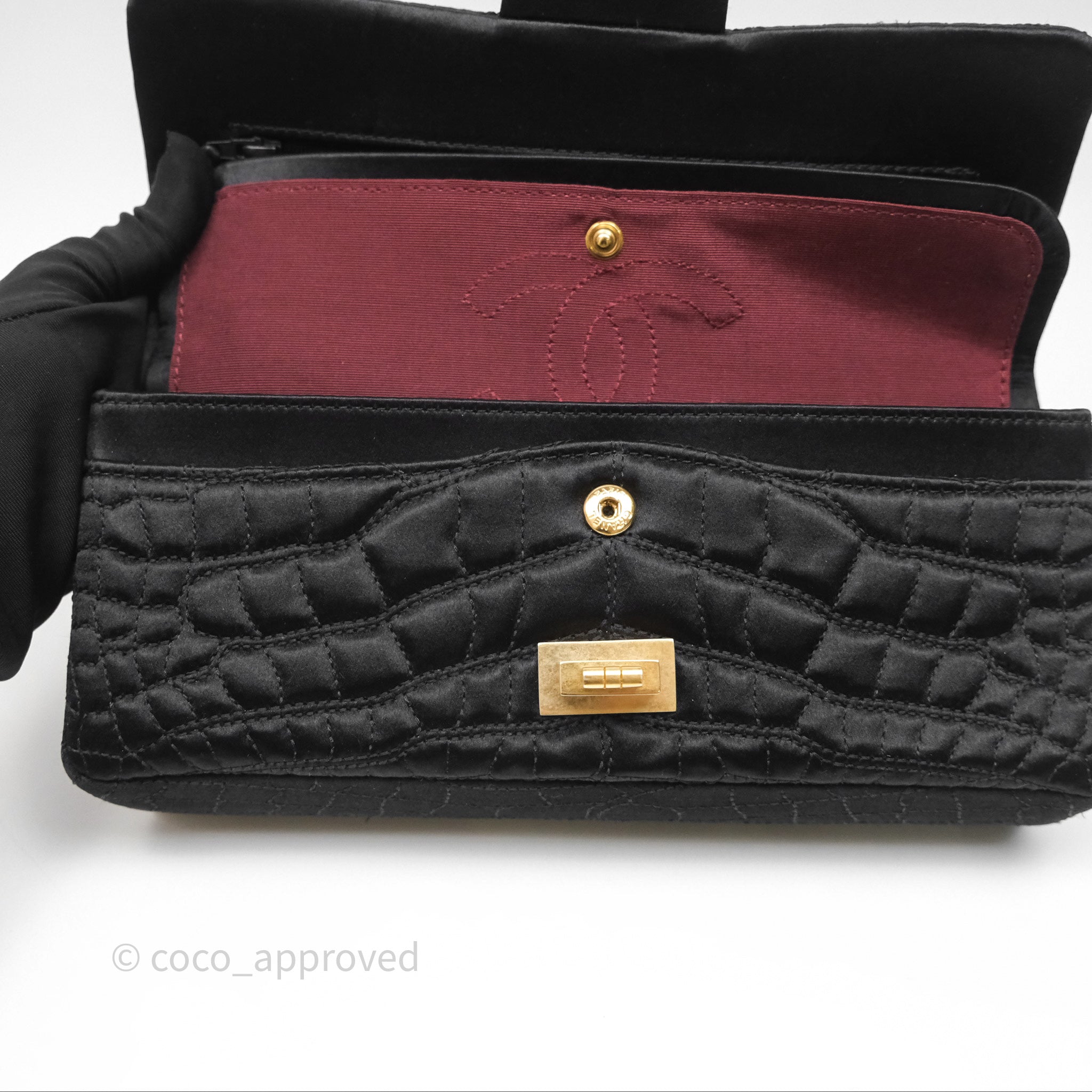 Chanel 2.55 Reissue East West Double Flap Black Satin Croc Aged Gold Hardware