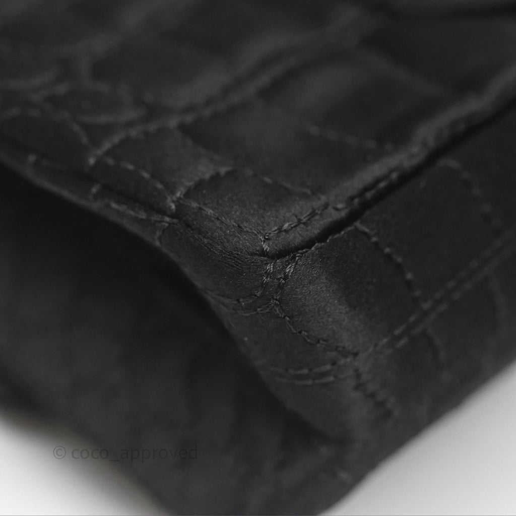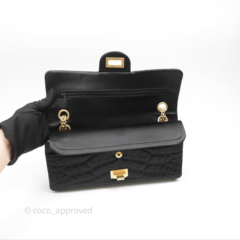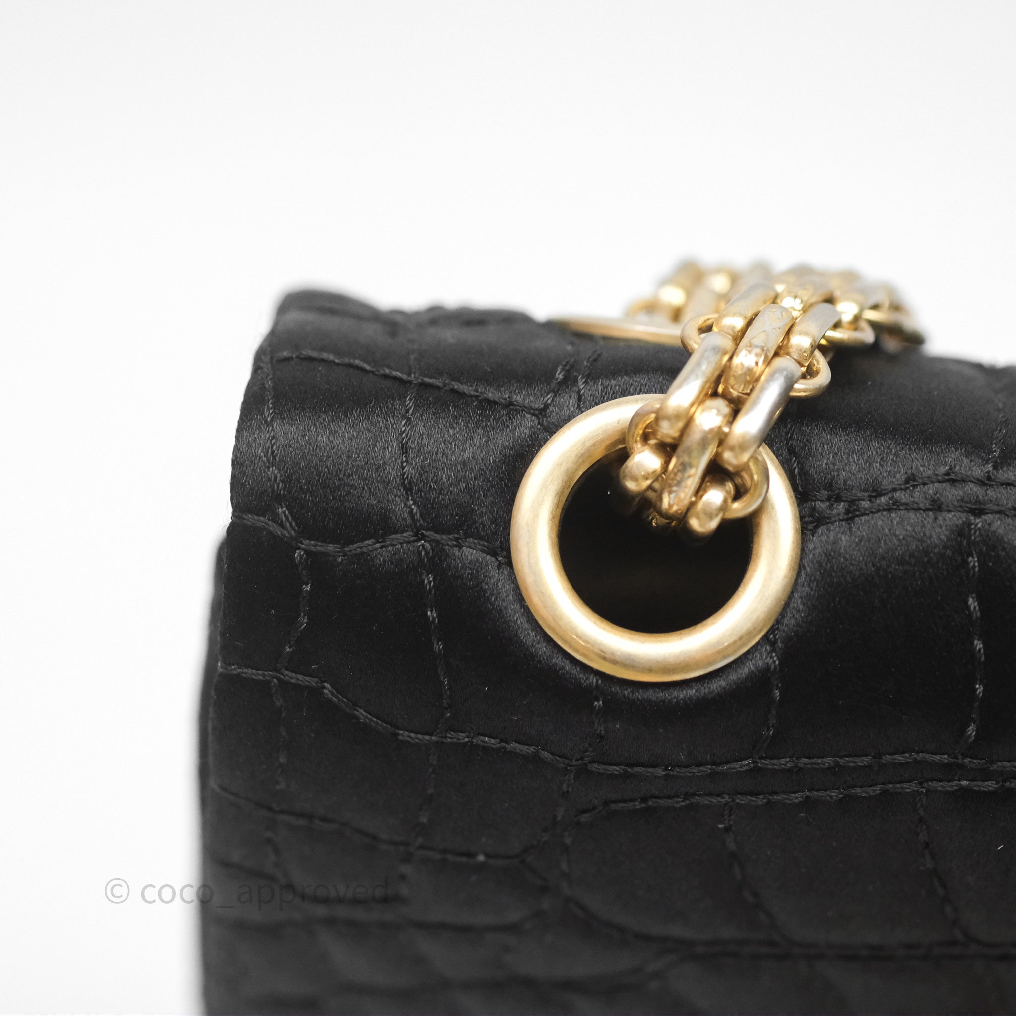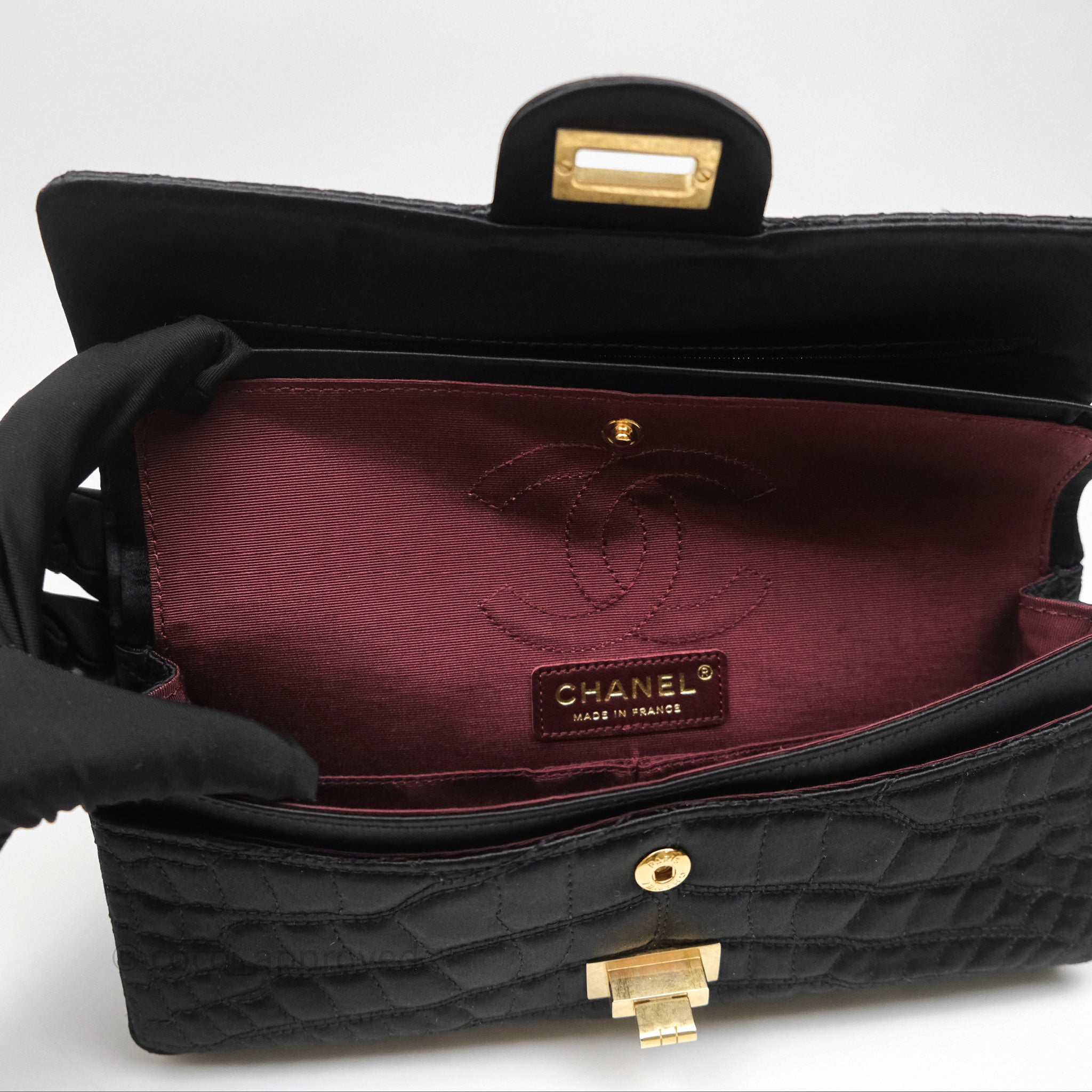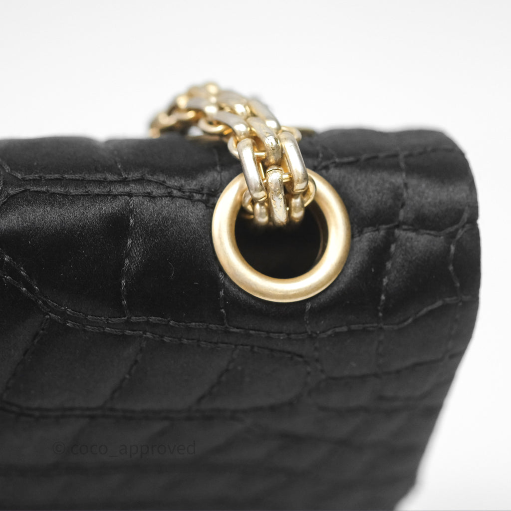 Chanel 2.55 Reissue East West Double Flap Black Satin Croc Aged Gold Hardware
