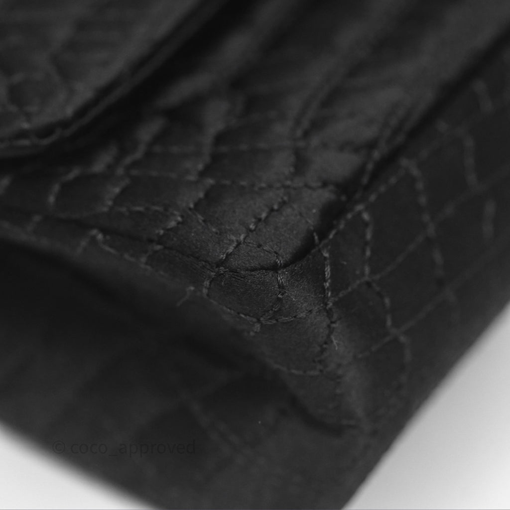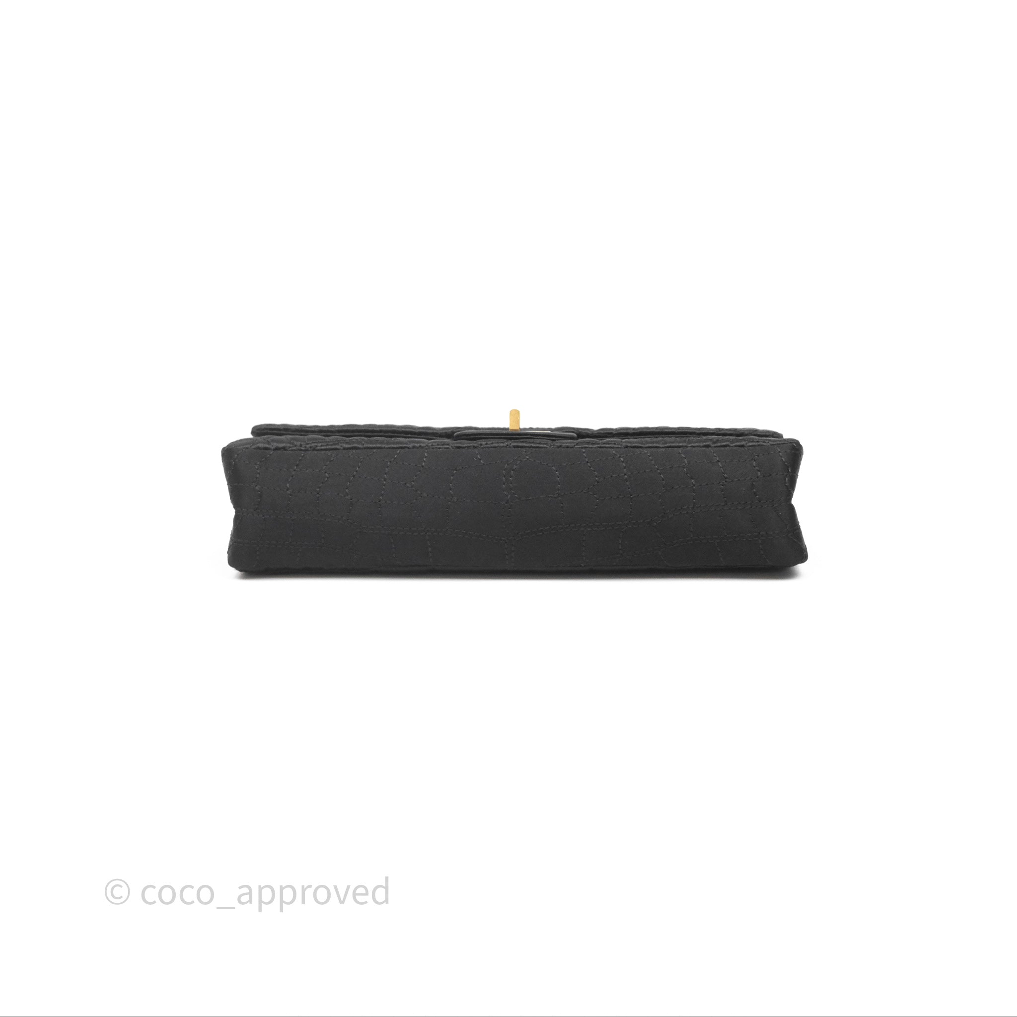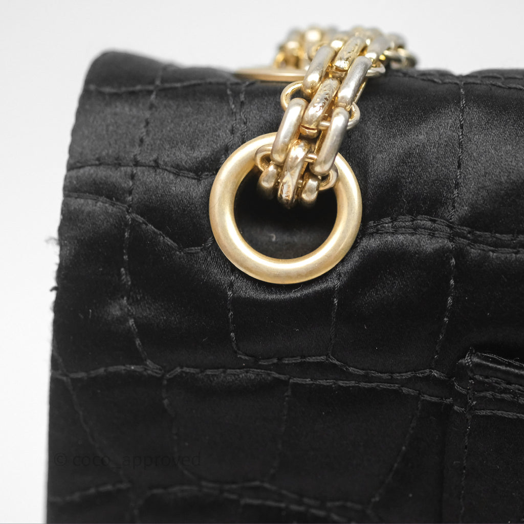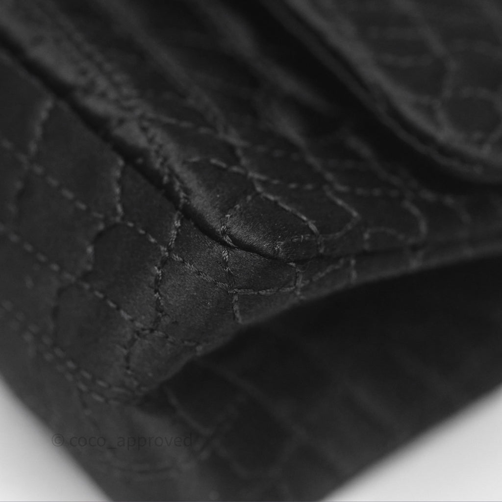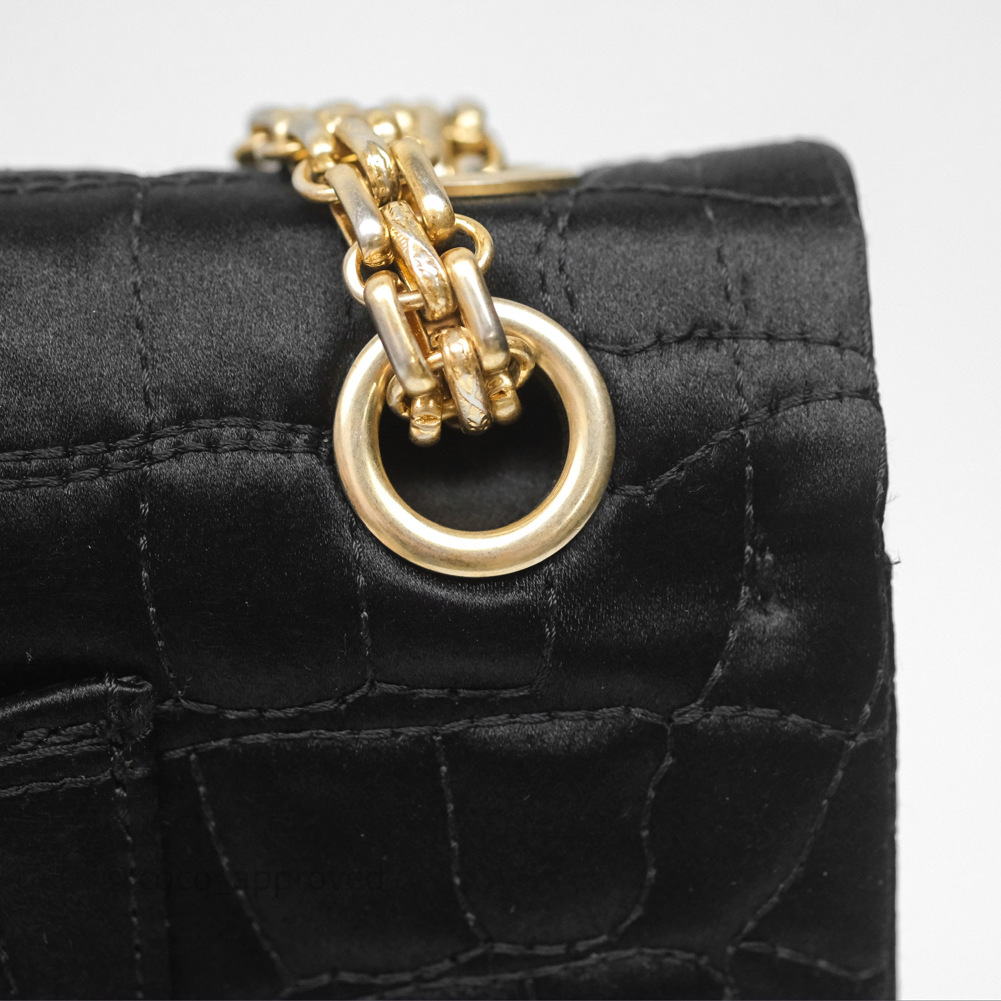 Chanel 2.55 Reissue East West Double Flap Black Satin Croc Aged Gold Hardware