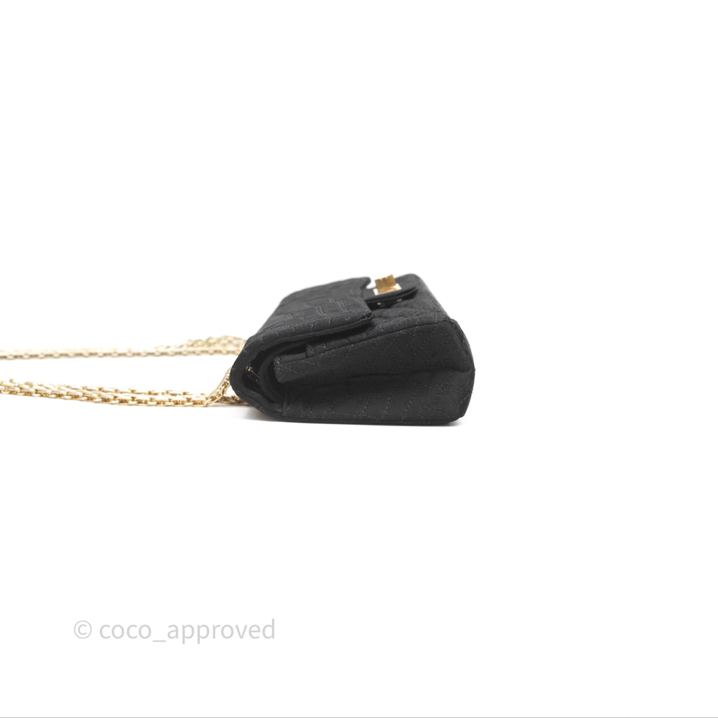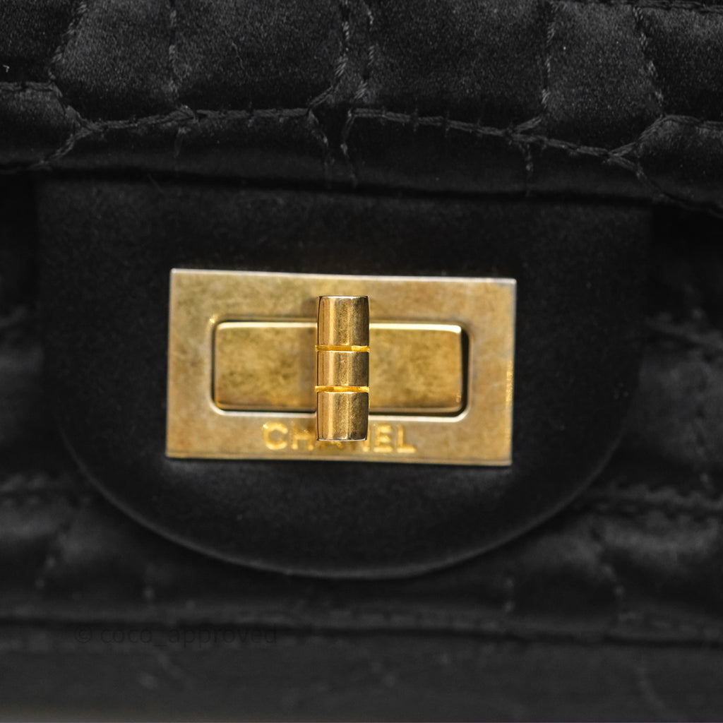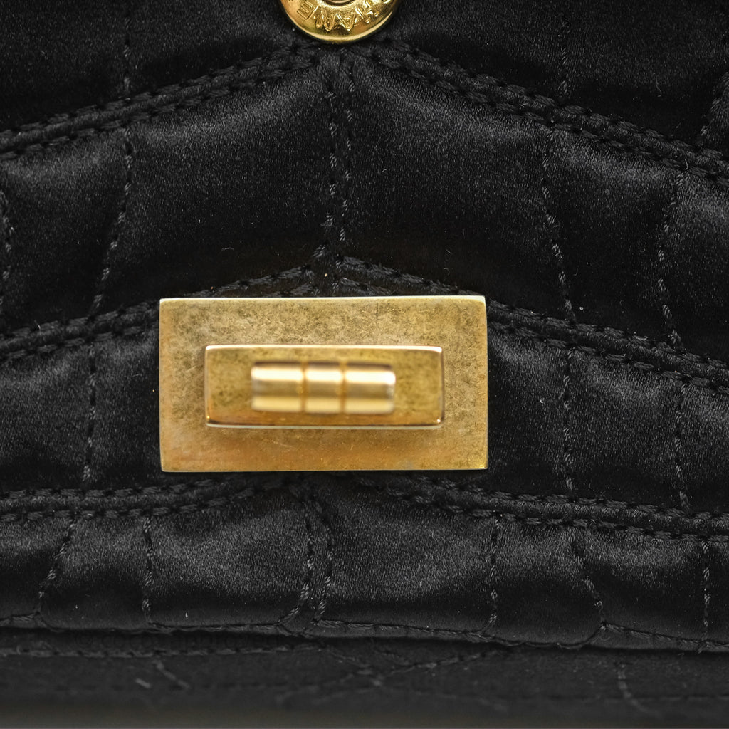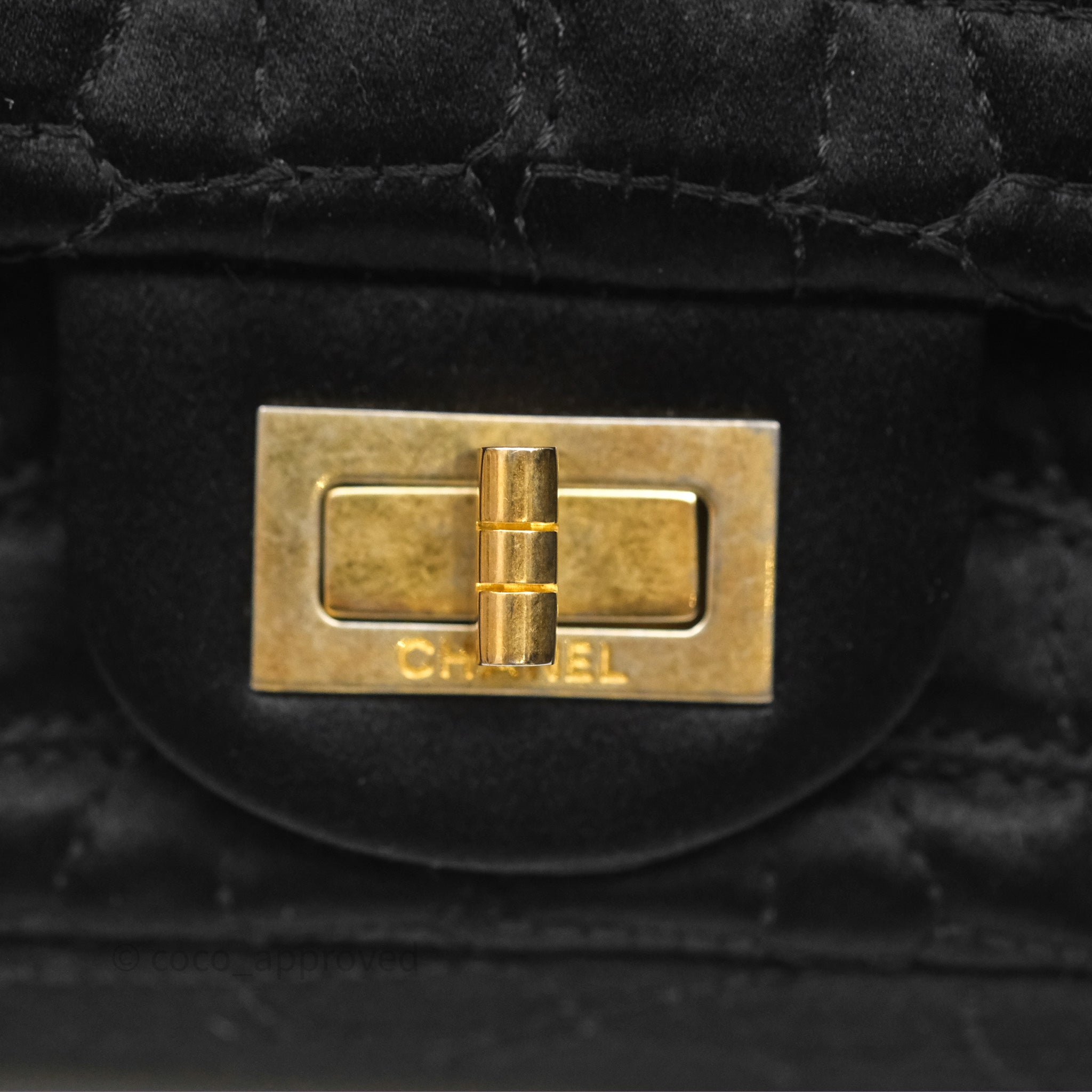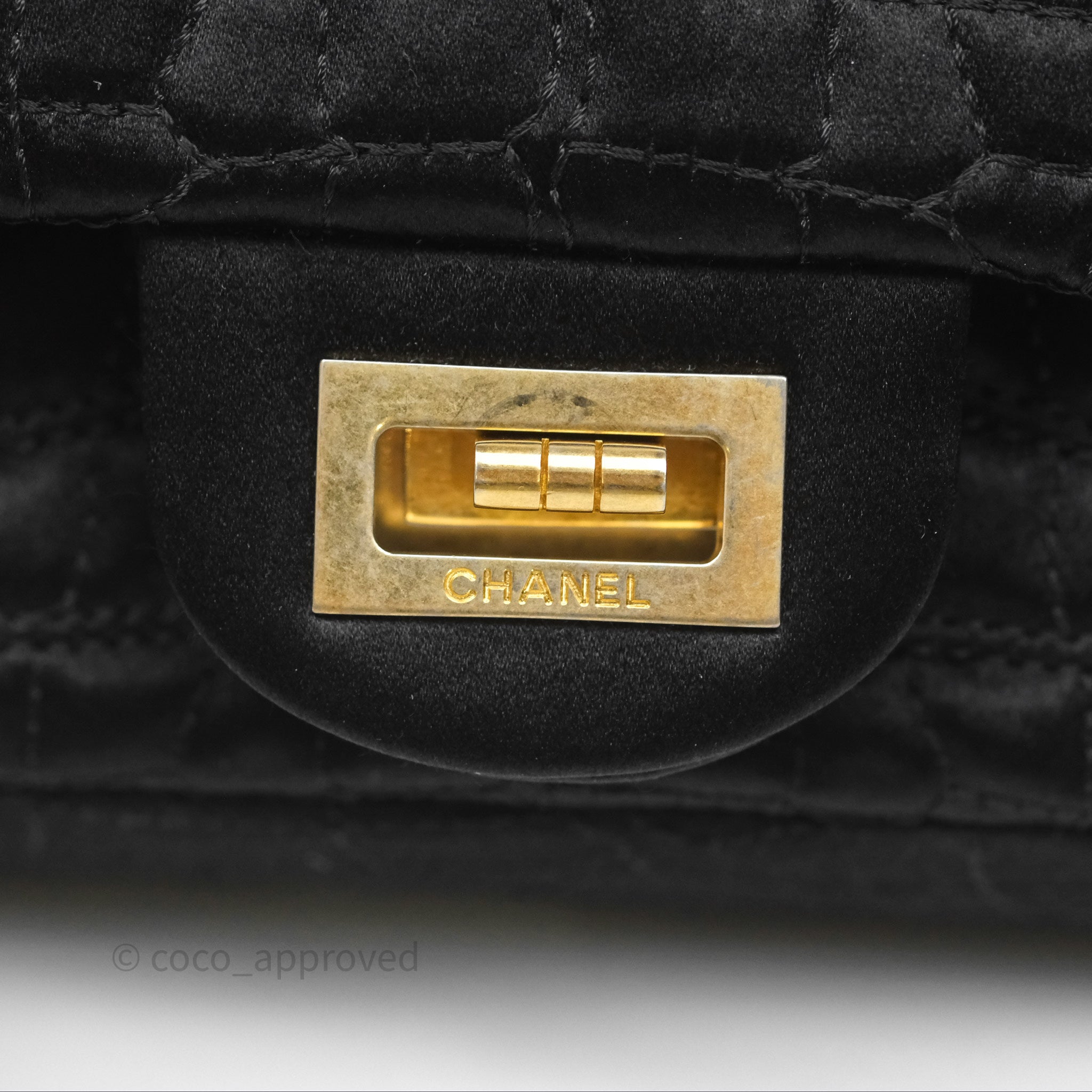 Chanel 2.55 Reissue East West Double Flap Black Satin Croc Aged Gold Hardware