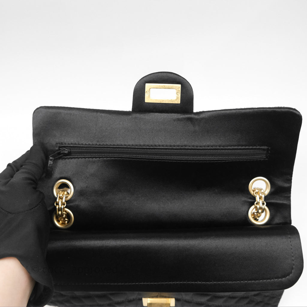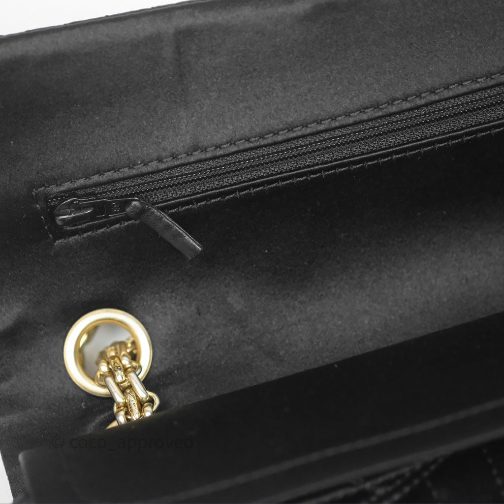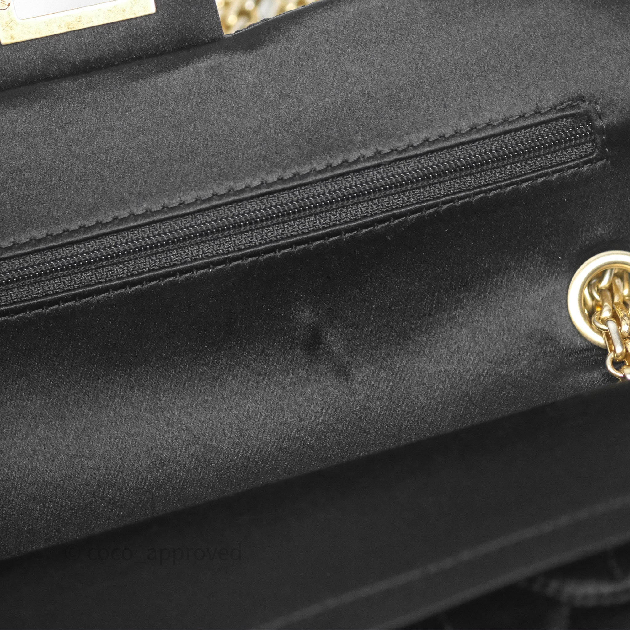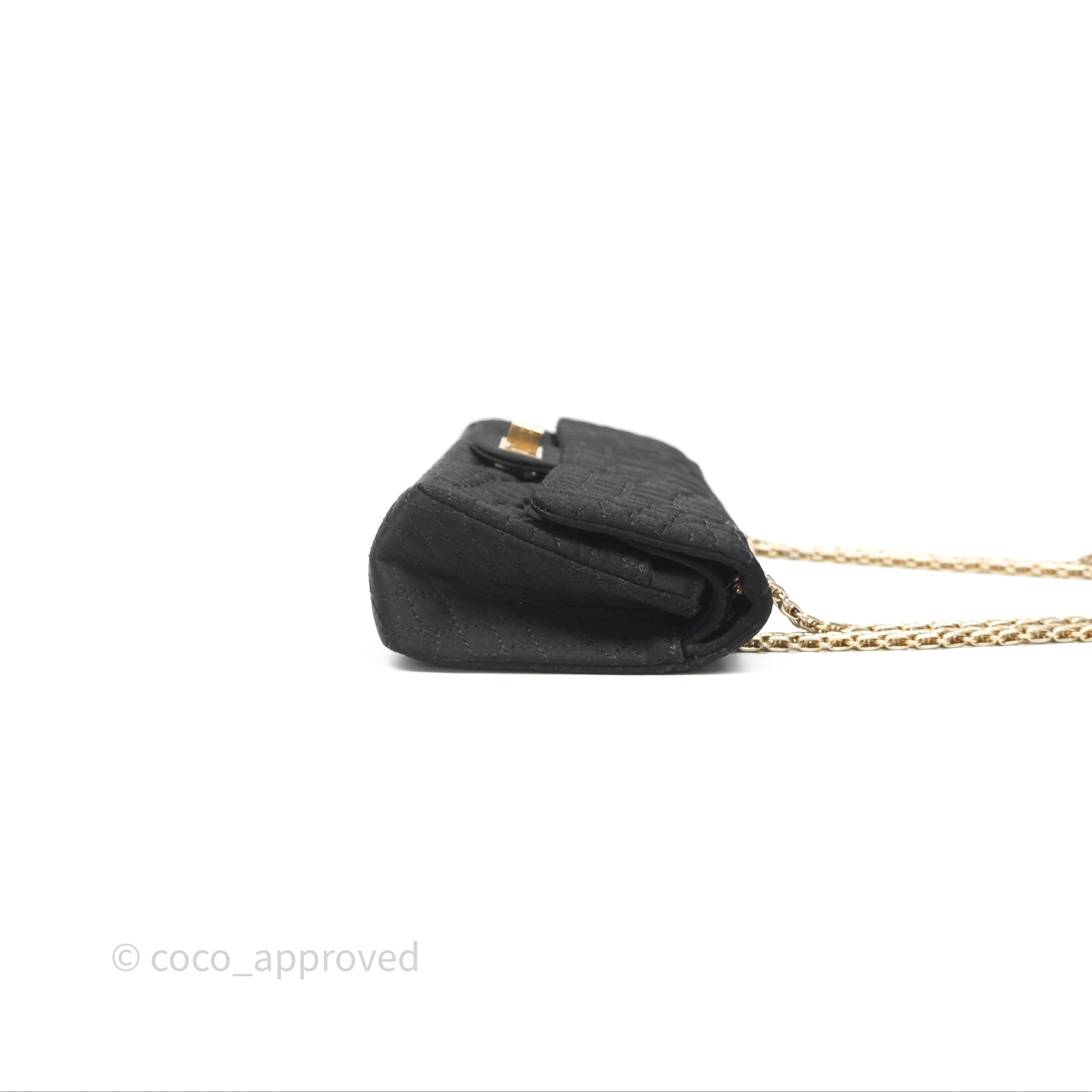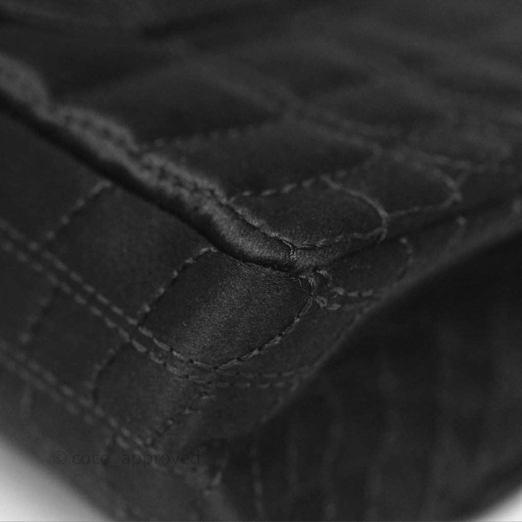 Chanel 2.55 Reissue East West Double Flap Black Satin Croc Aged Gold Hardware