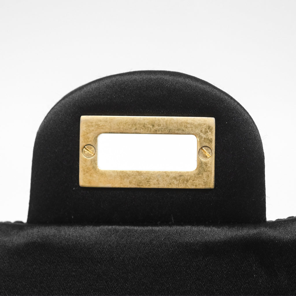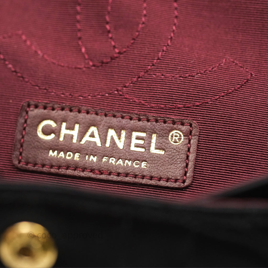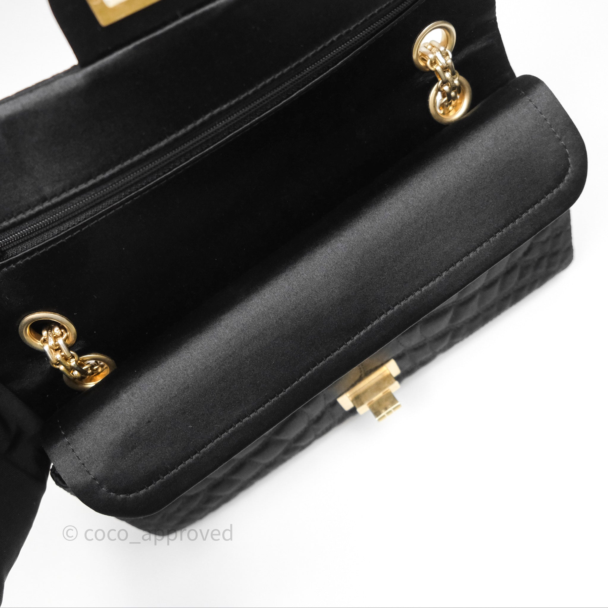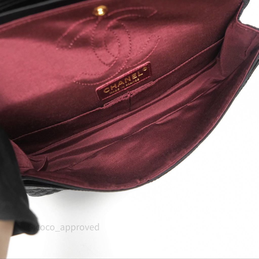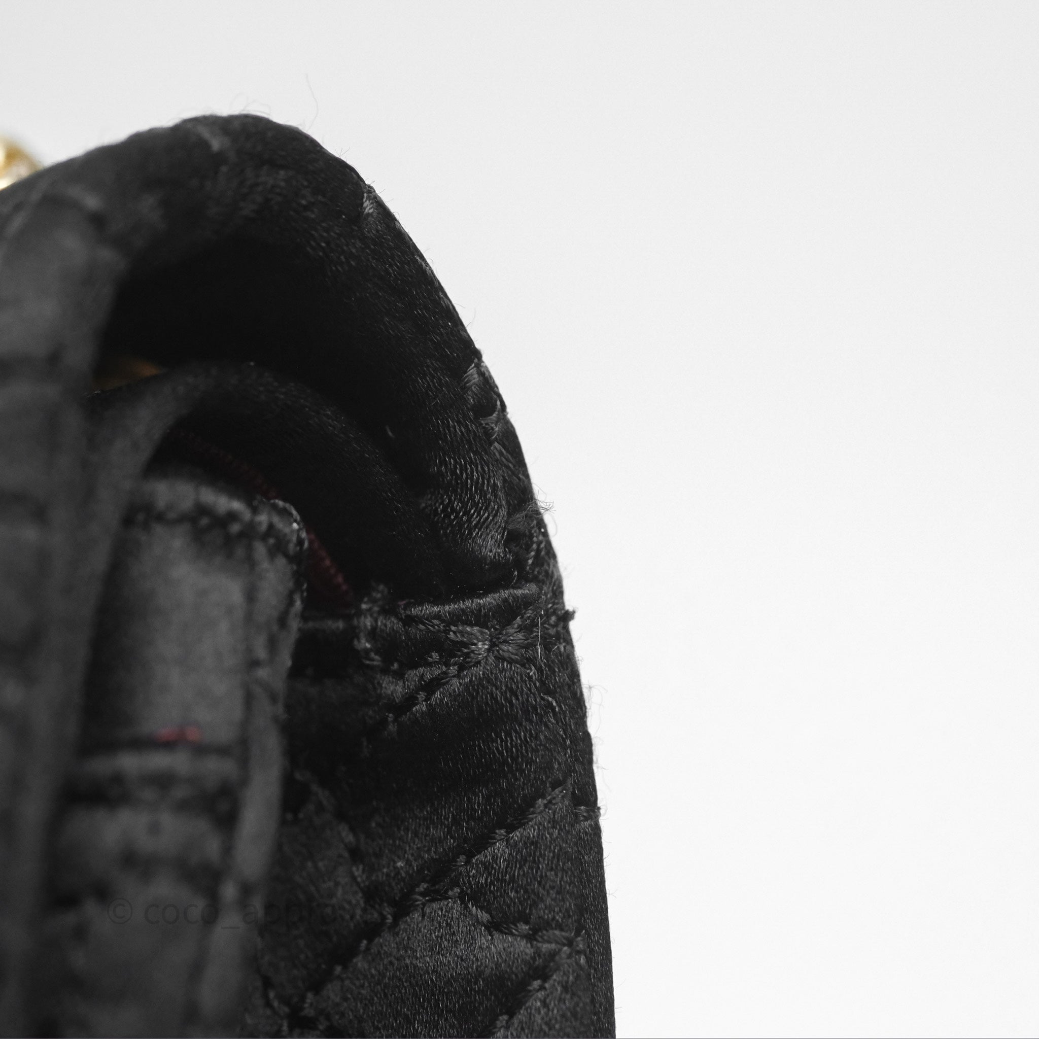 Chanel 2.55 Reissue East West Double Flap Black Satin Croc Aged Gold Hardware