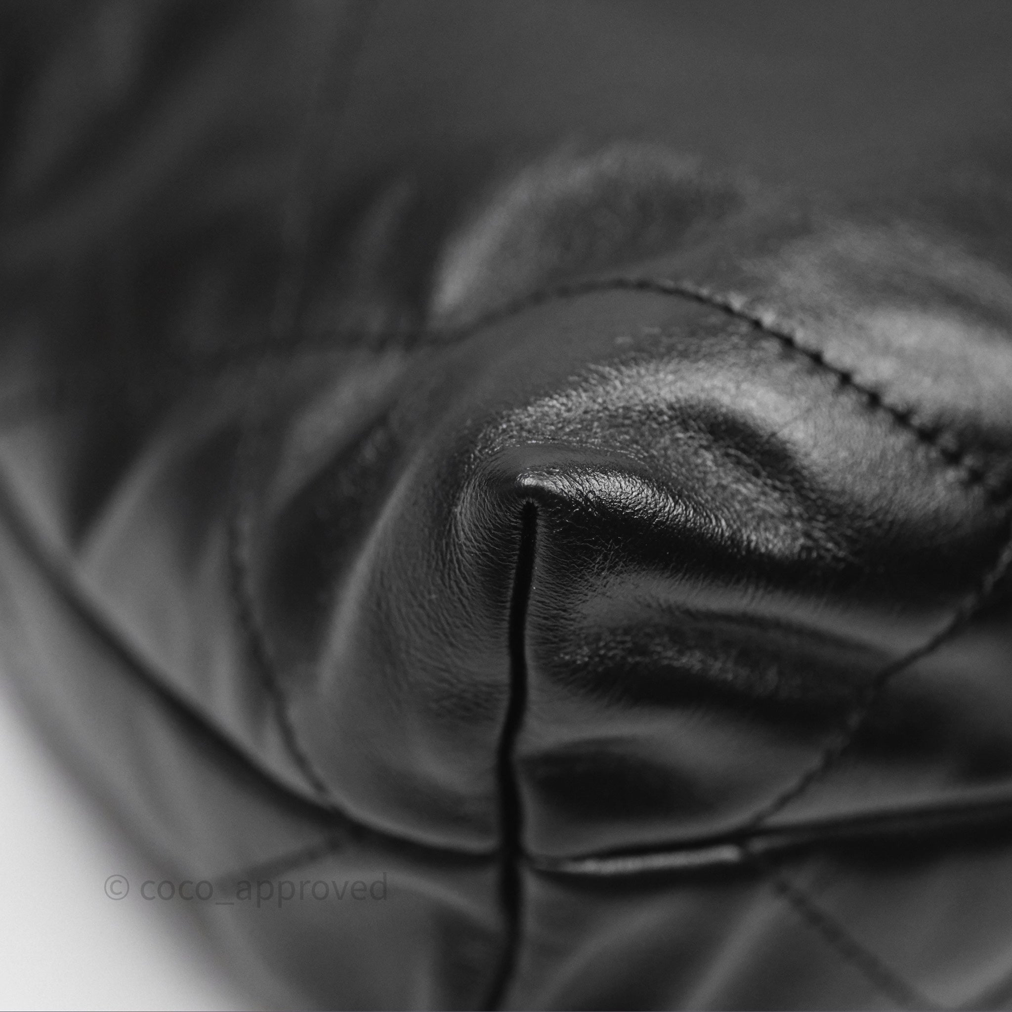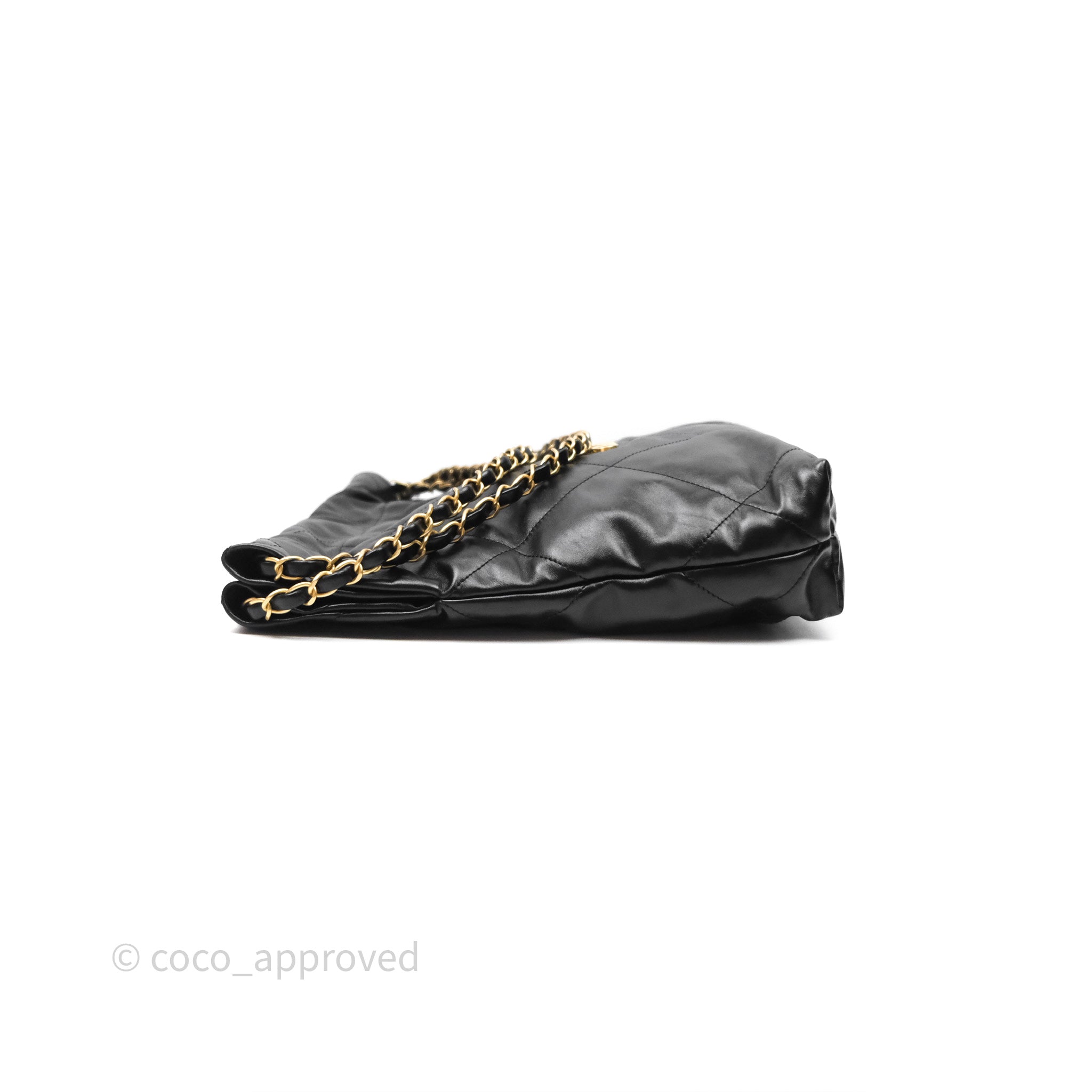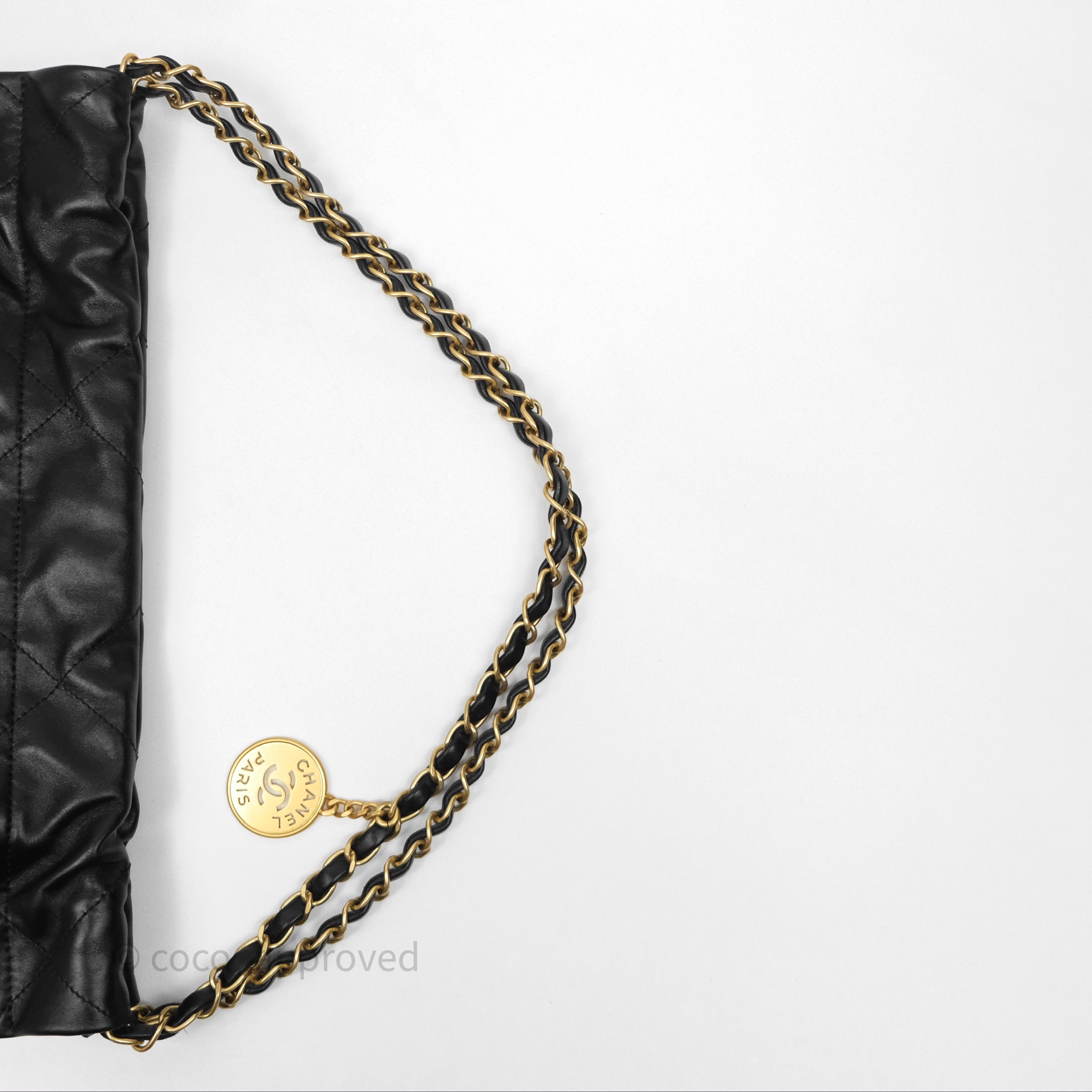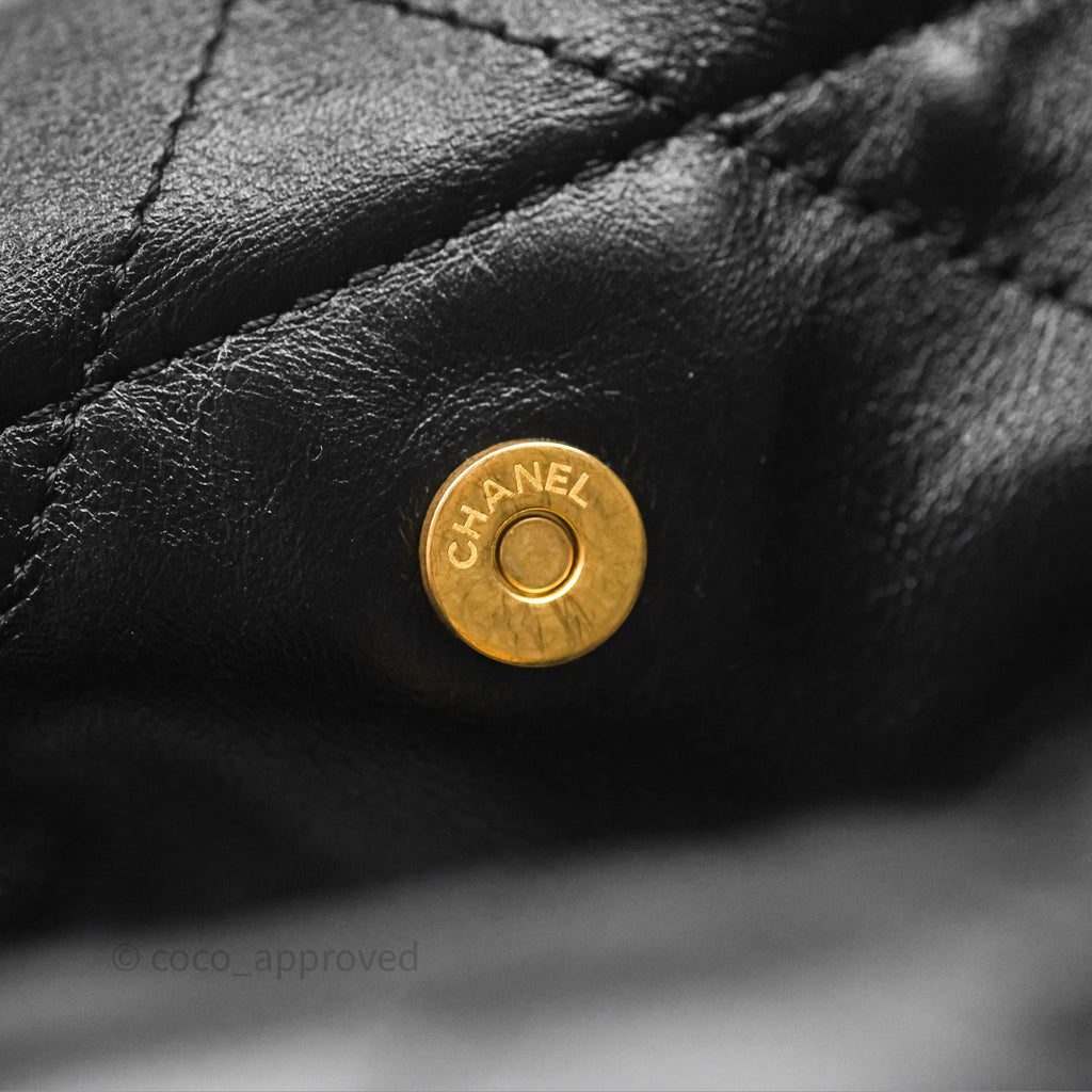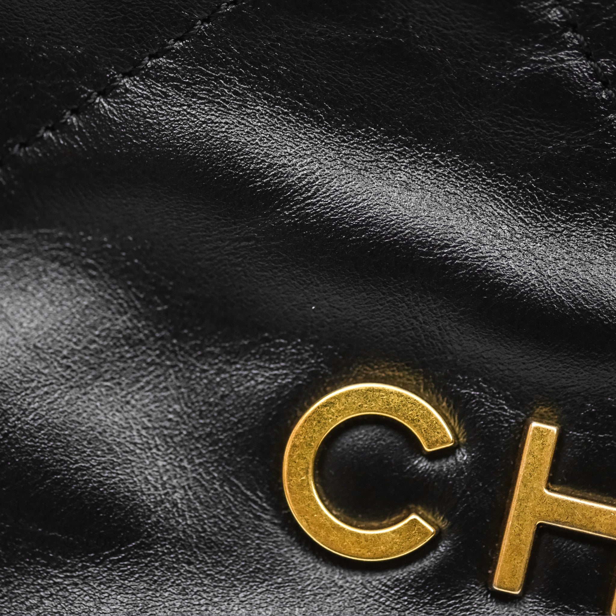 Chanel 22 Bag Small Black Crumpled Calfskin Aged Gold Hardware