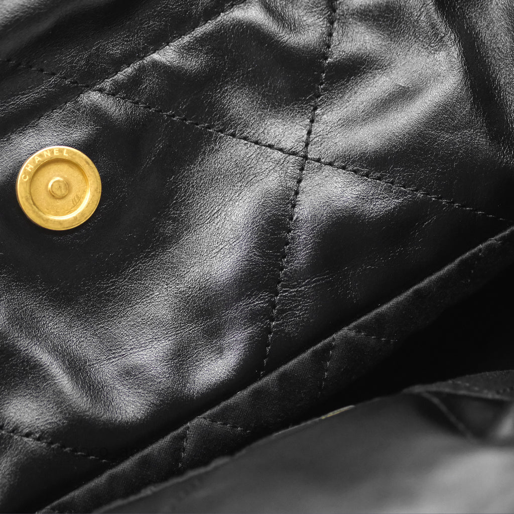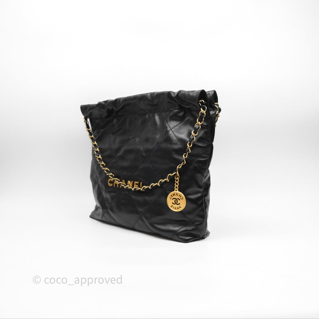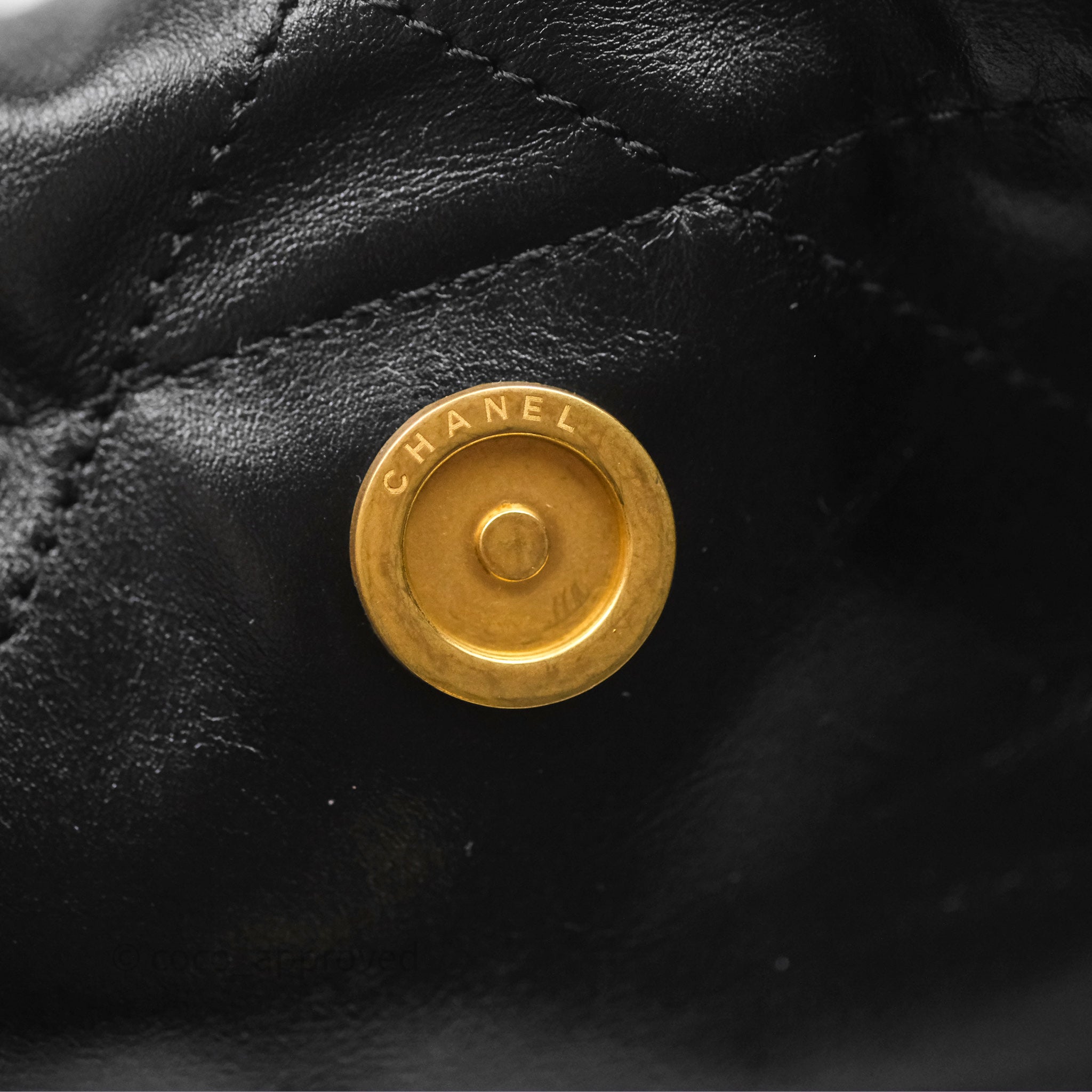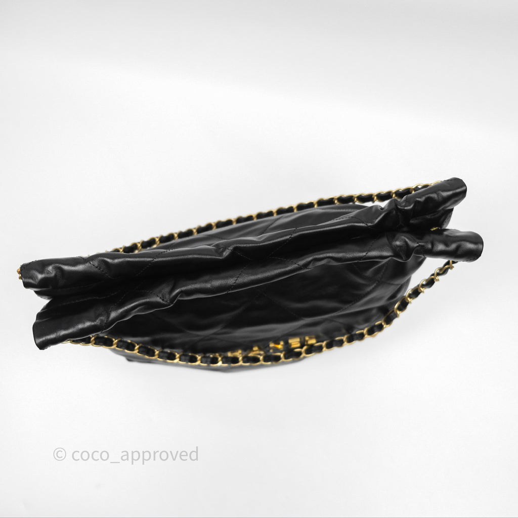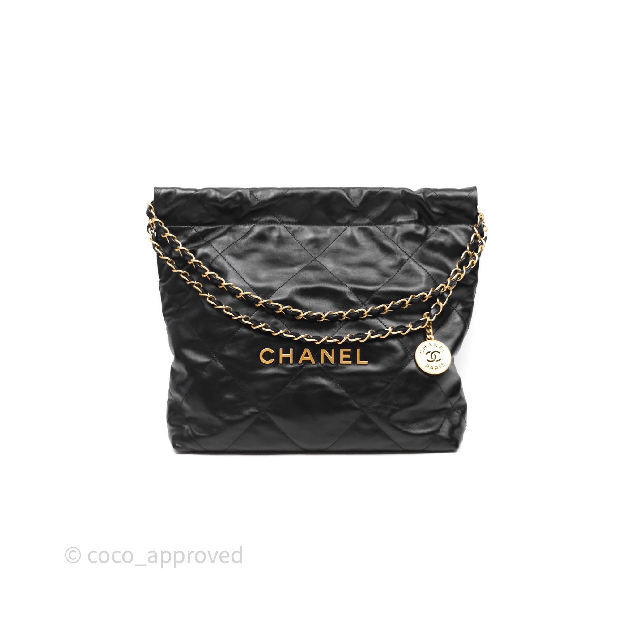 Chanel 22 Bag Small Black Crumpled Calfskin Aged Gold Hardware