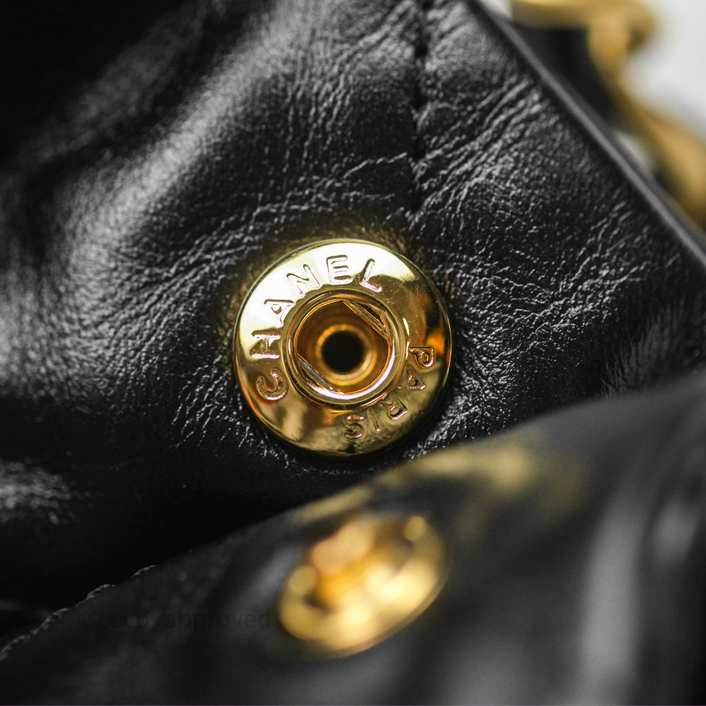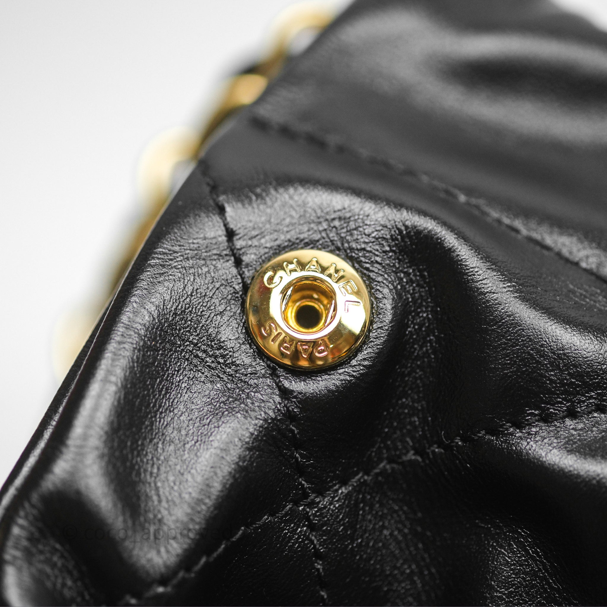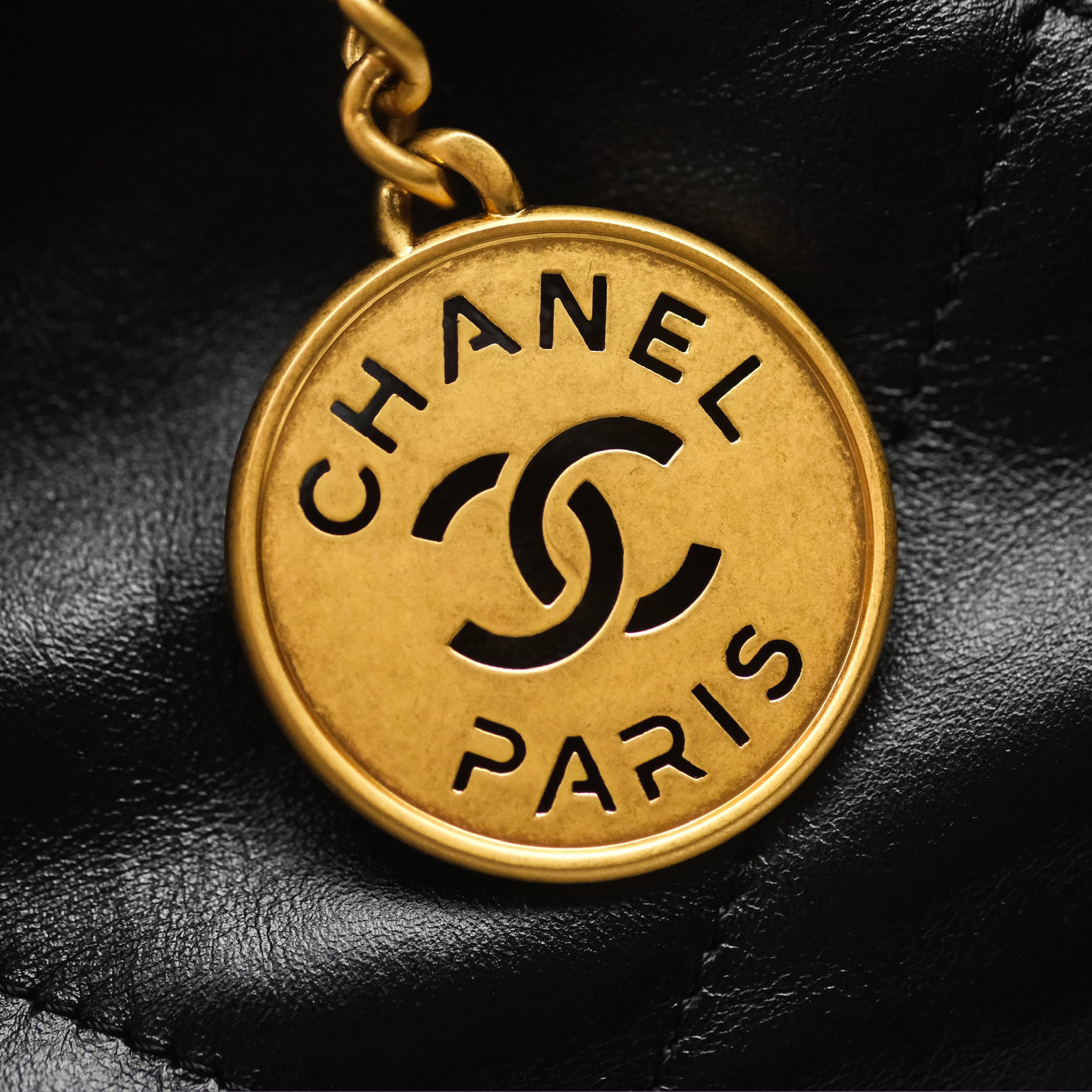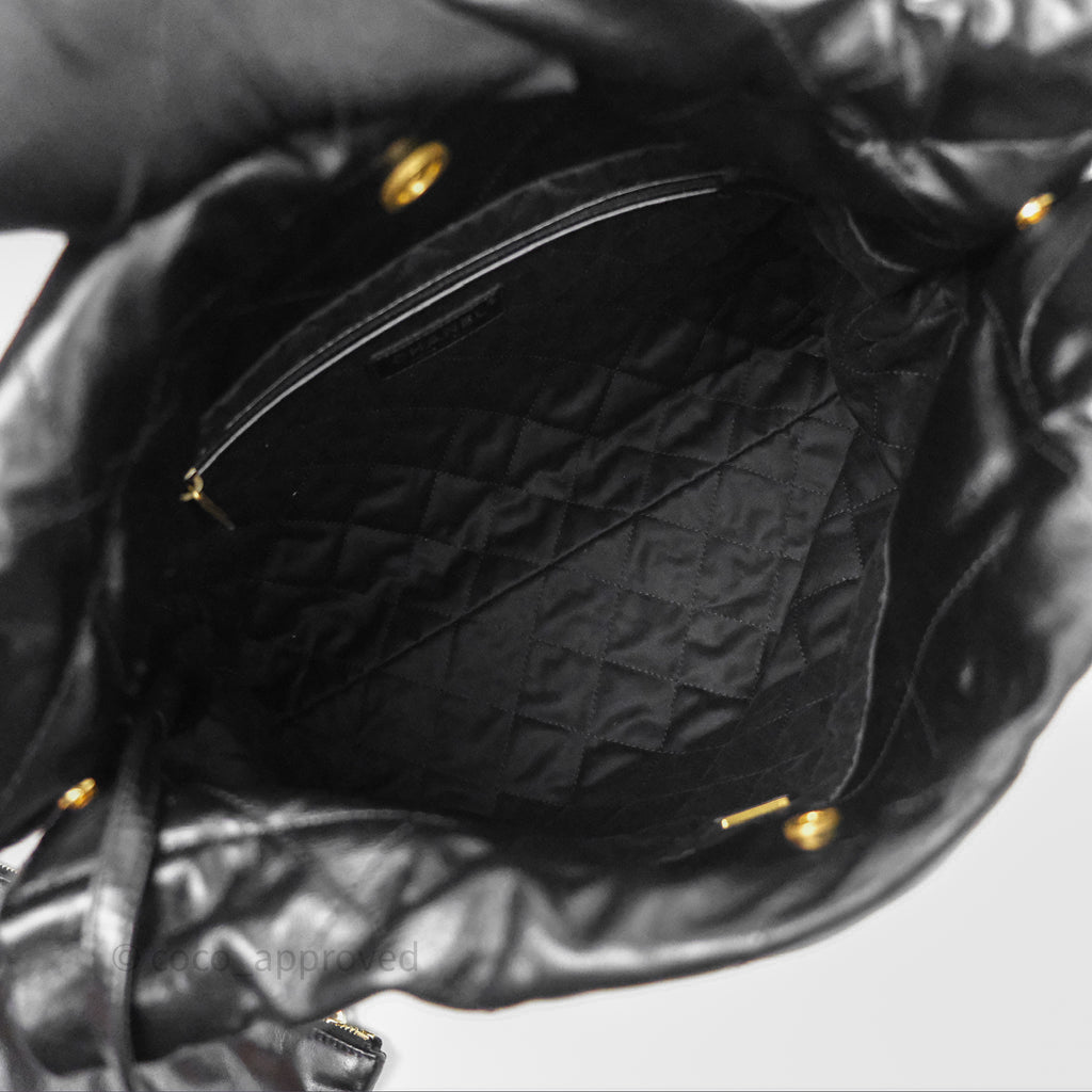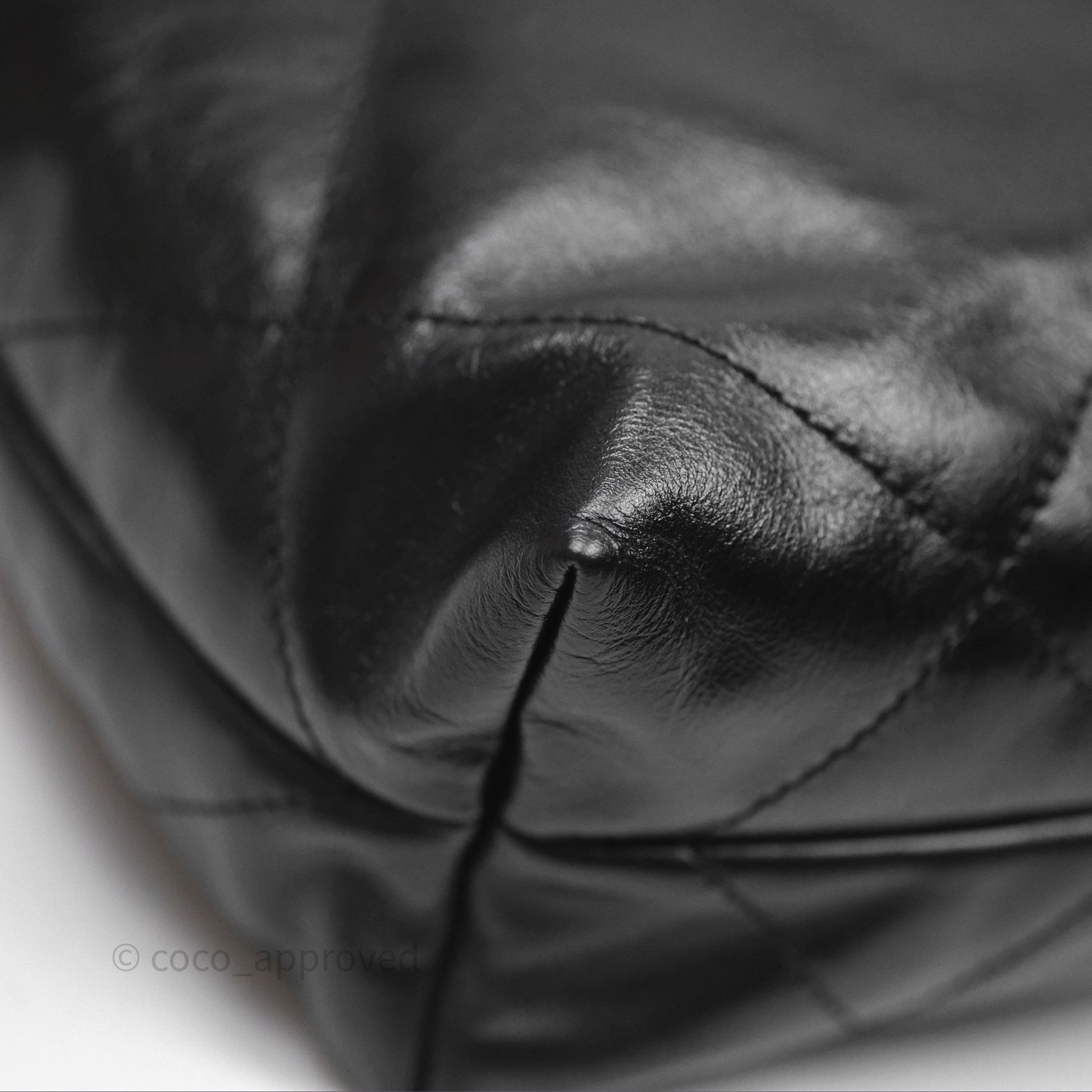 Chanel 22 Bag Small Black Crumpled Calfskin Aged Gold Hardware