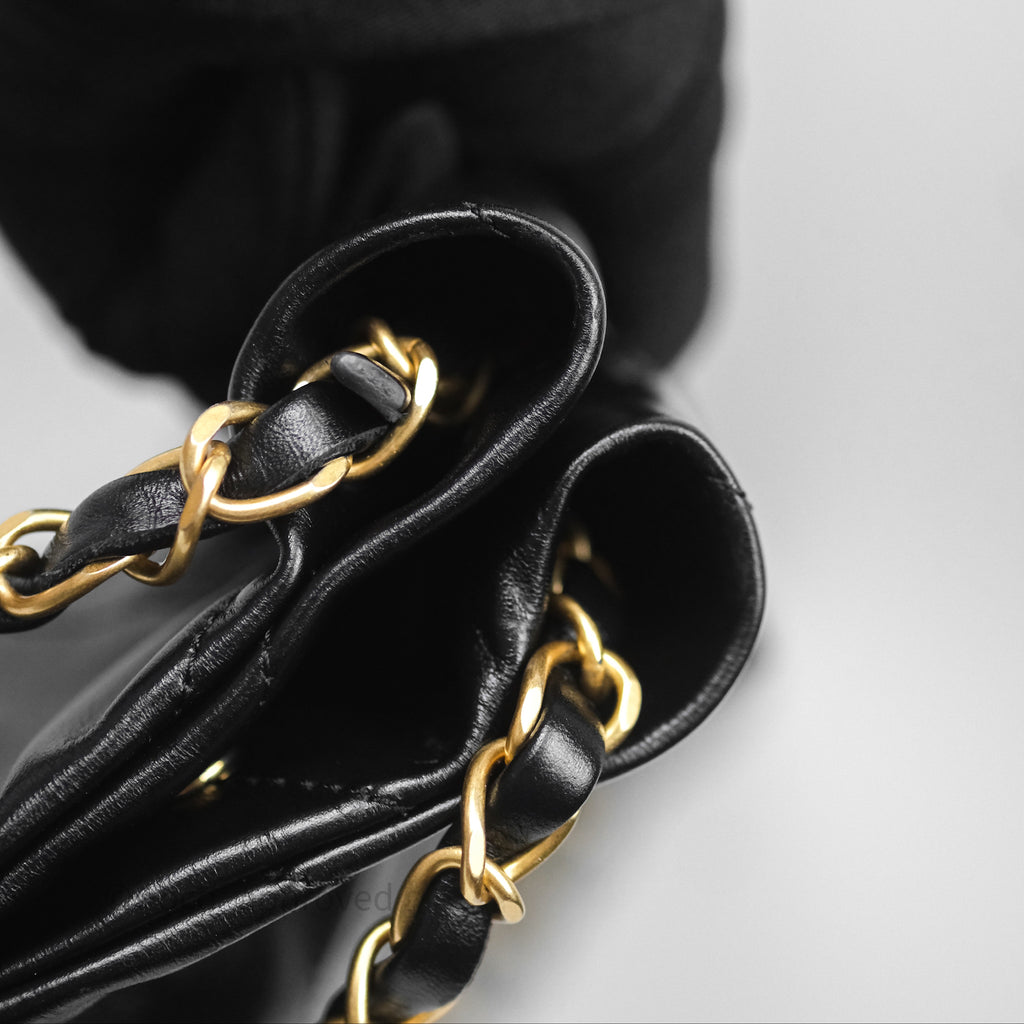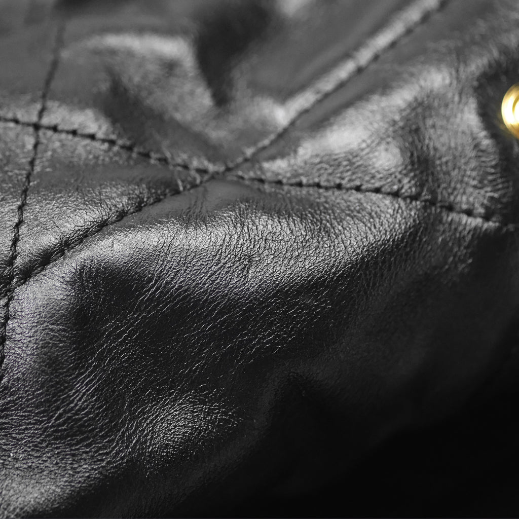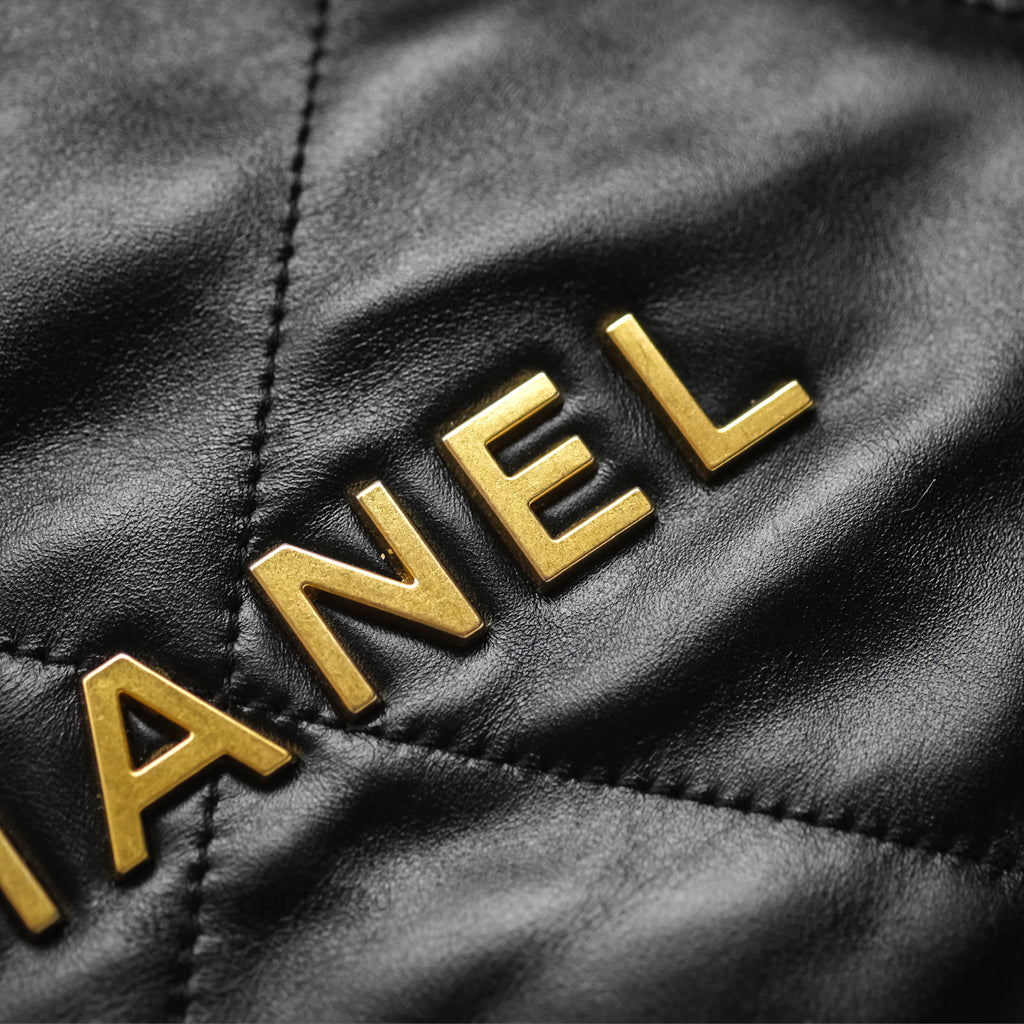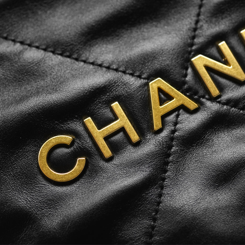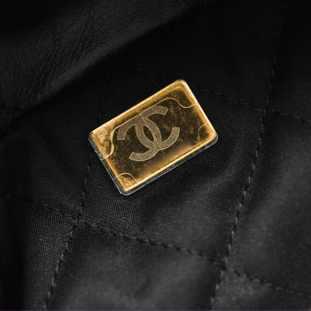 Chanel 22 Bag Small Black Crumpled Calfskin Aged Gold Hardware