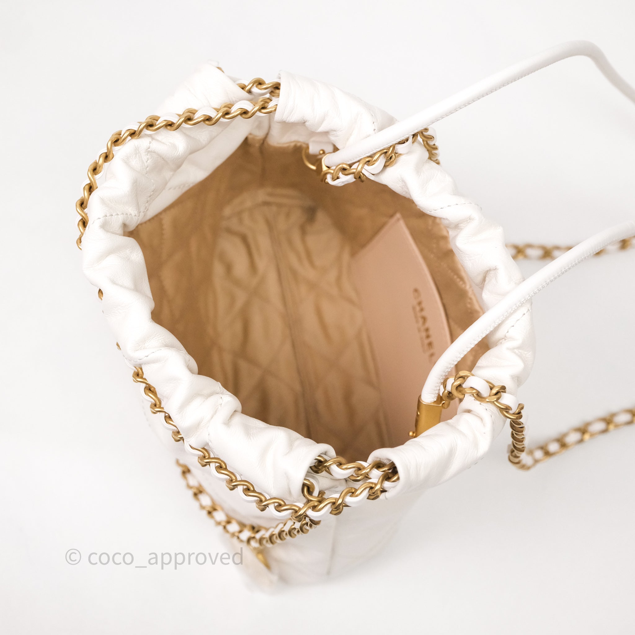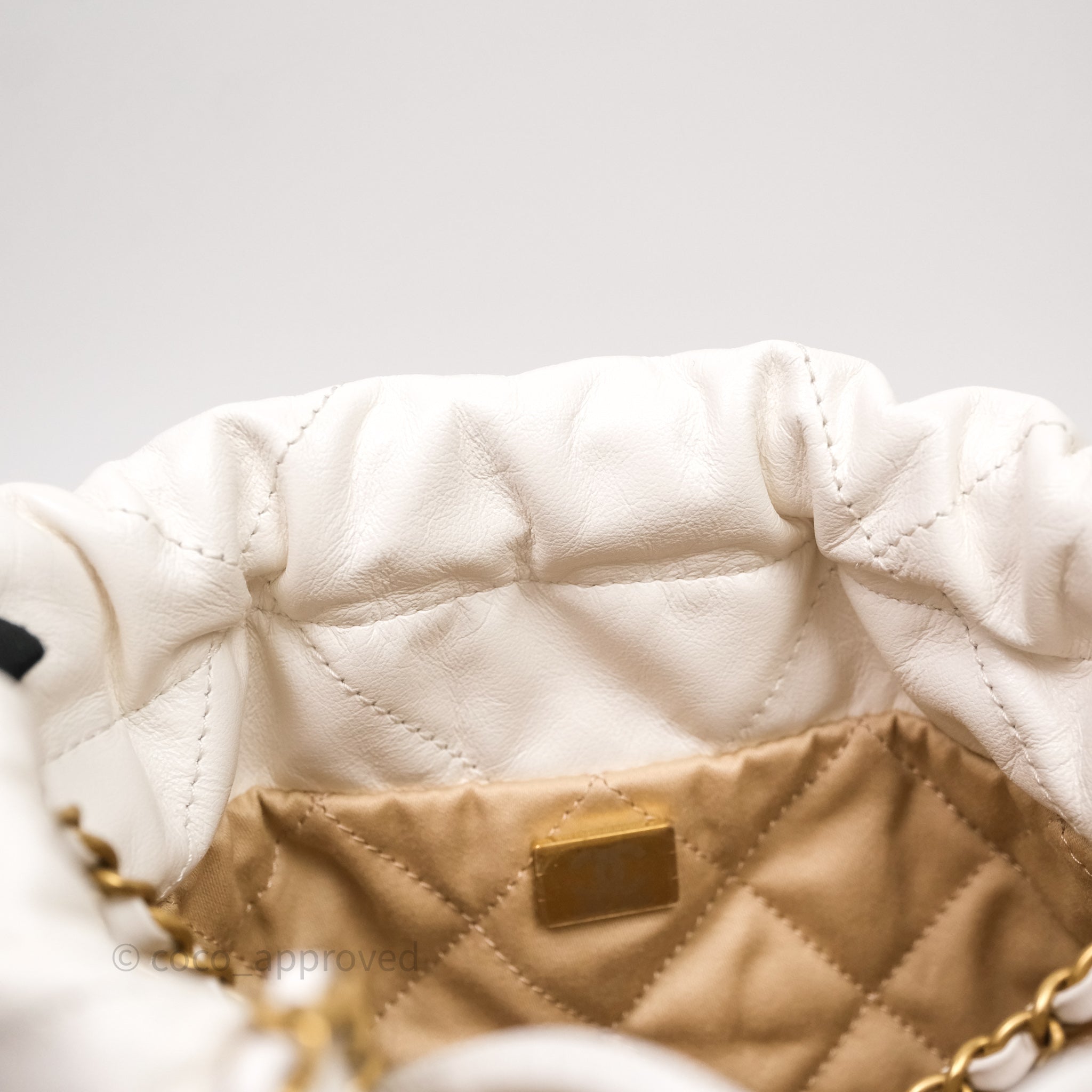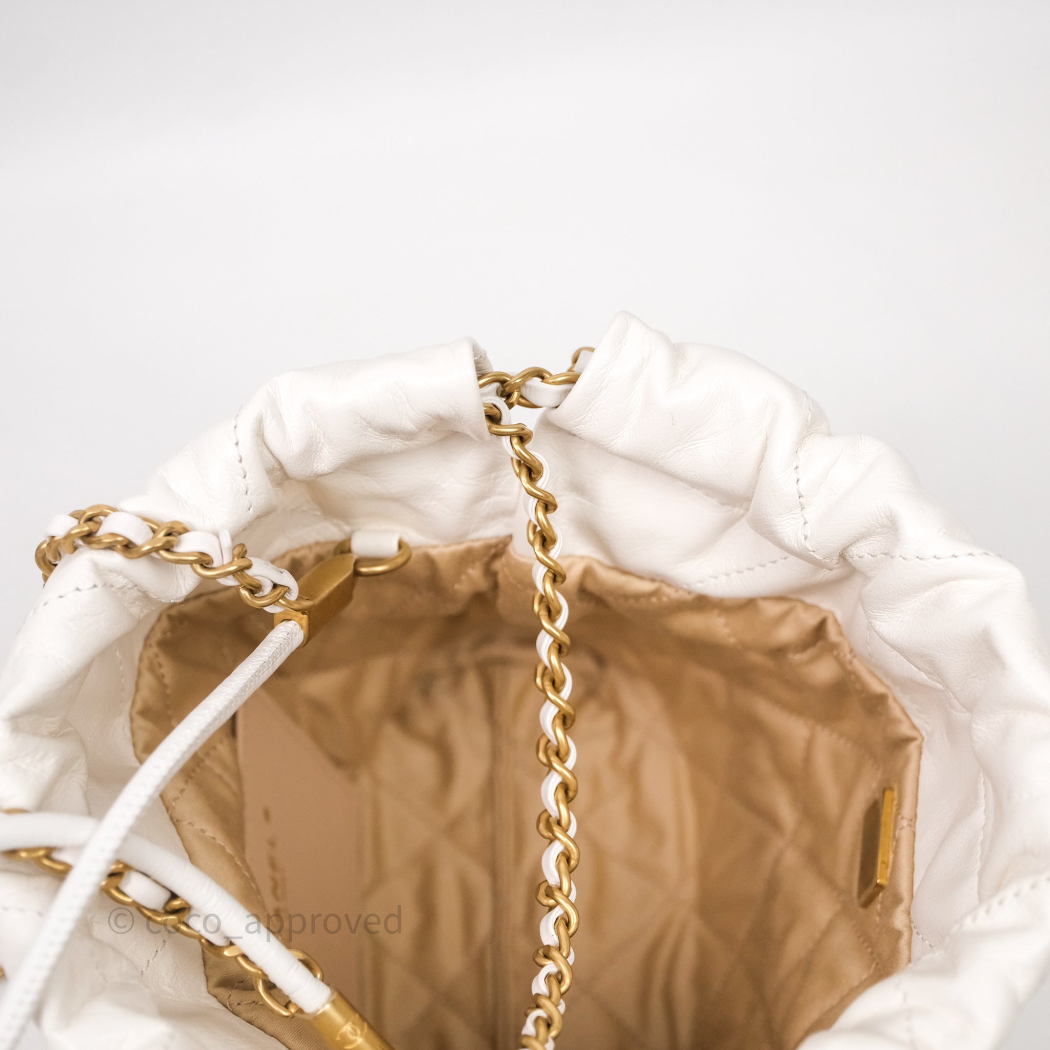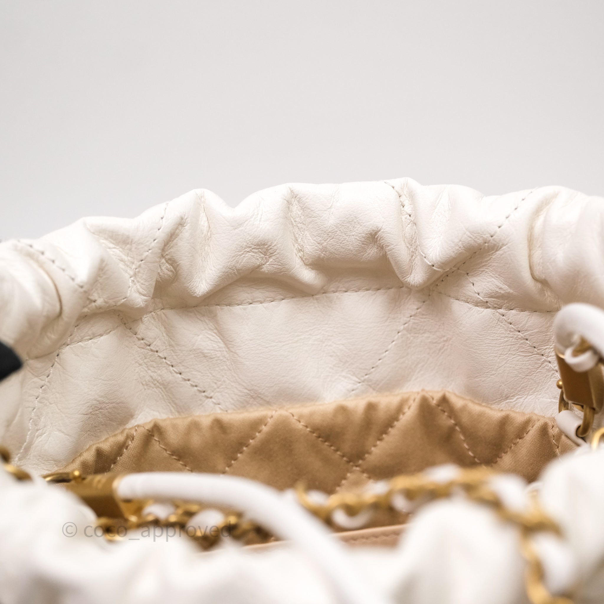 Chanel 22 Mini Bag White Calfskin Aged Gold Hardware