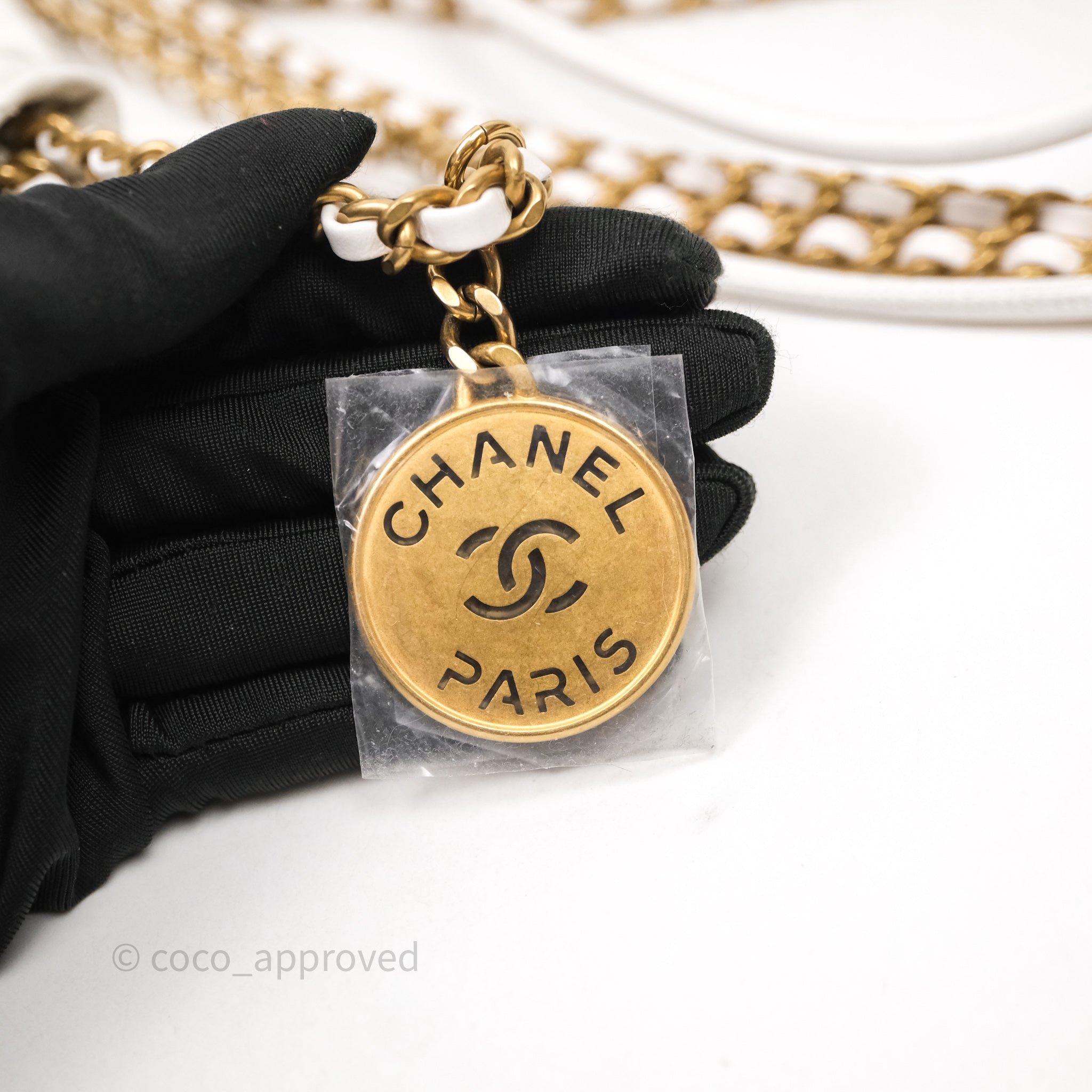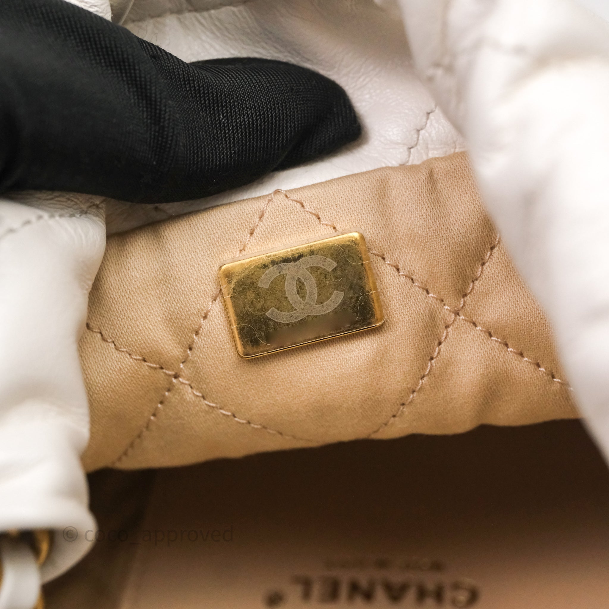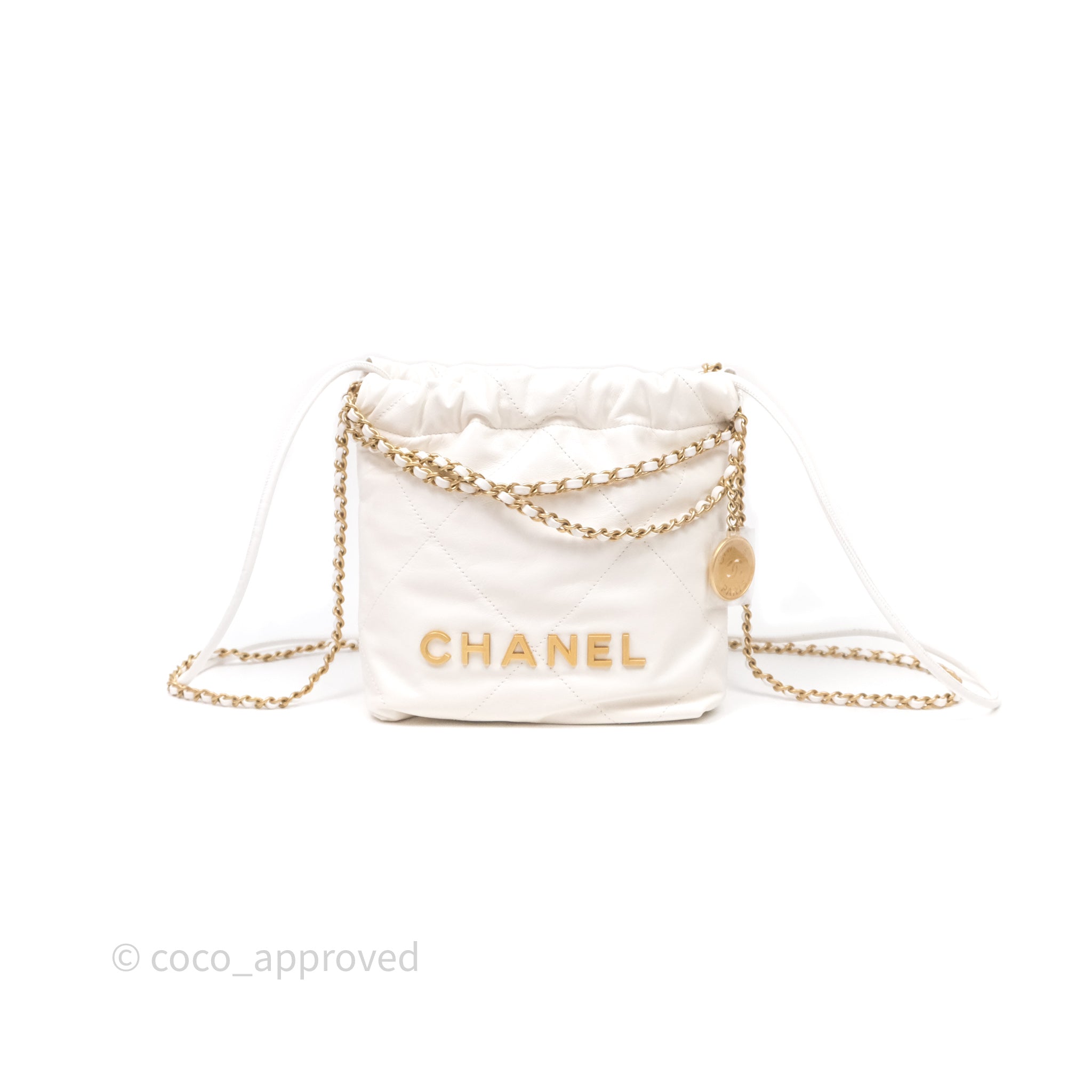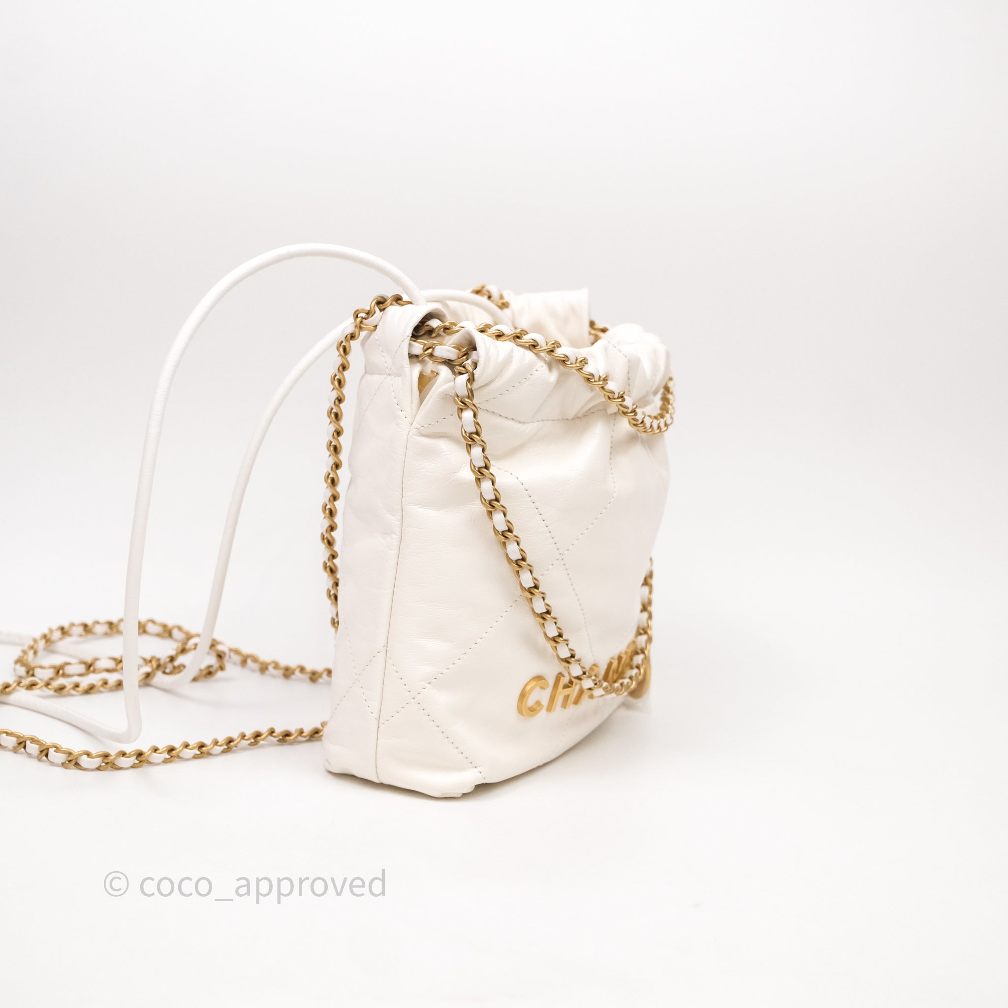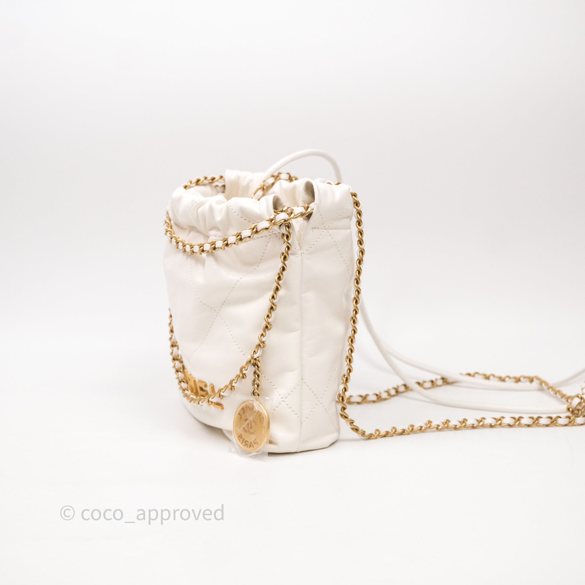 Chanel 22 Mini Bag White Calfskin Aged Gold Hardware