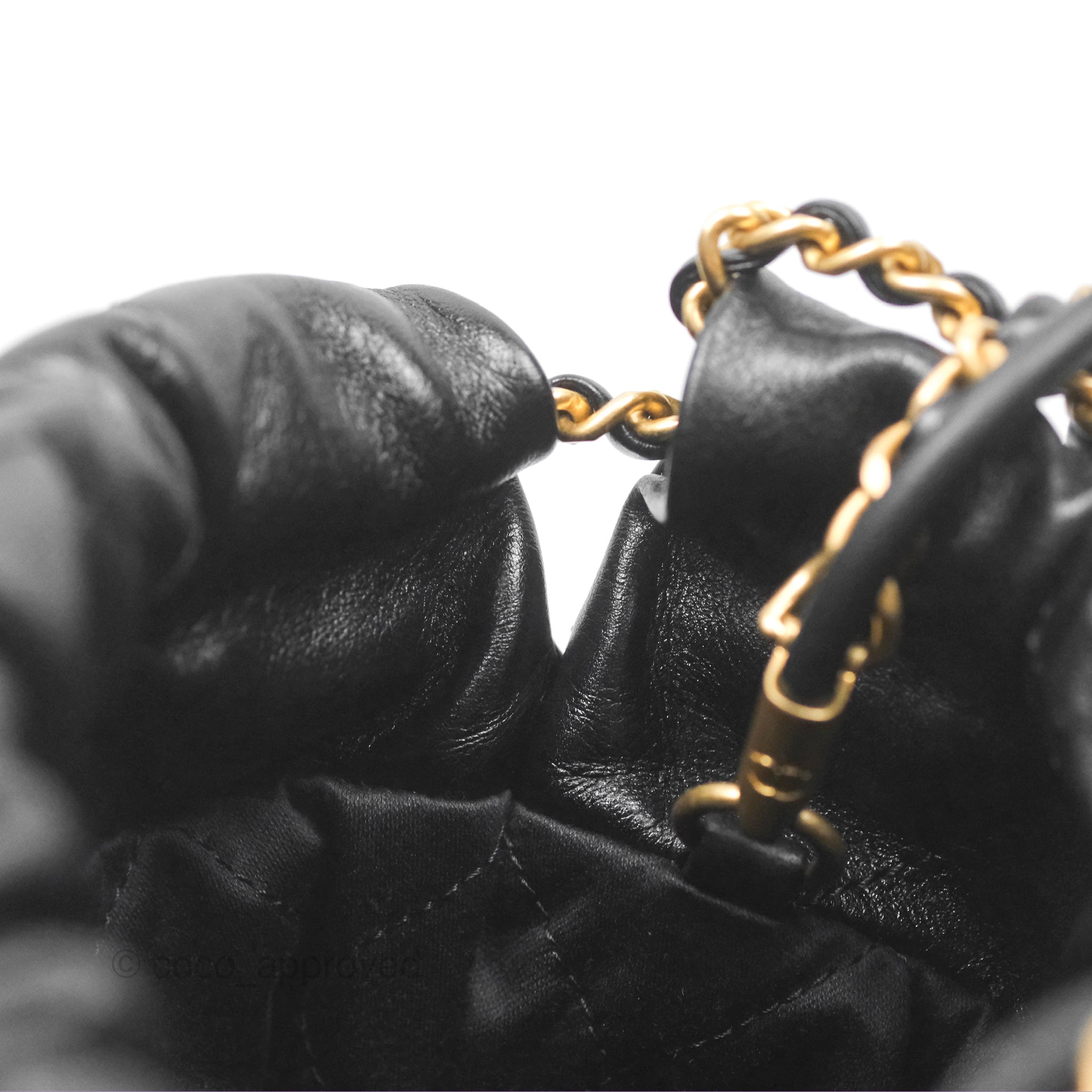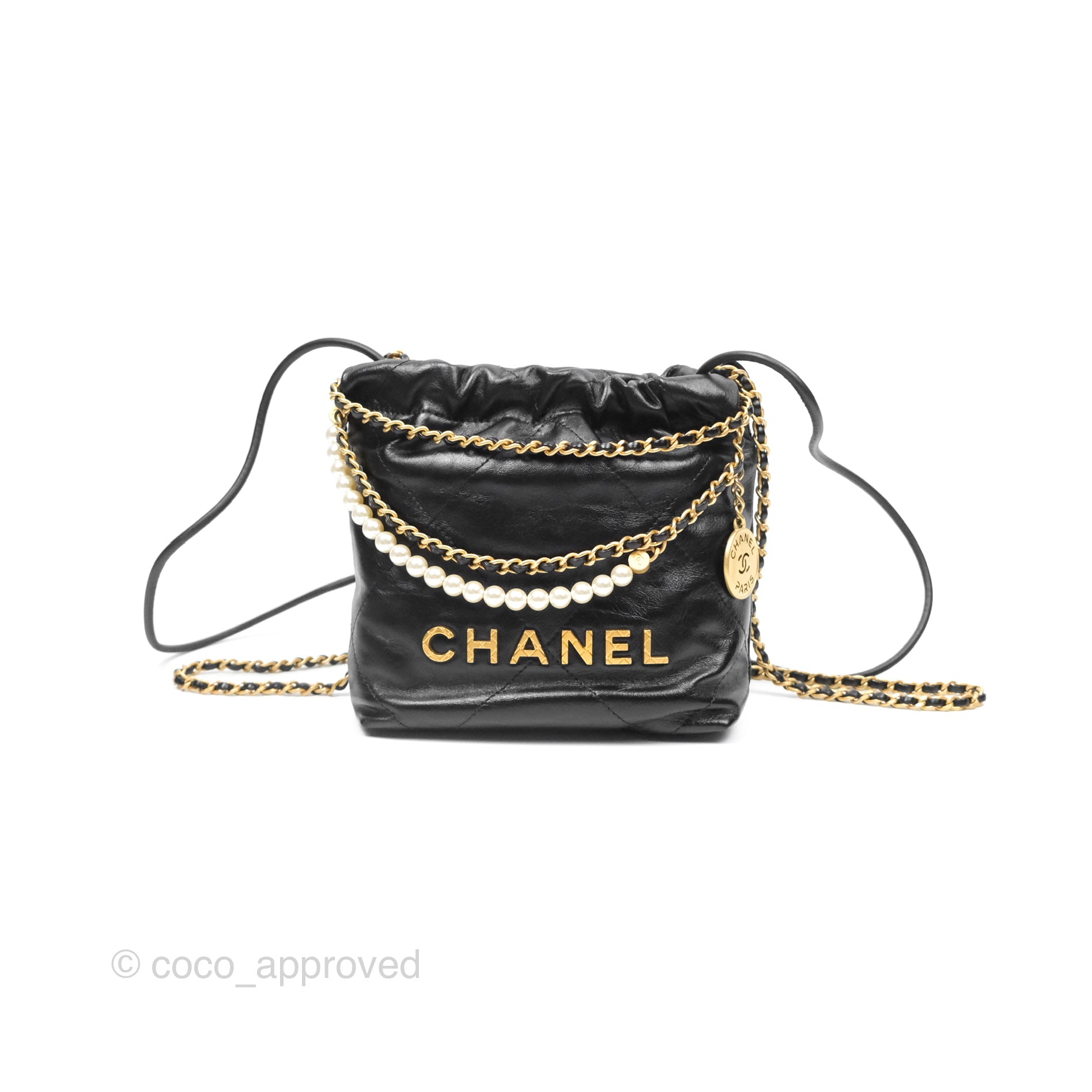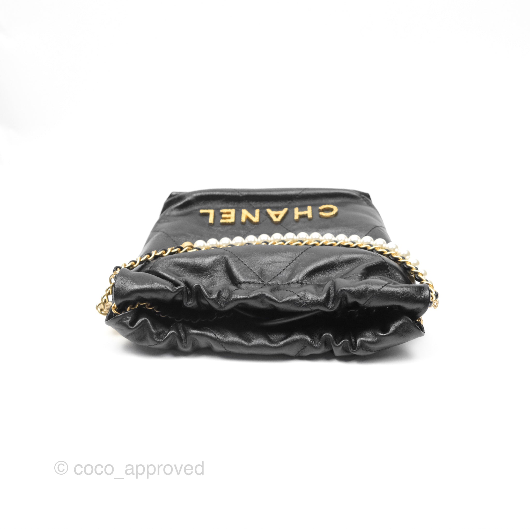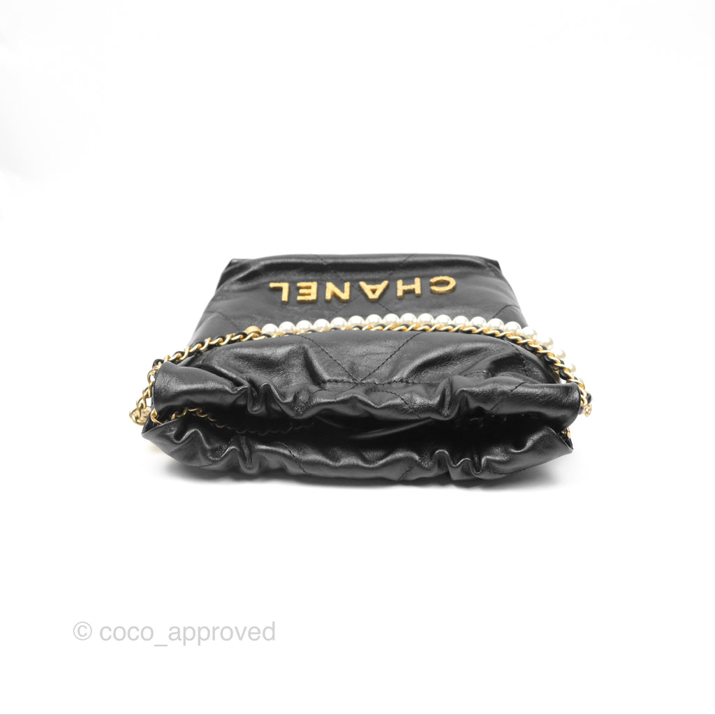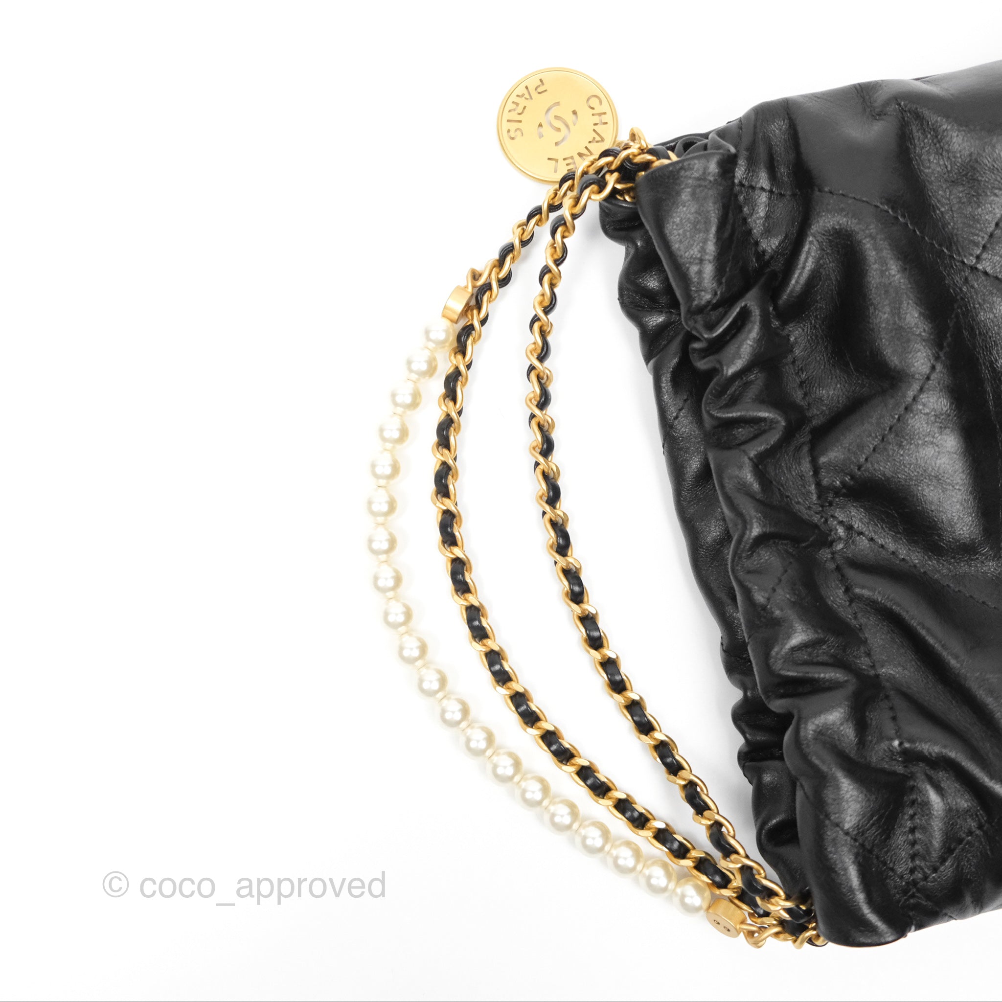 Chanel 22 Mini Bag with Pearl Chain Black Shiny Crumpled Calfskin