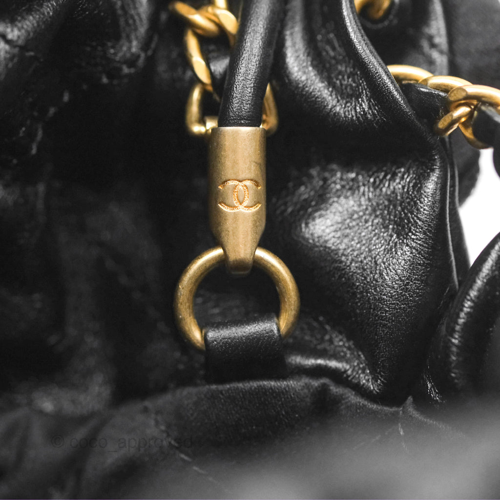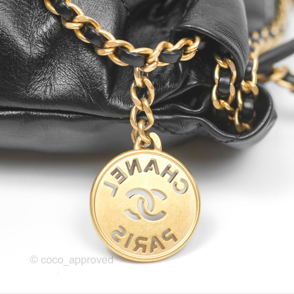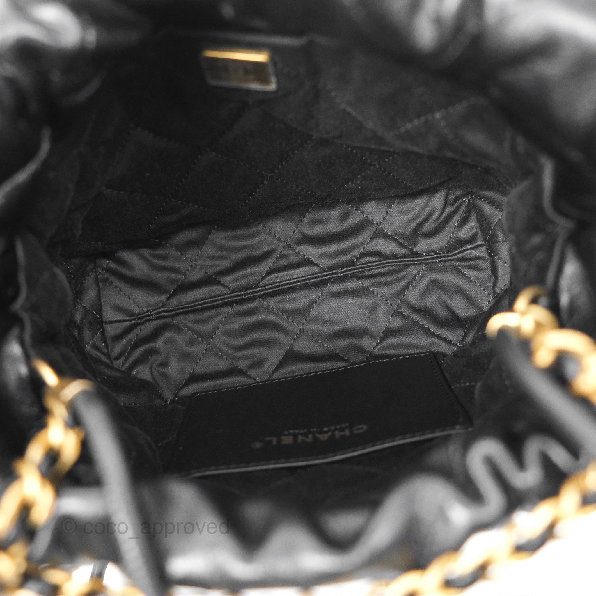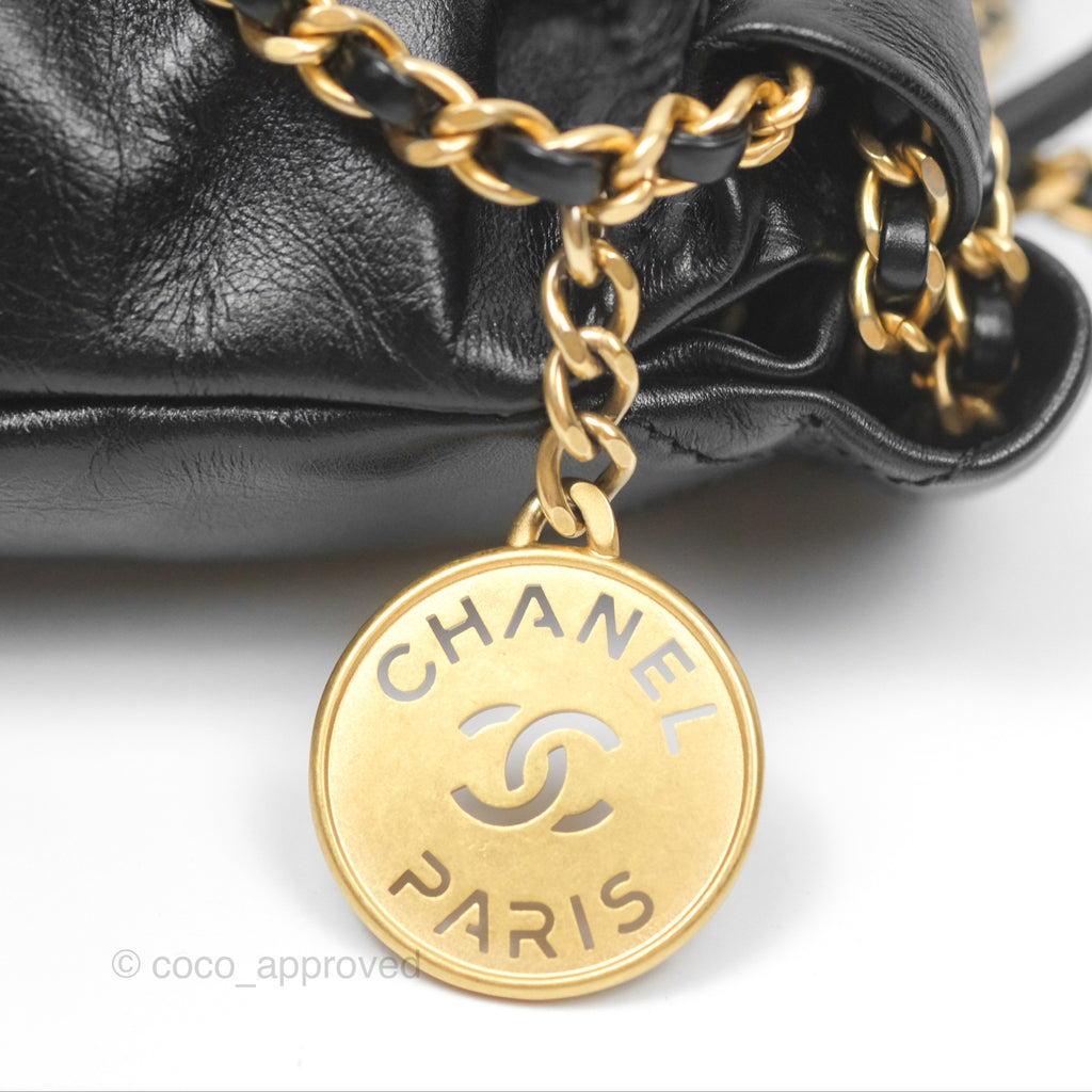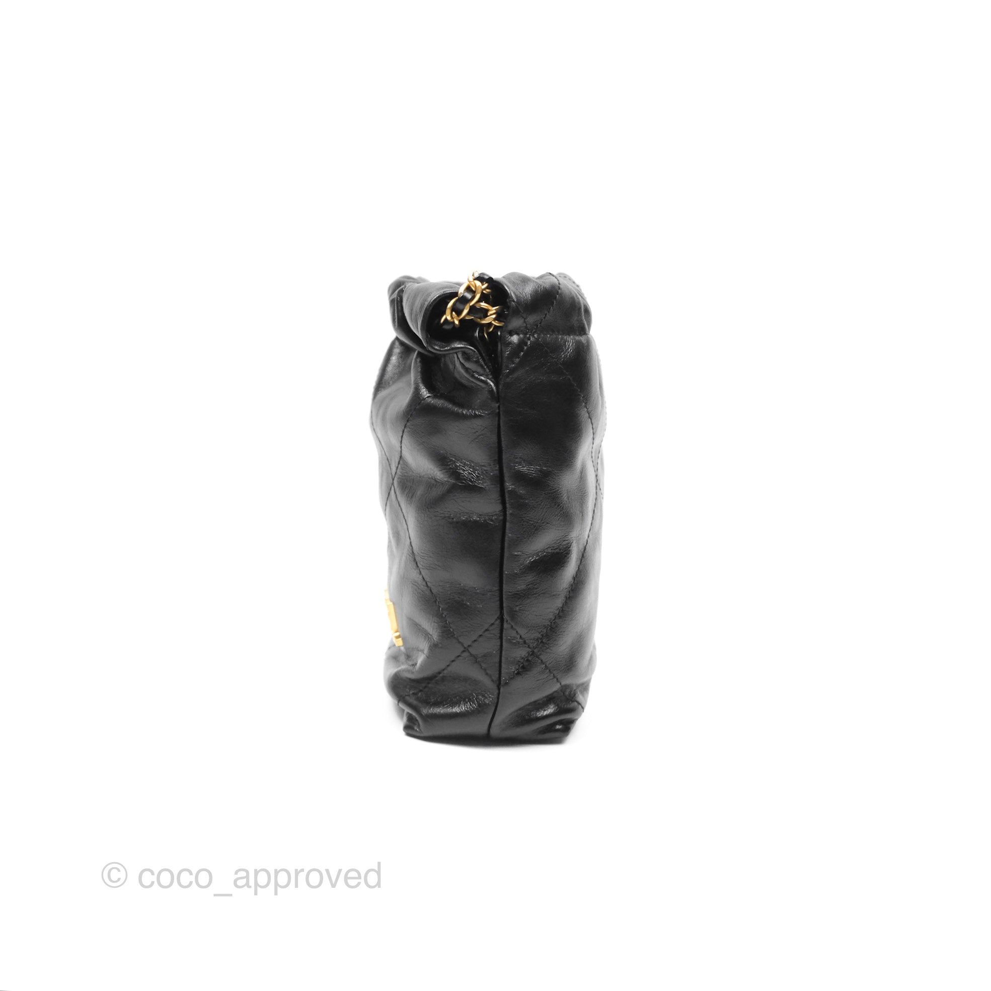 Chanel 22 Mini Bag with Pearl Chain Black Shiny Crumpled Calfskin