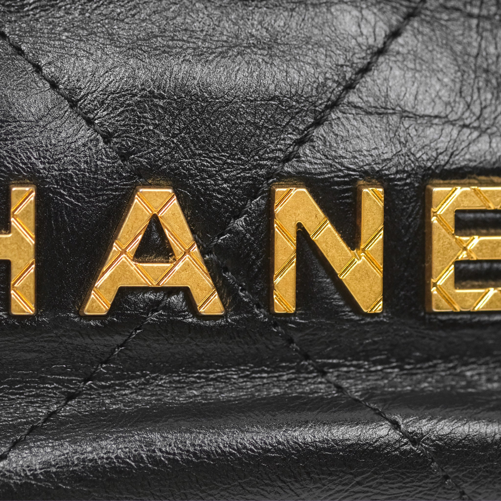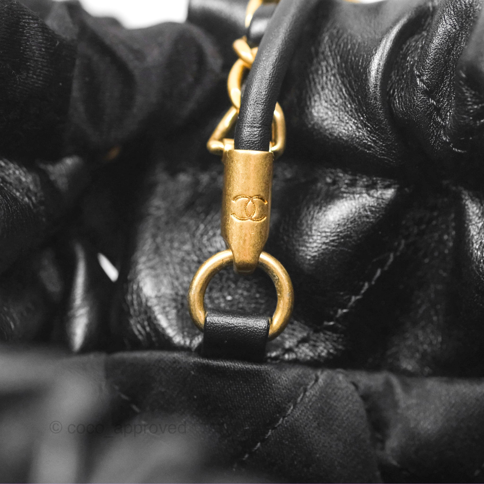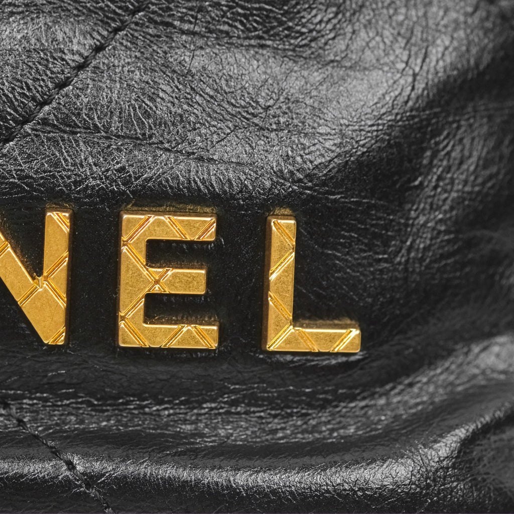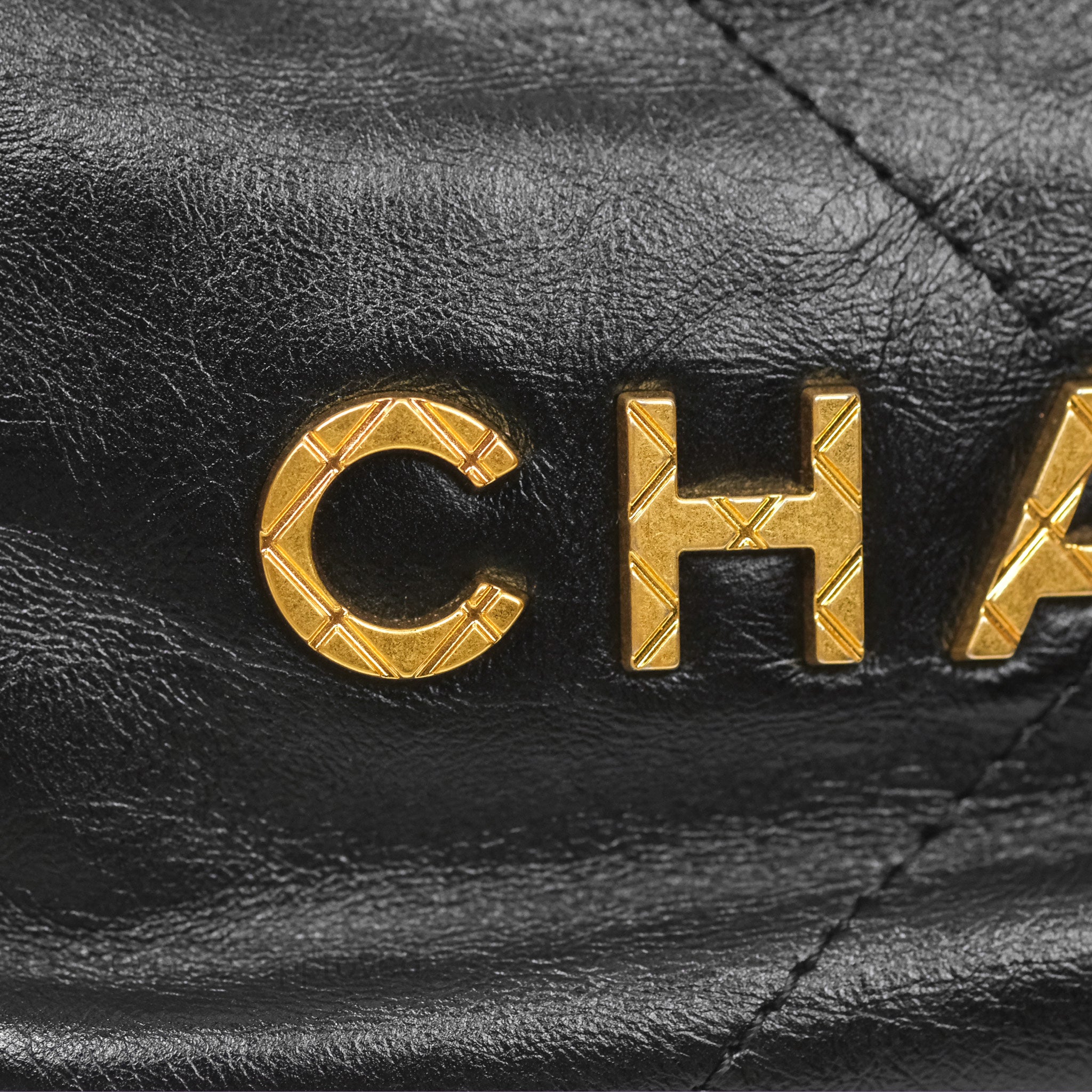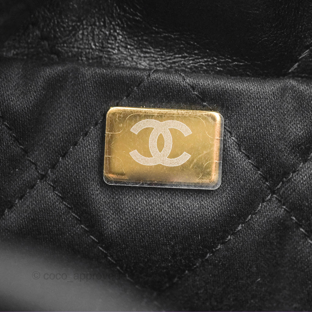 Chanel 22 Mini Bag with Pearl Chain Black Shiny Crumpled Calfskin