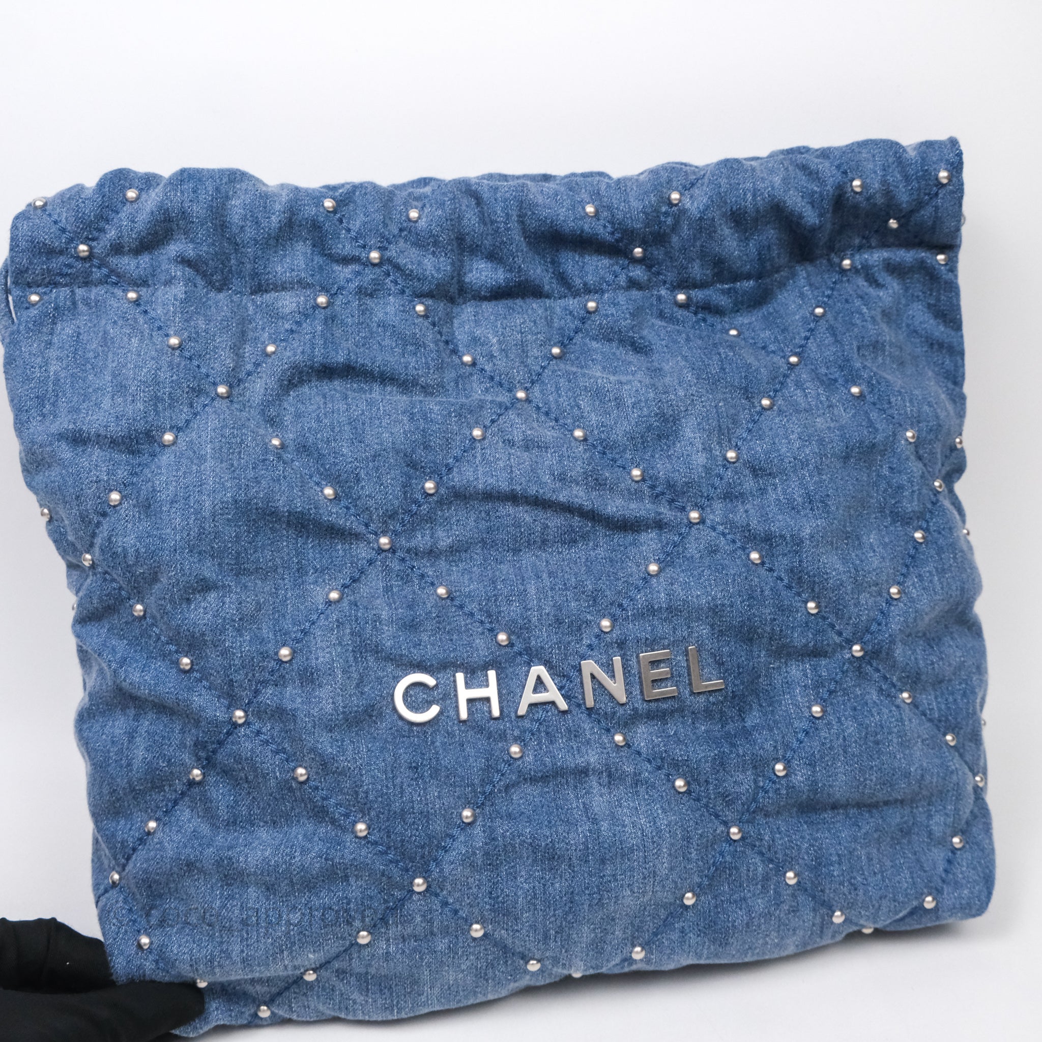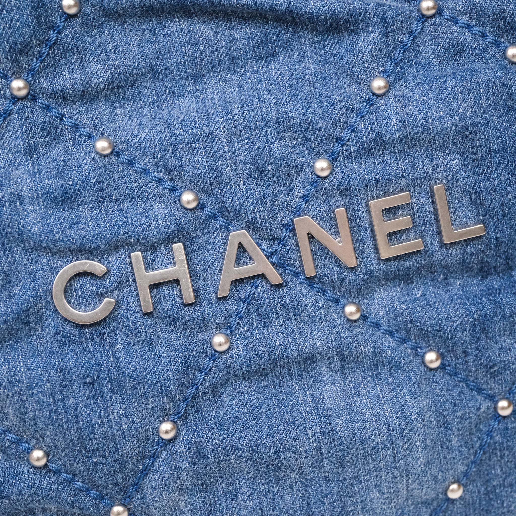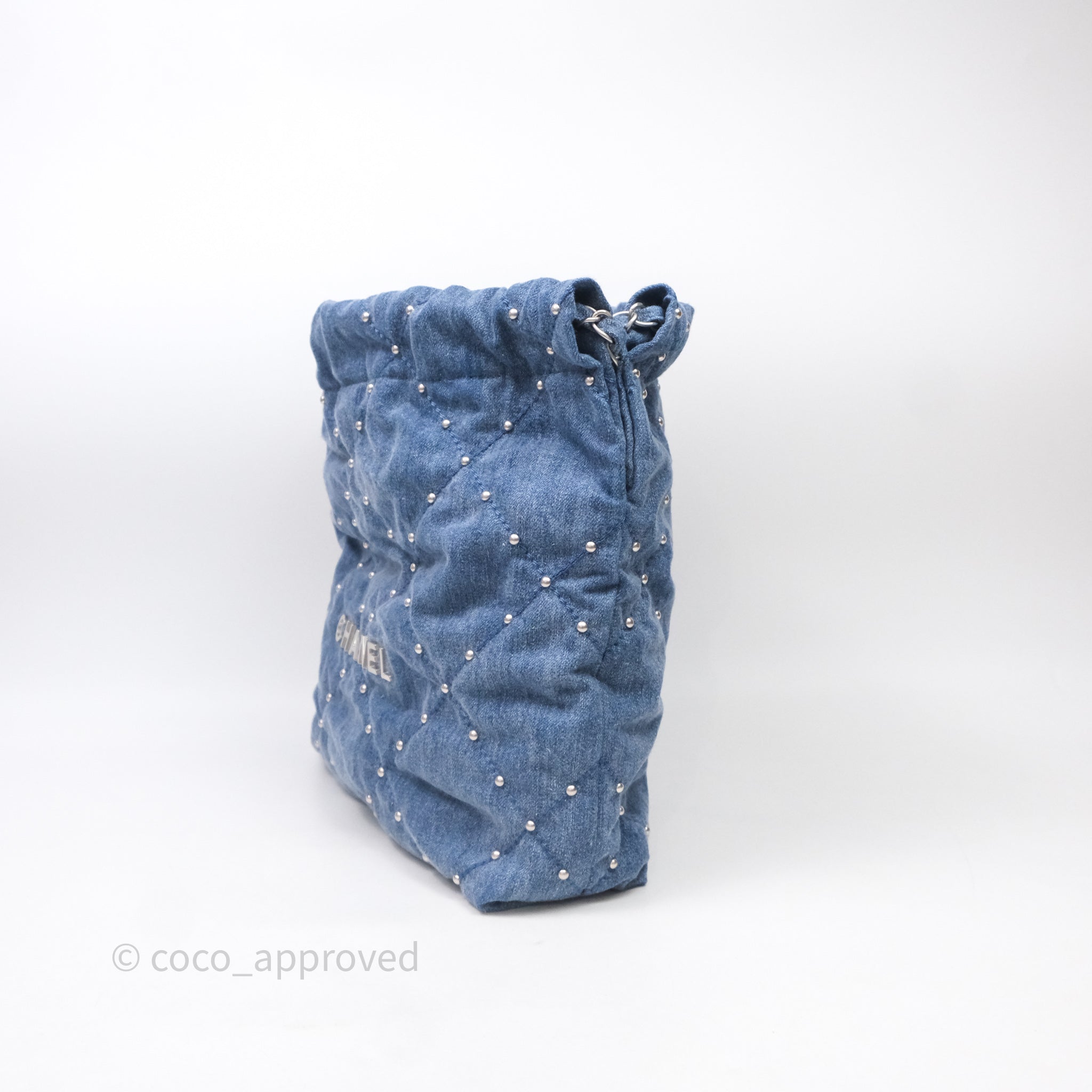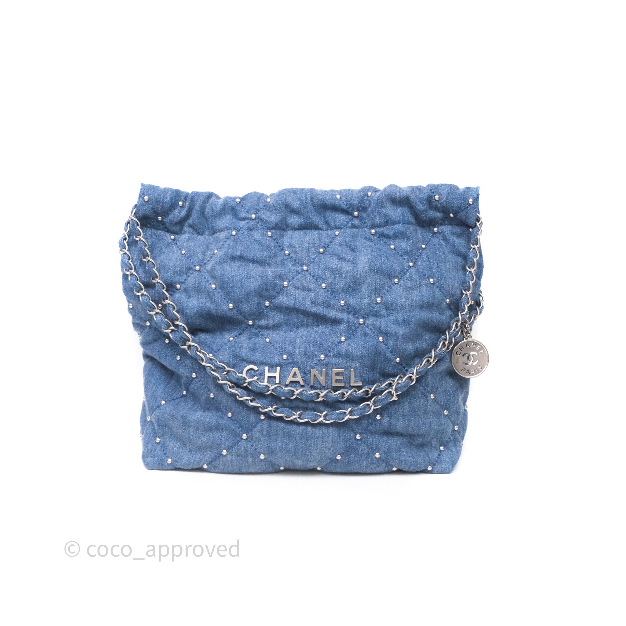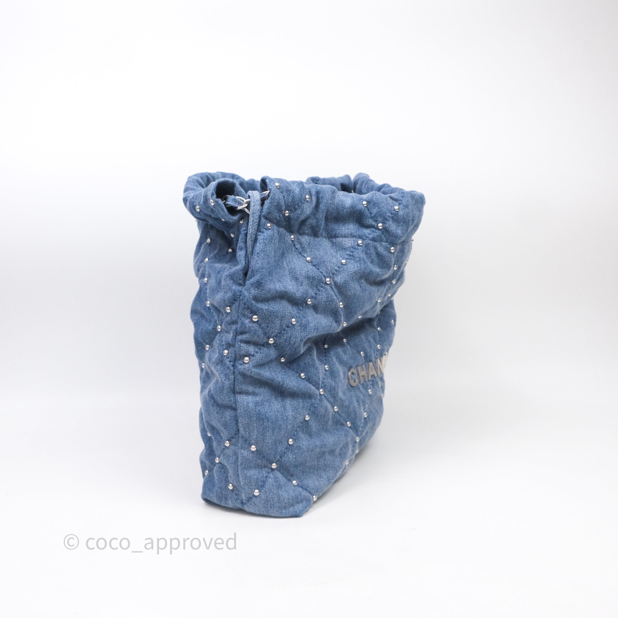 Chanel 22 Small Pearl Studded Denim Silver Hardware