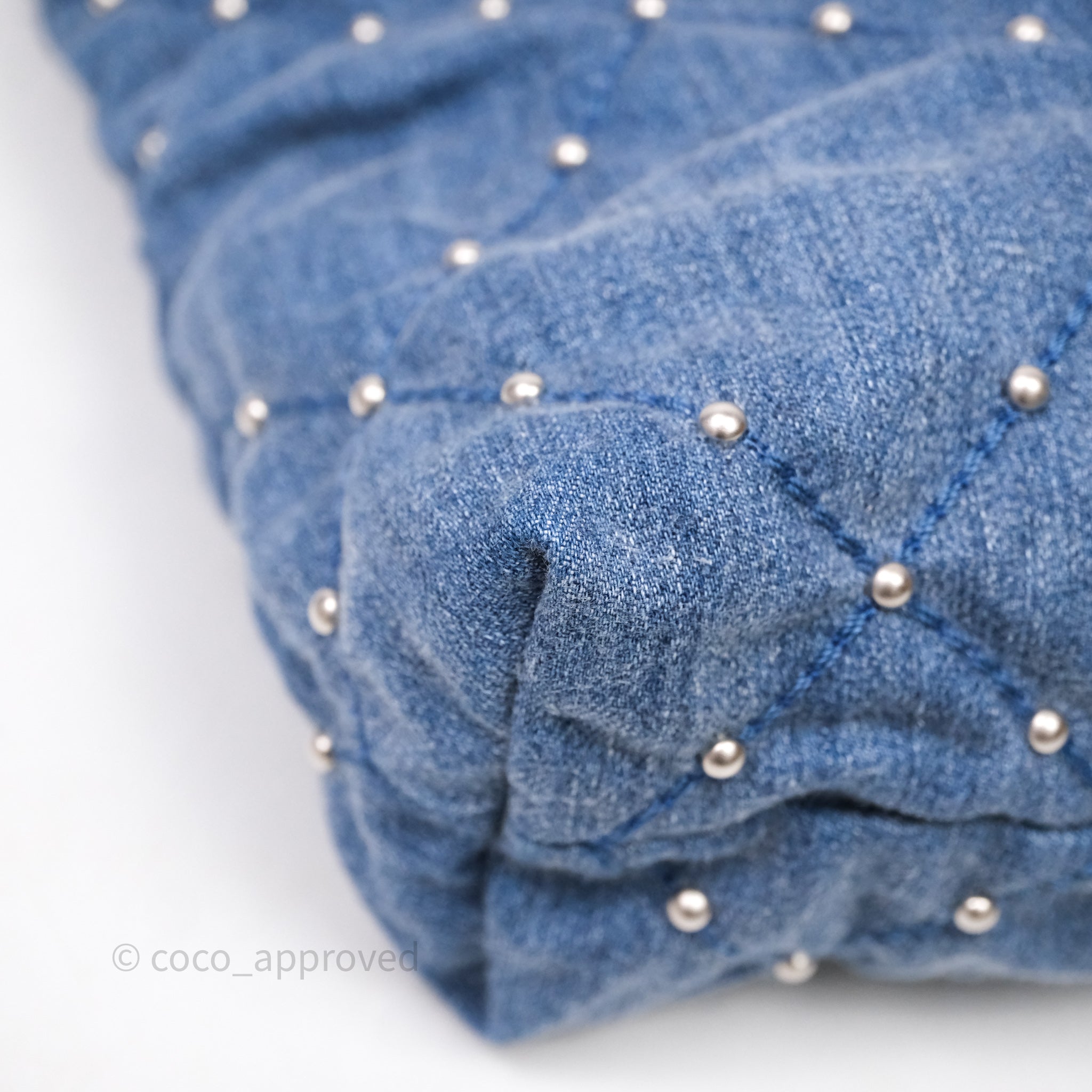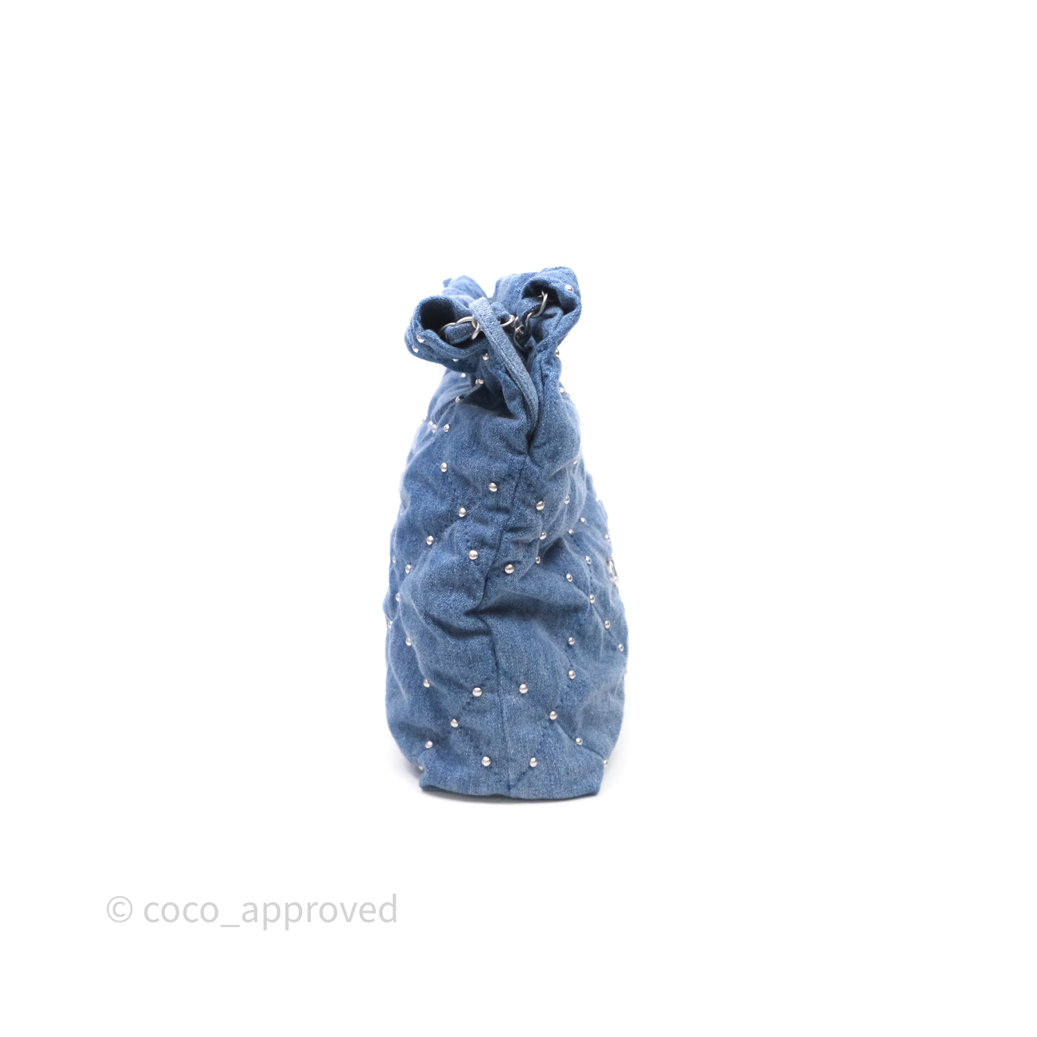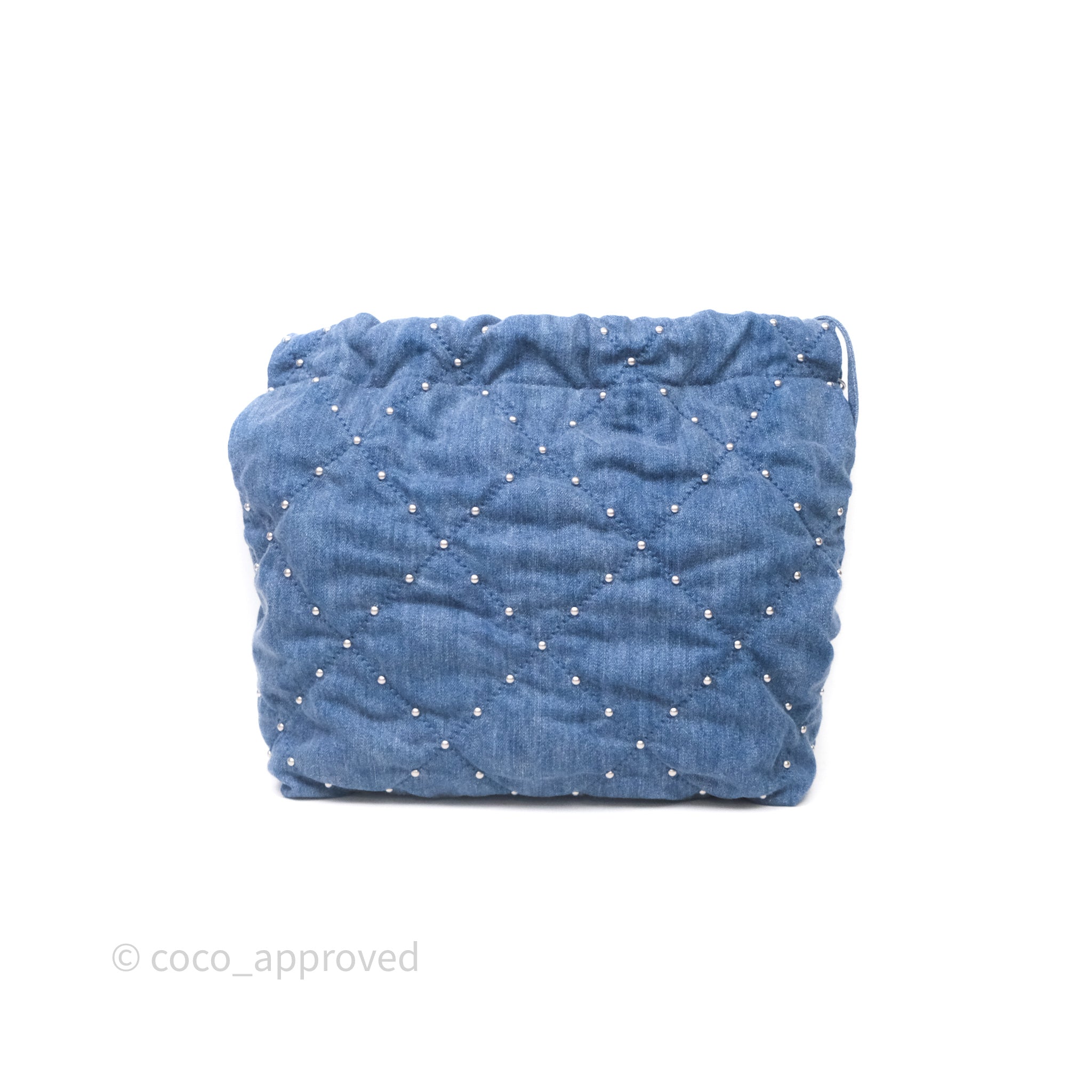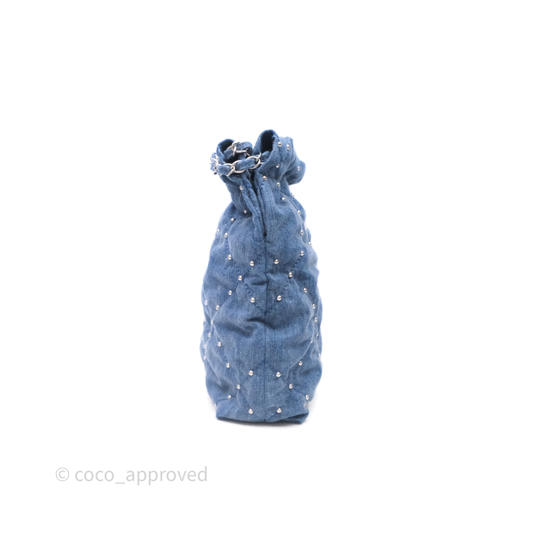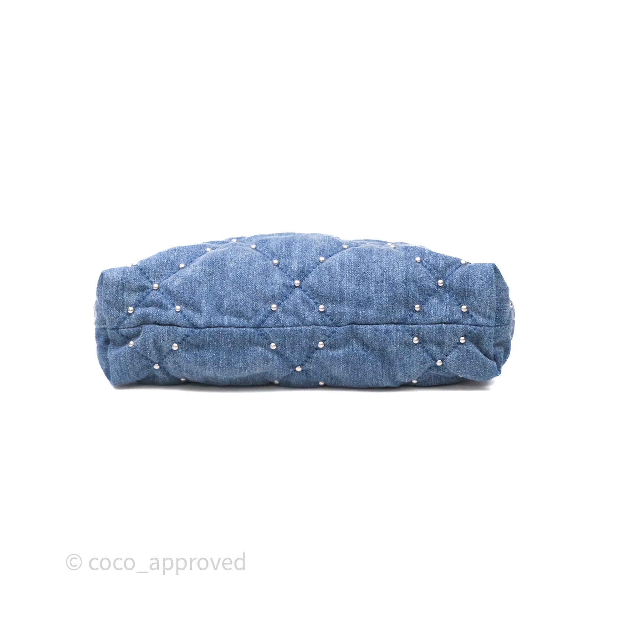 Chanel 22 Small Pearl Studded Denim Silver Hardware