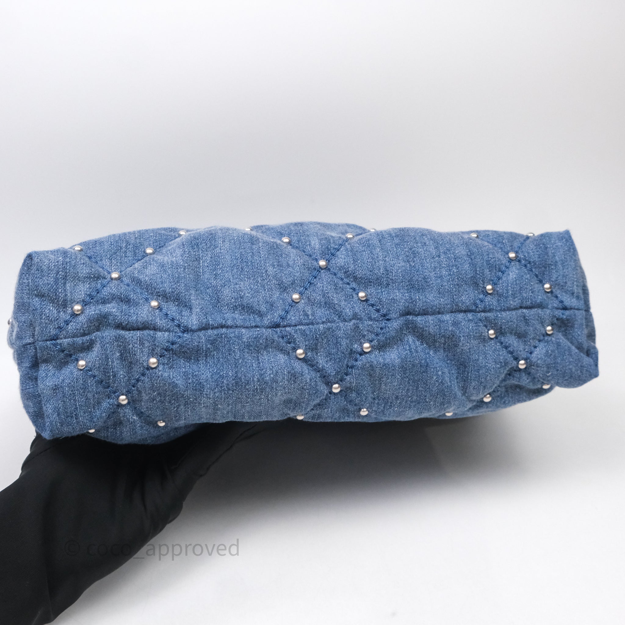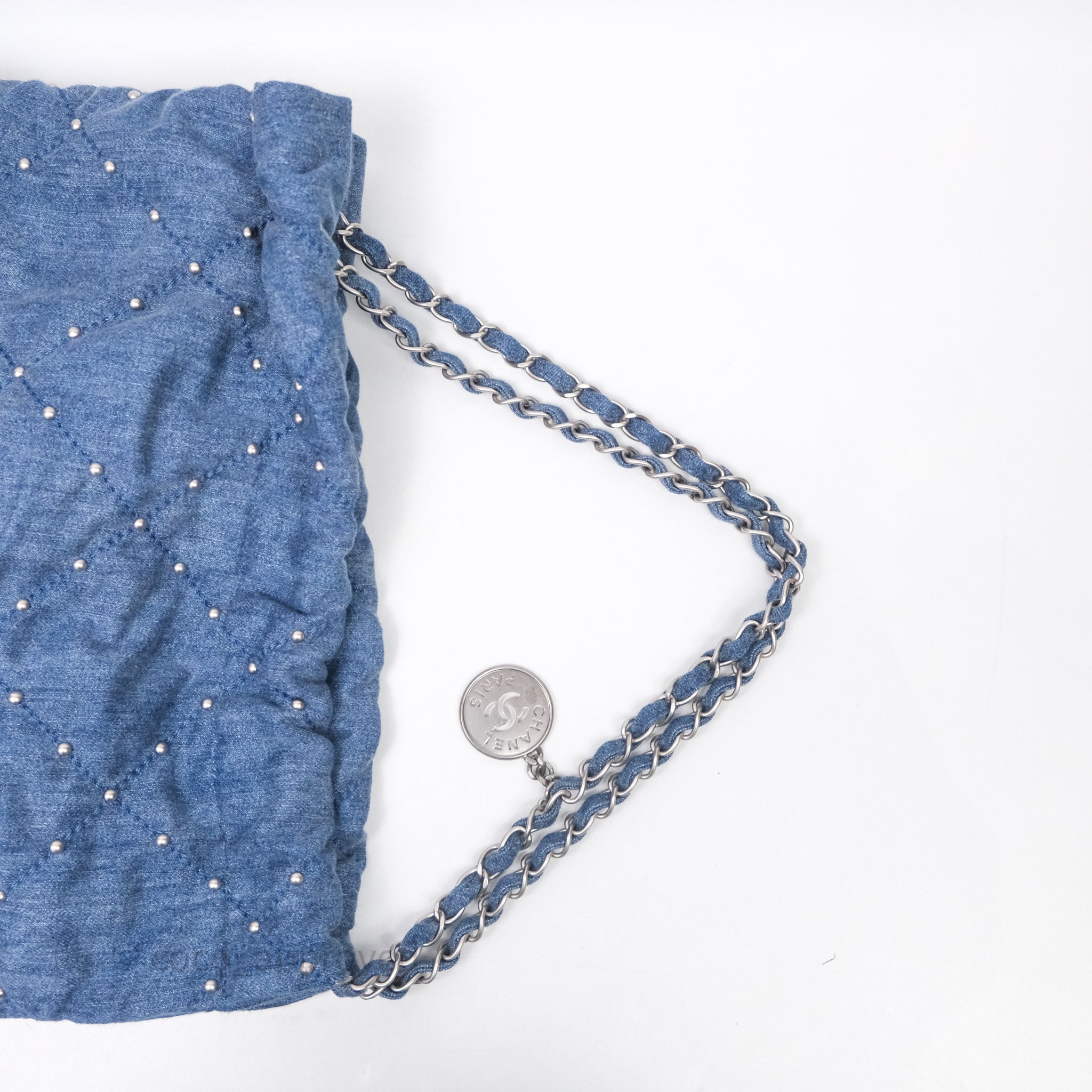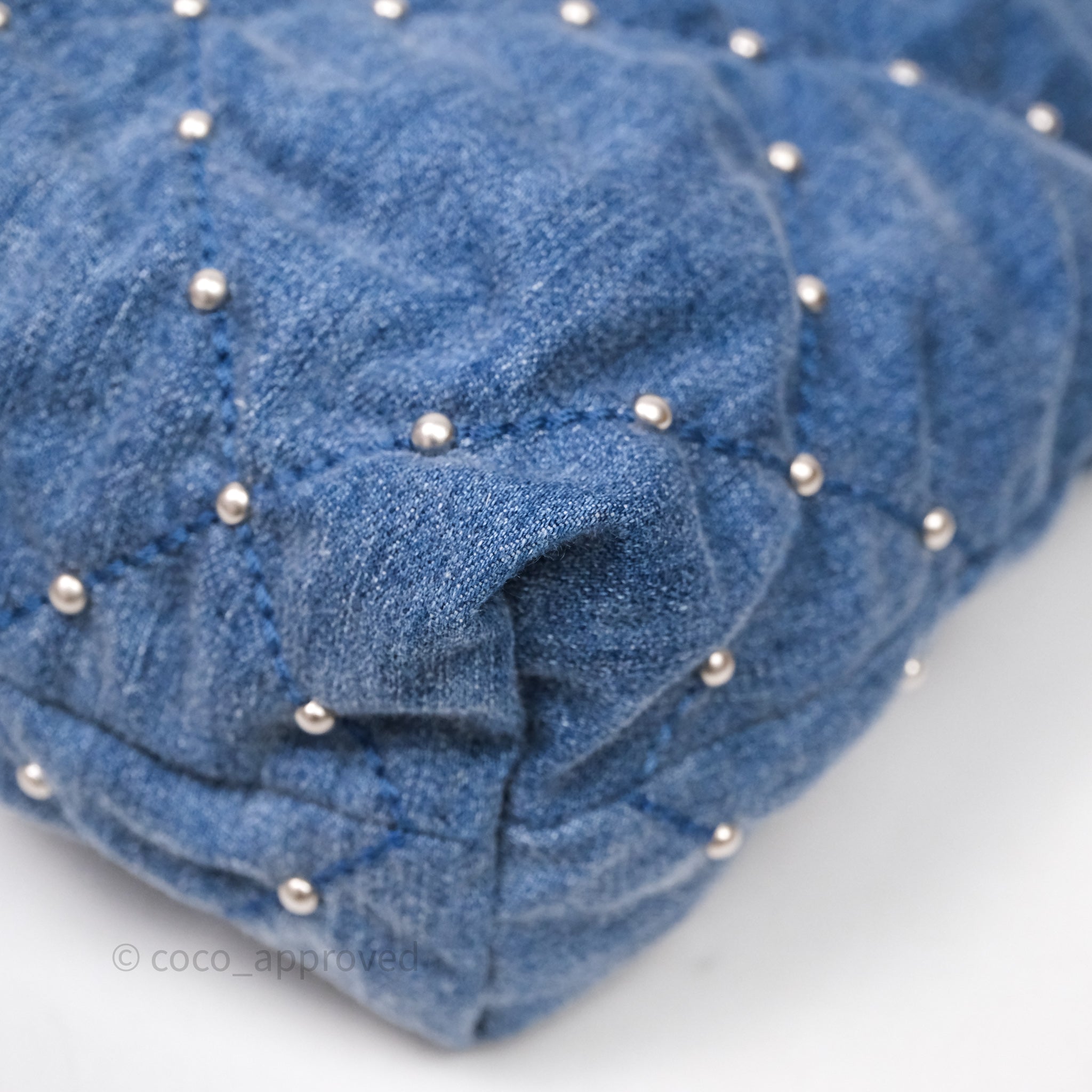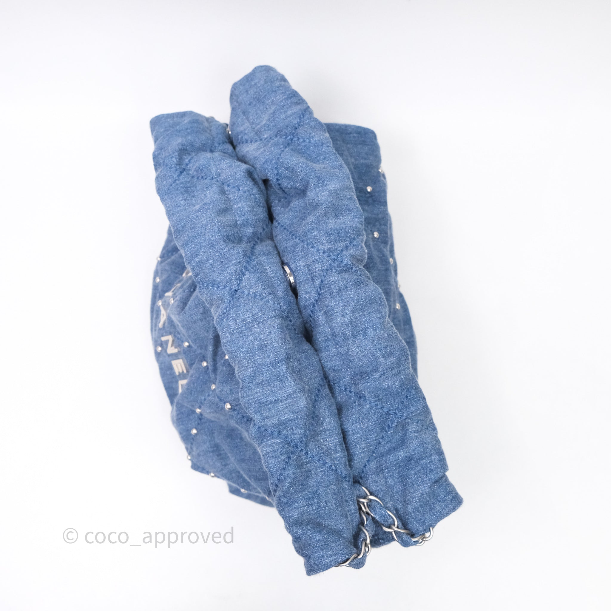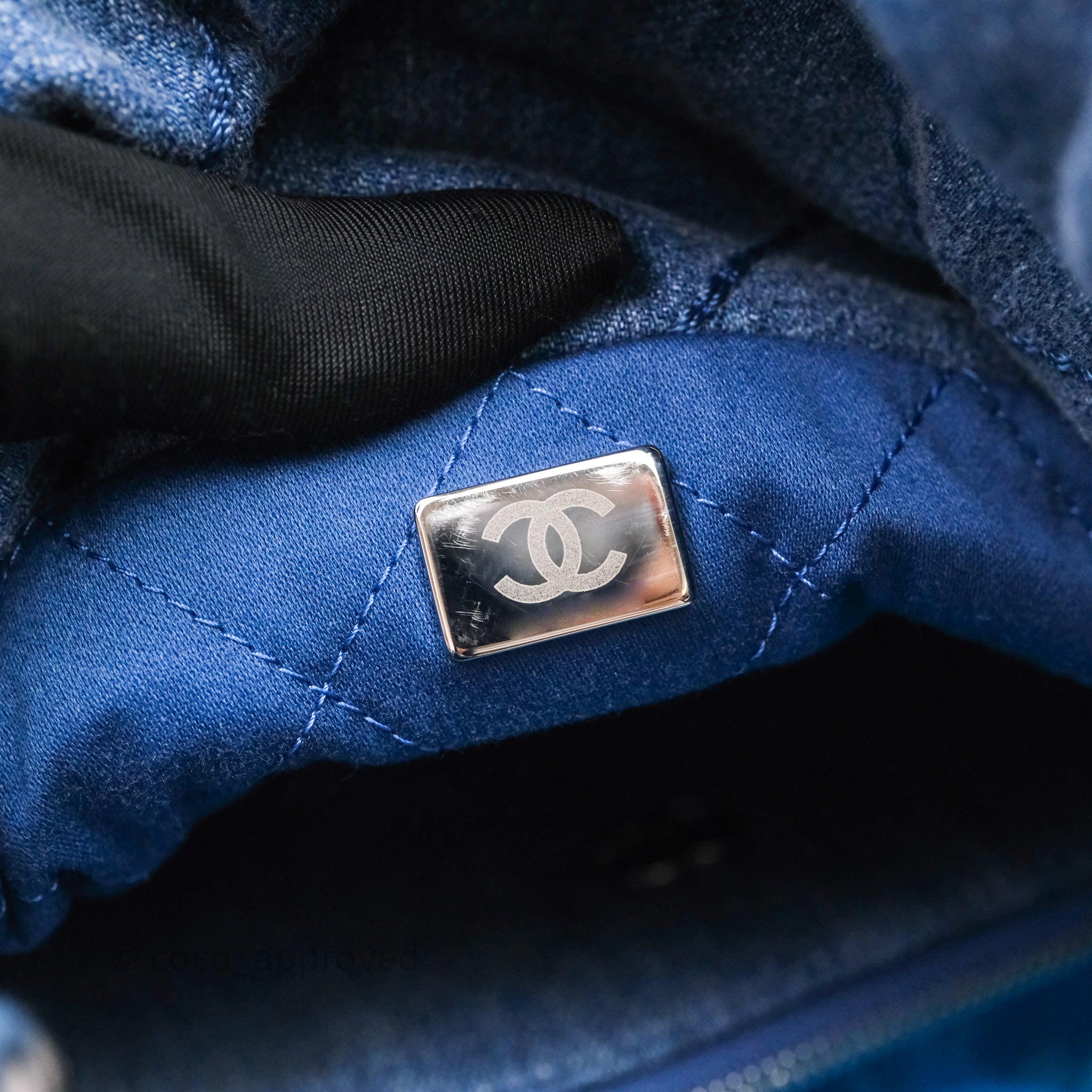 Chanel 22 Small Pearl Studded Denim Silver Hardware