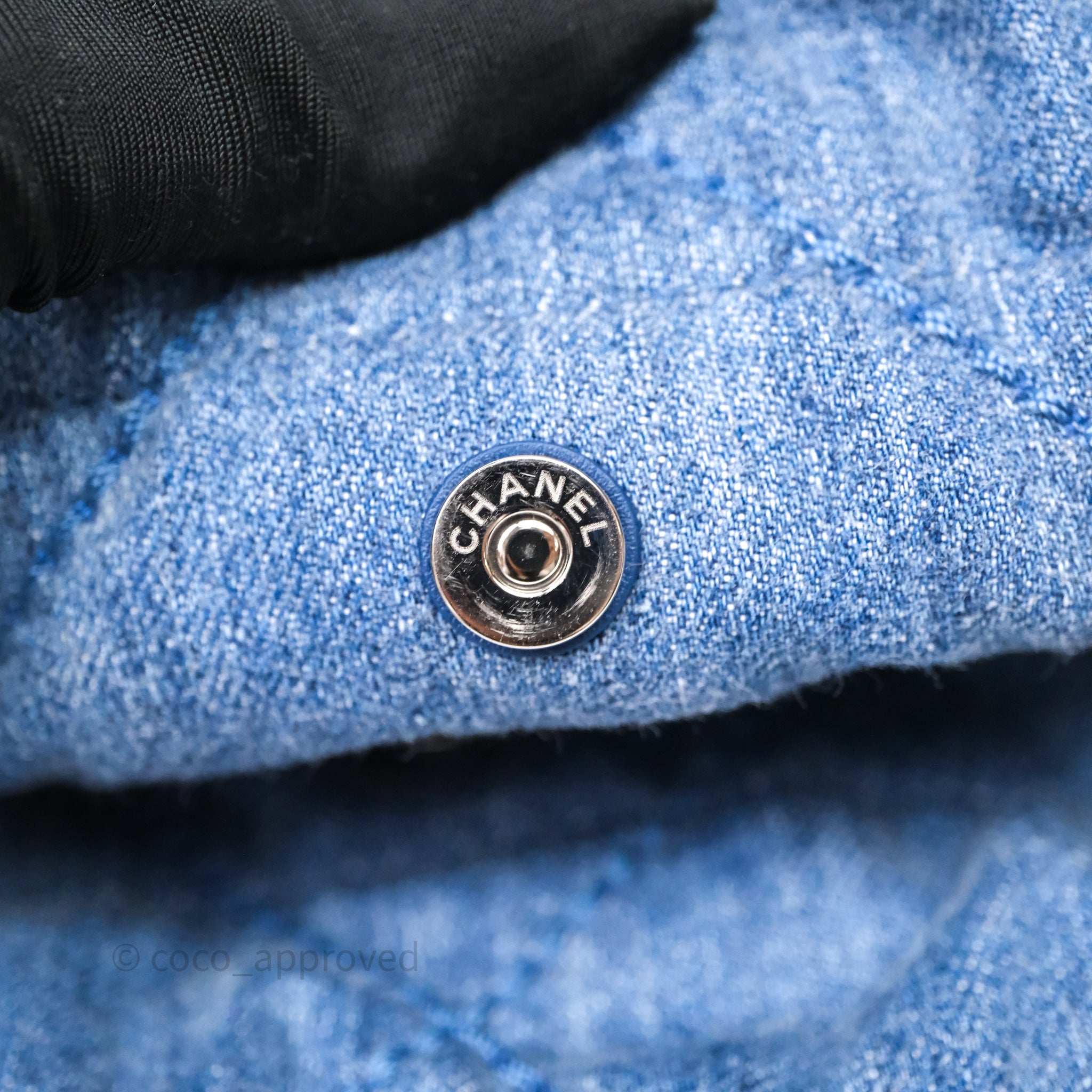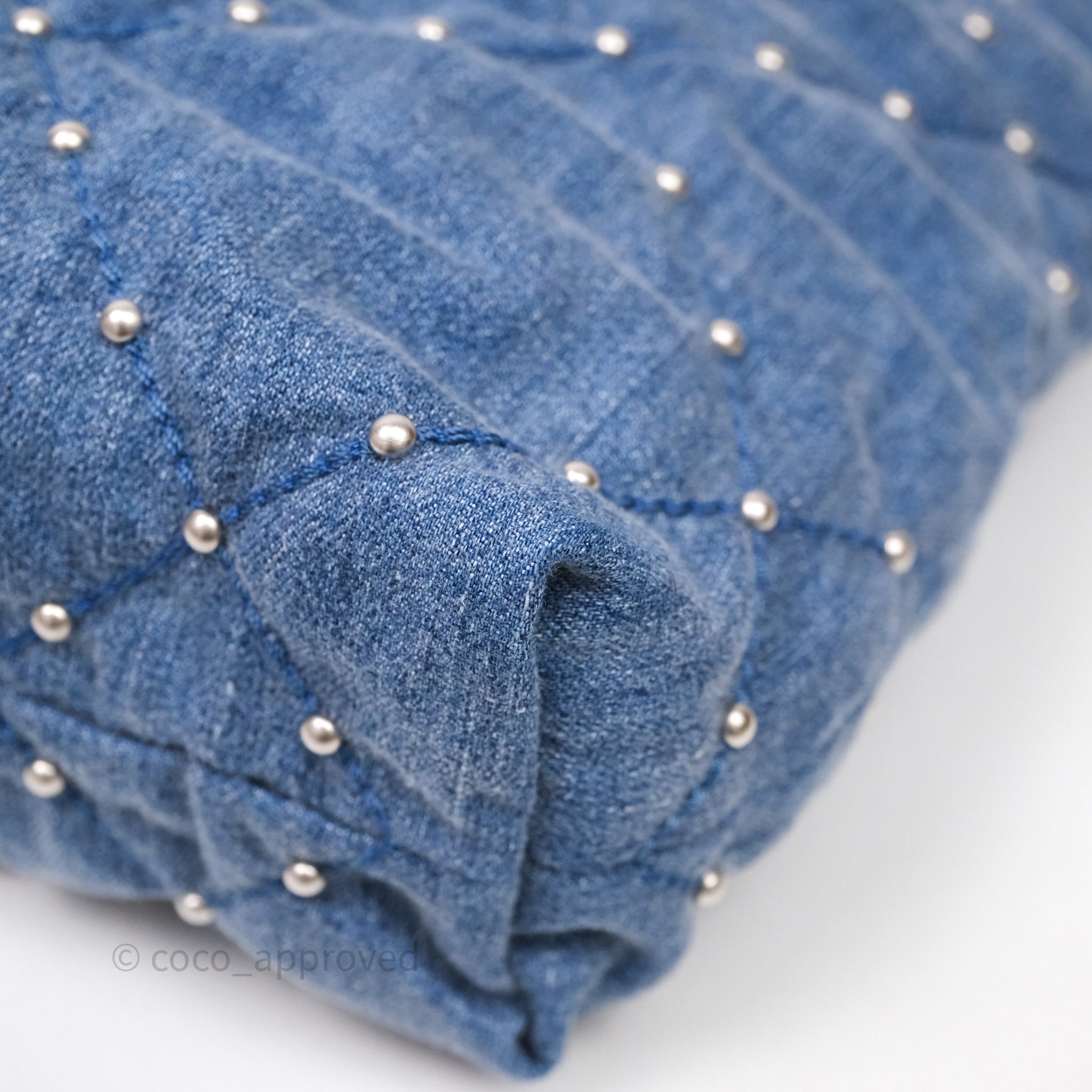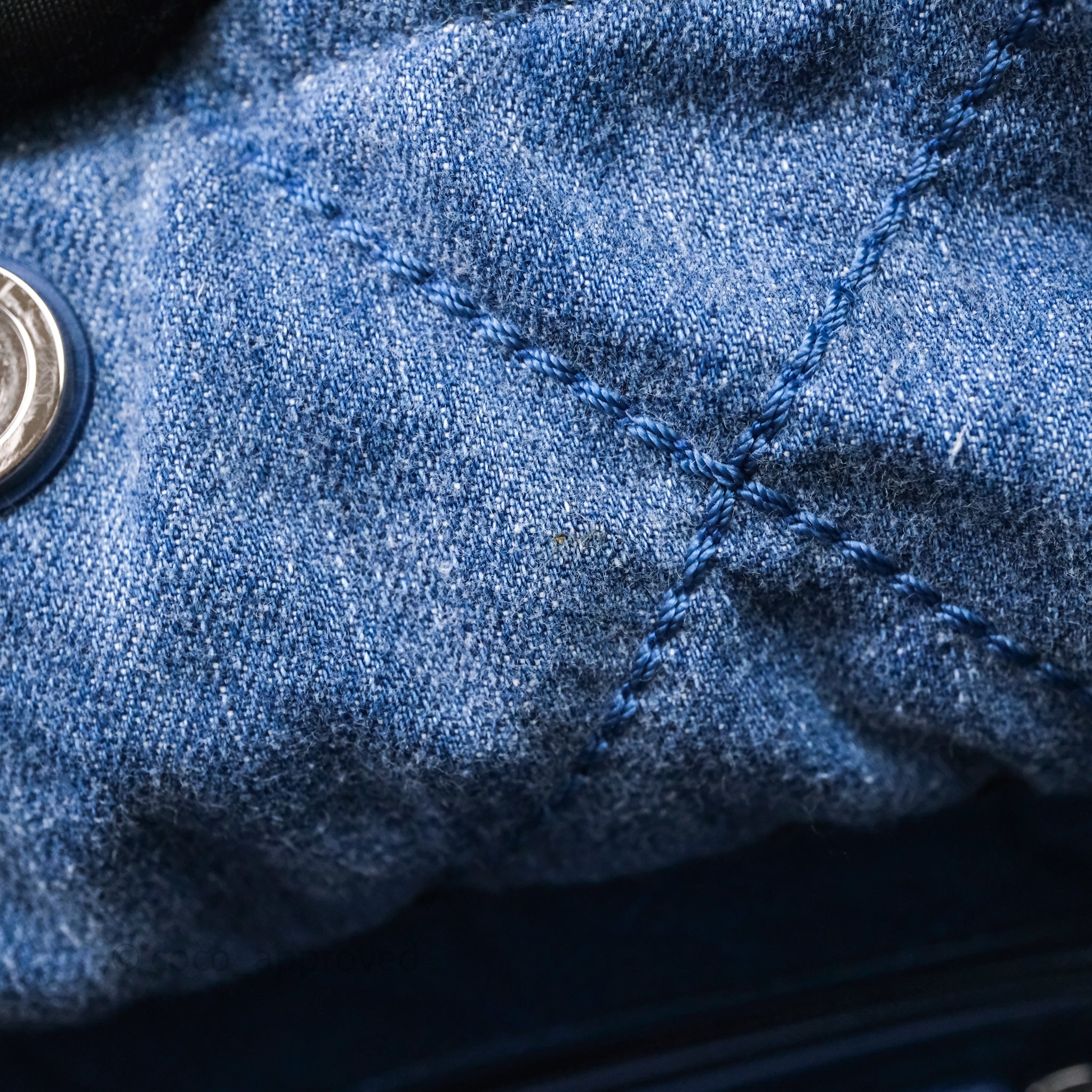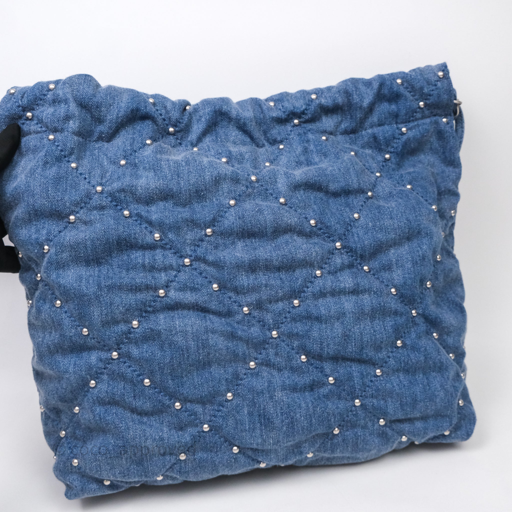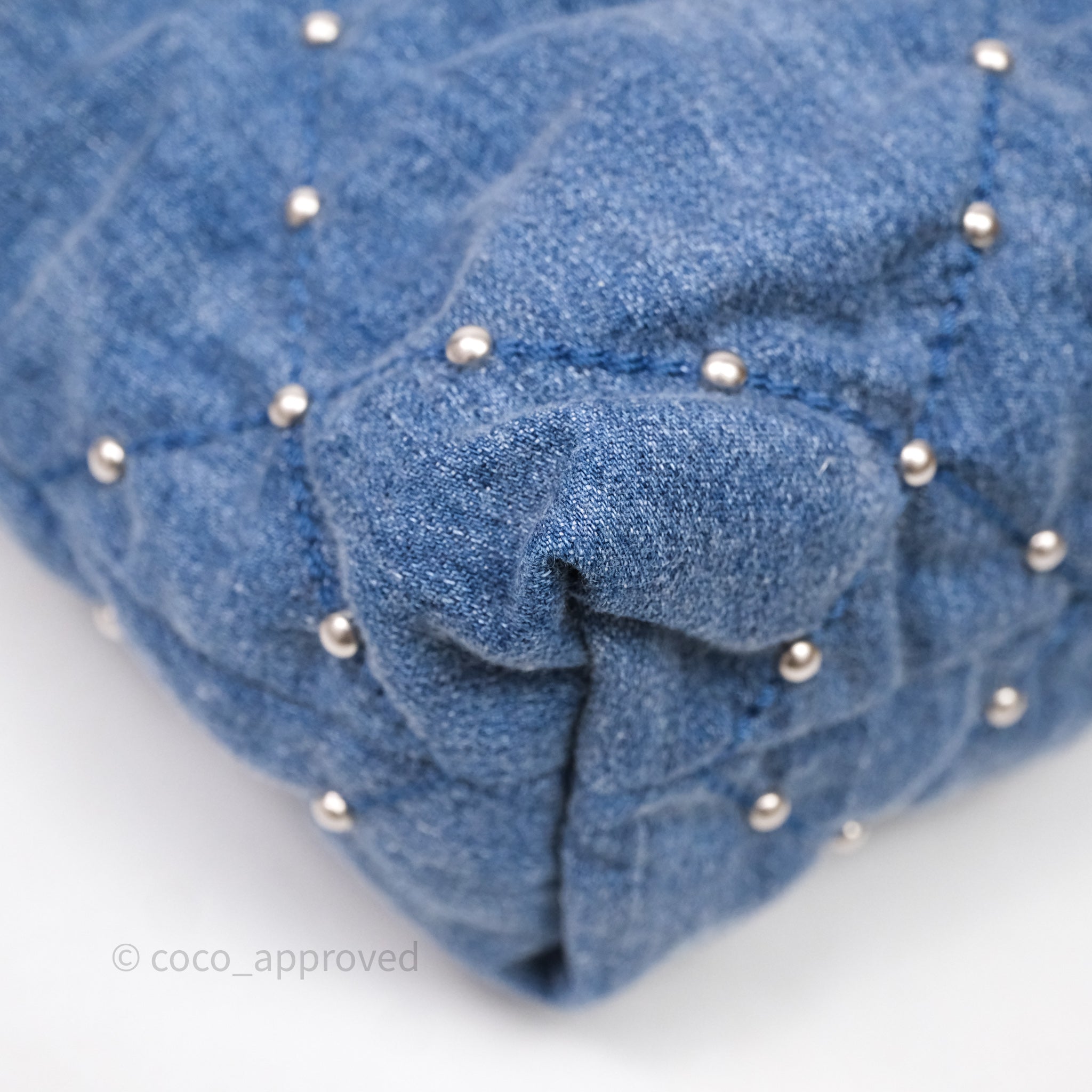 Chanel 22 Small Pearl Studded Denim Silver Hardware