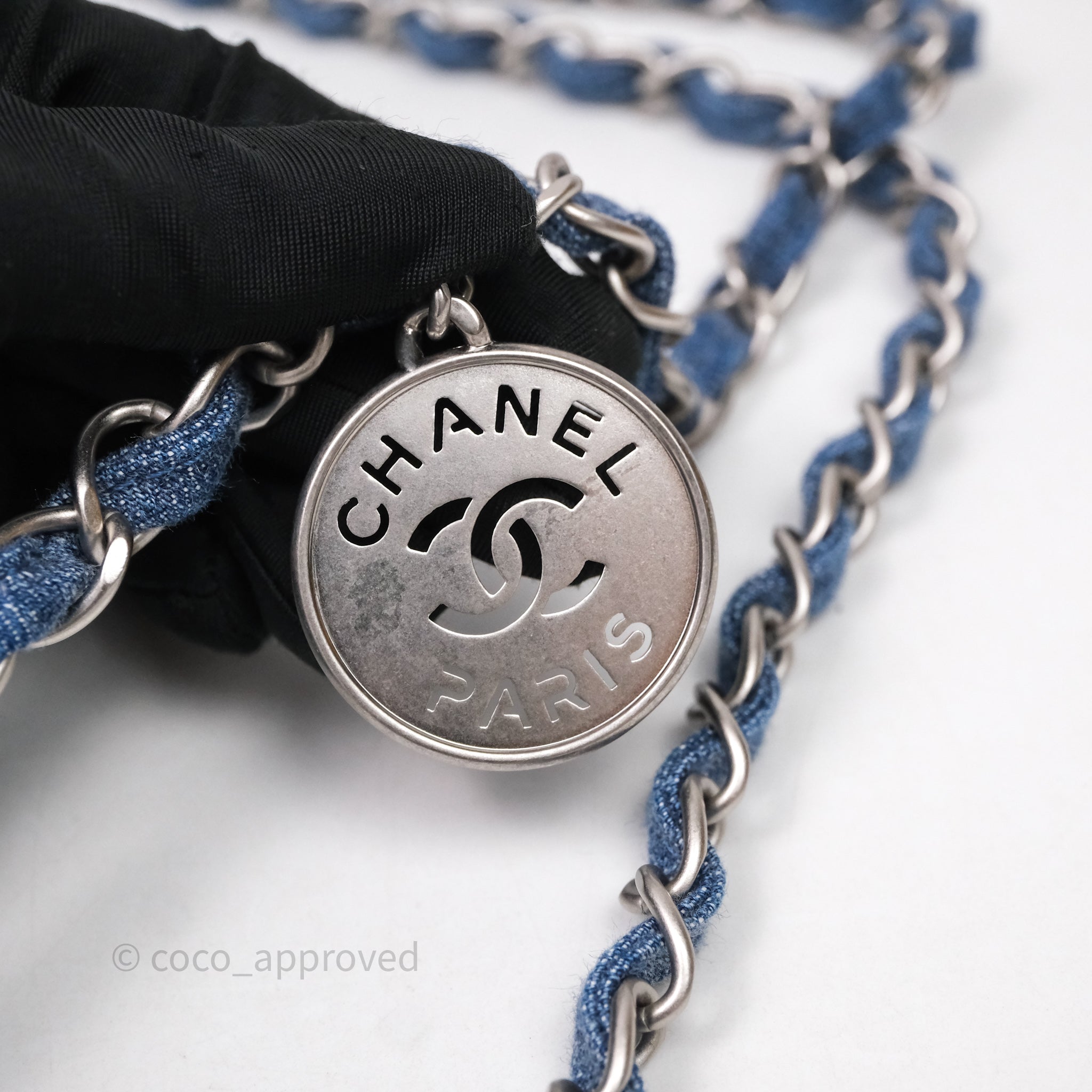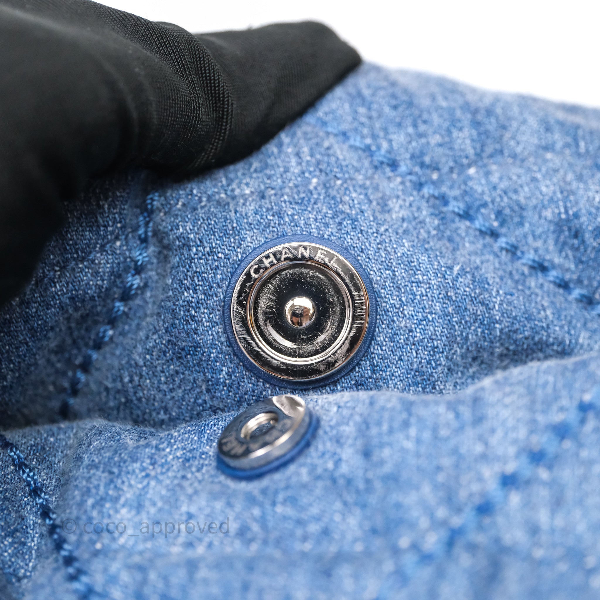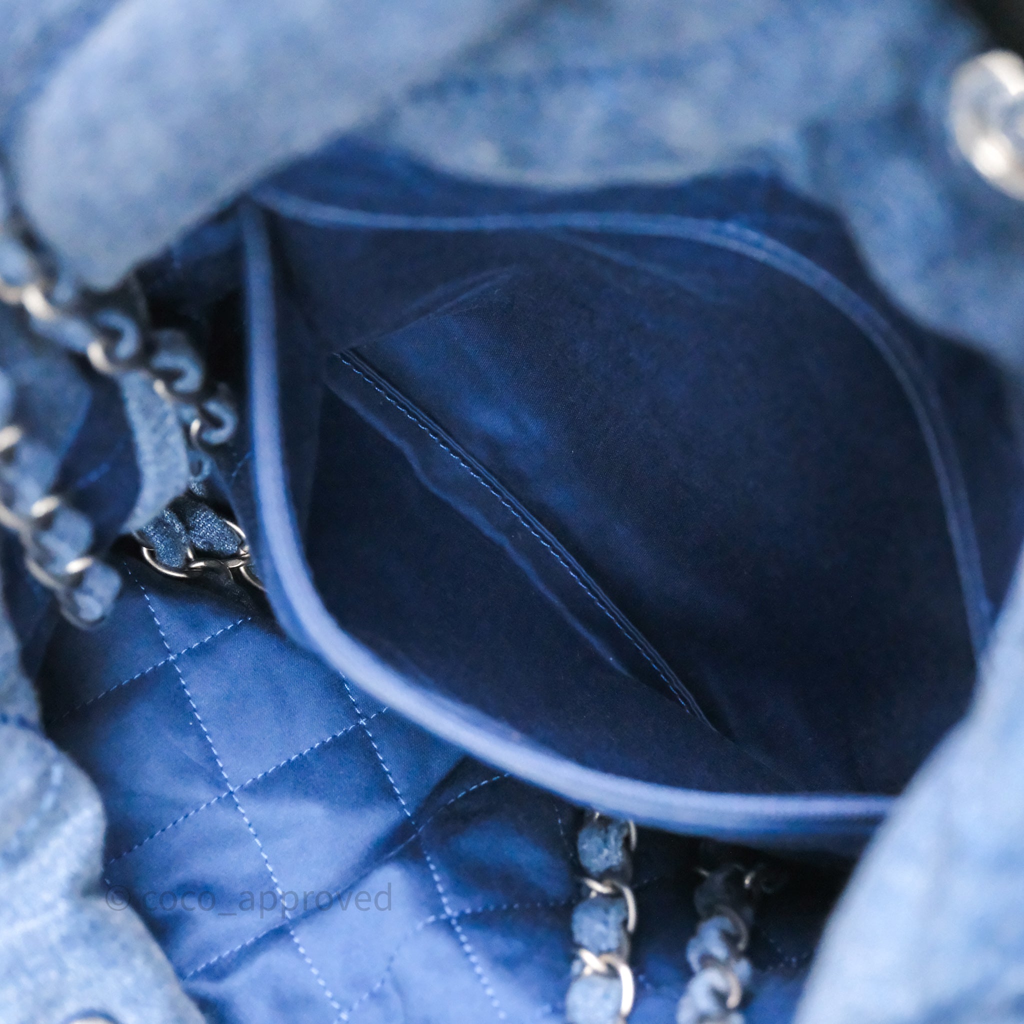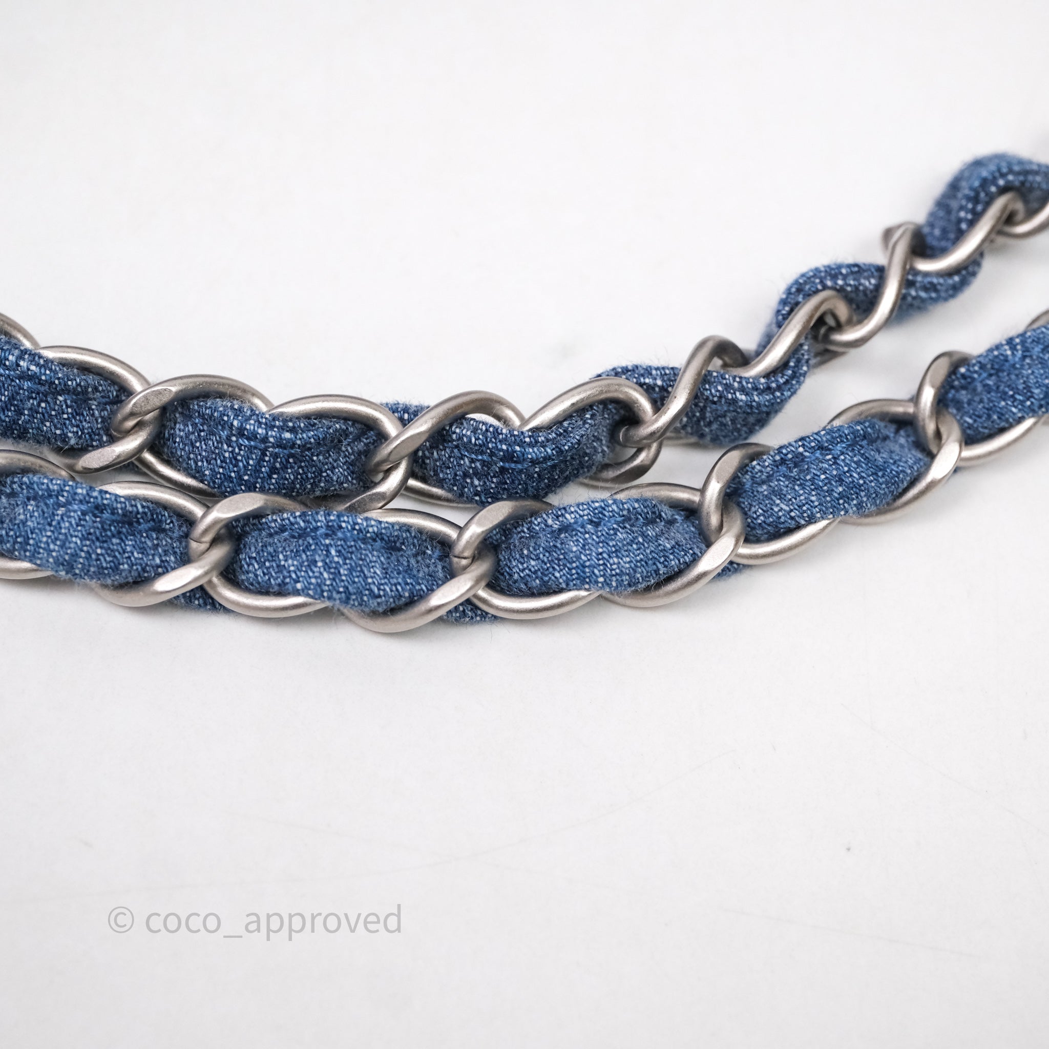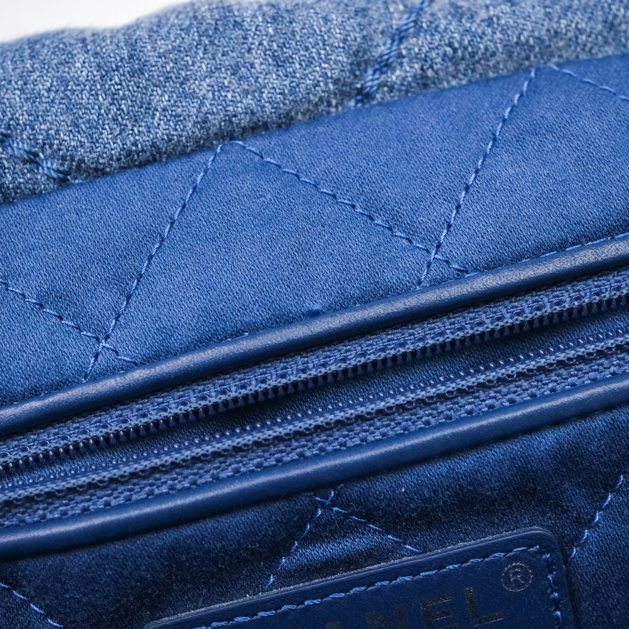 Chanel 22 Small Pearl Studded Denim Silver Hardware