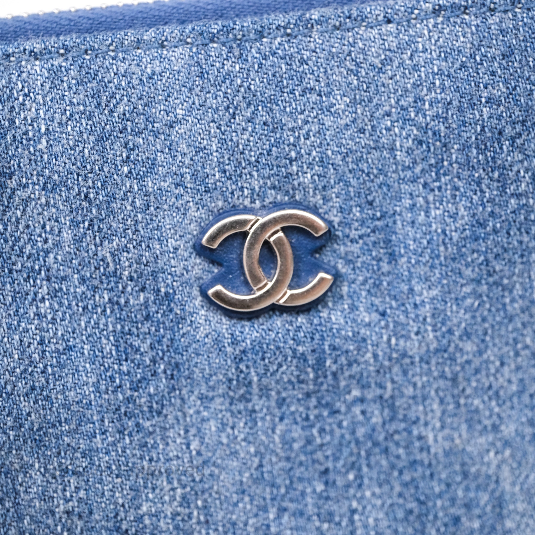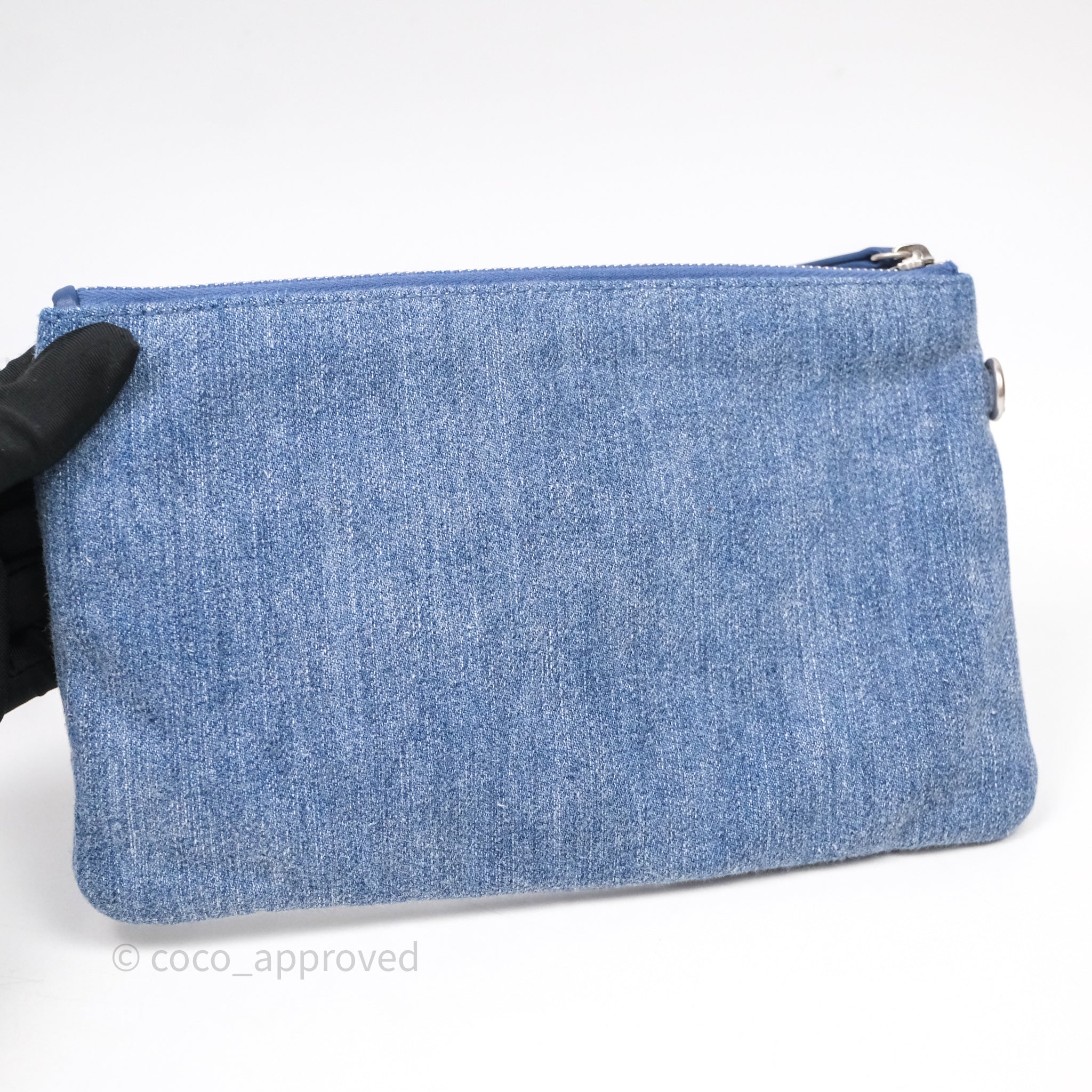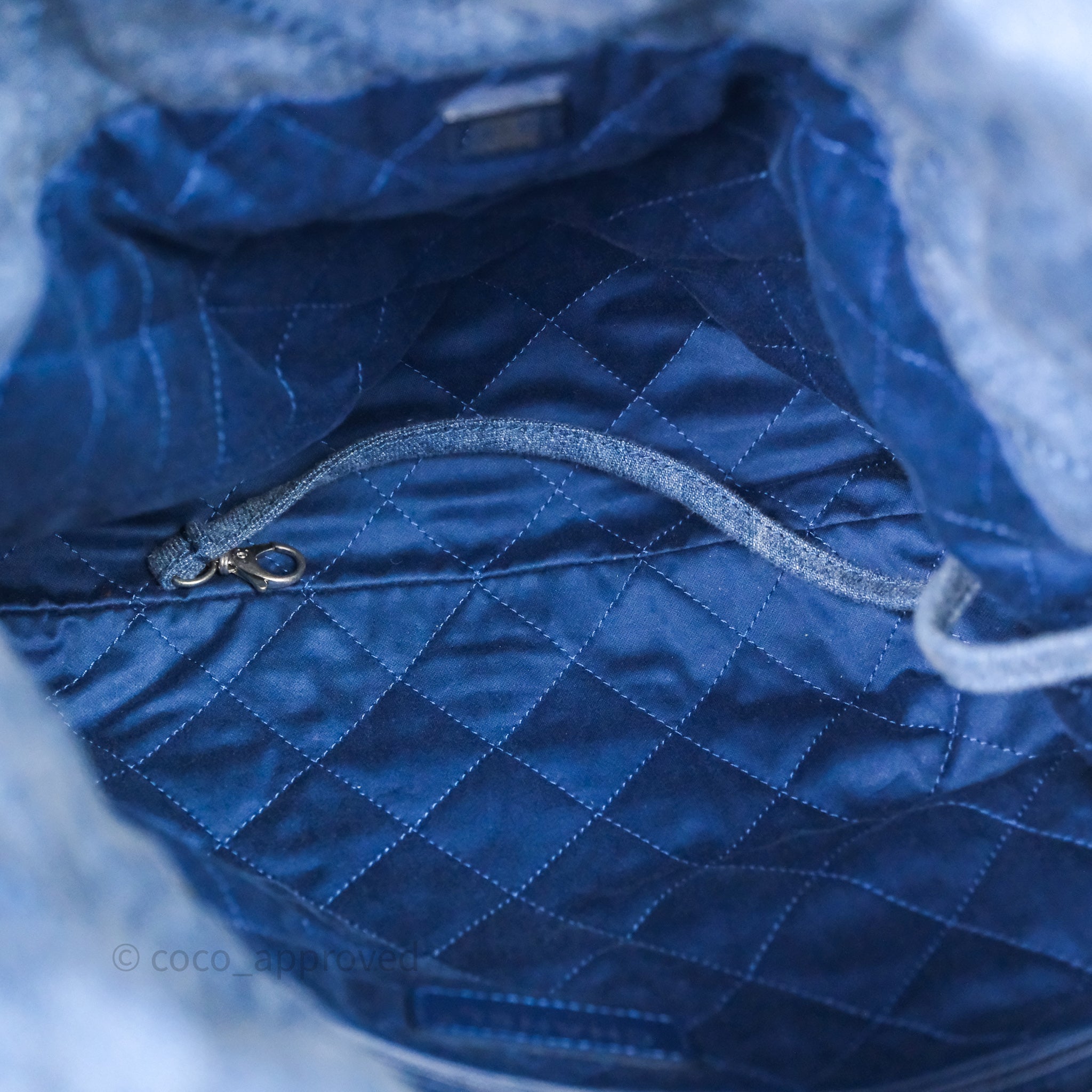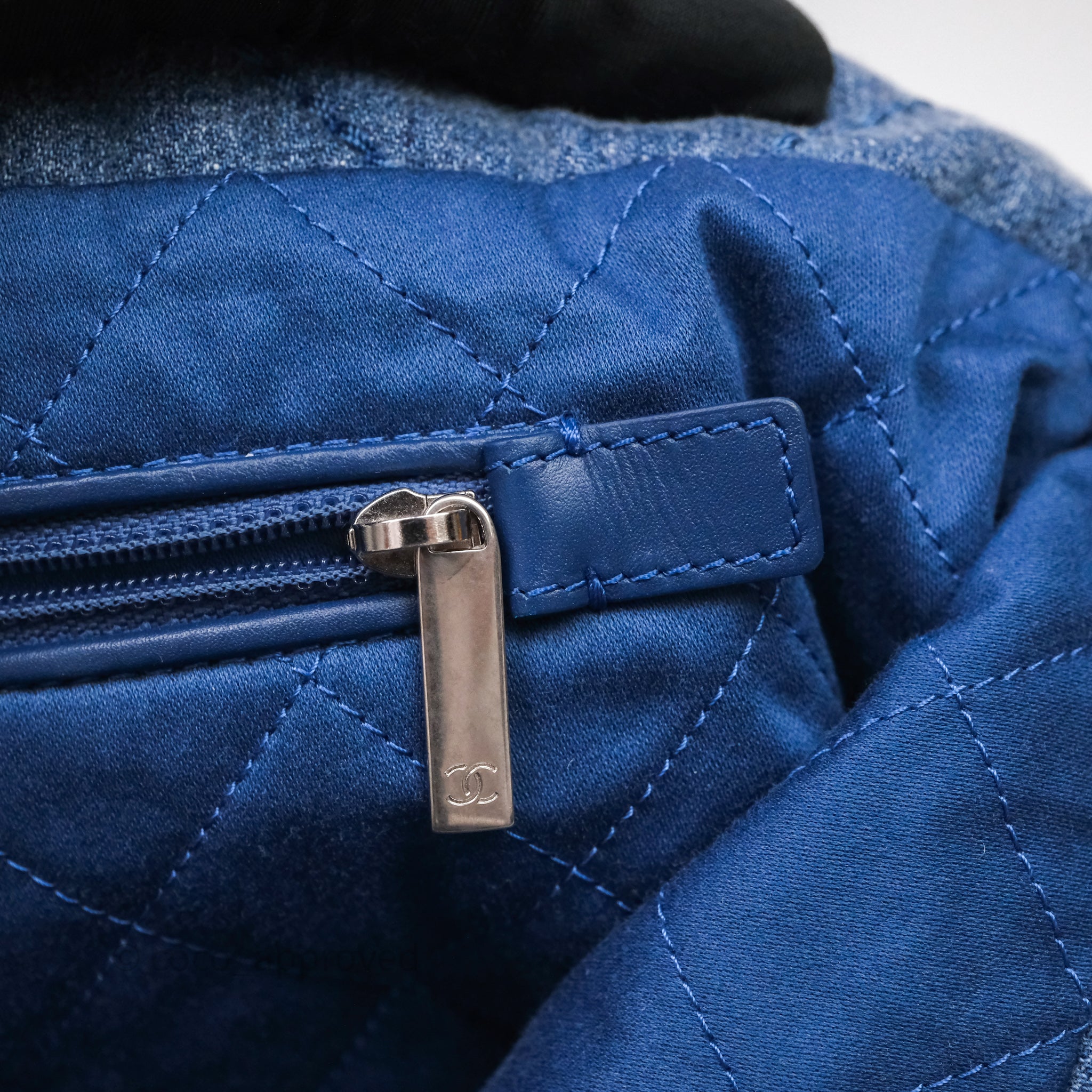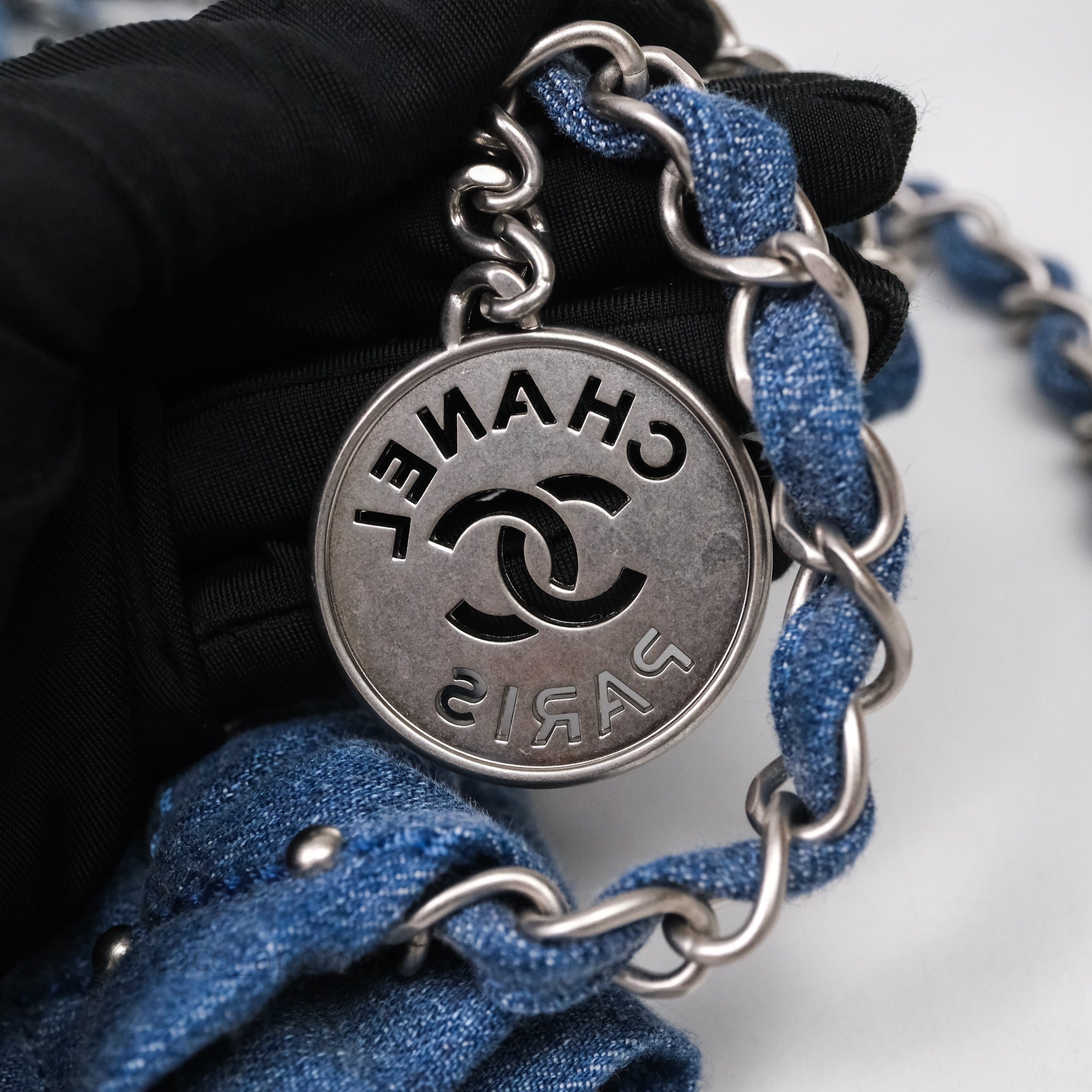 Chanel 22 Small Pearl Studded Denim Silver Hardware