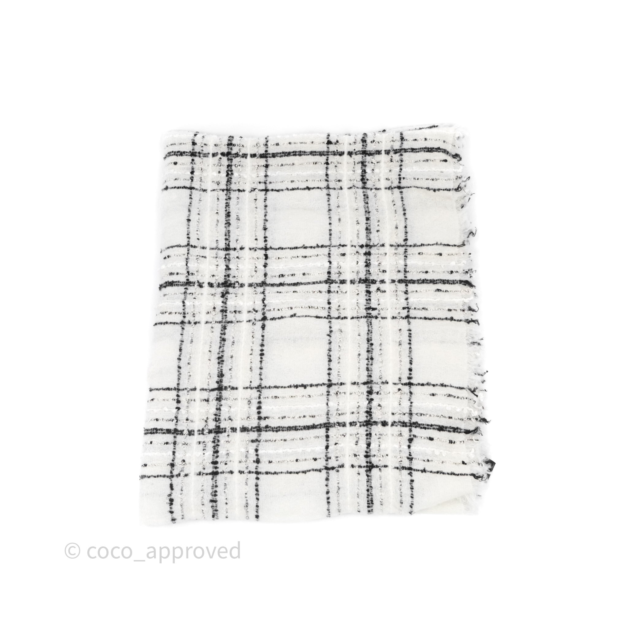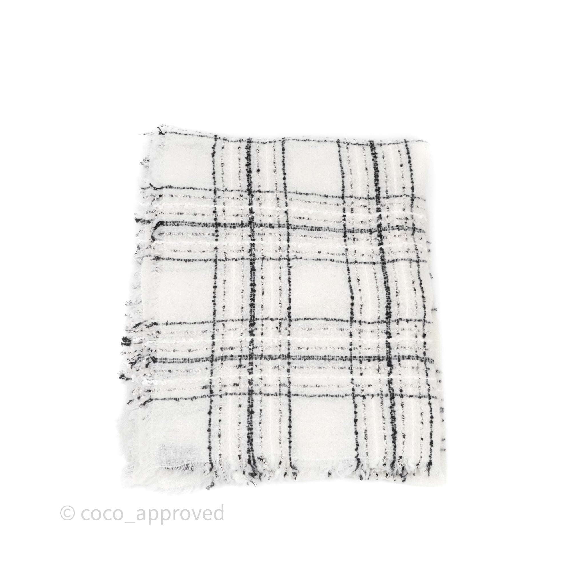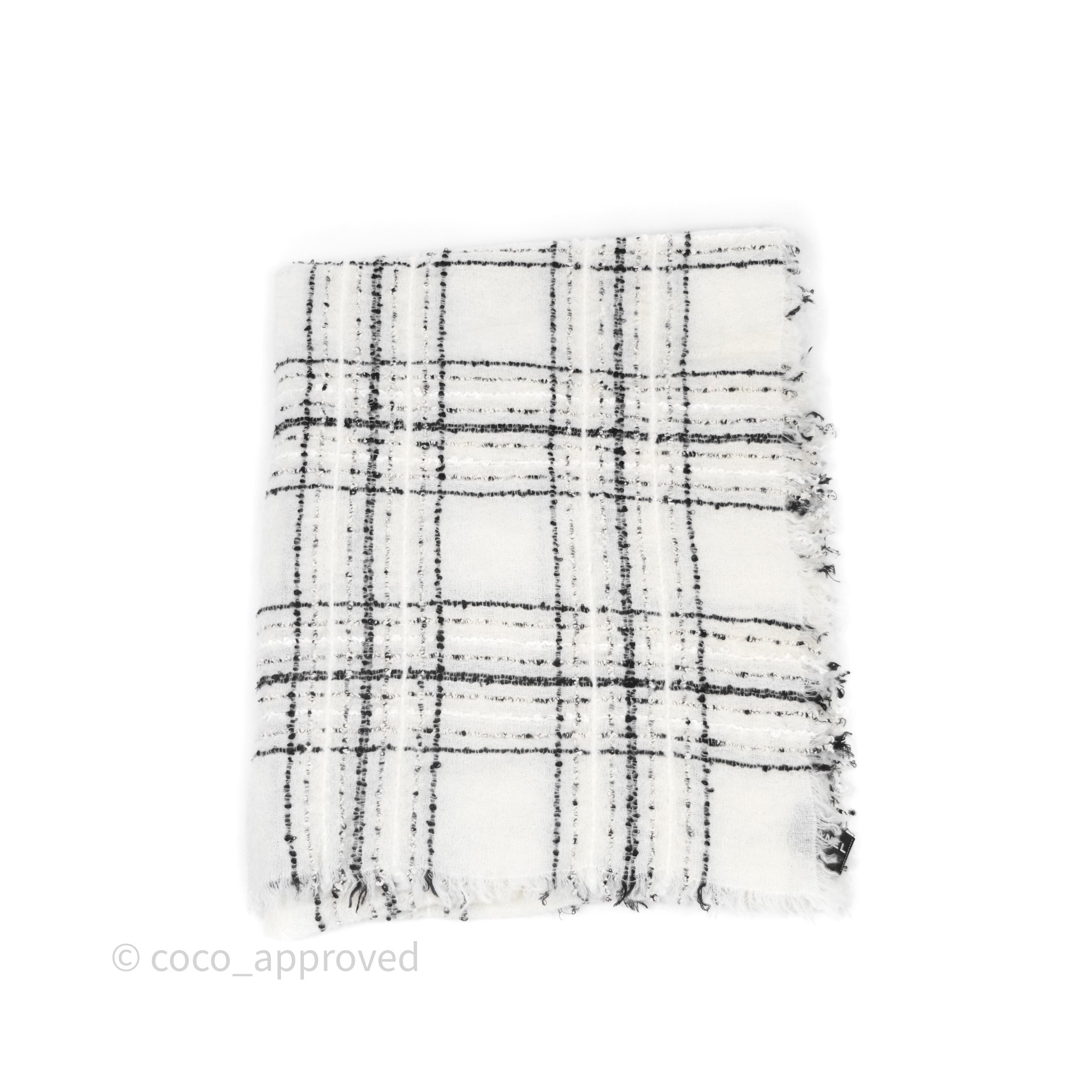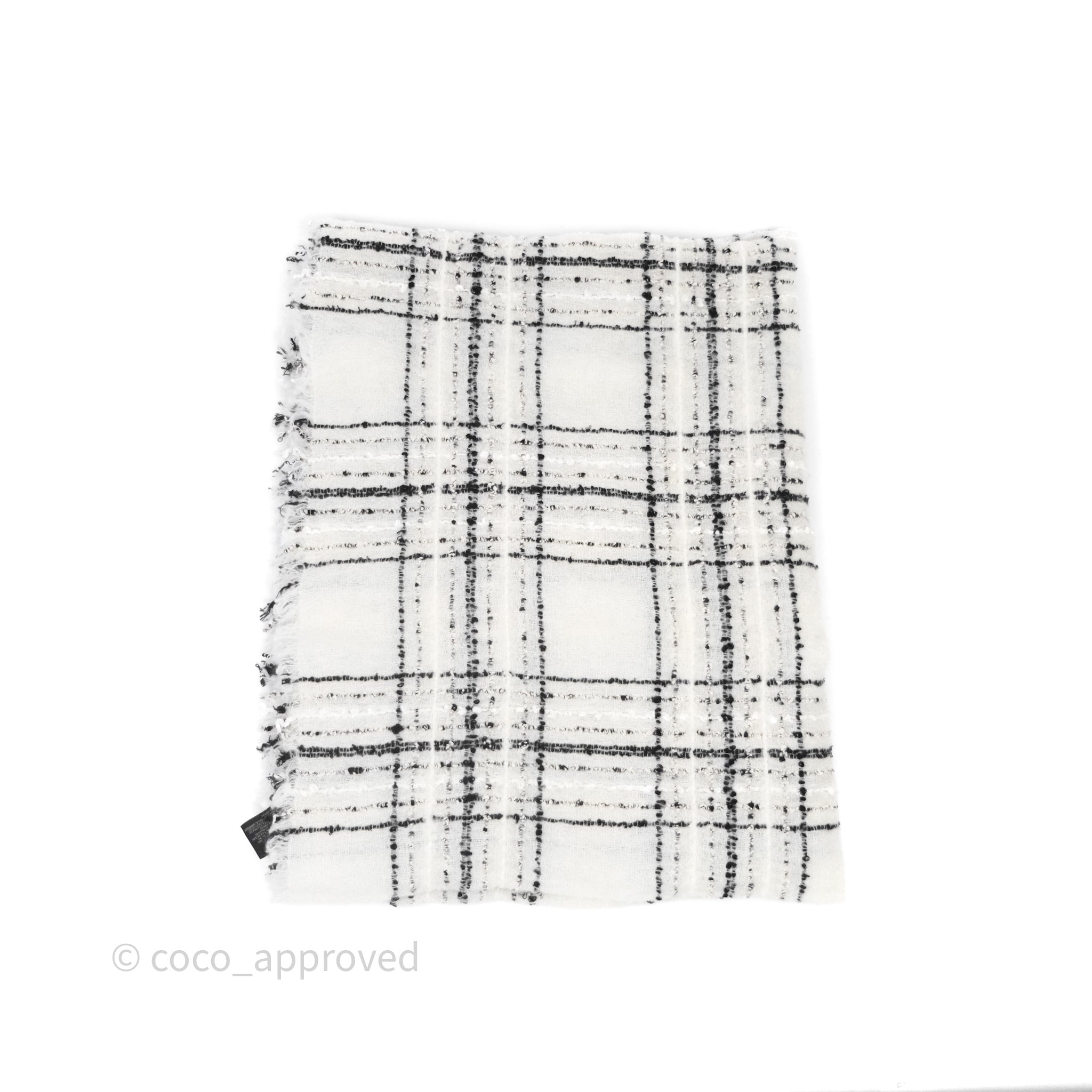 Chanel 23B Checked Stole Wool/Cotton White/Black