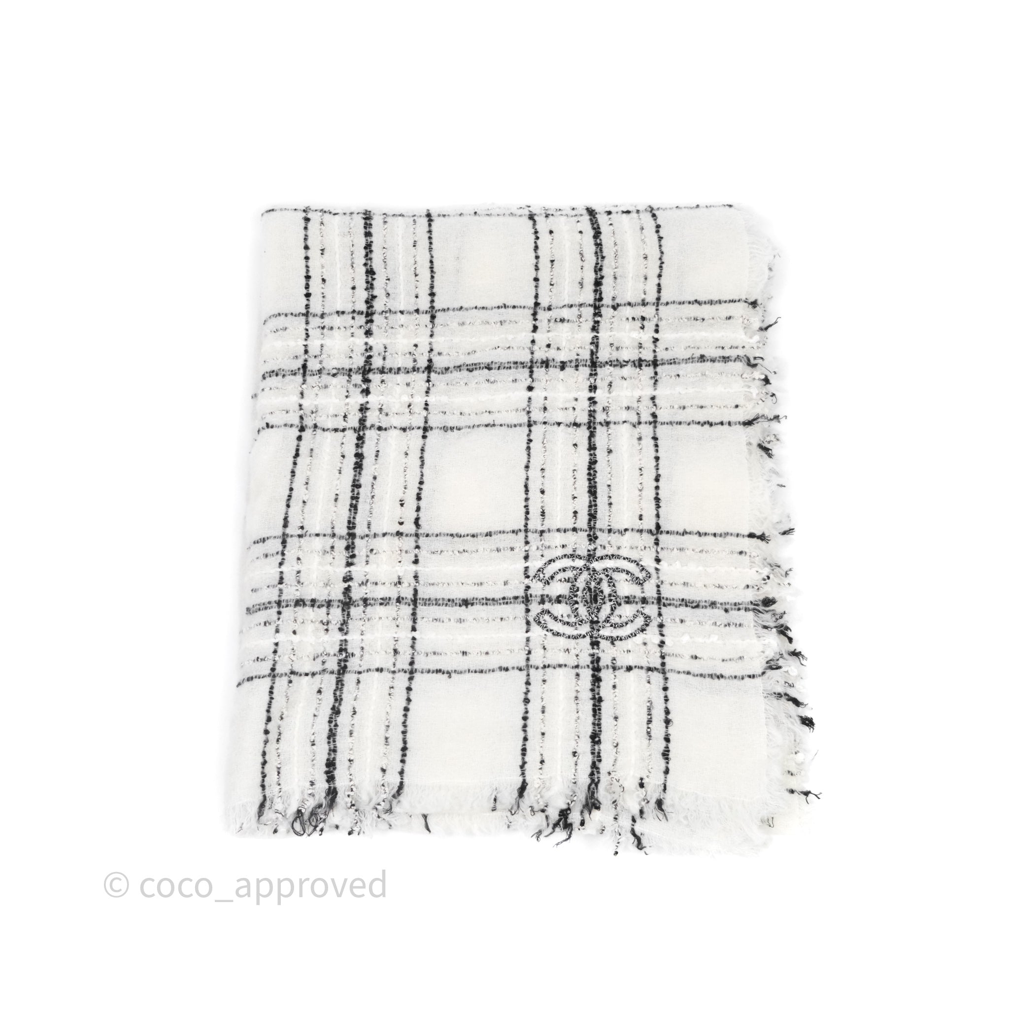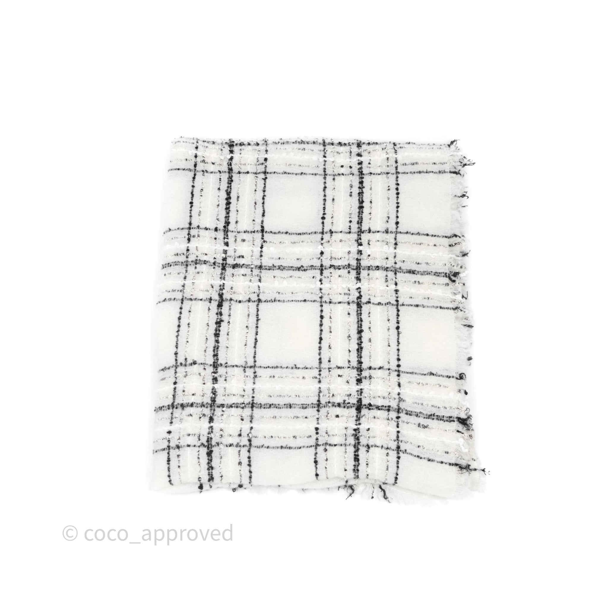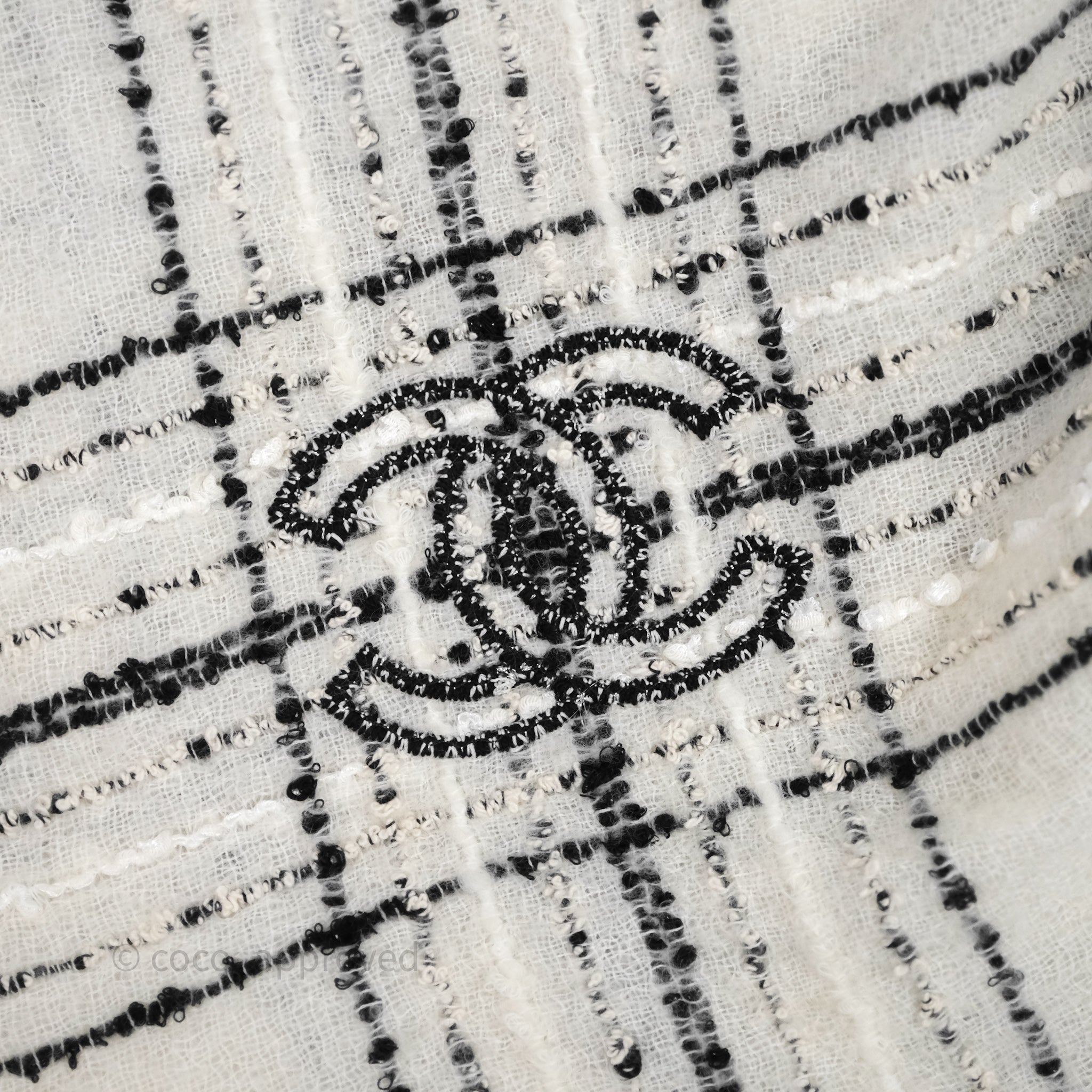 Chanel 23B Checked Stole Wool/Cotton White/Black