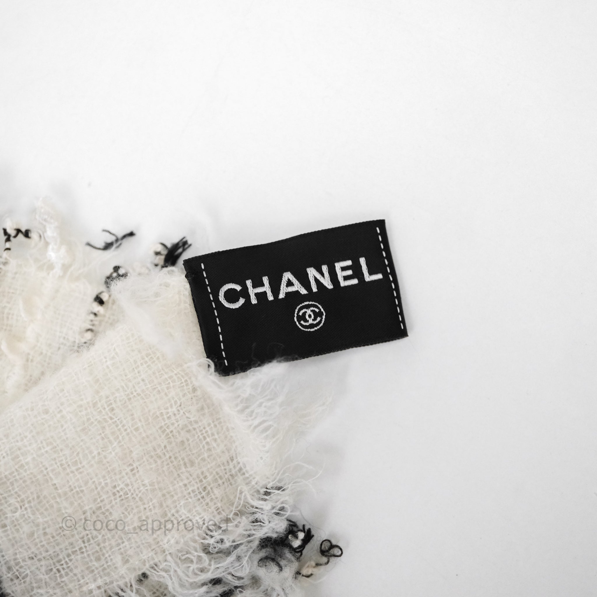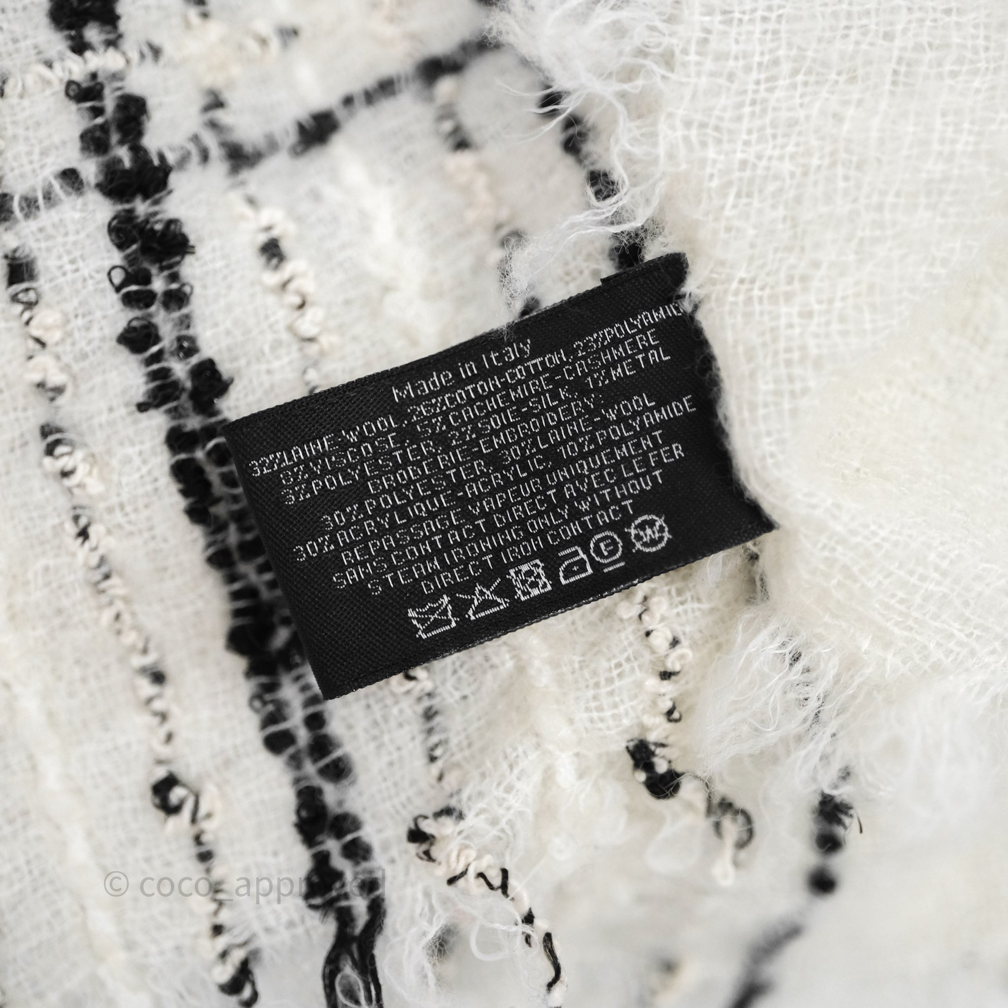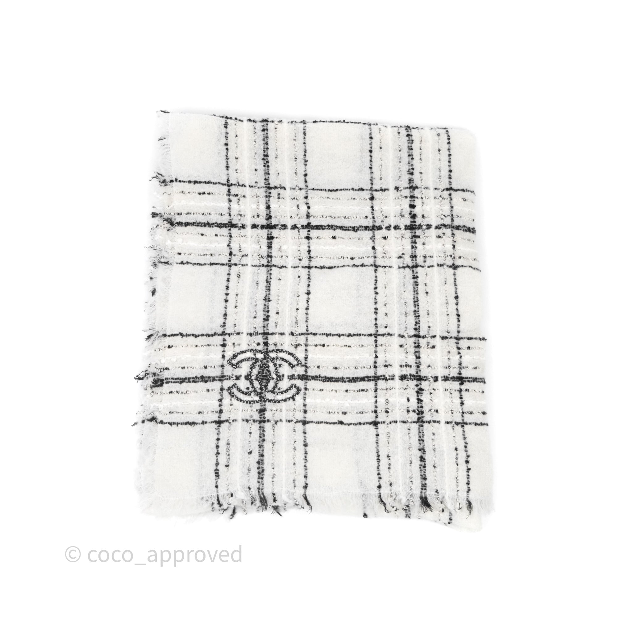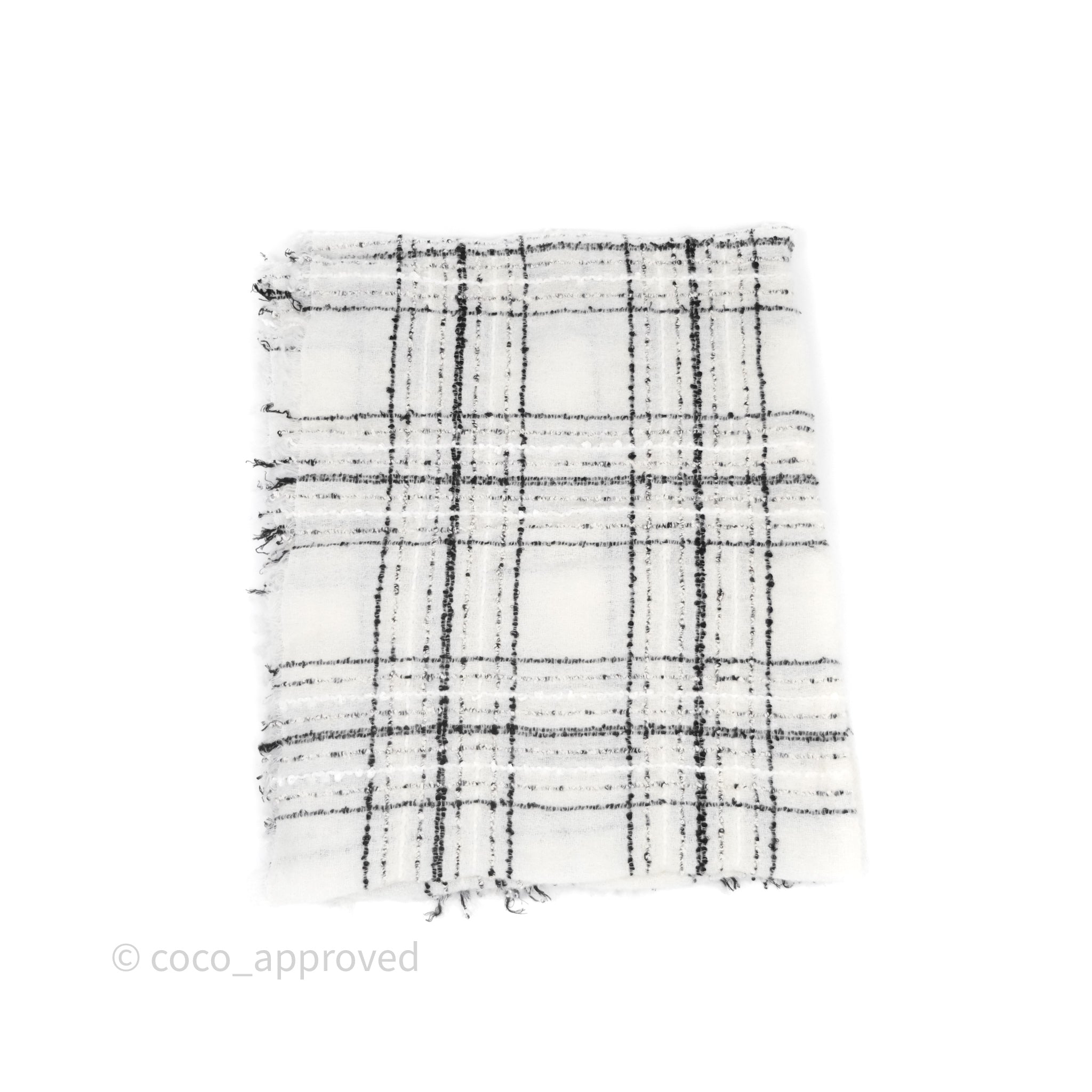 Chanel 23B Checked Stole Wool/Cotton White/Black