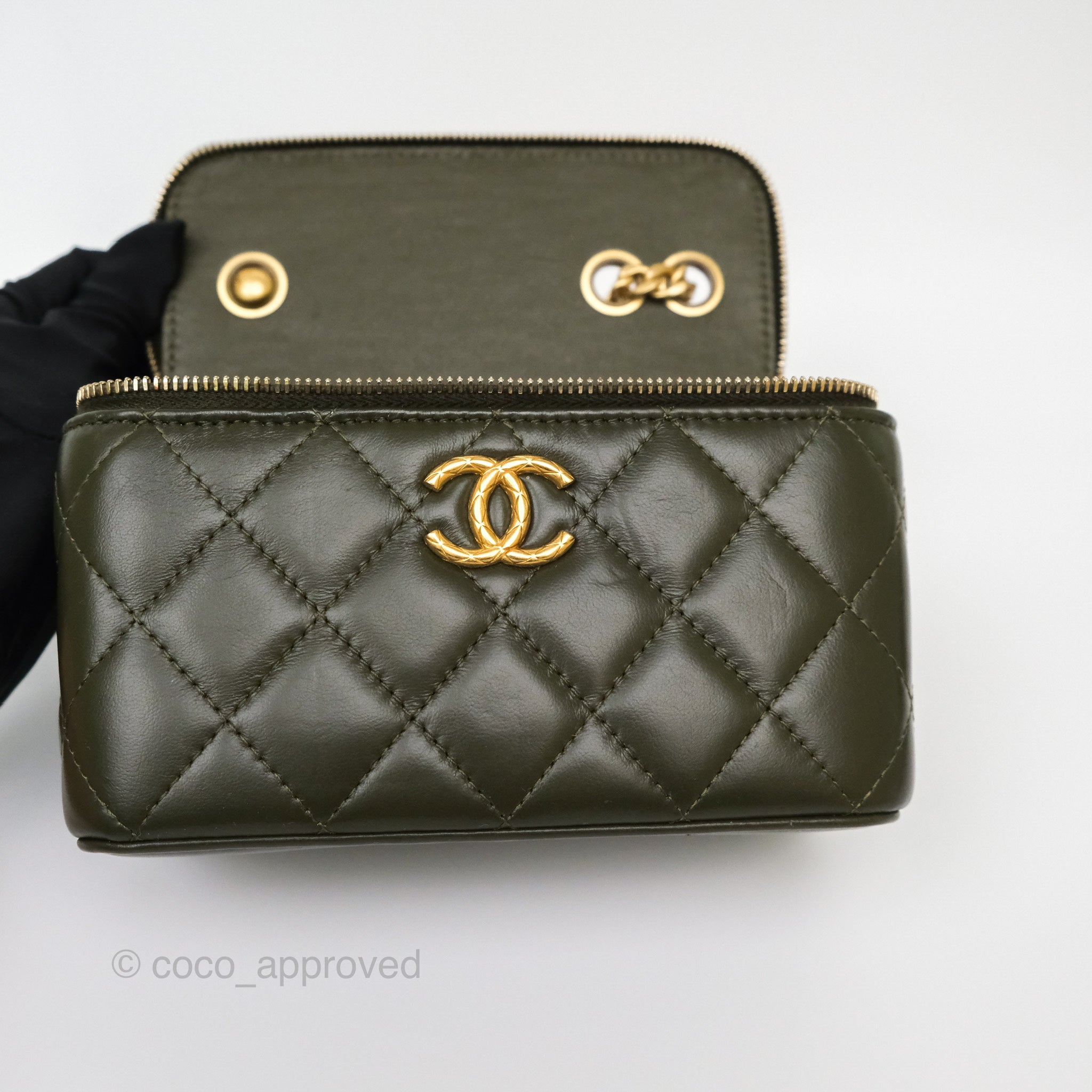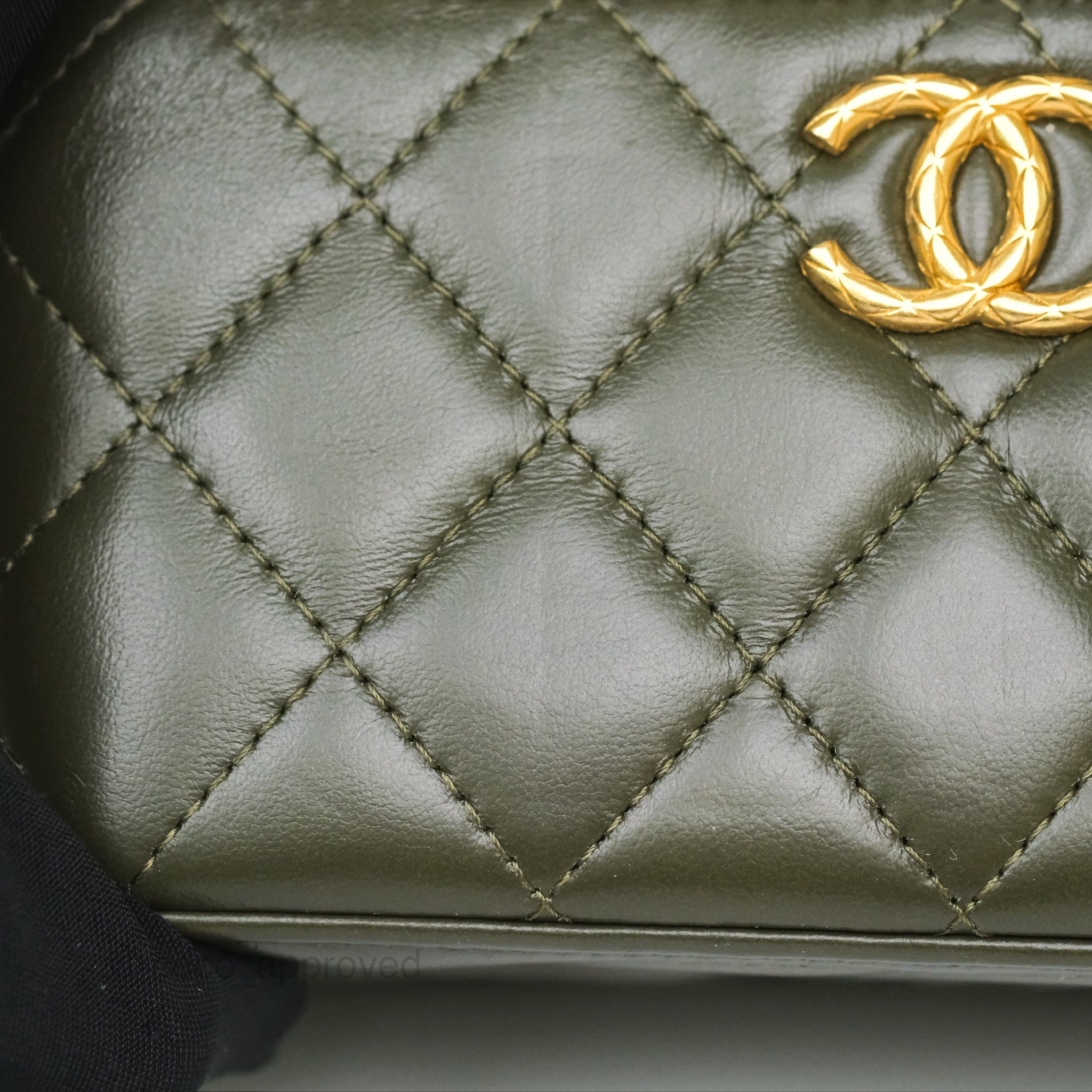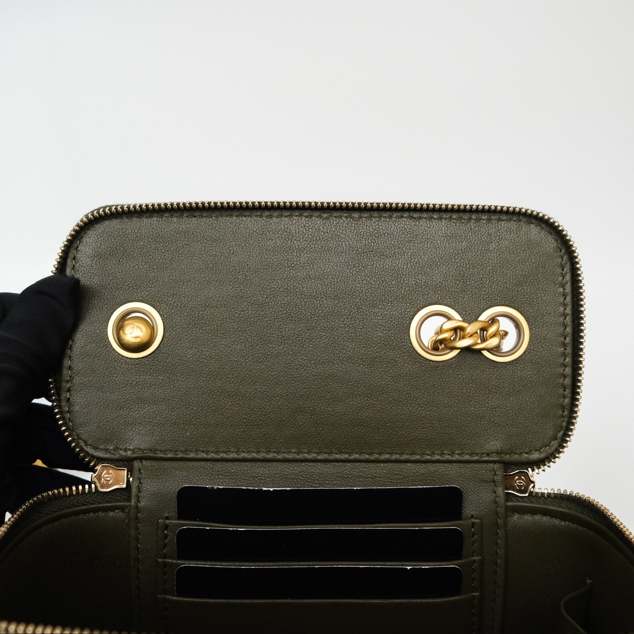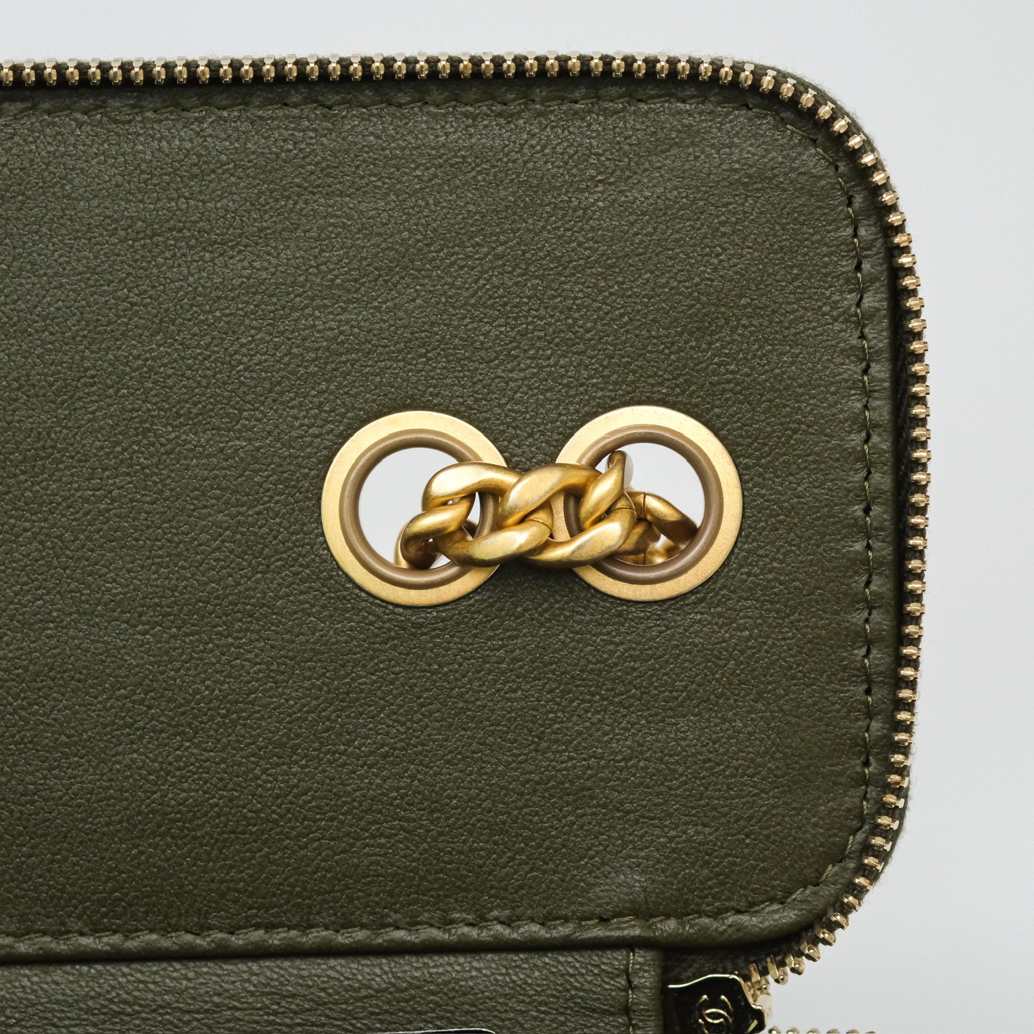 Chanel All Slide Vanity with Adjustable Chain Dark Olive Green Lambskin Aged Gold Hardware