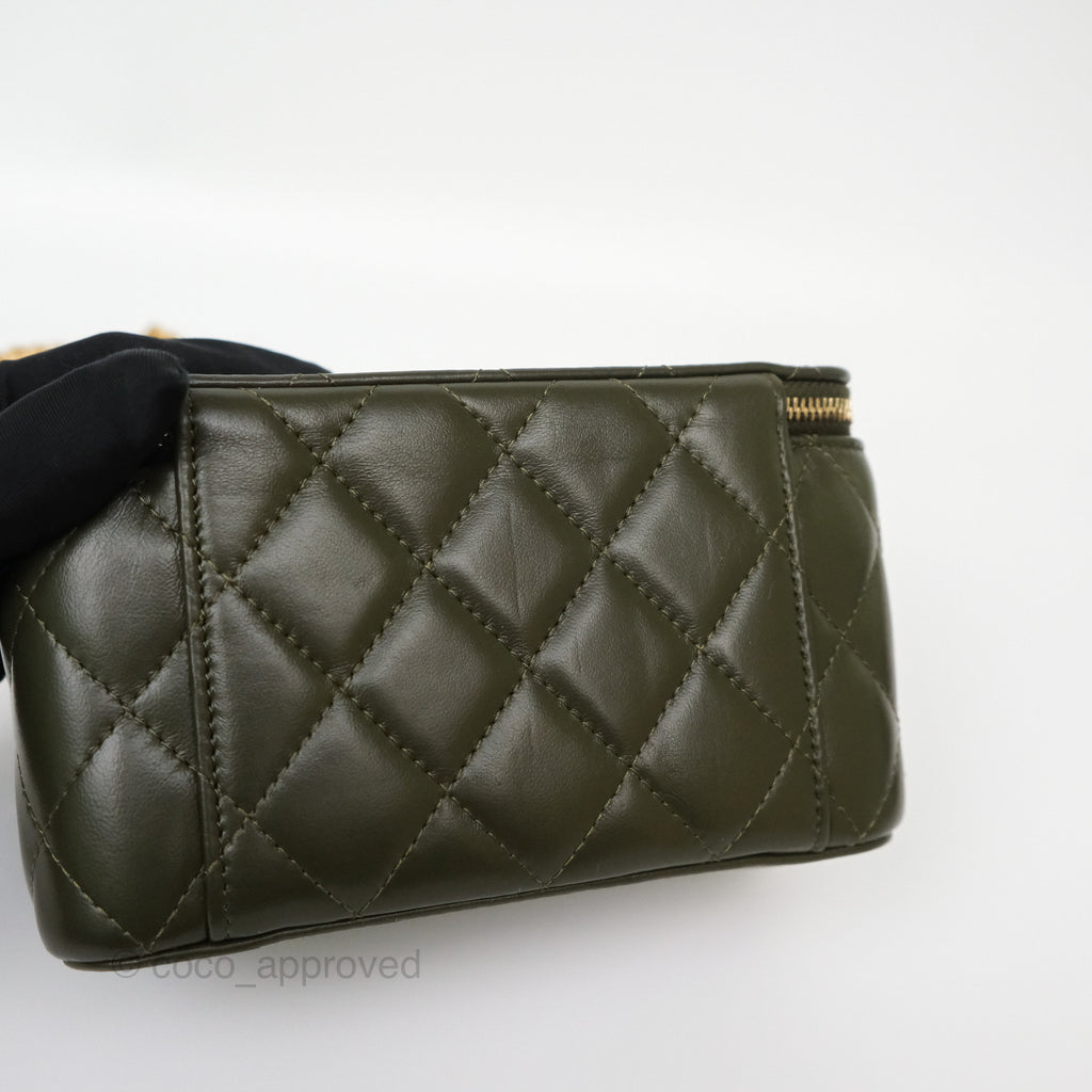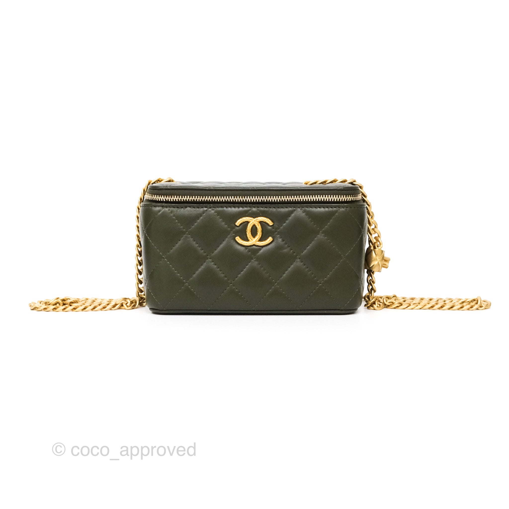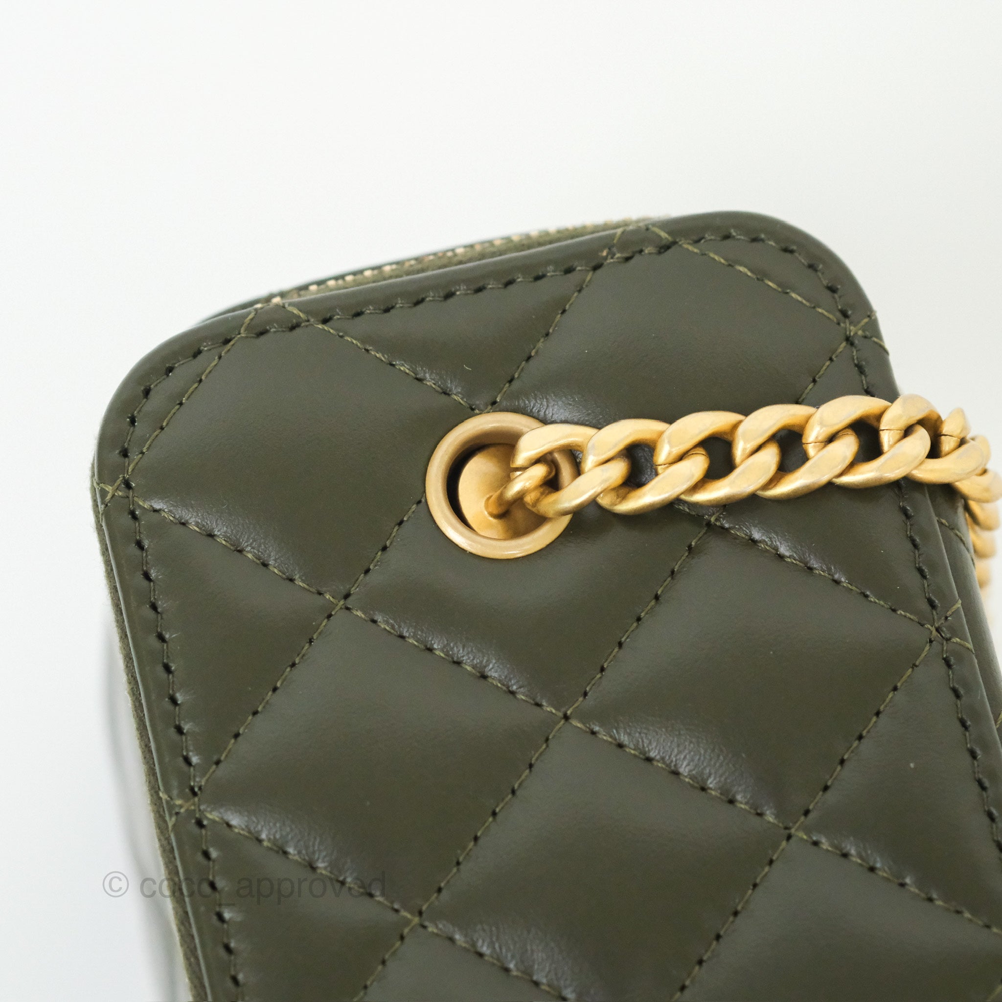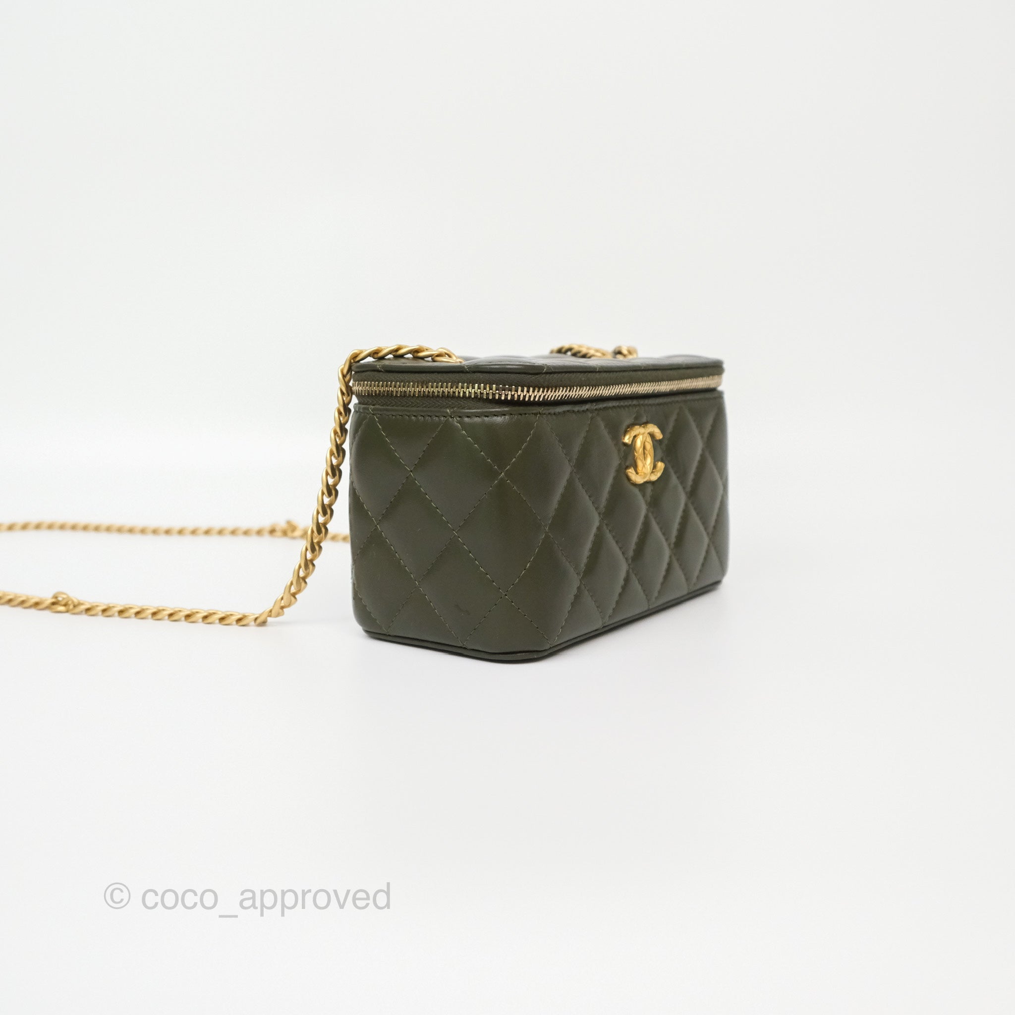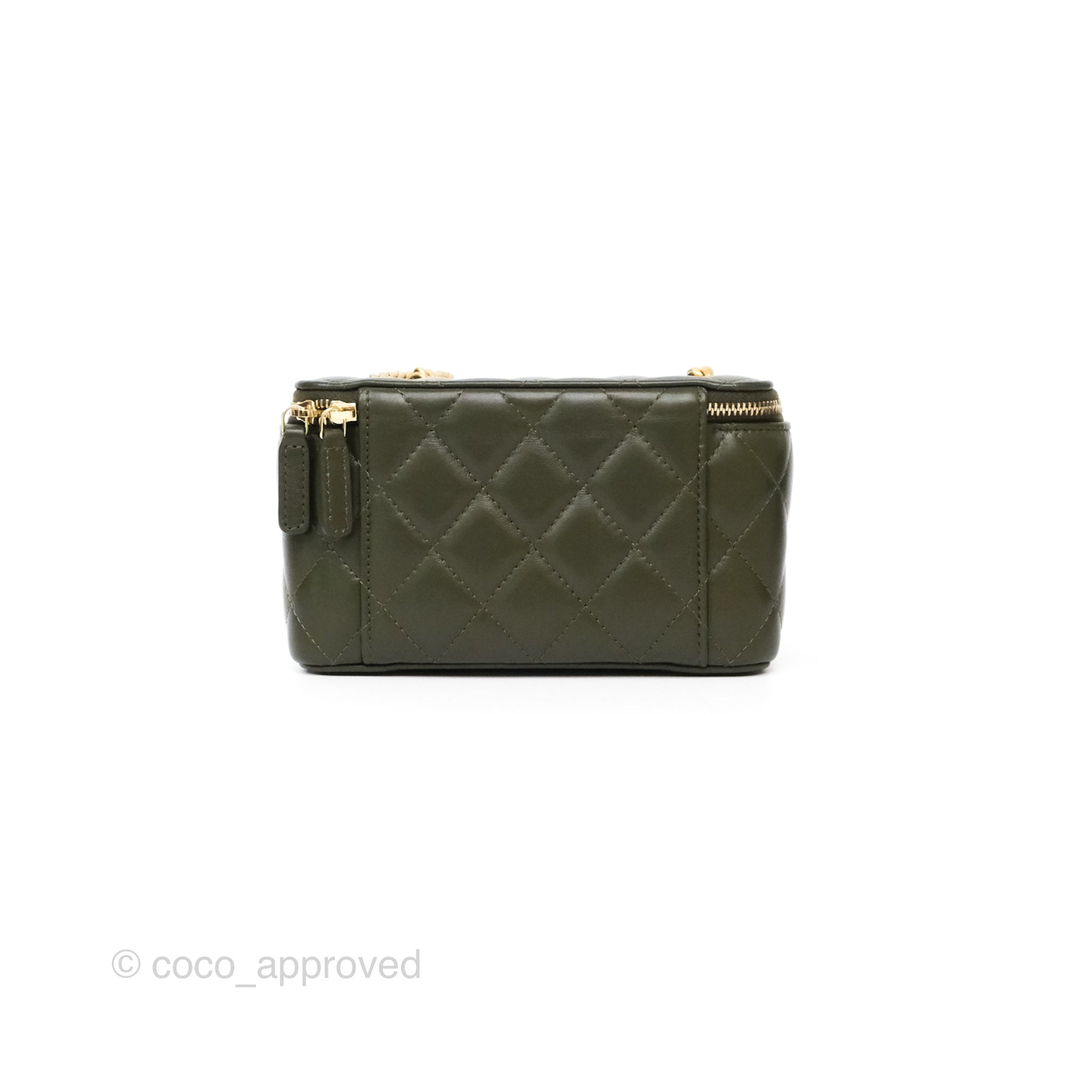 Chanel All Slide Vanity with Adjustable Chain Dark Olive Green Lambskin Aged Gold Hardware