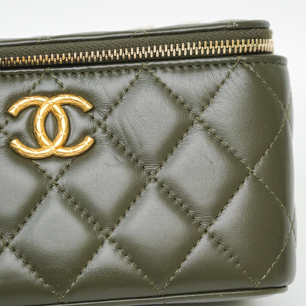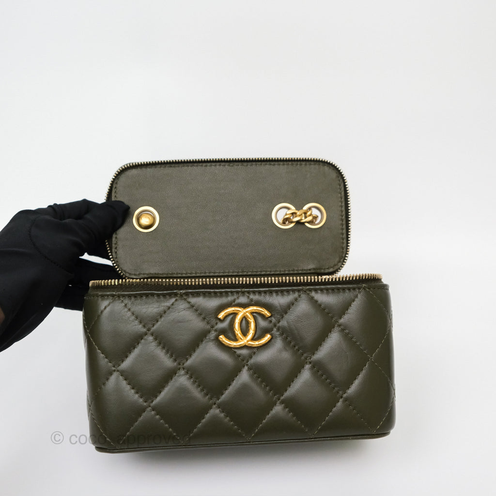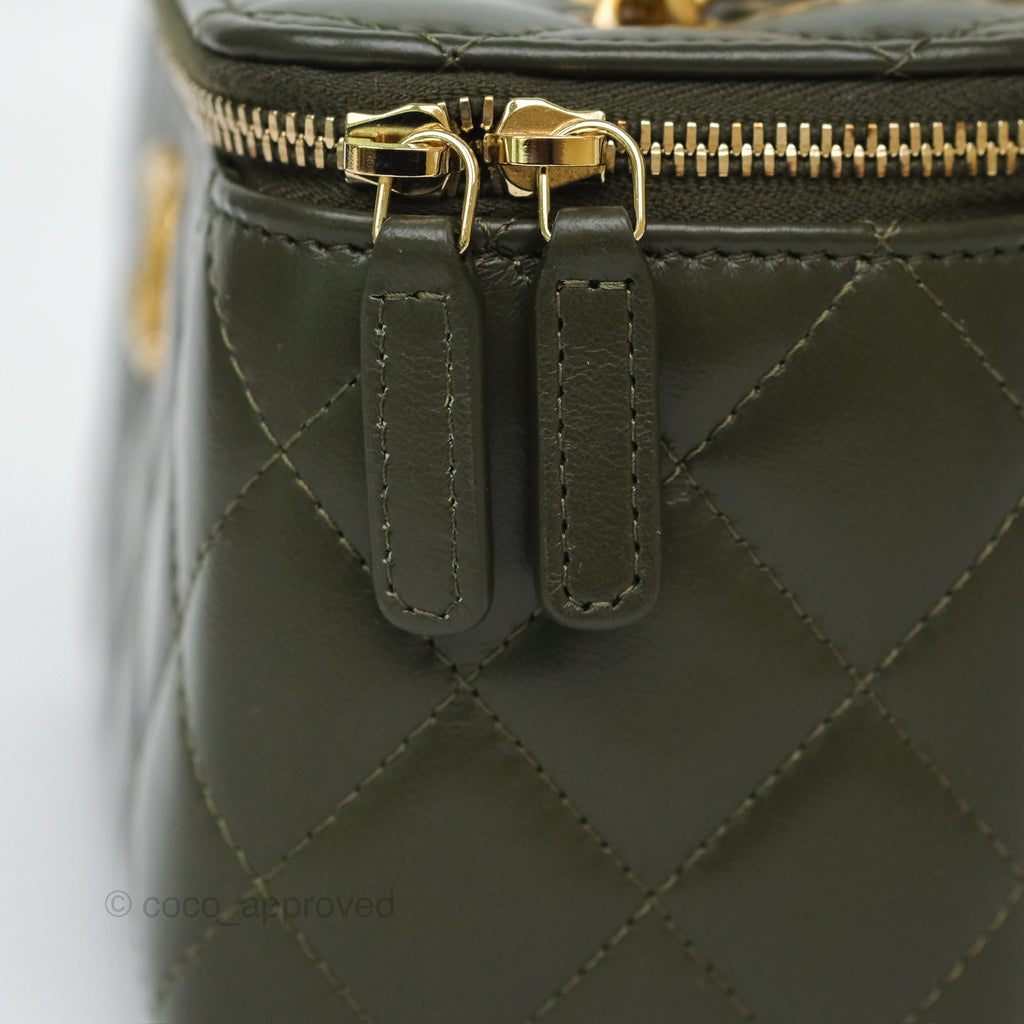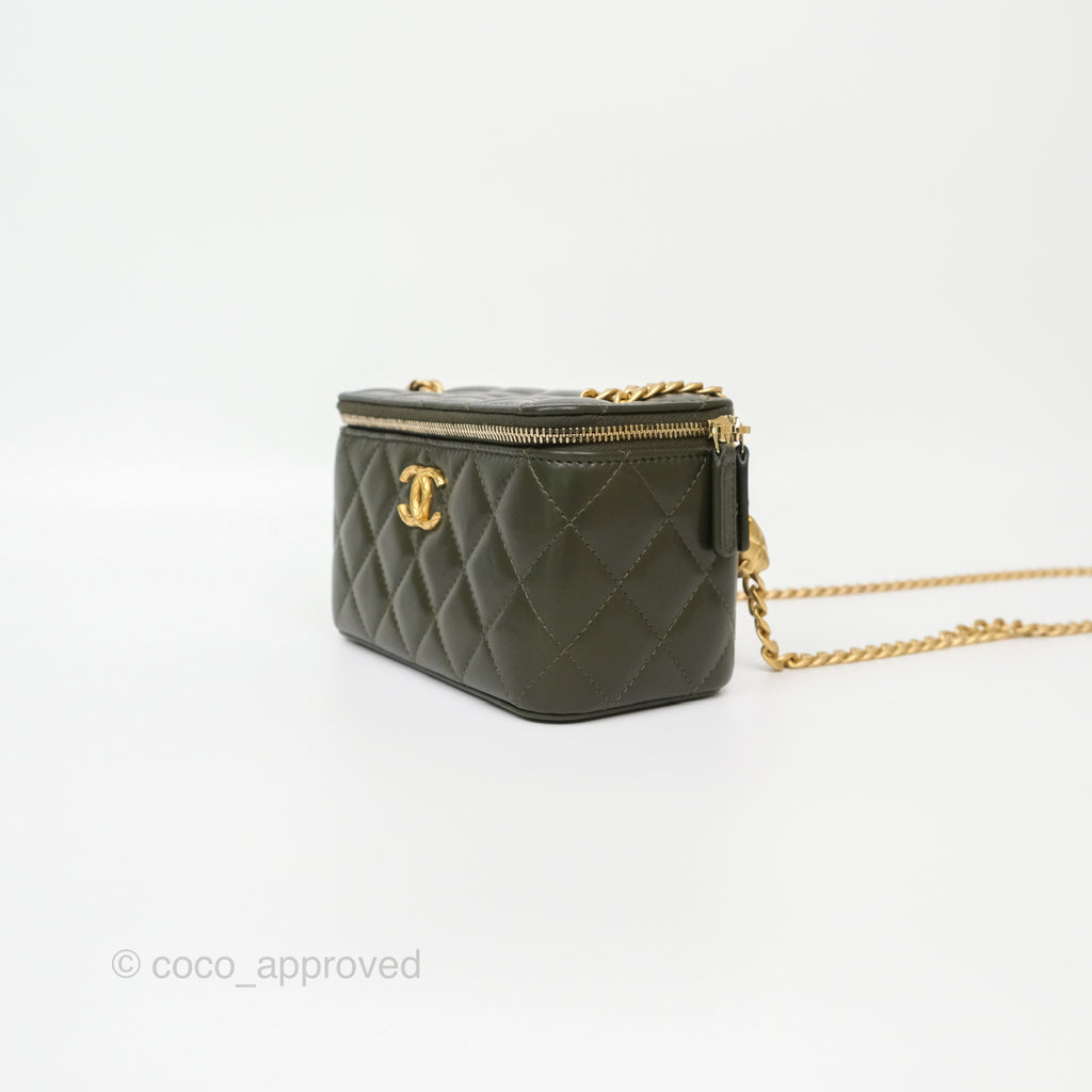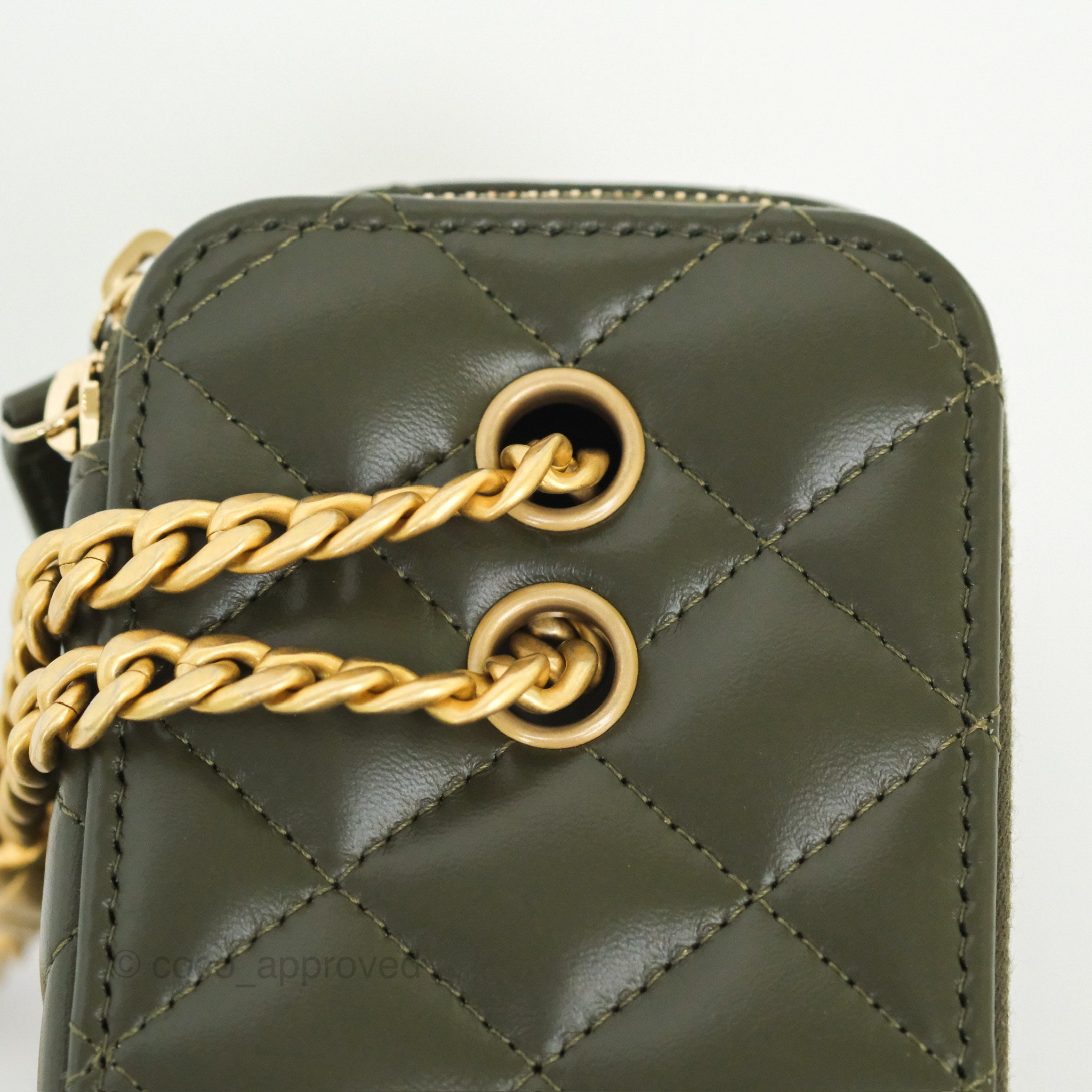 Chanel All Slide Vanity with Adjustable Chain Dark Olive Green Lambskin Aged Gold Hardware