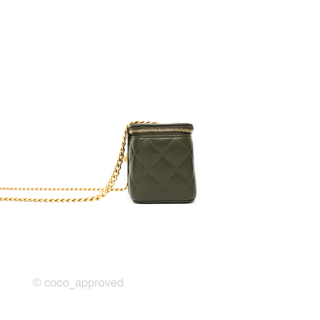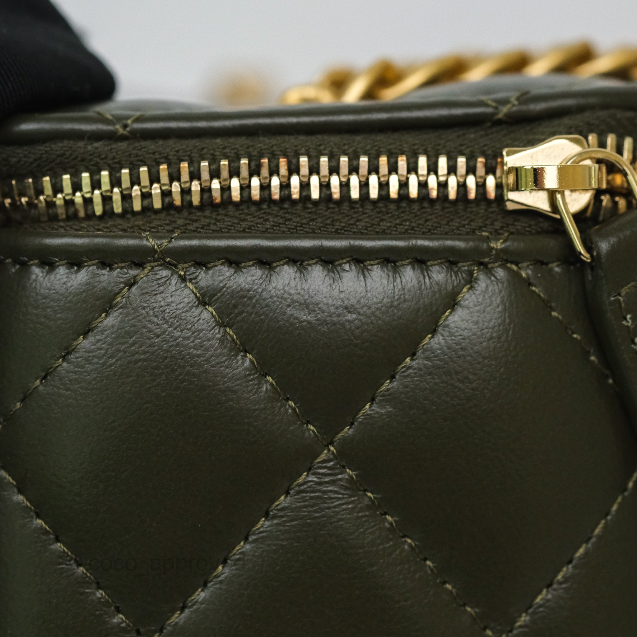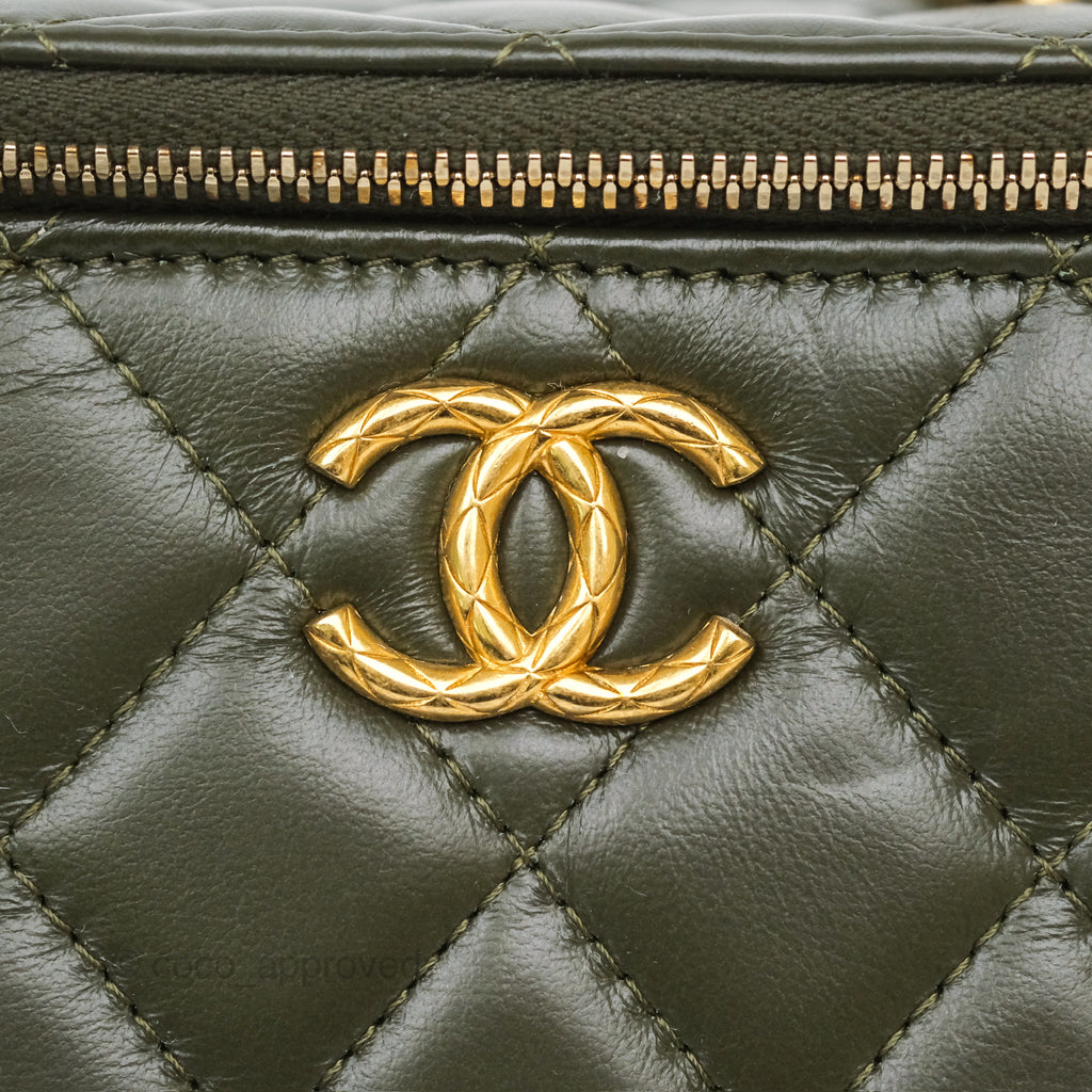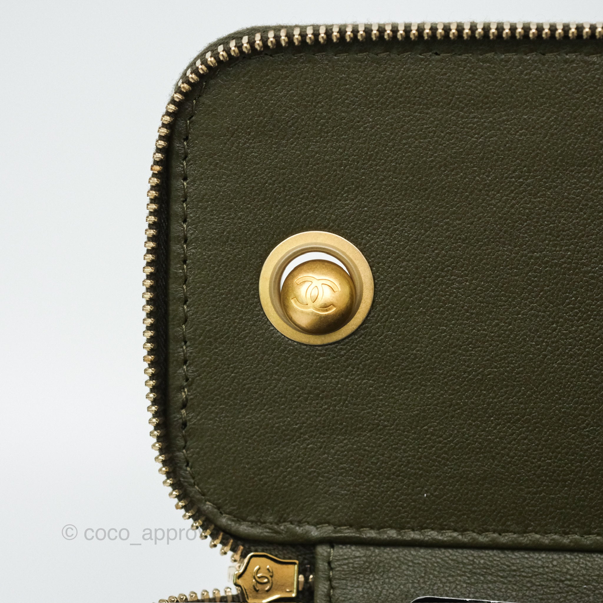 Chanel All Slide Vanity with Adjustable Chain Dark Olive Green Lambskin Aged Gold Hardware