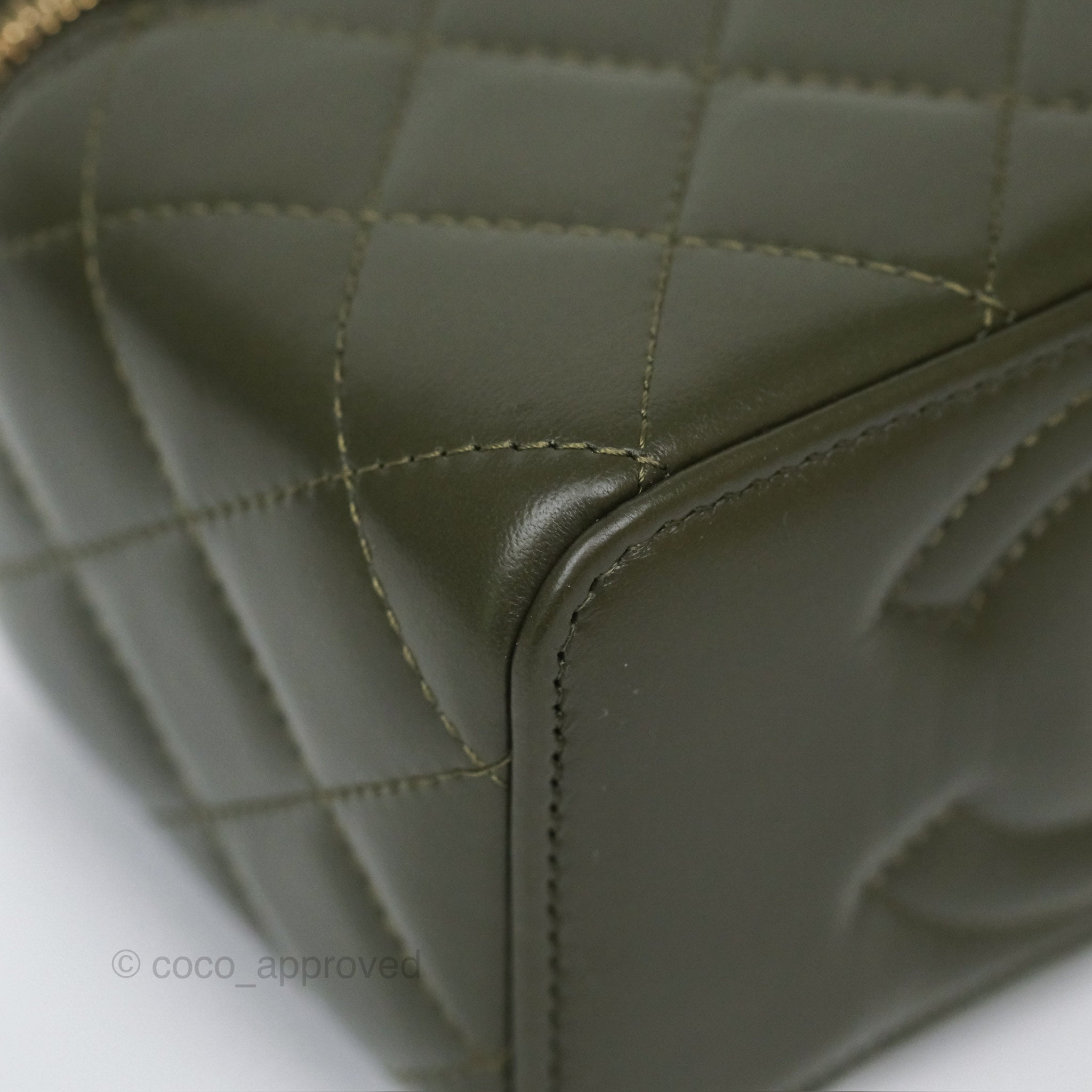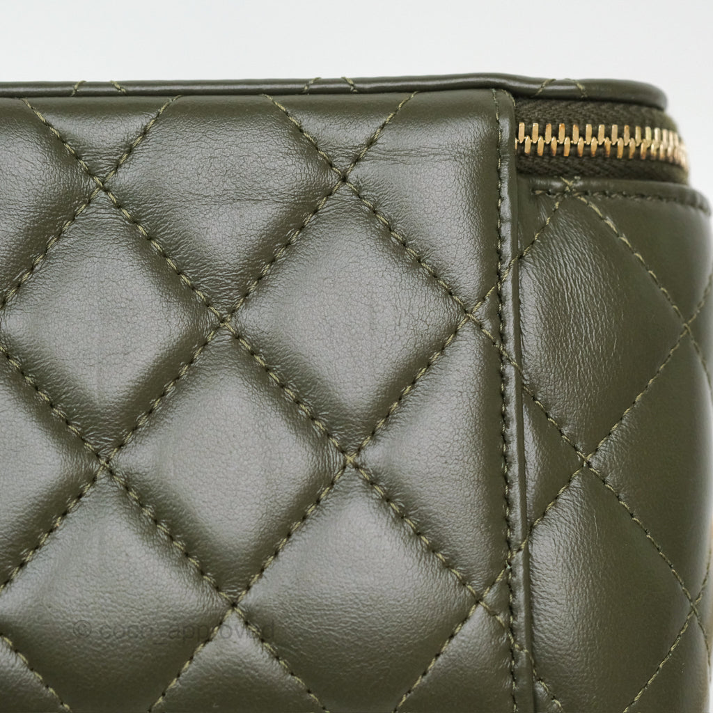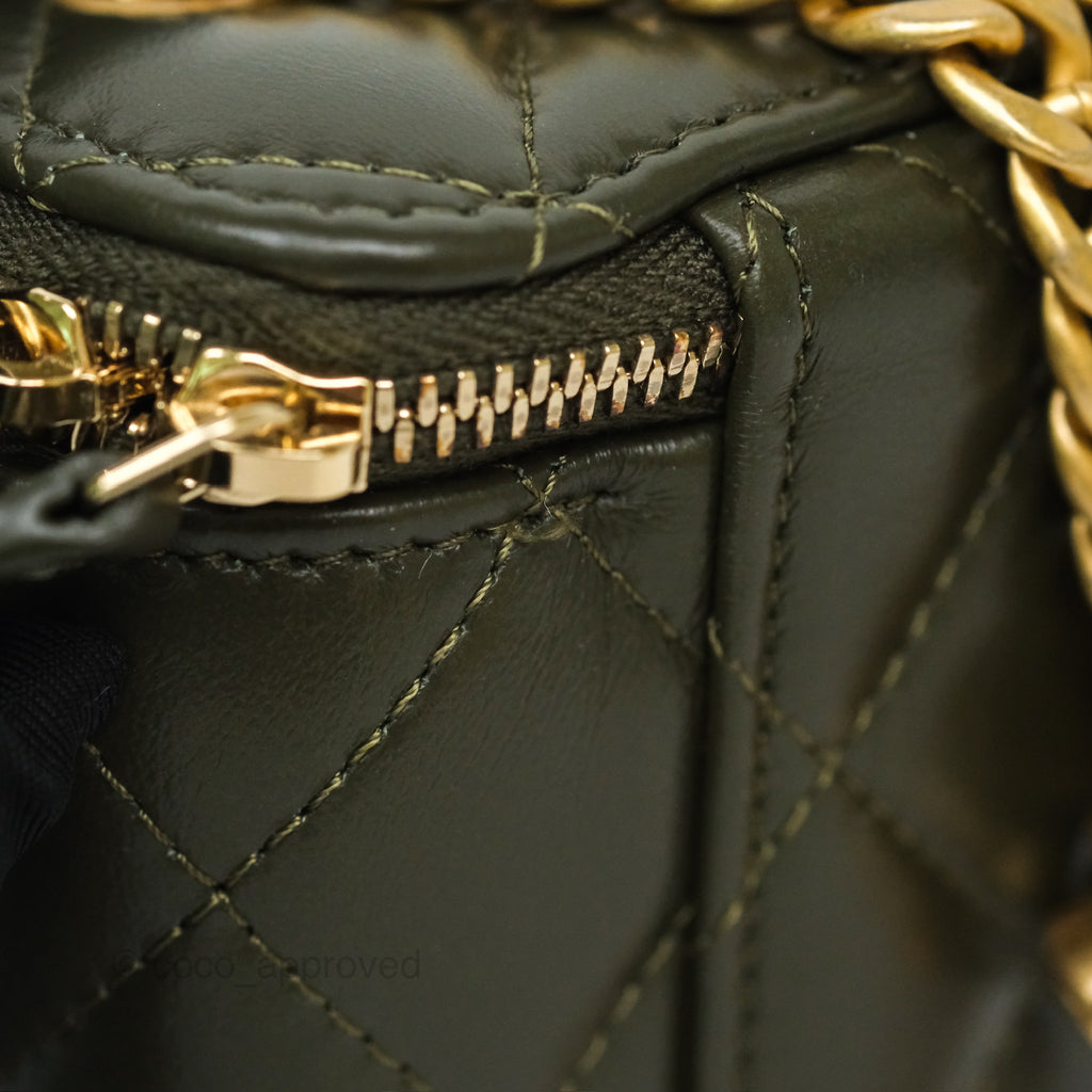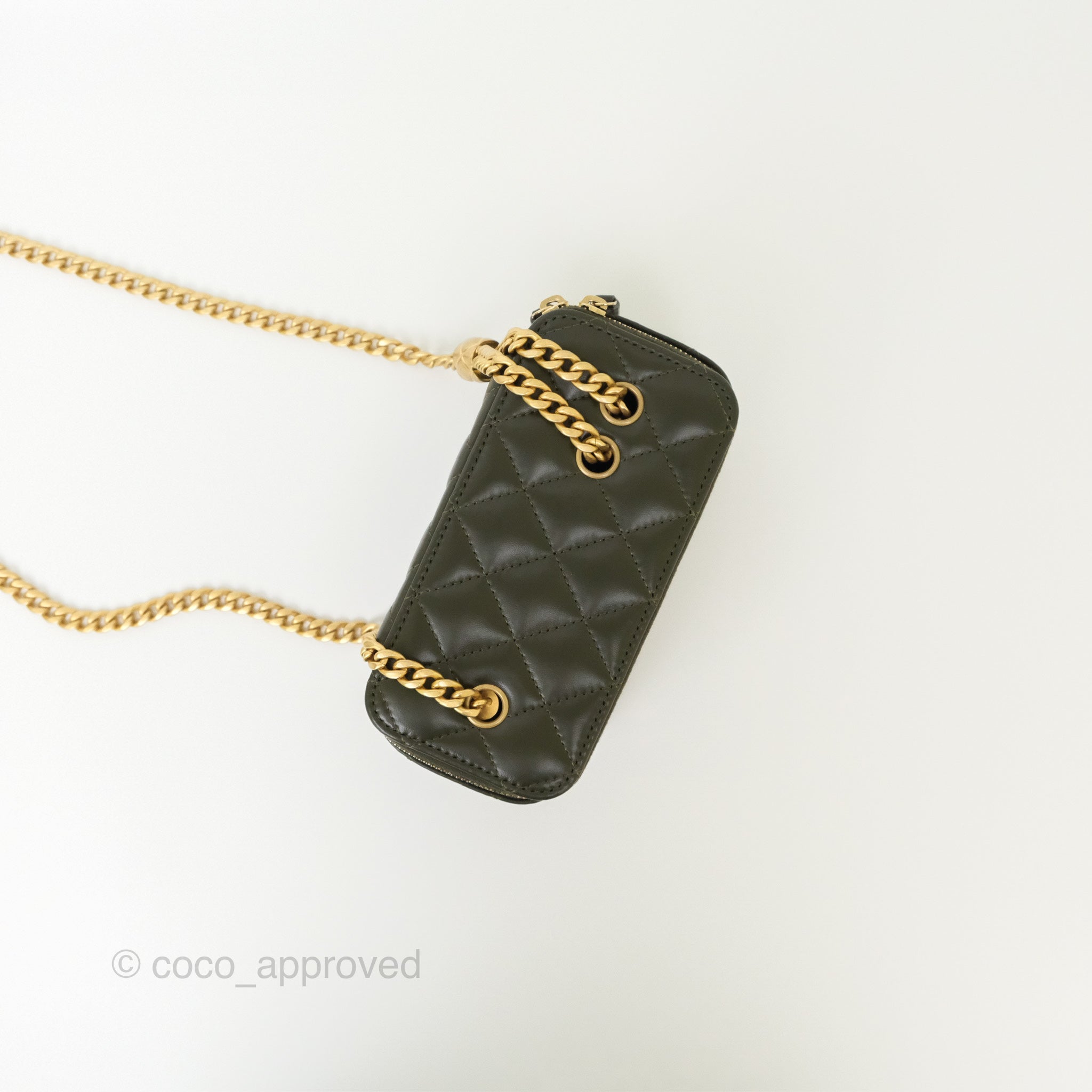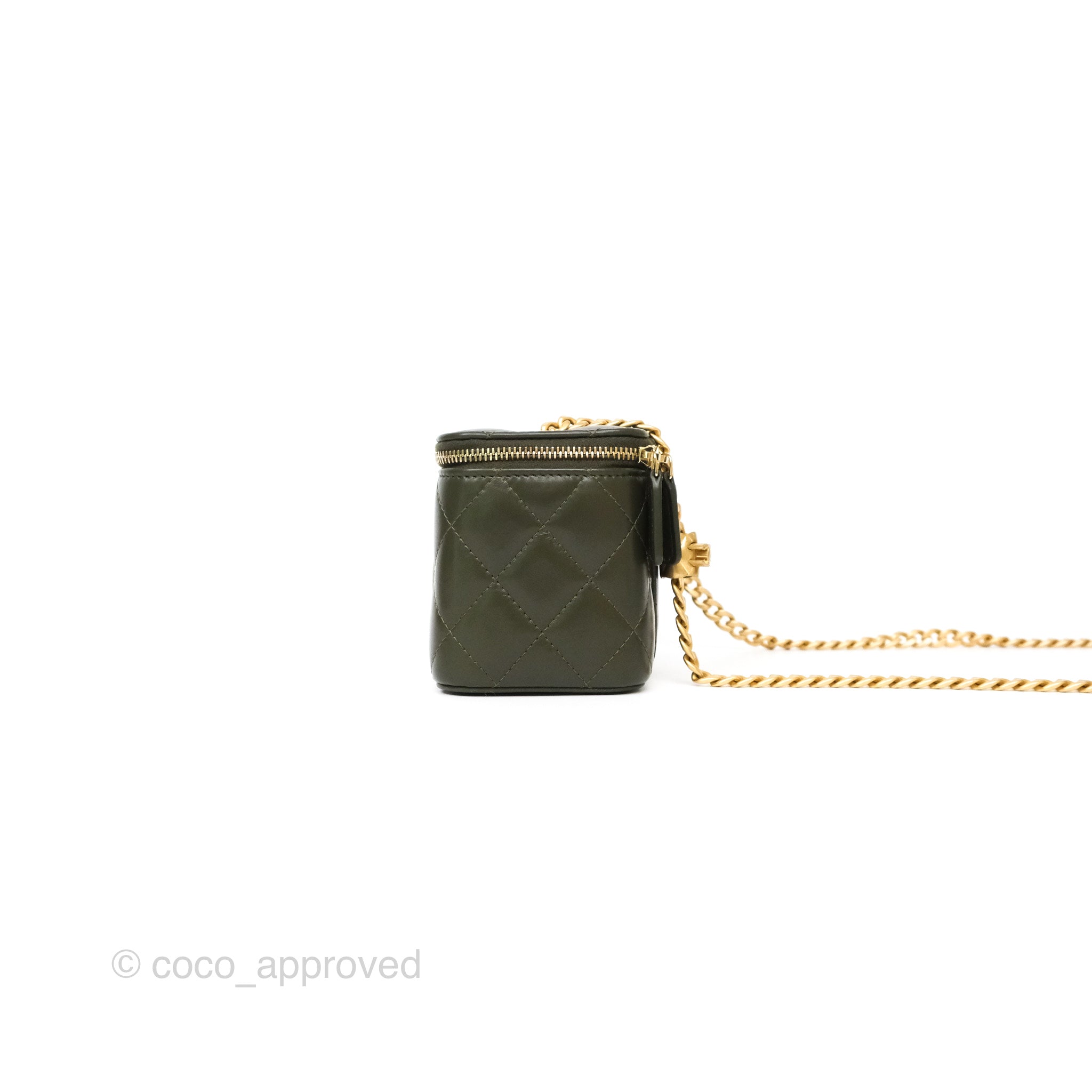 Chanel All Slide Vanity with Adjustable Chain Dark Olive Green Lambskin Aged Gold Hardware