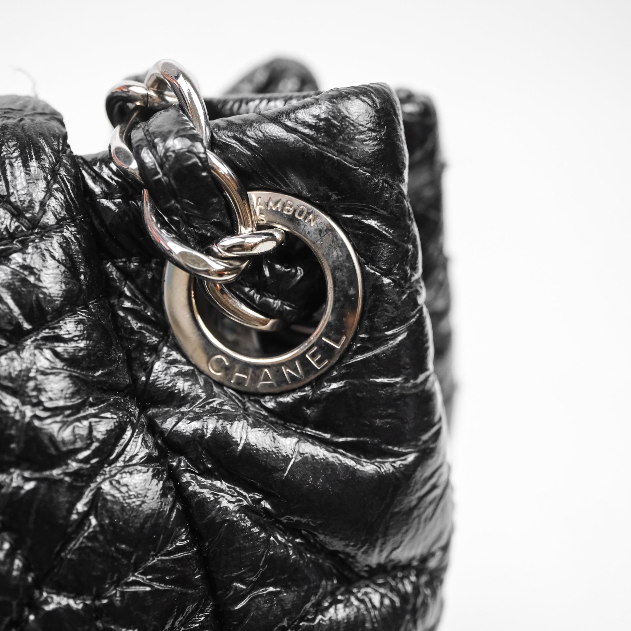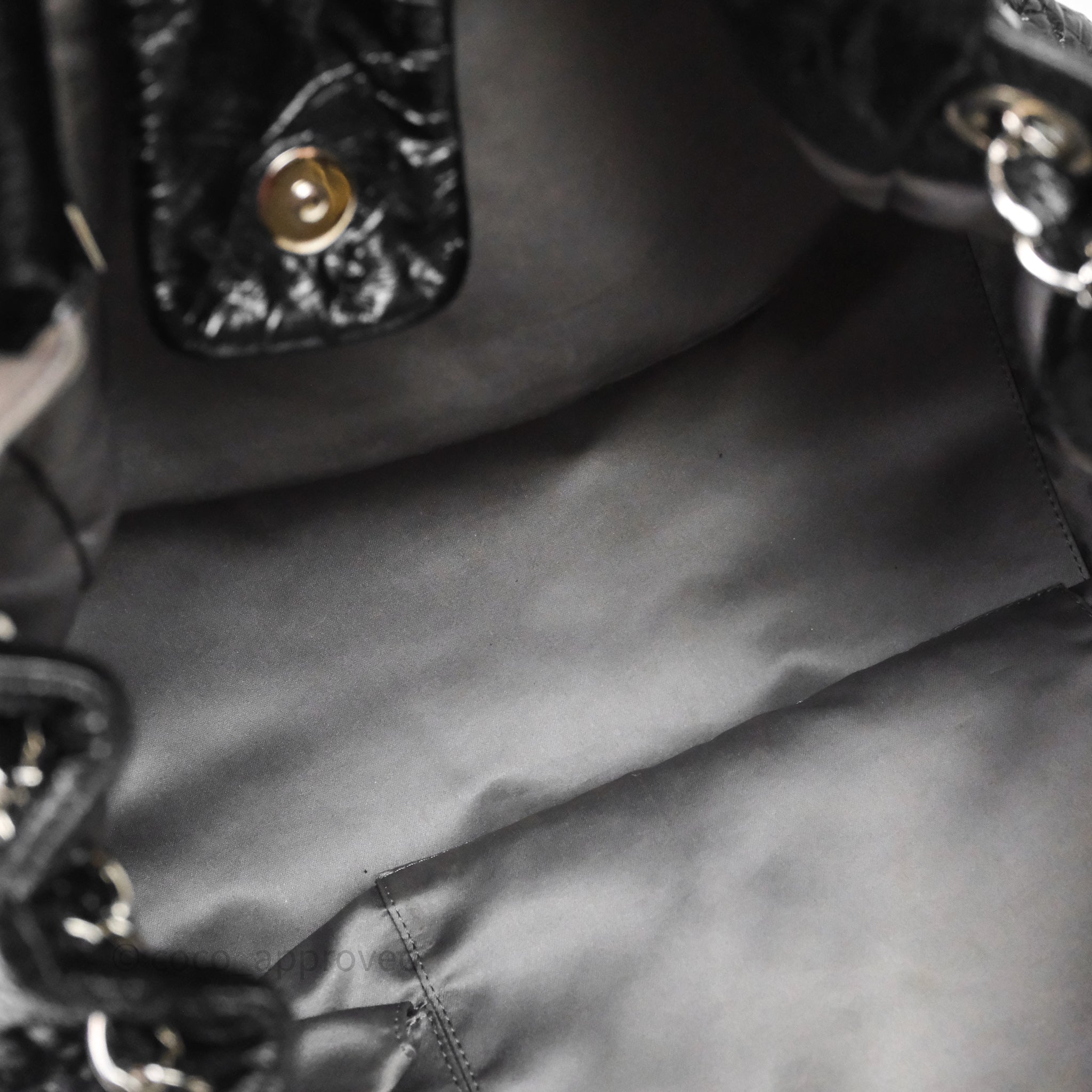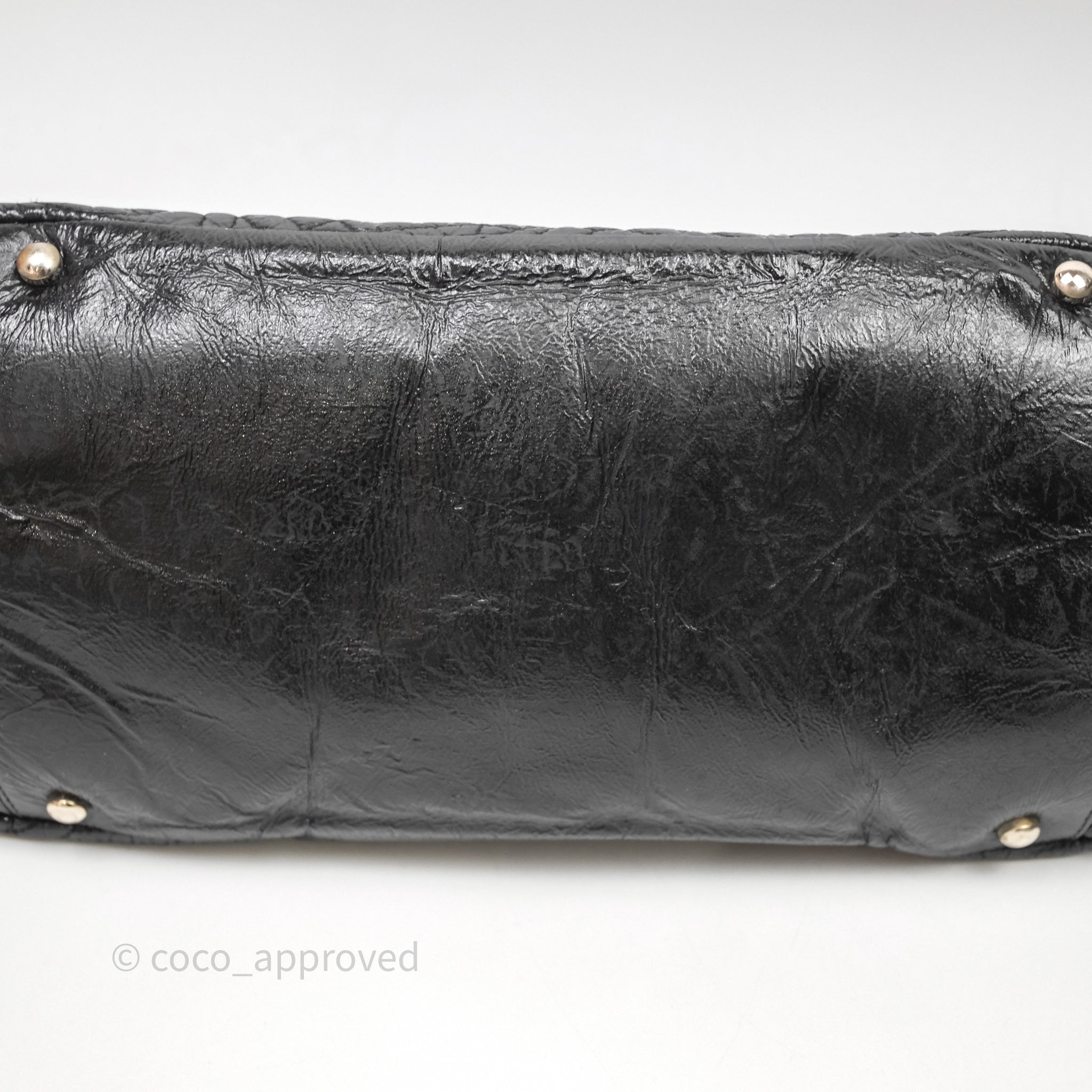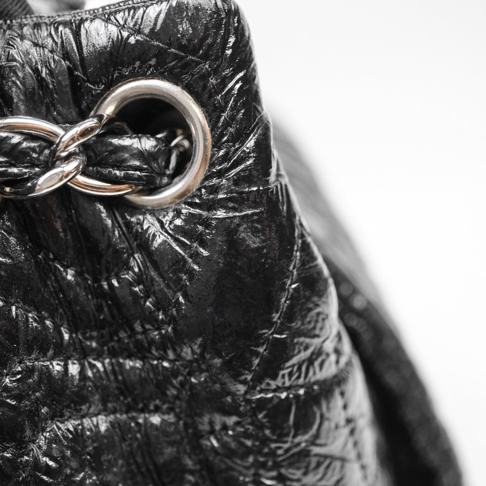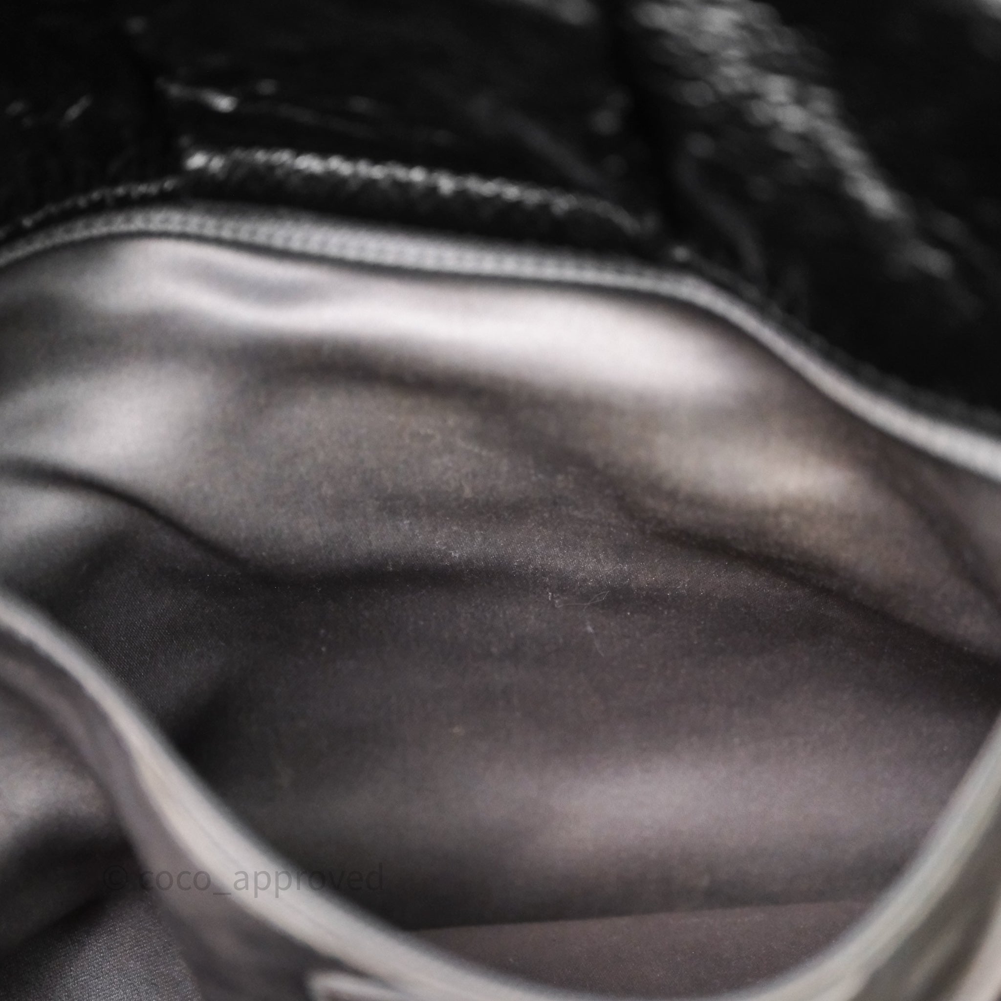 8/10 good condition. Oxidized and hairlines on hardwares. Leather peeled off. Stain on bottom. Mark on interior.