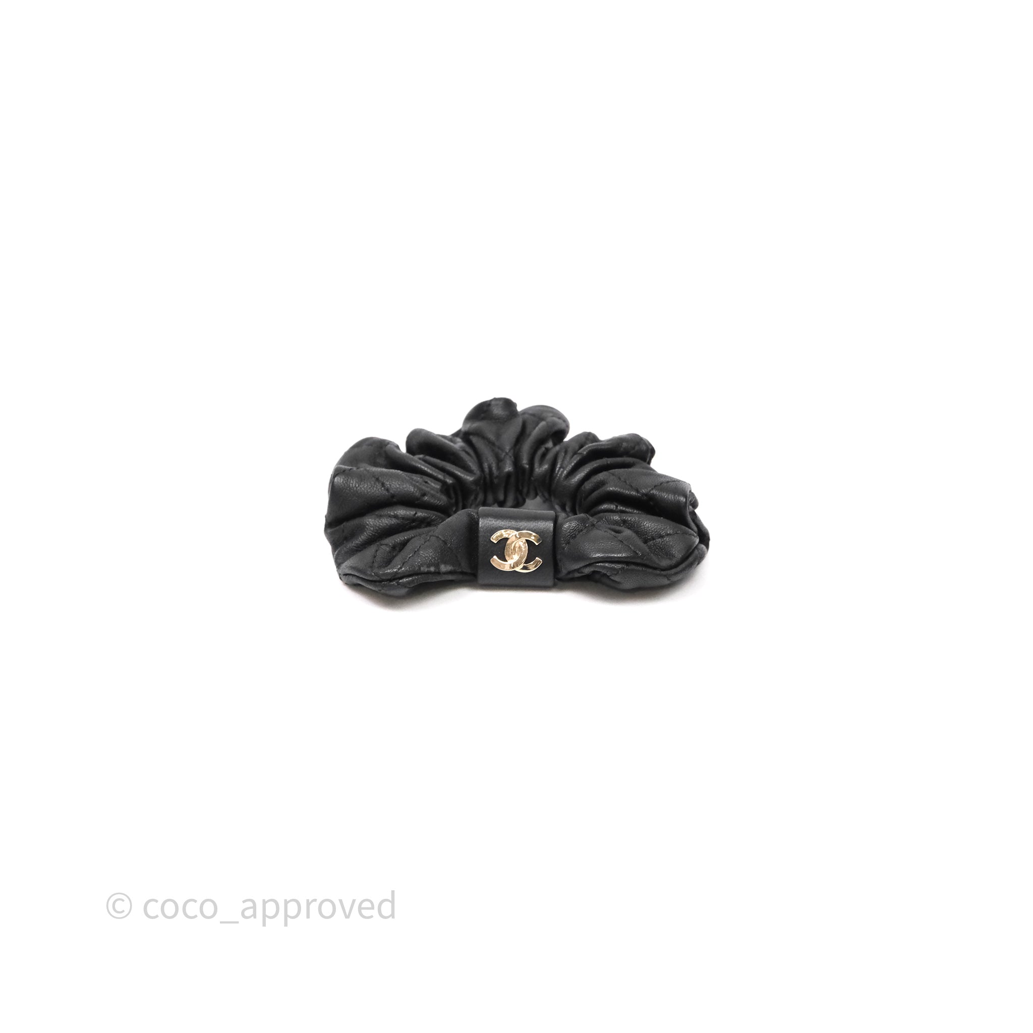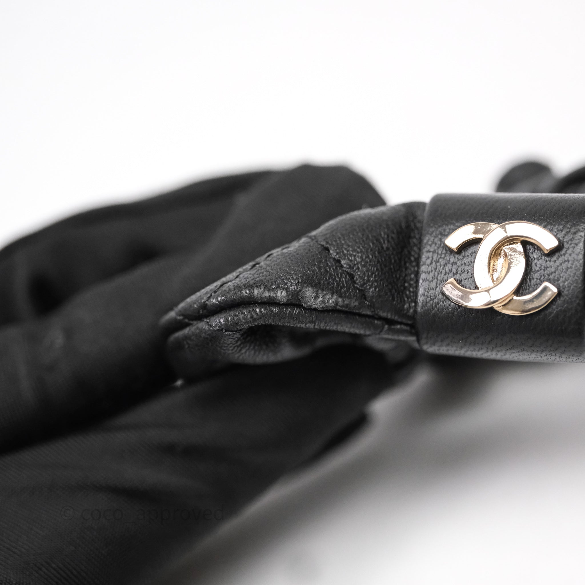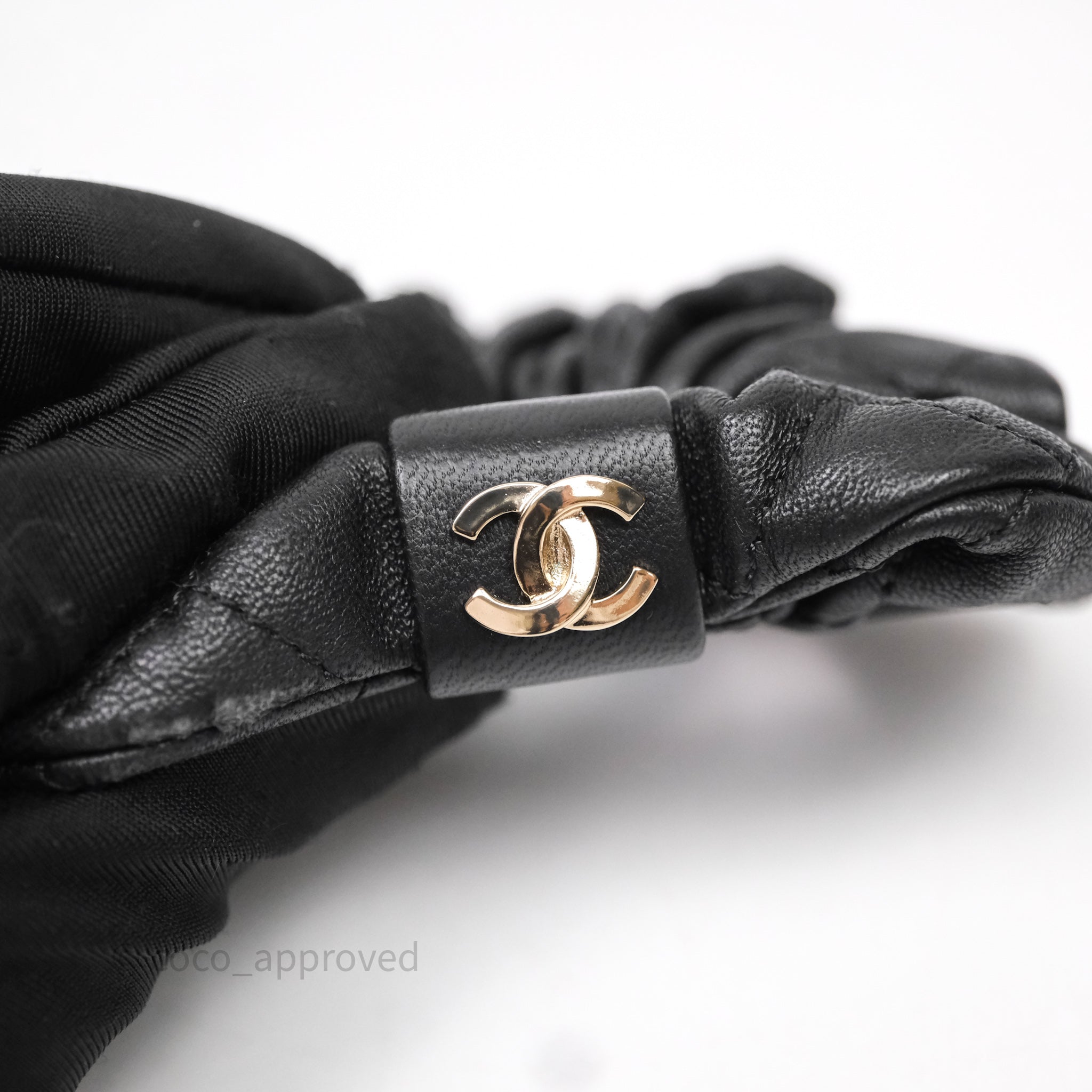 Chanel CC Black Leather Hair Accessory Gold Tone 21K