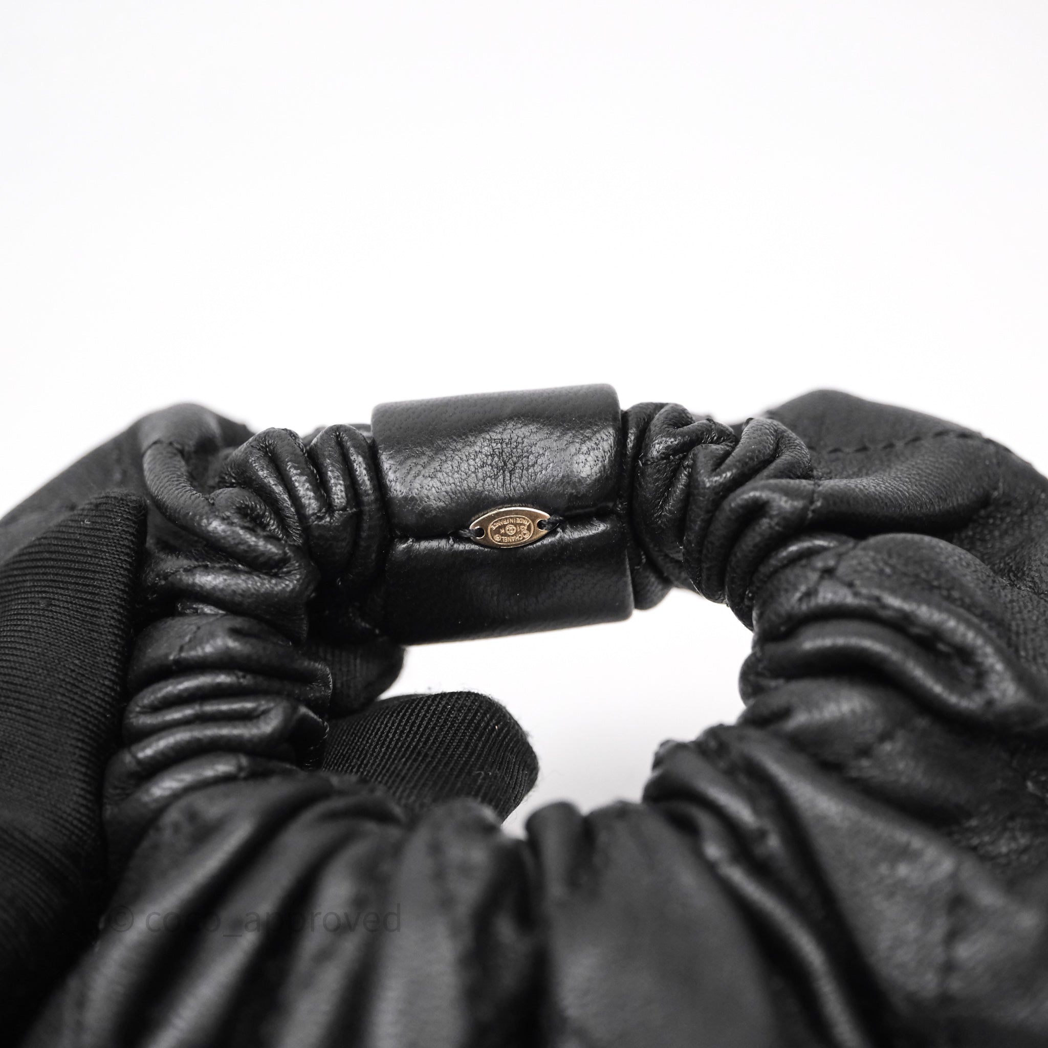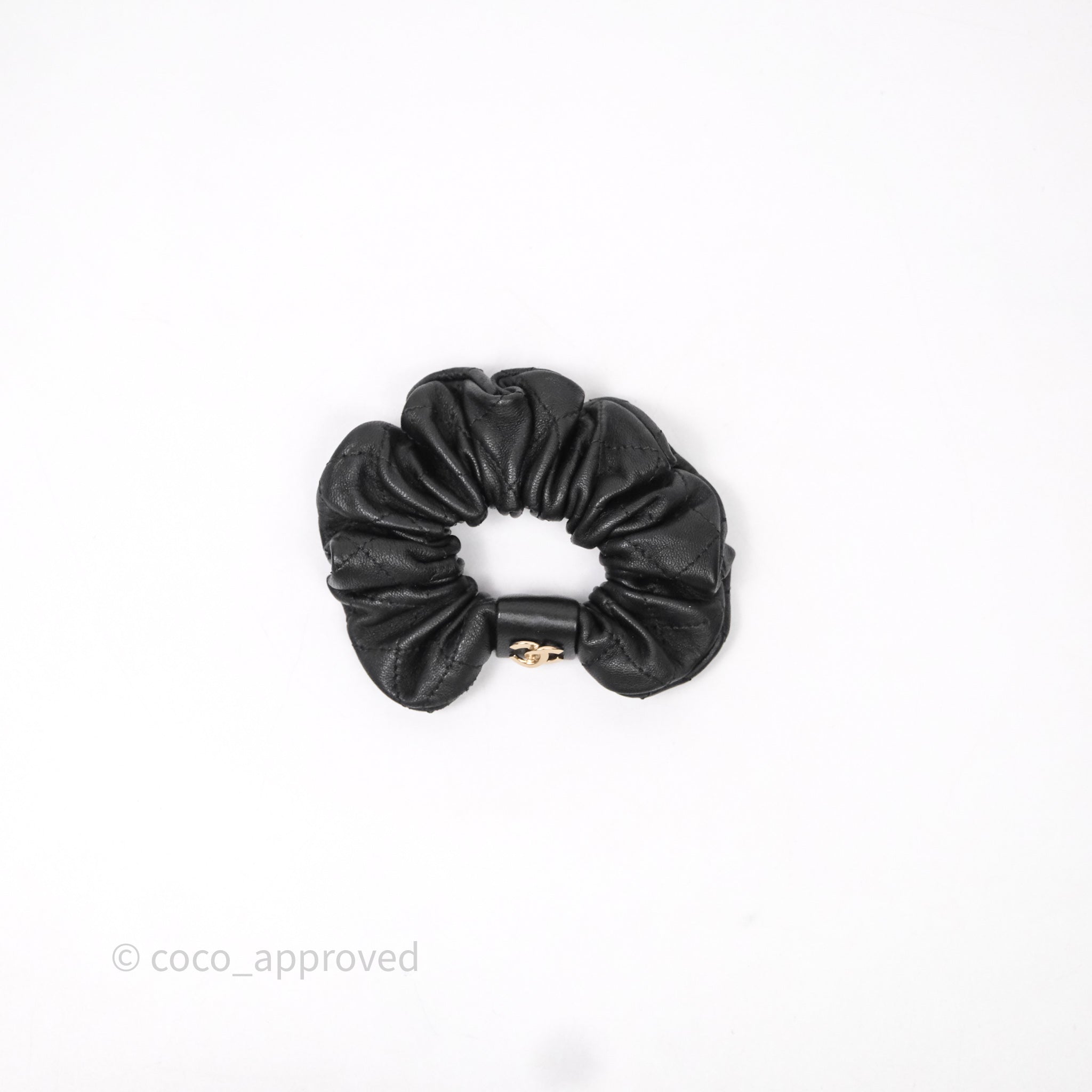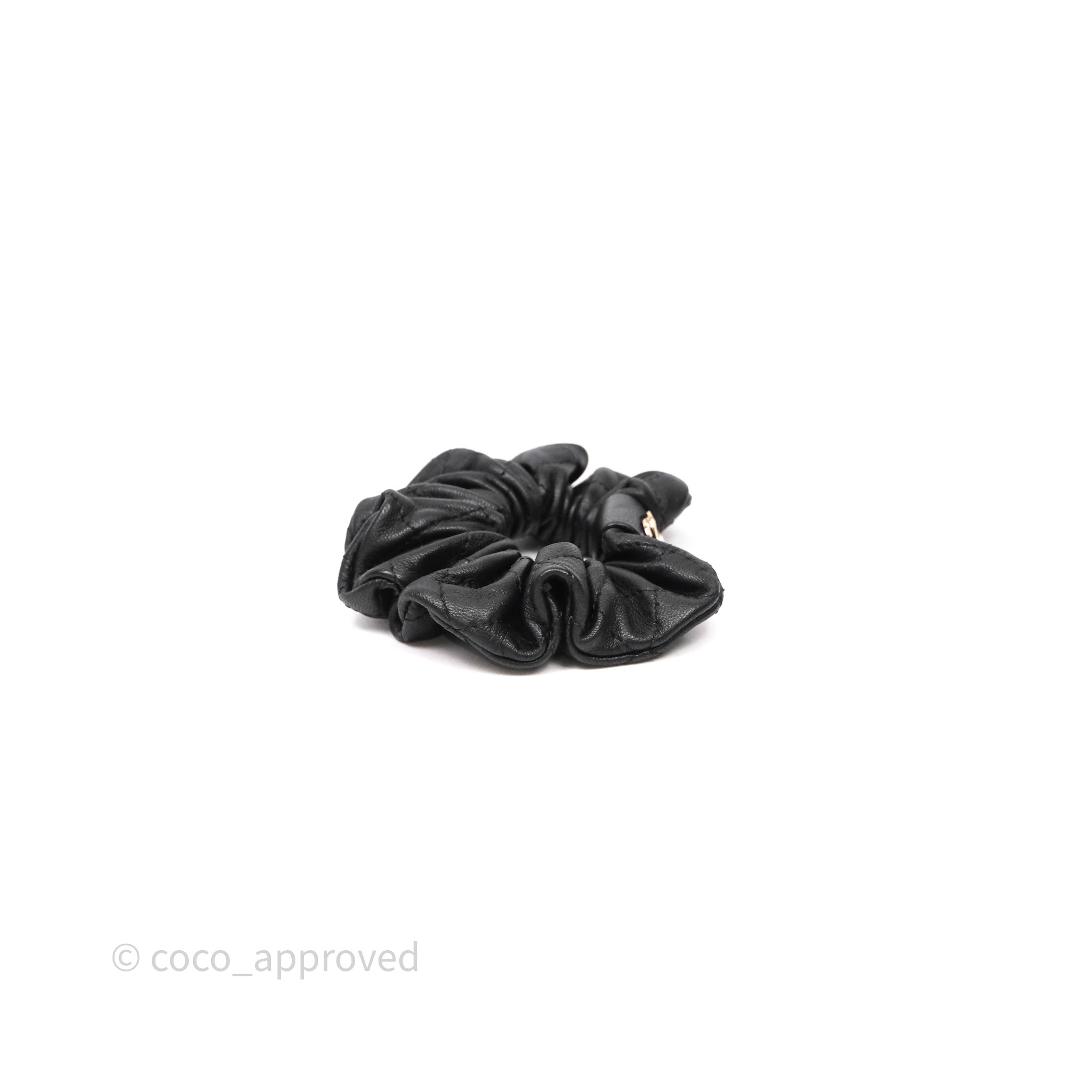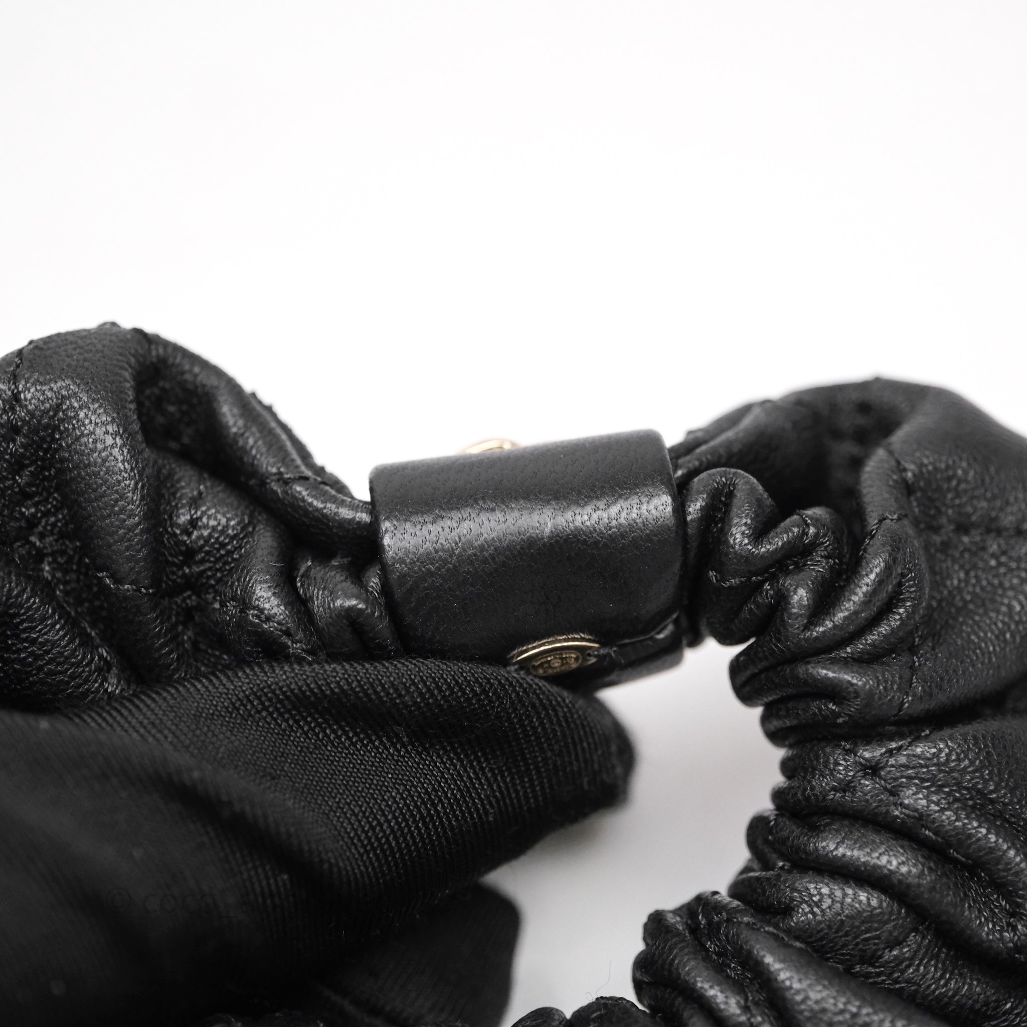 Chanel CC Black Leather Hair Accessory Gold Tone 21K