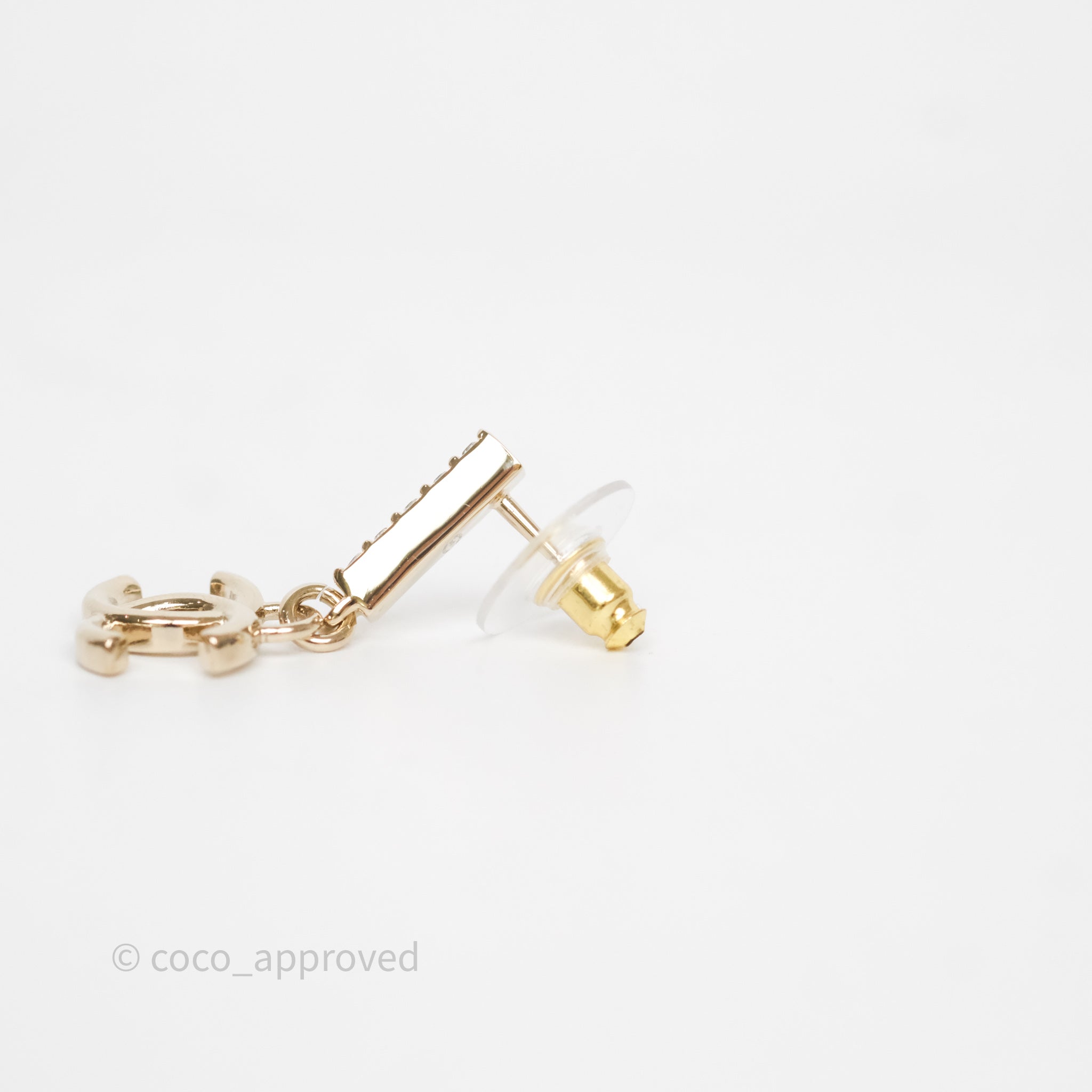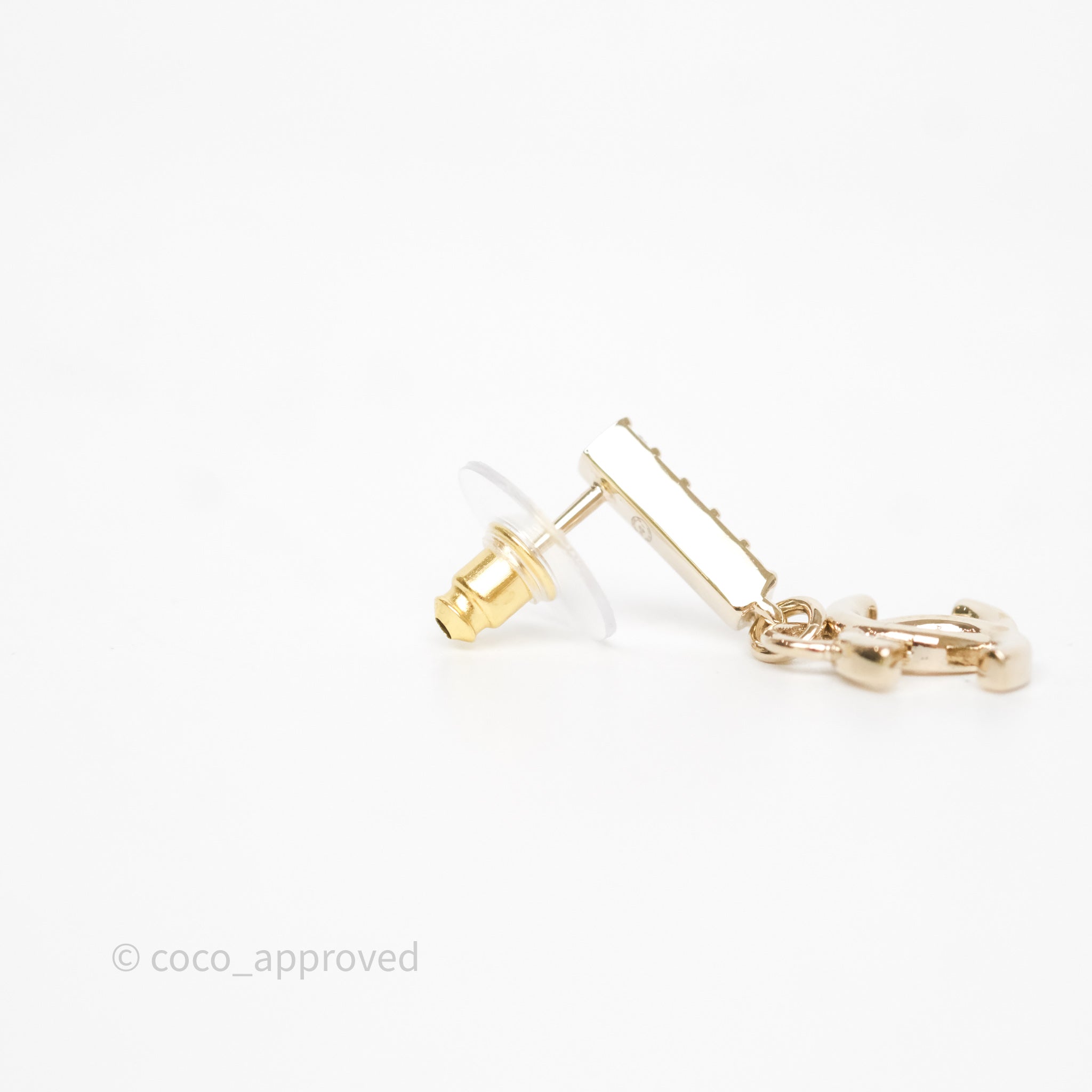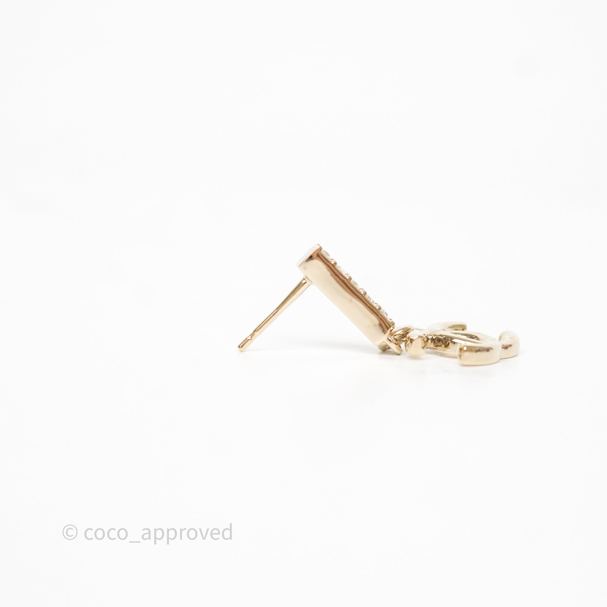 Chanel CC Crystals Drop Earrings Gold Tone 24V
