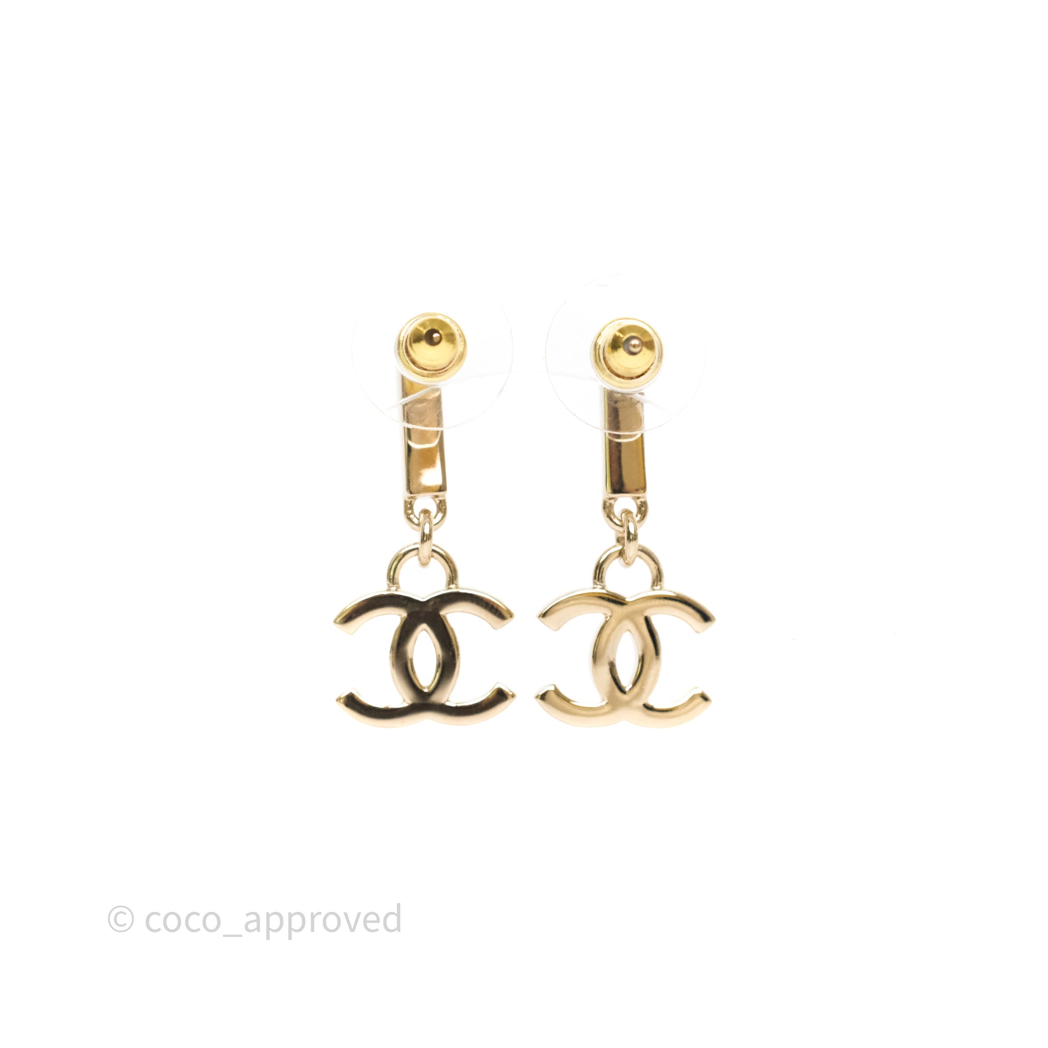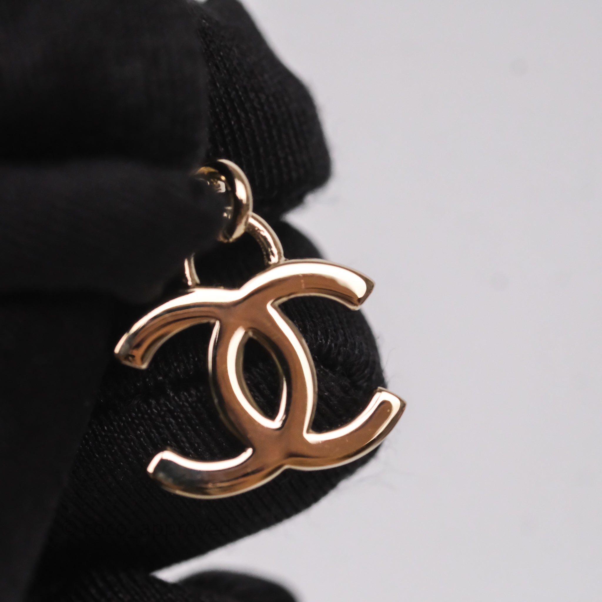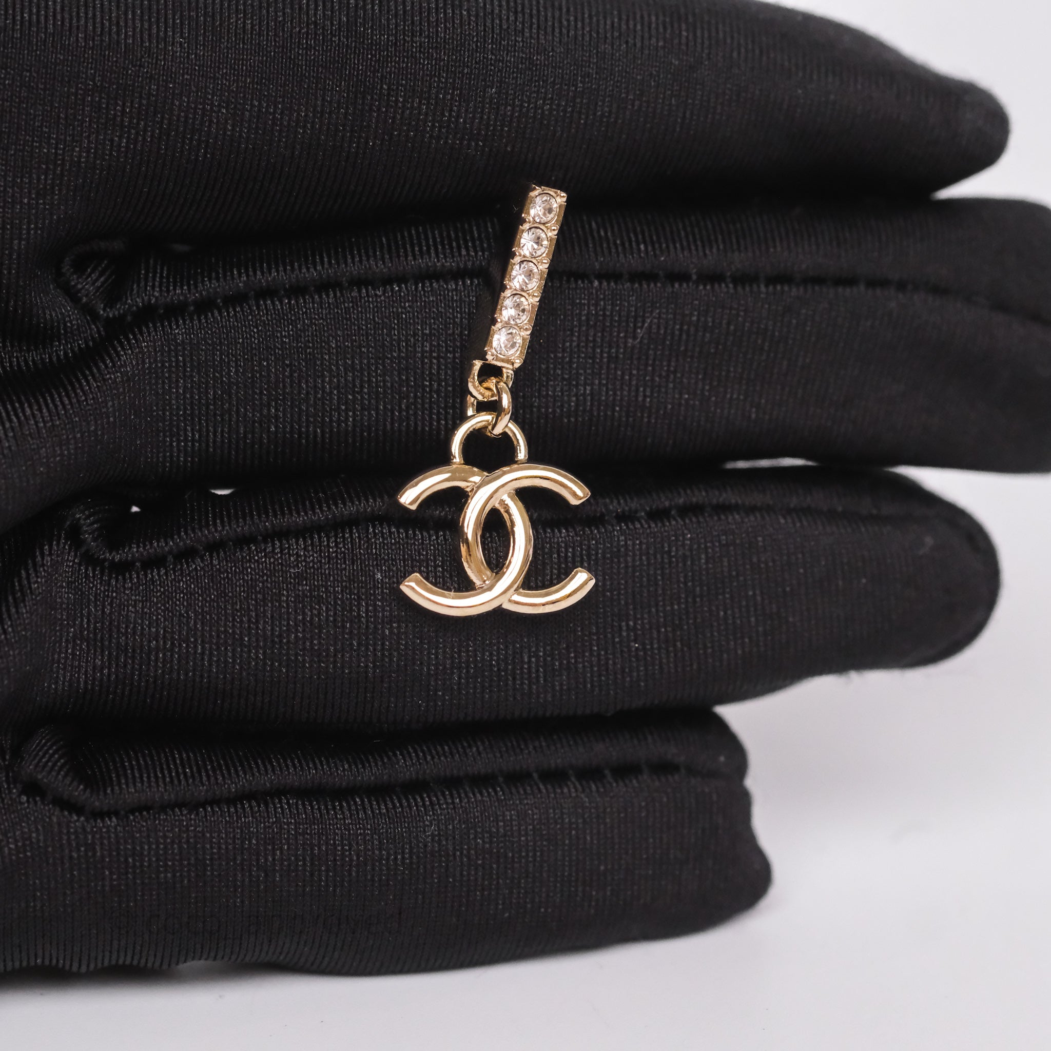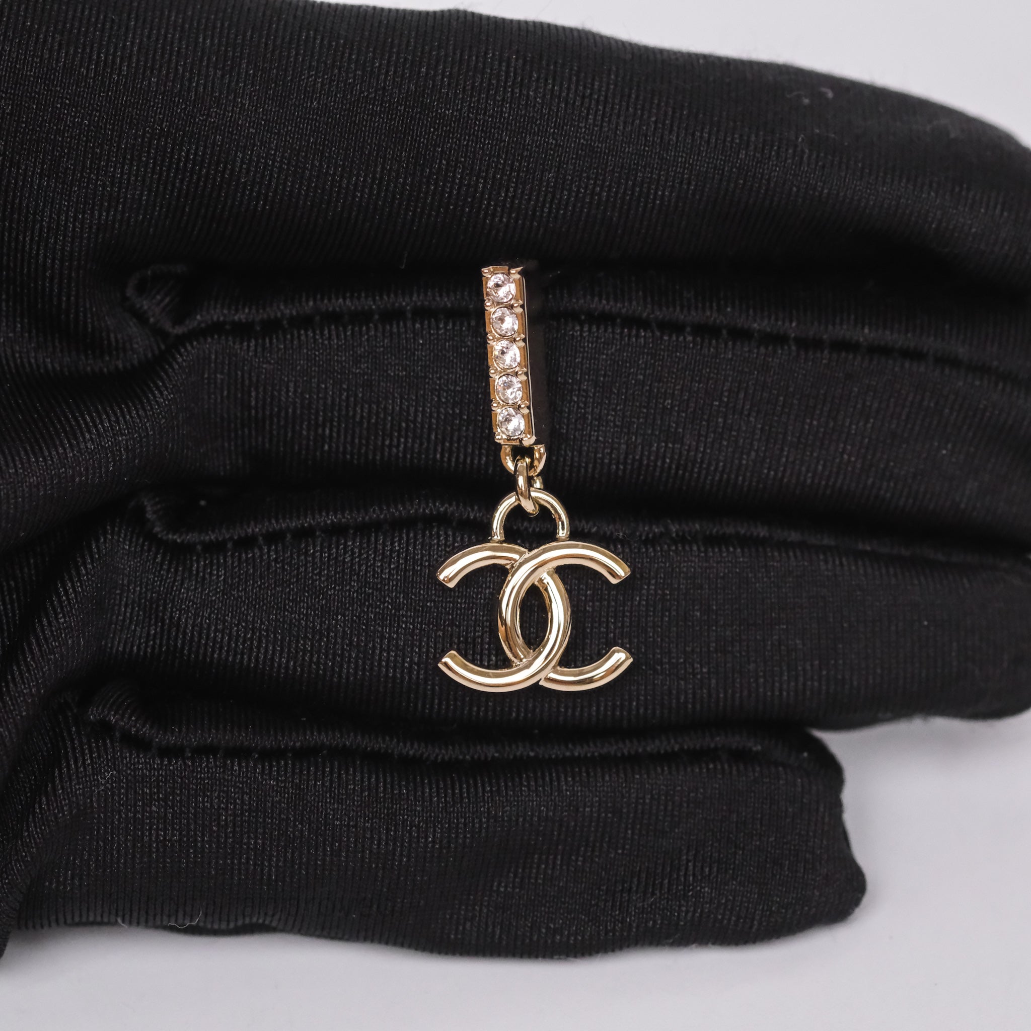 Chanel CC Crystals Drop Earrings Gold Tone 24V