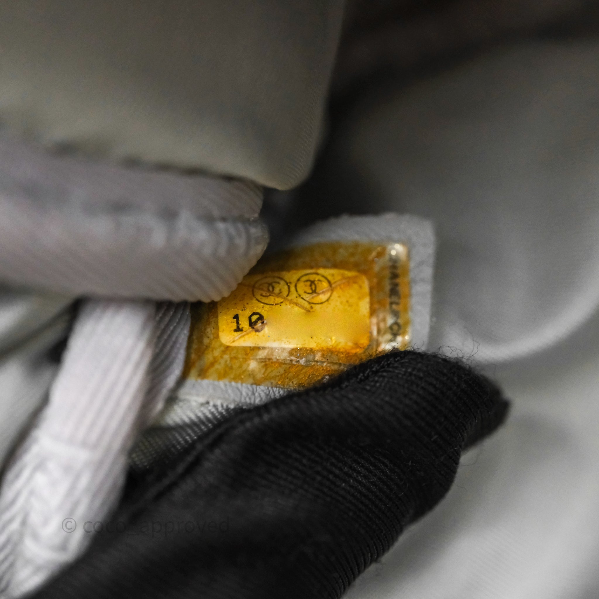 9.3/10 excellent condition. Glue stain on front flap rims. Tiny marks on inner tag.