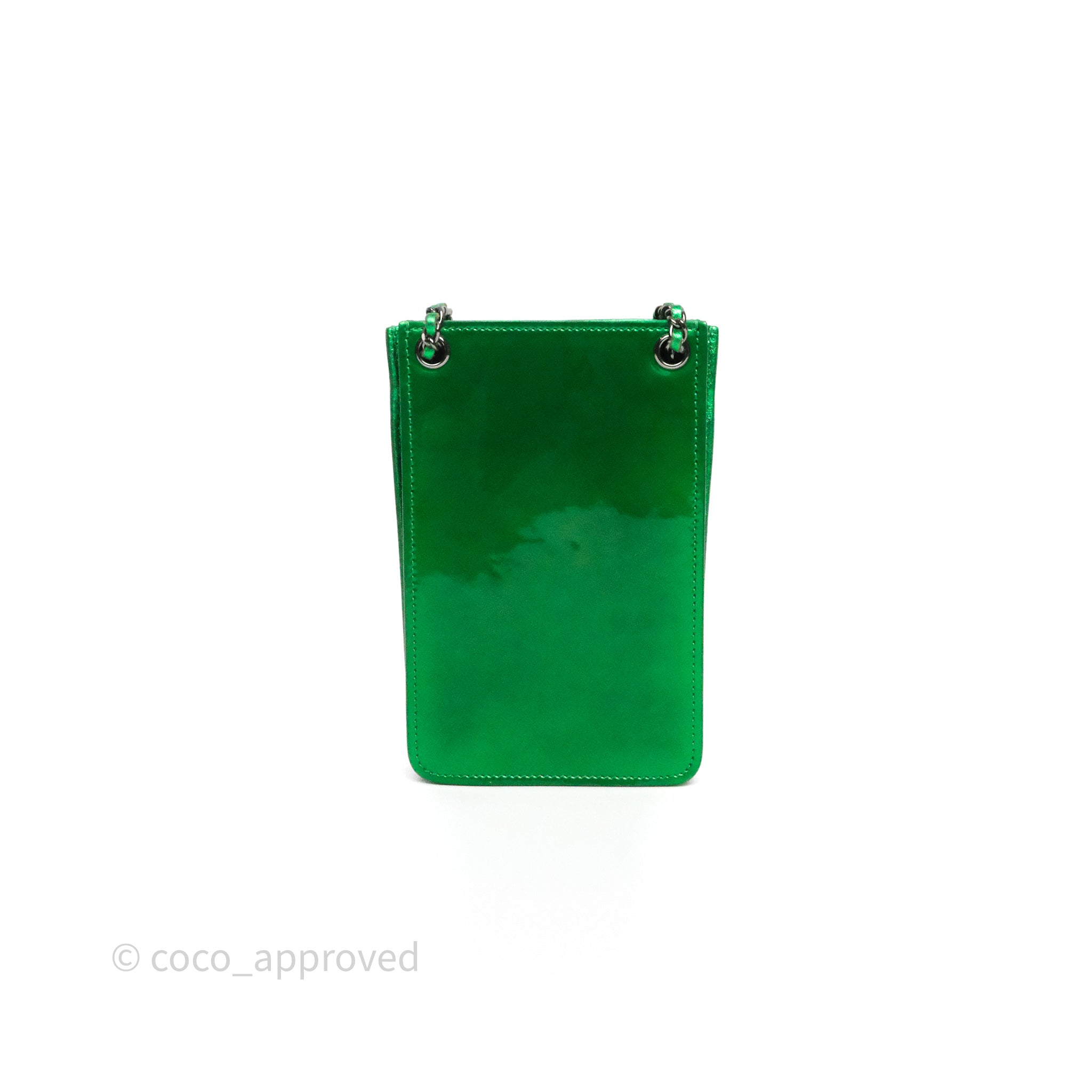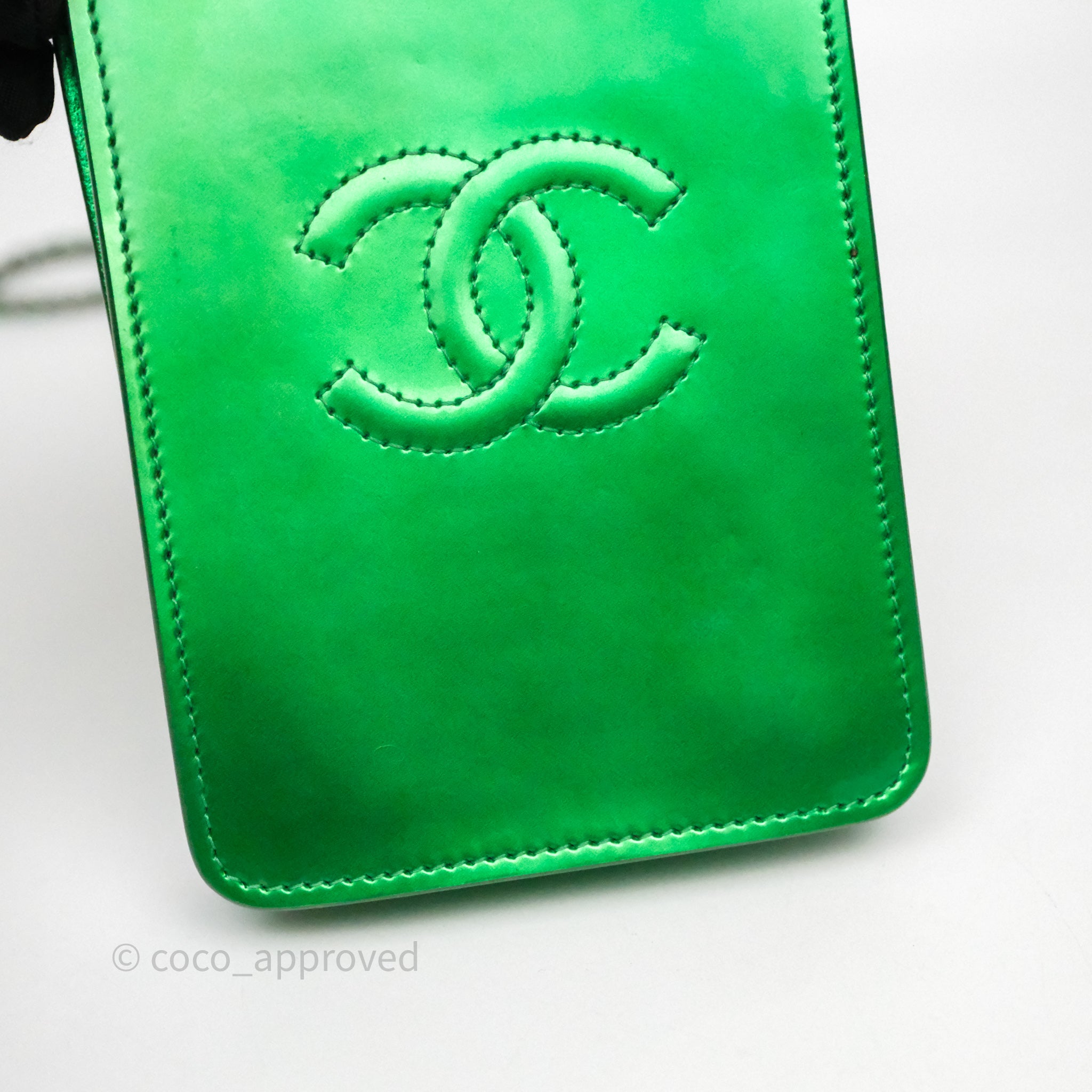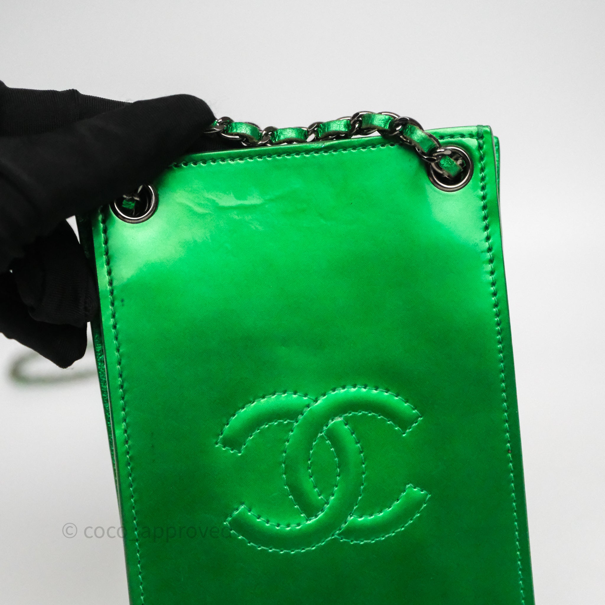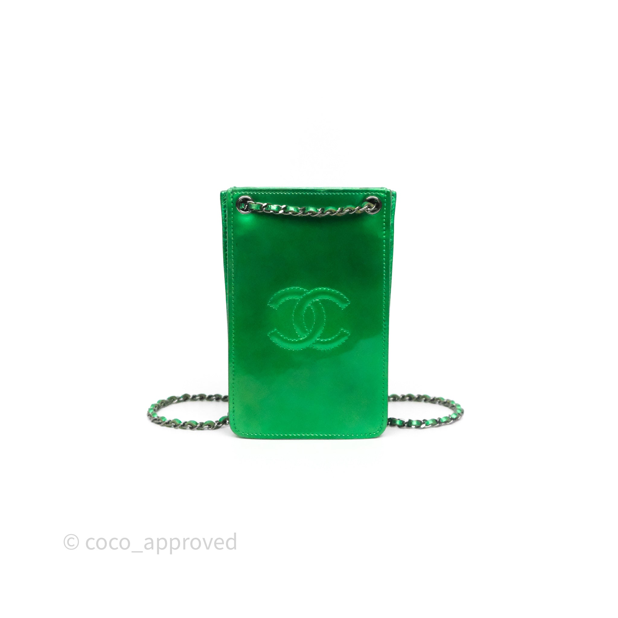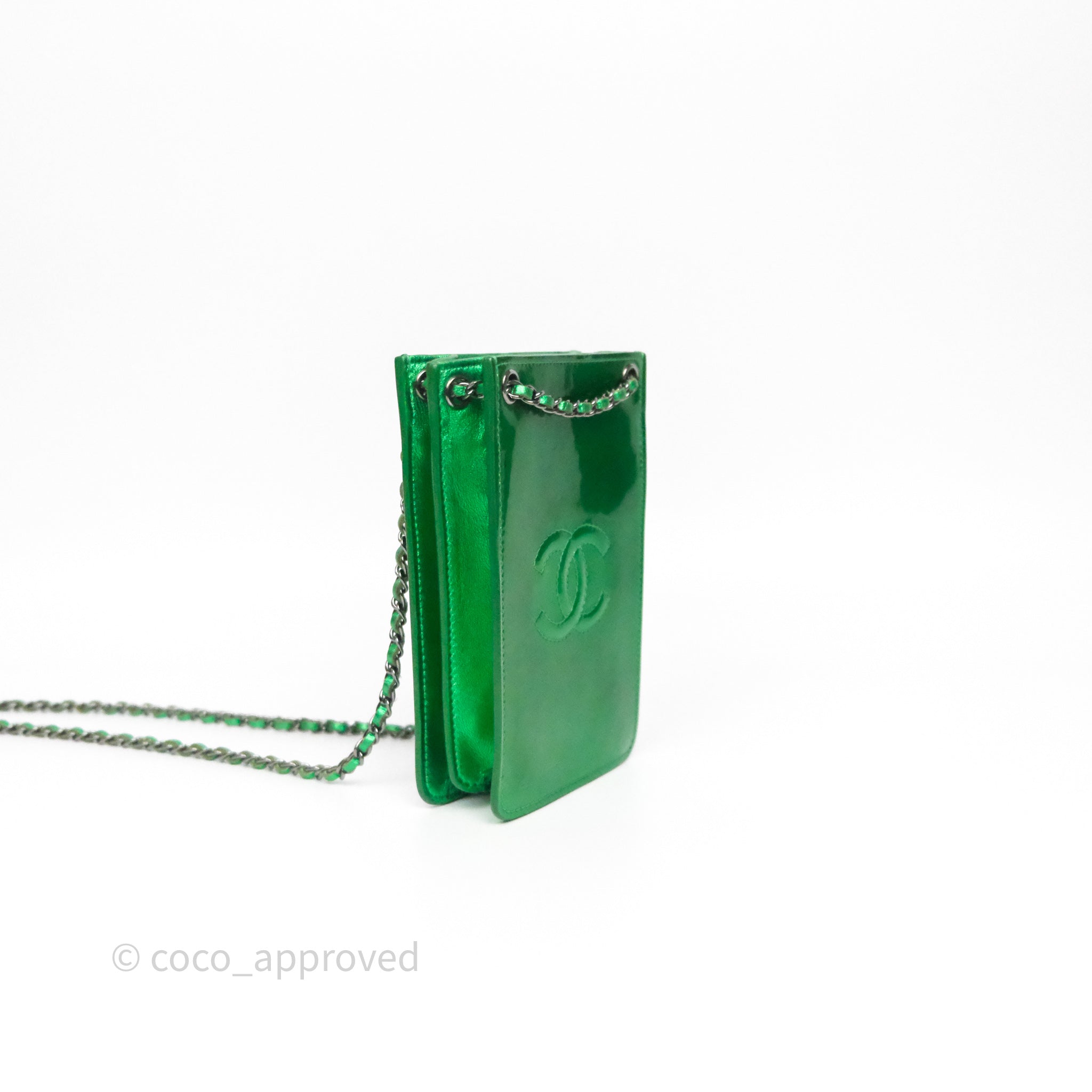 Chanel CC Phone Holder Metallic Green Patent Gun Metal Hardware