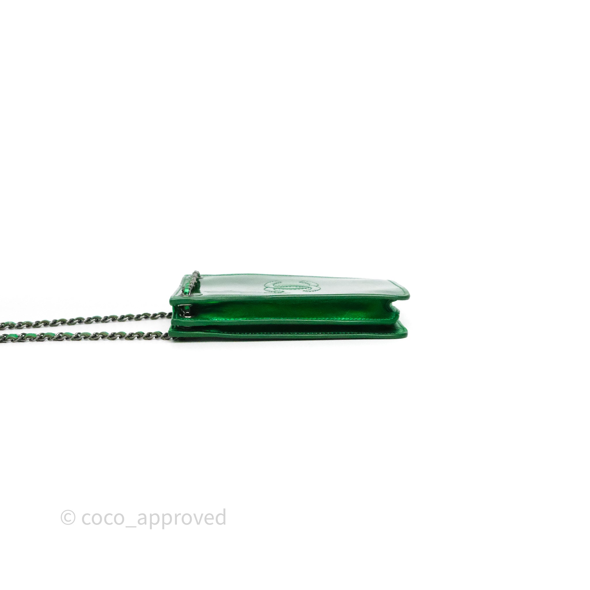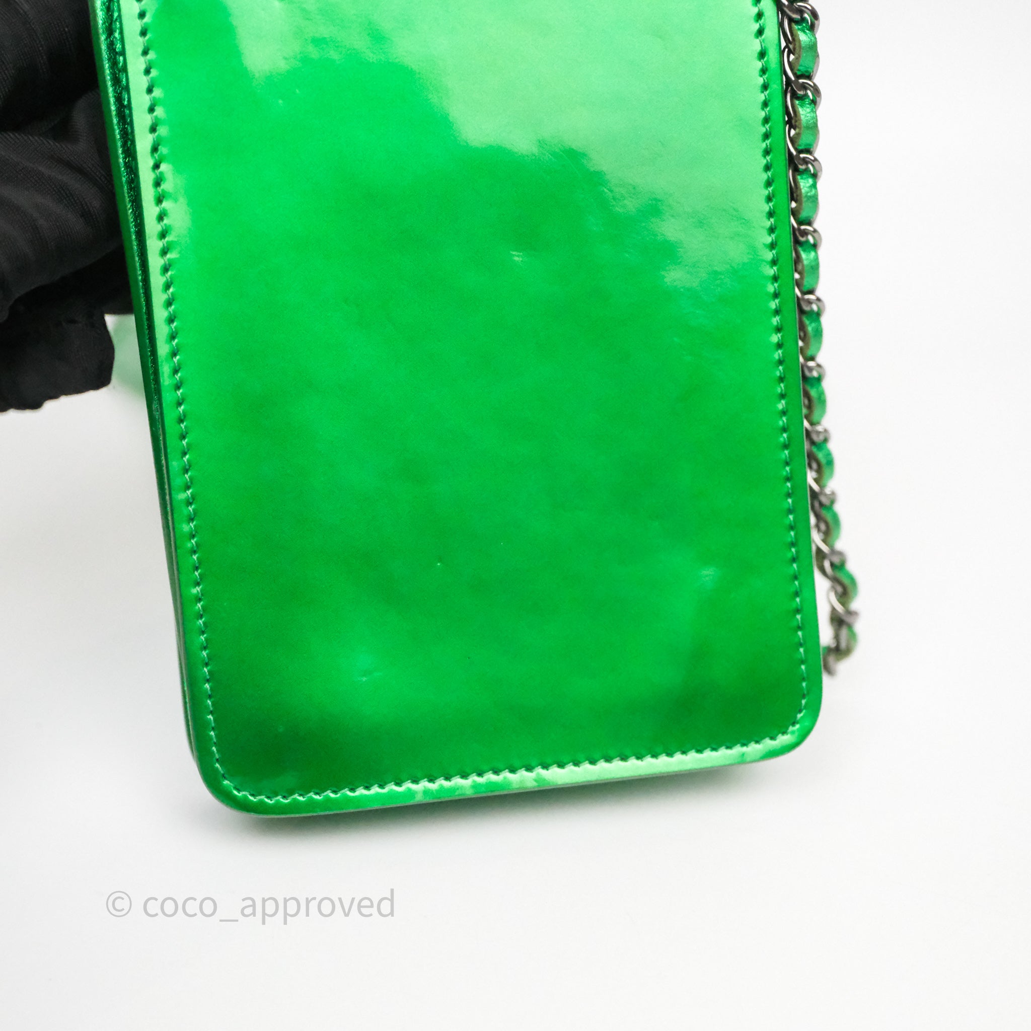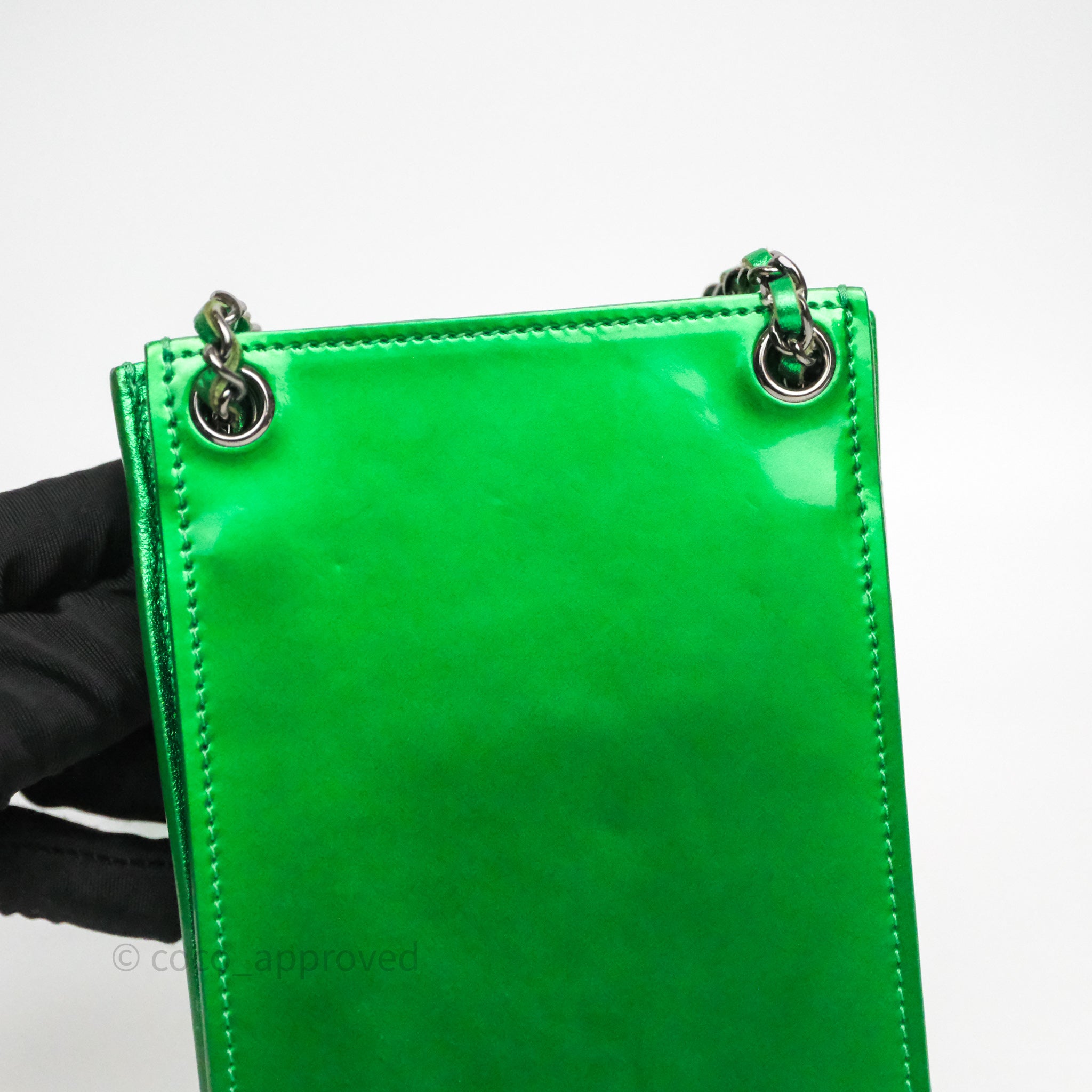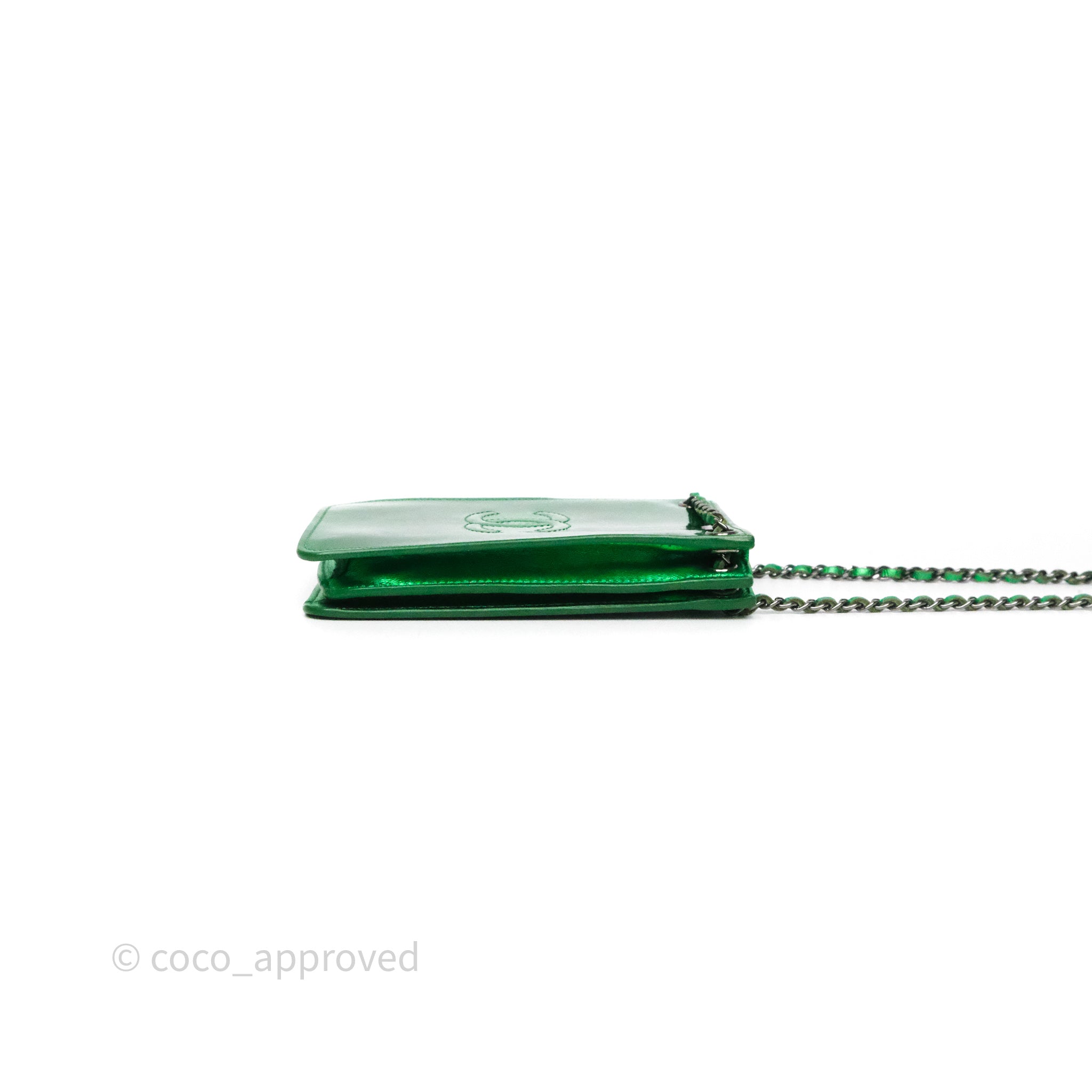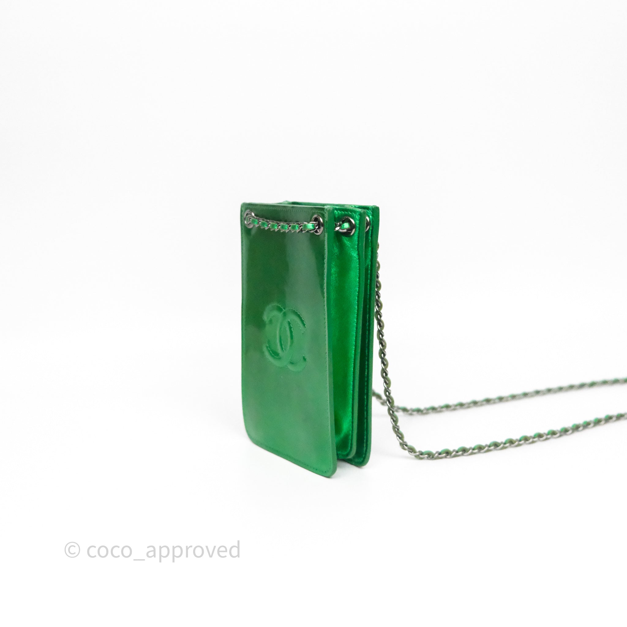 Chanel CC Phone Holder Metallic Green Patent Gun Metal Hardware