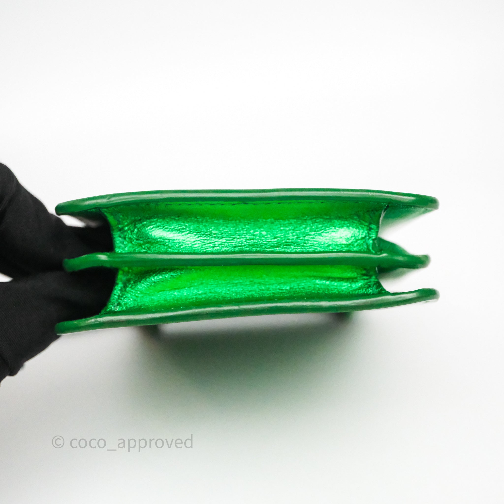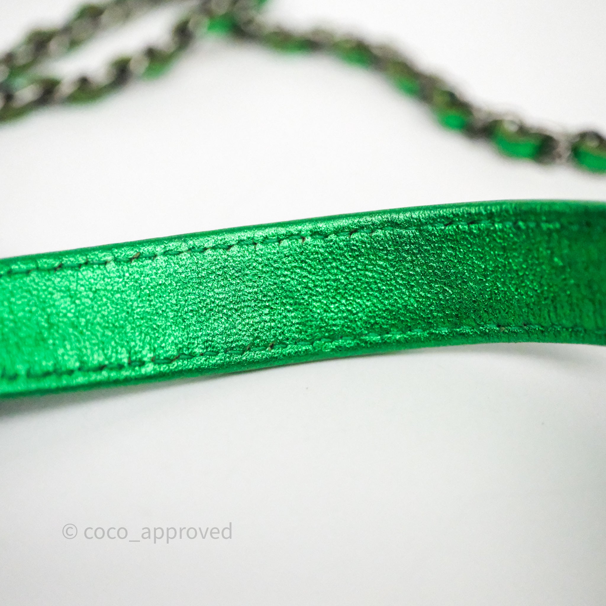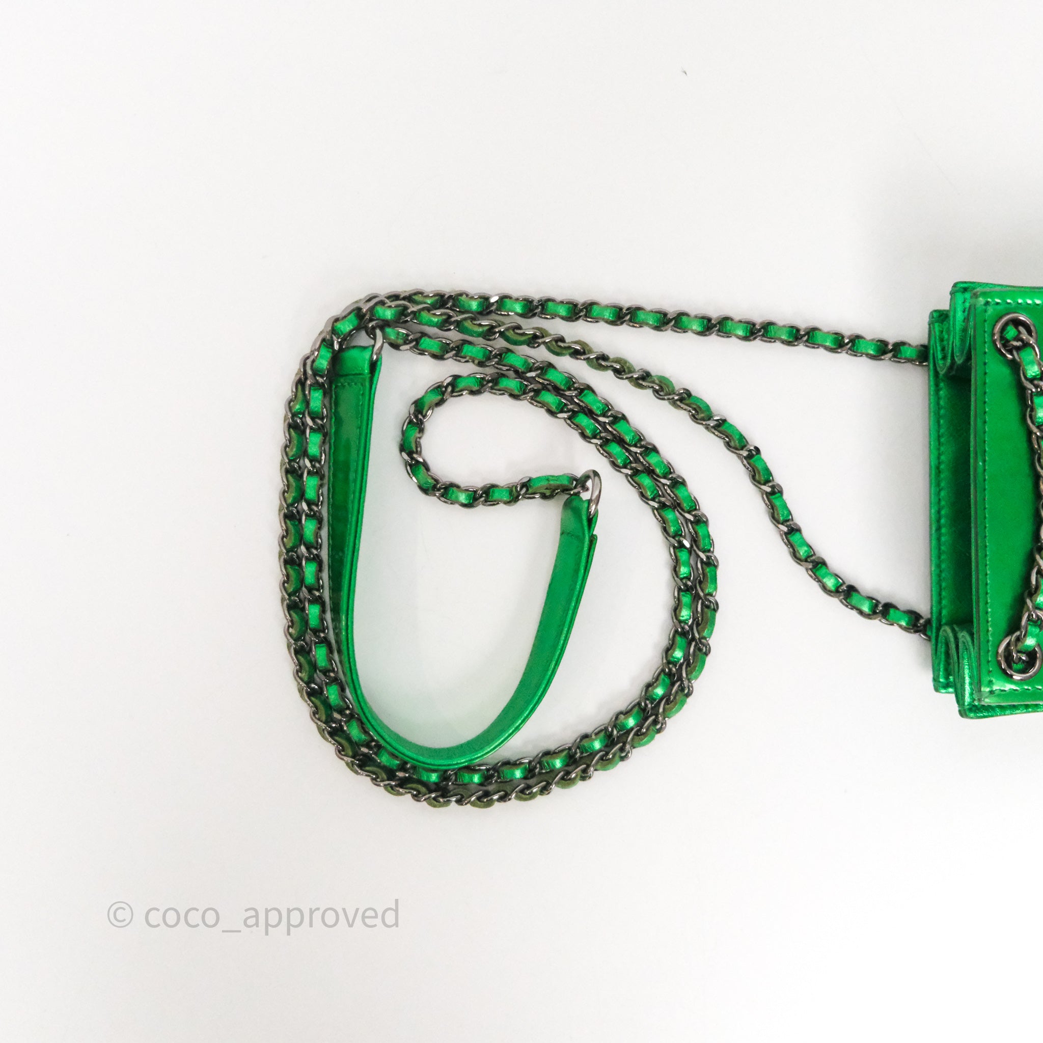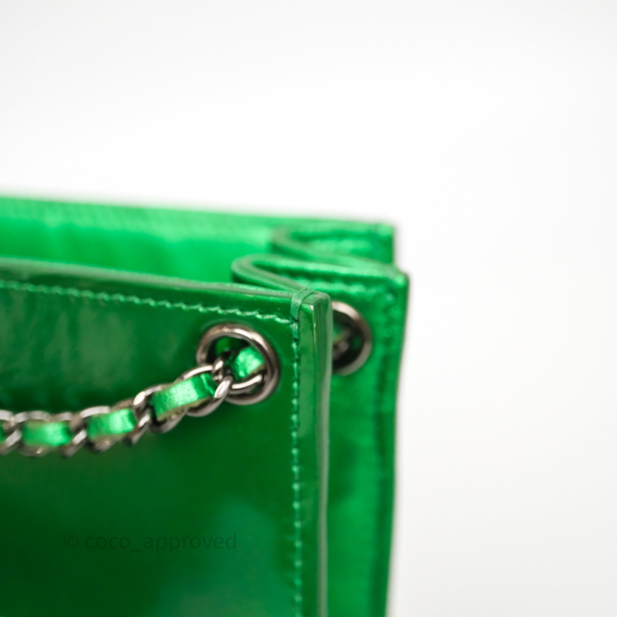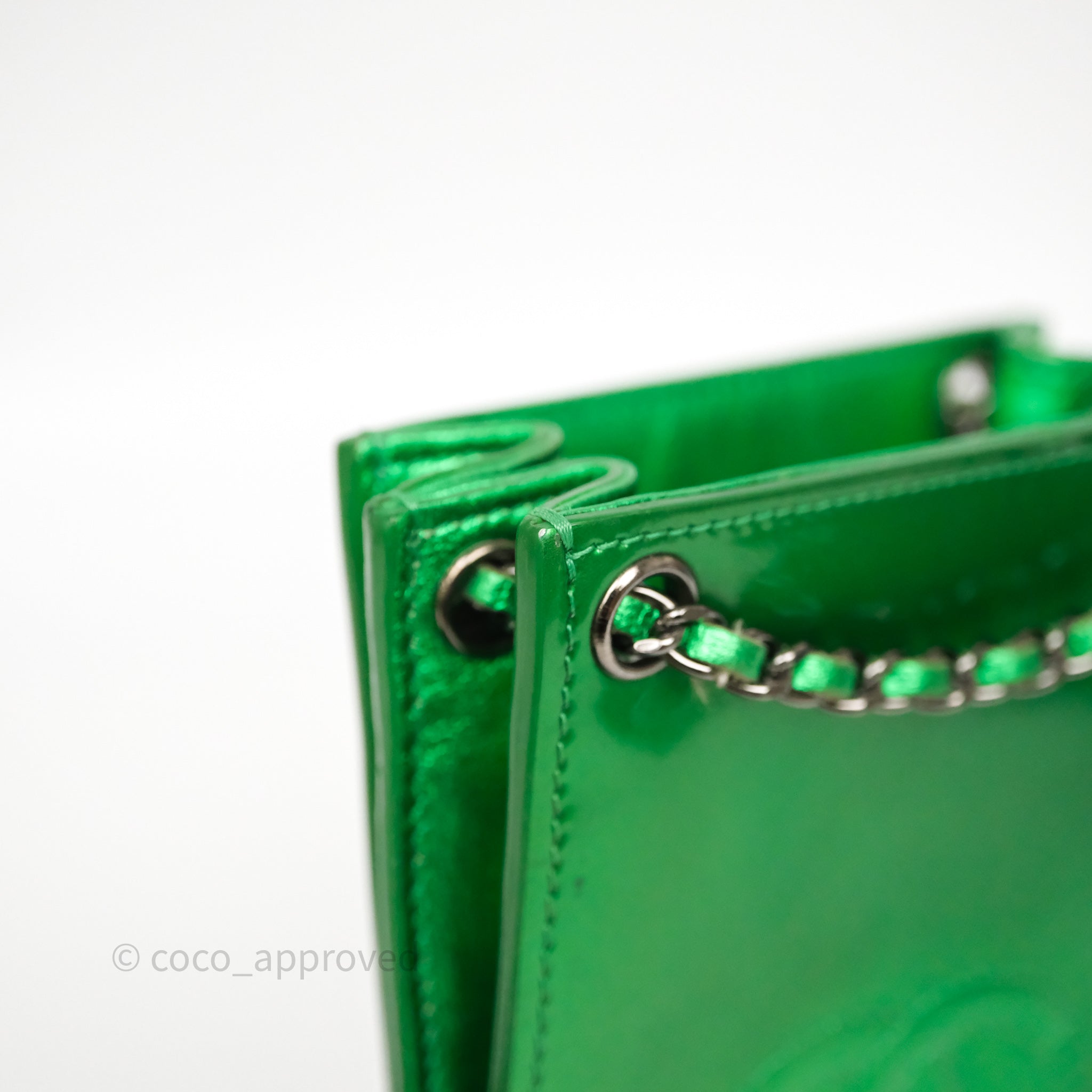 Chanel CC Phone Holder Metallic Green Patent Gun Metal Hardware
