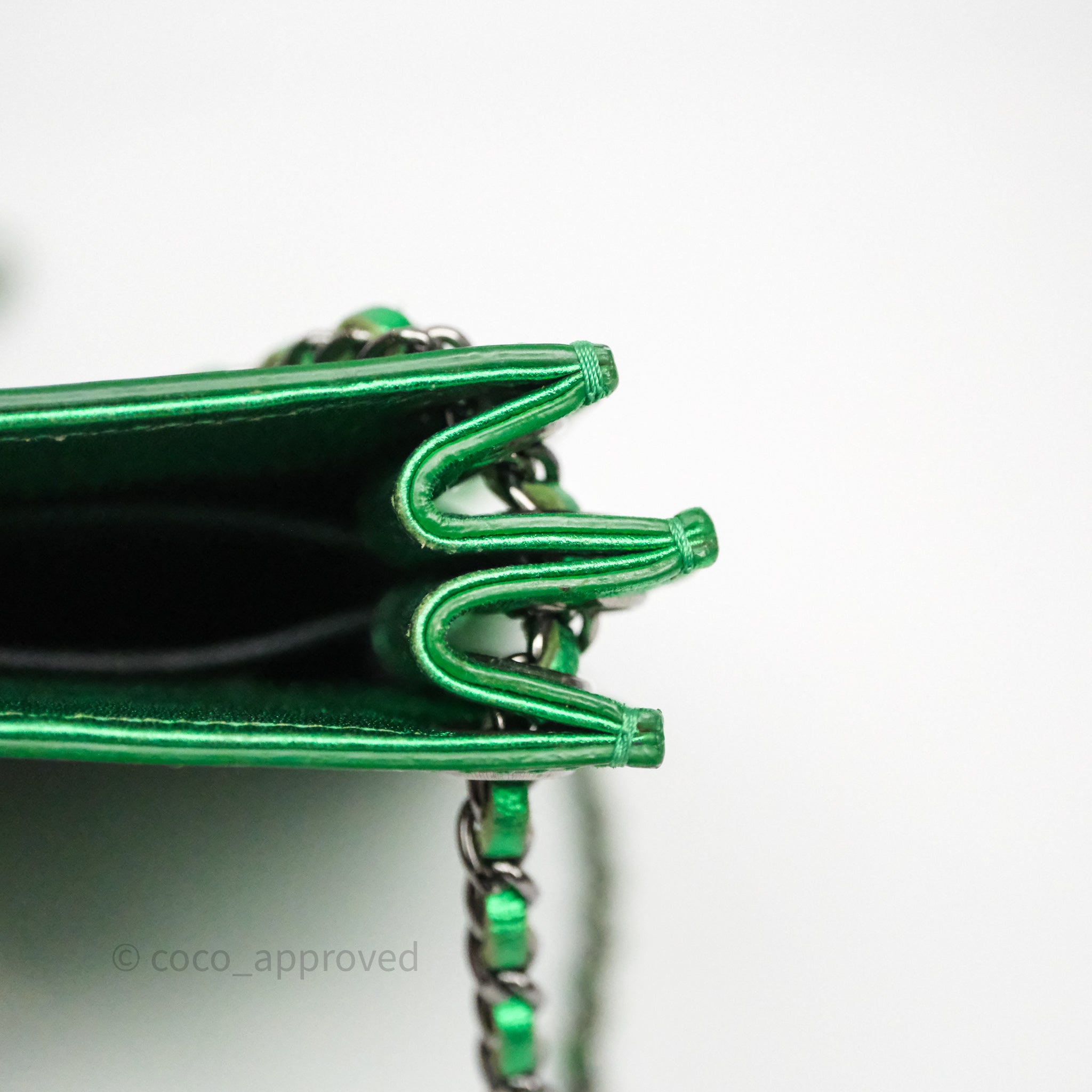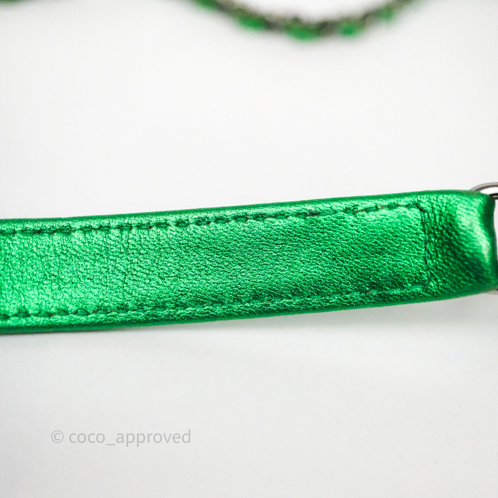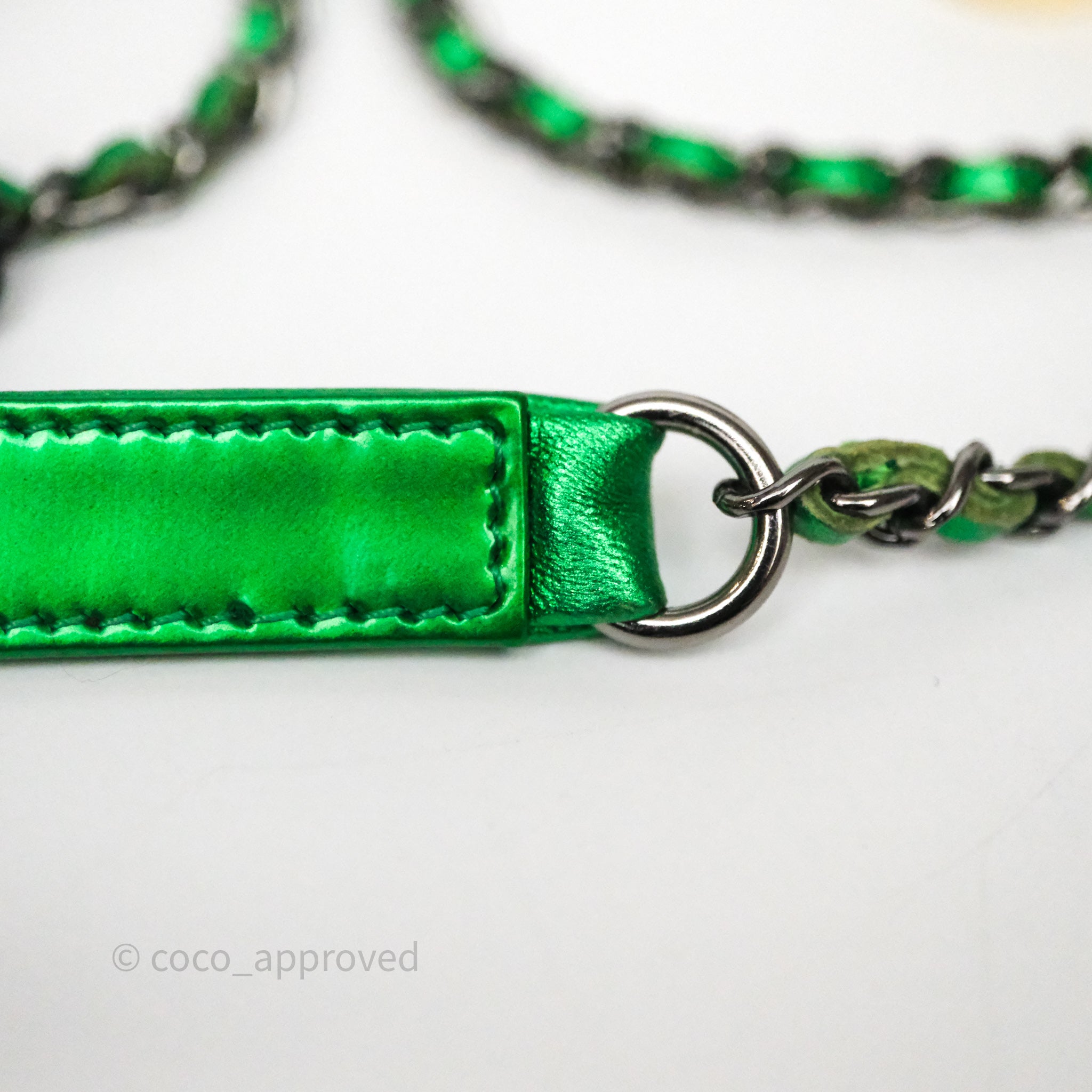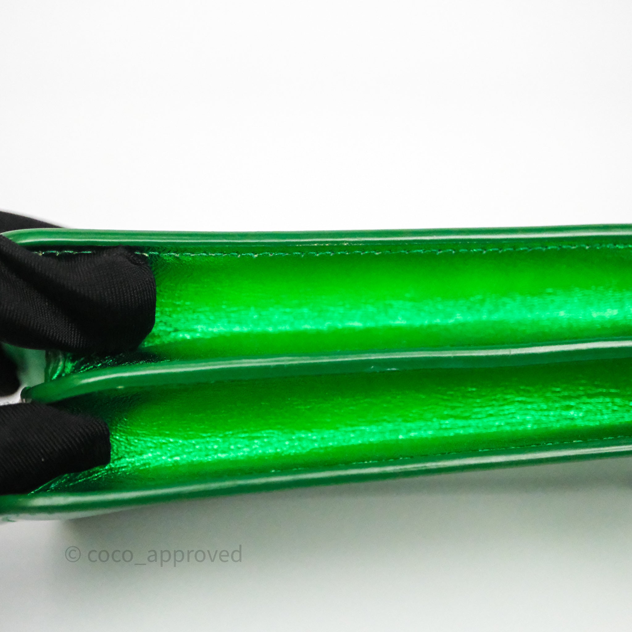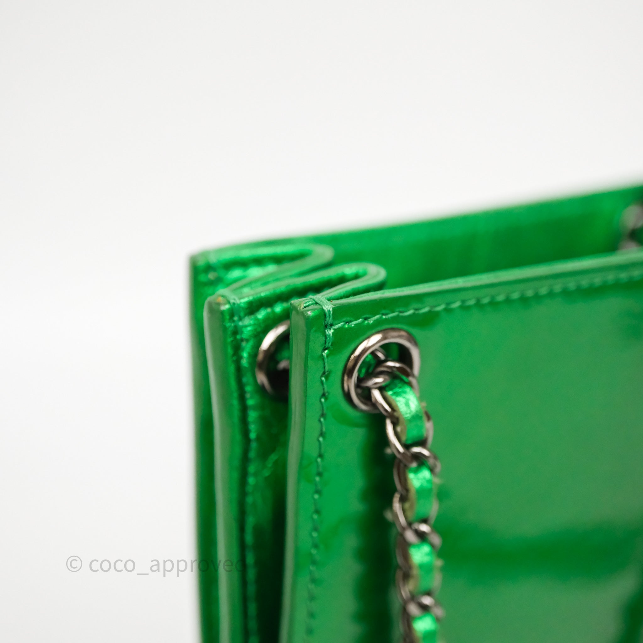 Chanel CC Phone Holder Metallic Green Patent Gun Metal Hardware