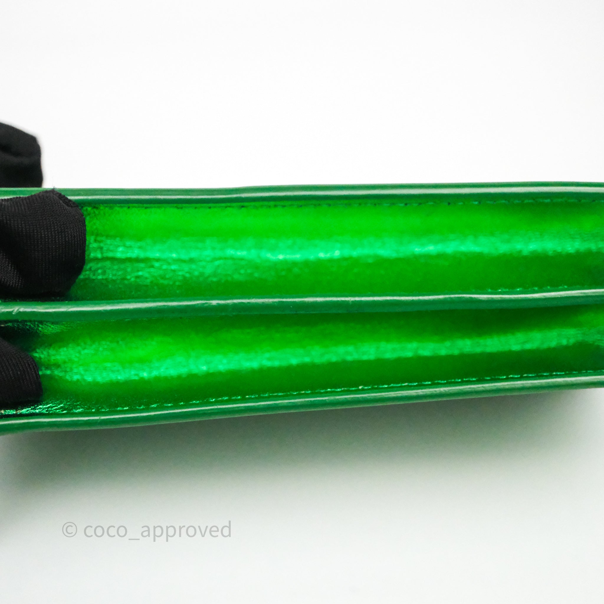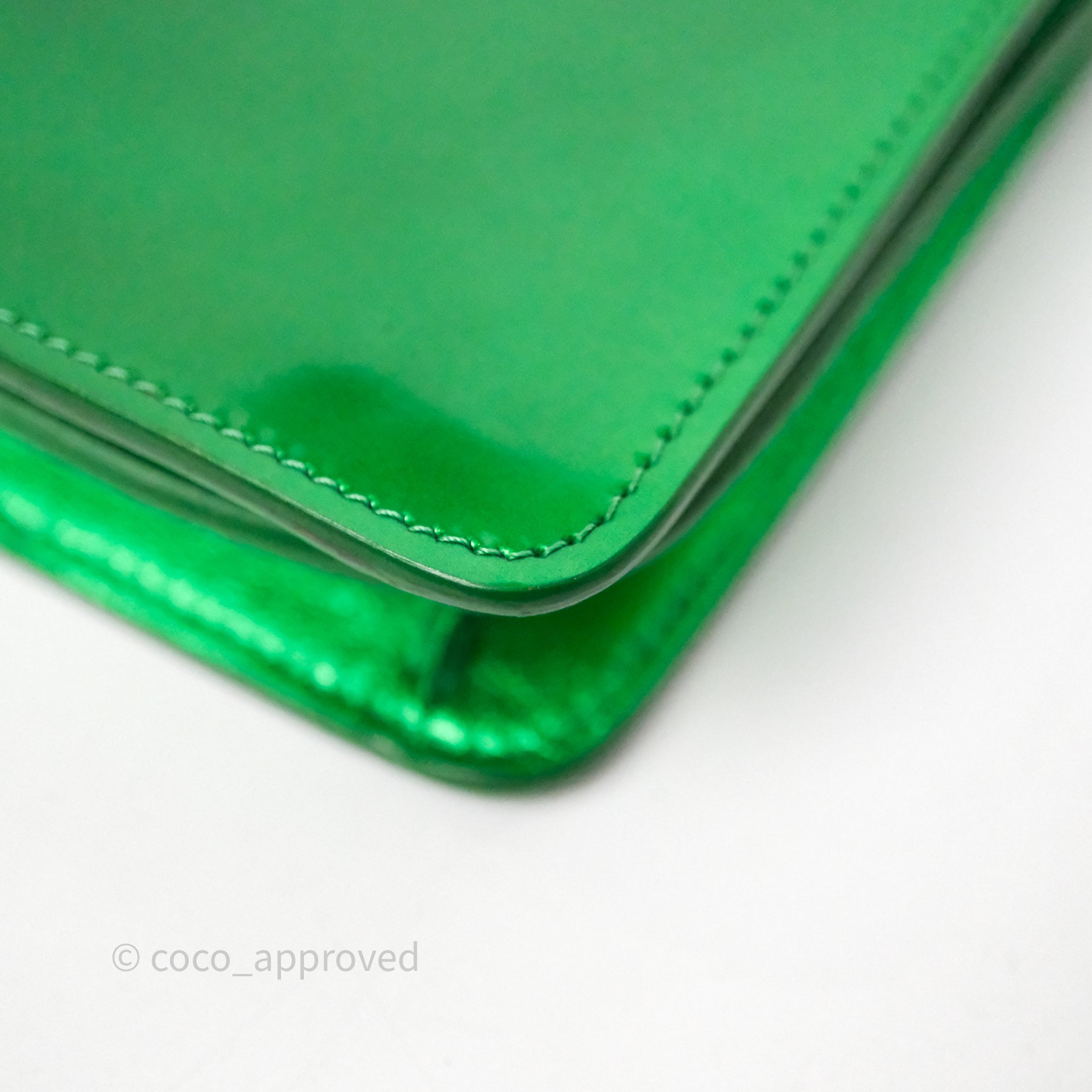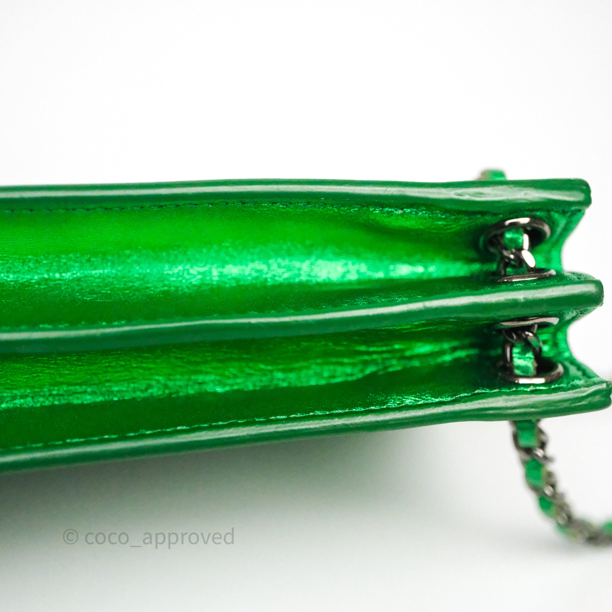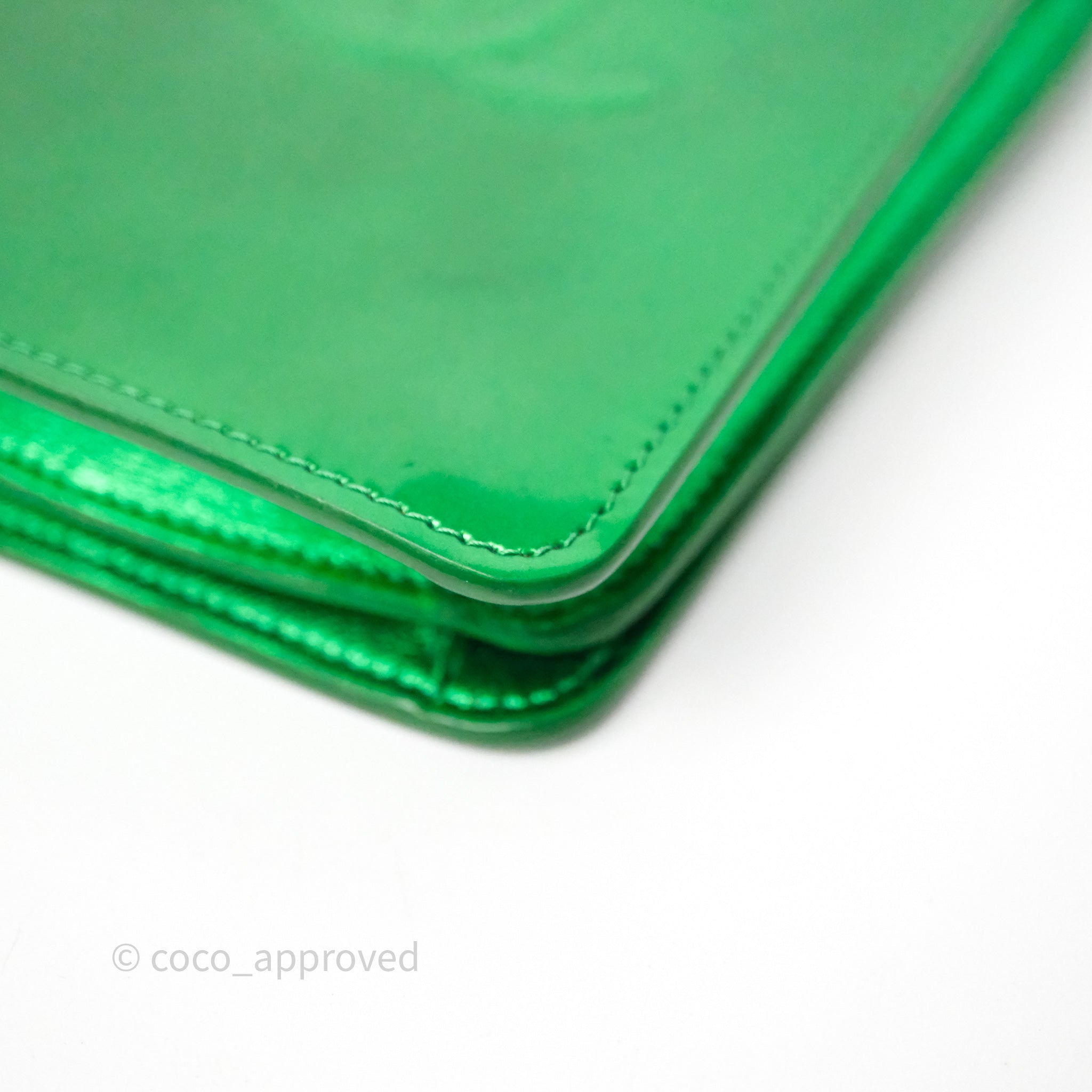 Chanel CC Phone Holder Metallic Green Patent Gun Metal Hardware