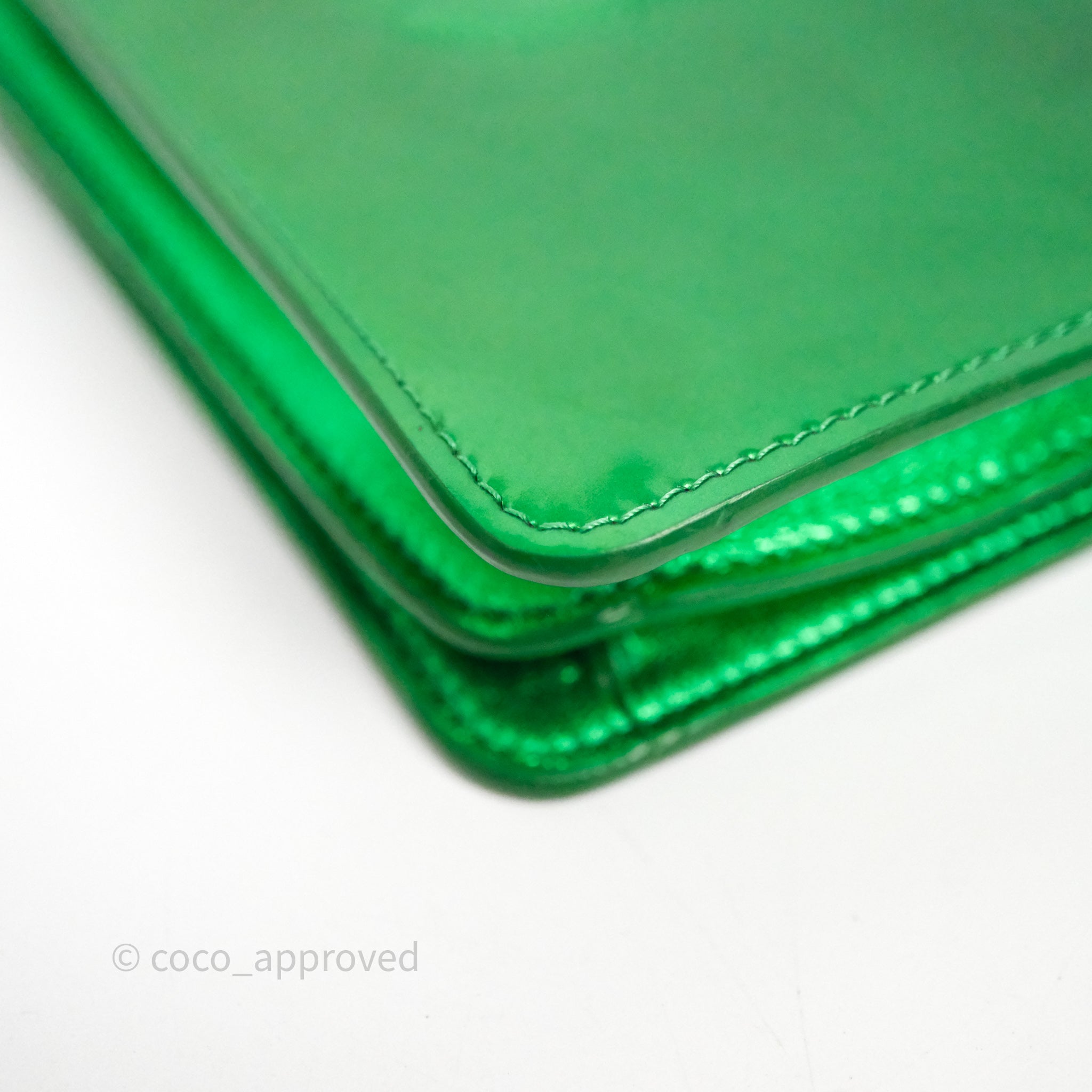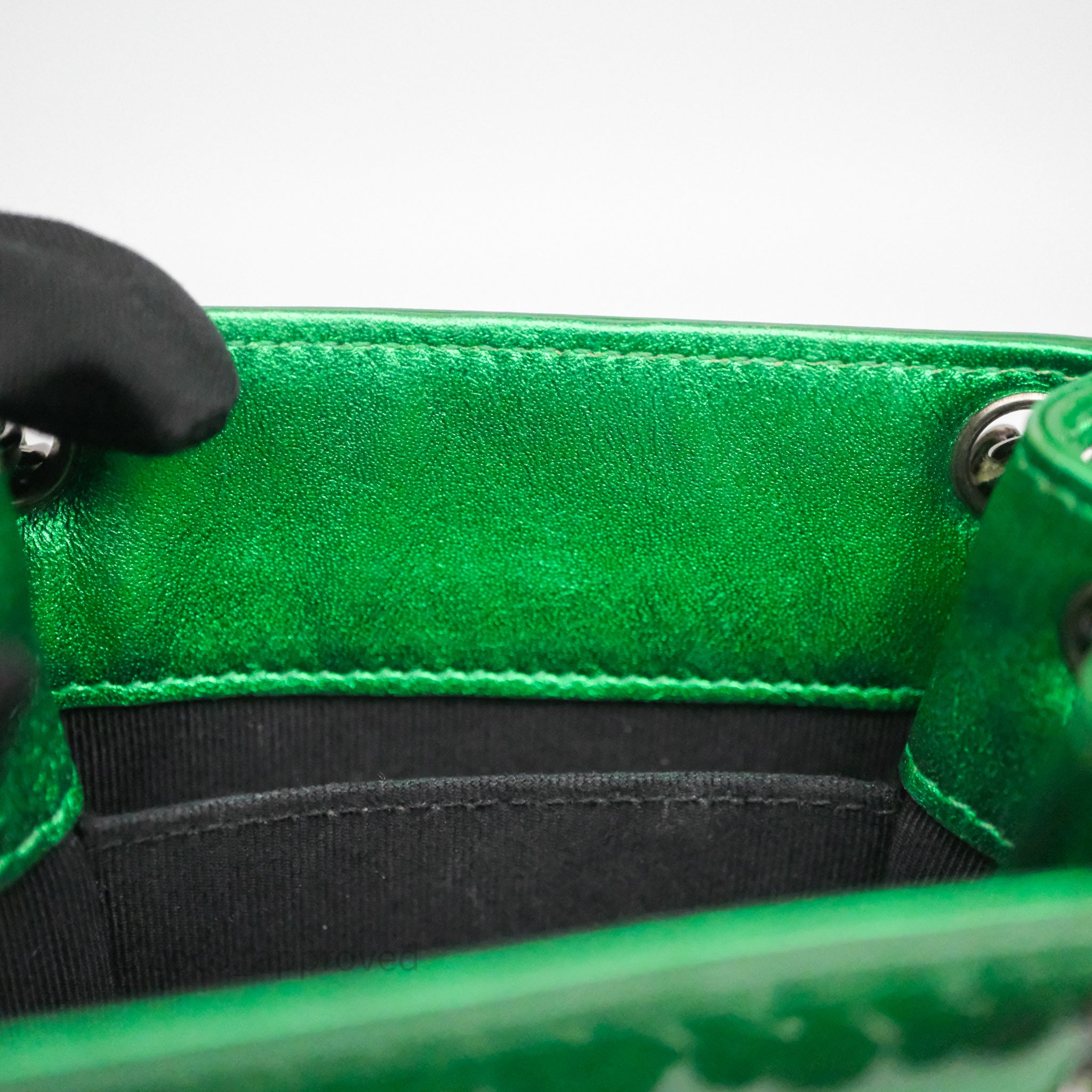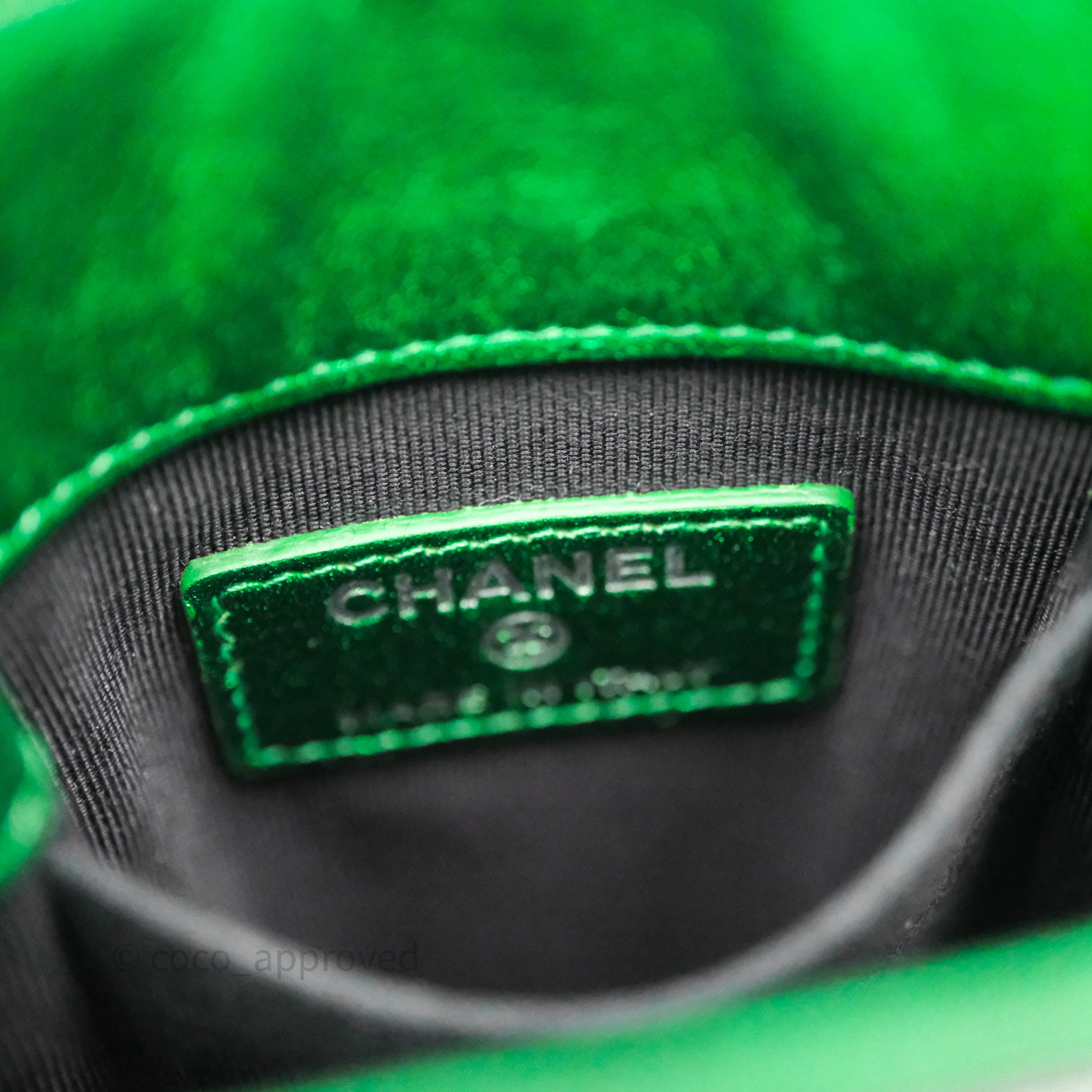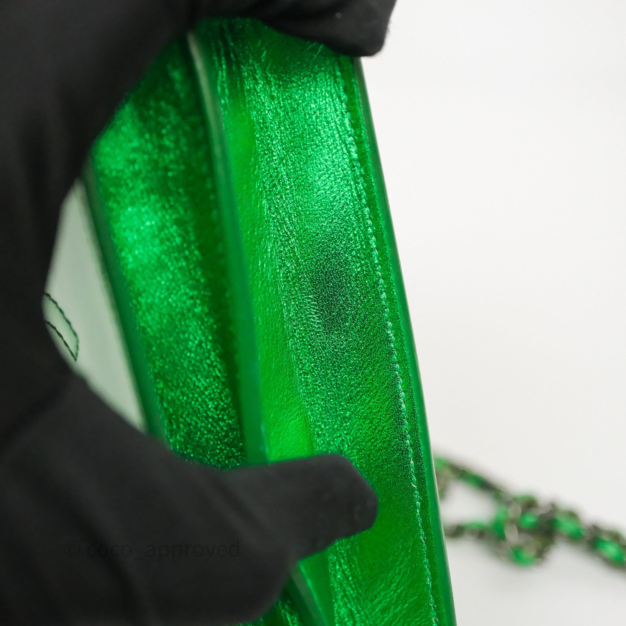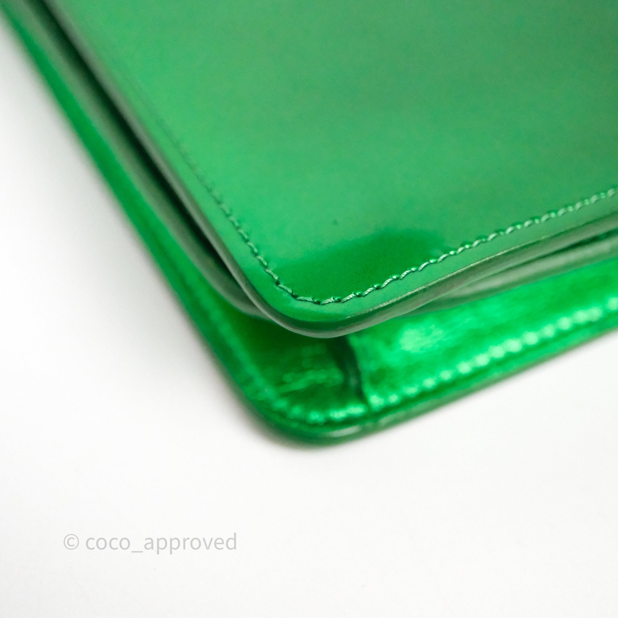 Chanel CC Phone Holder Metallic Green Patent Gun Metal Hardware