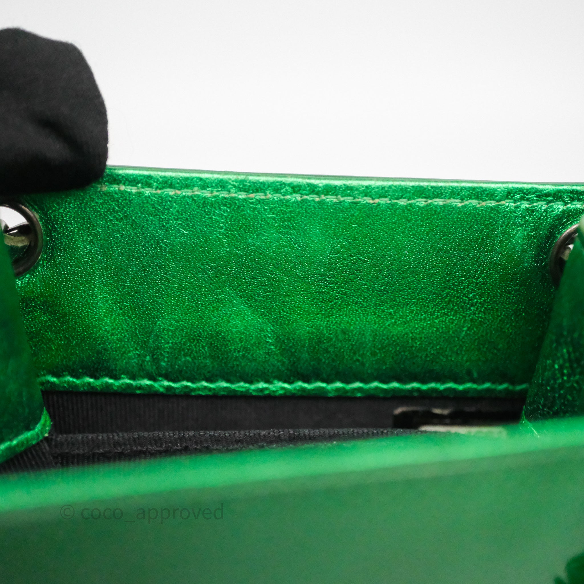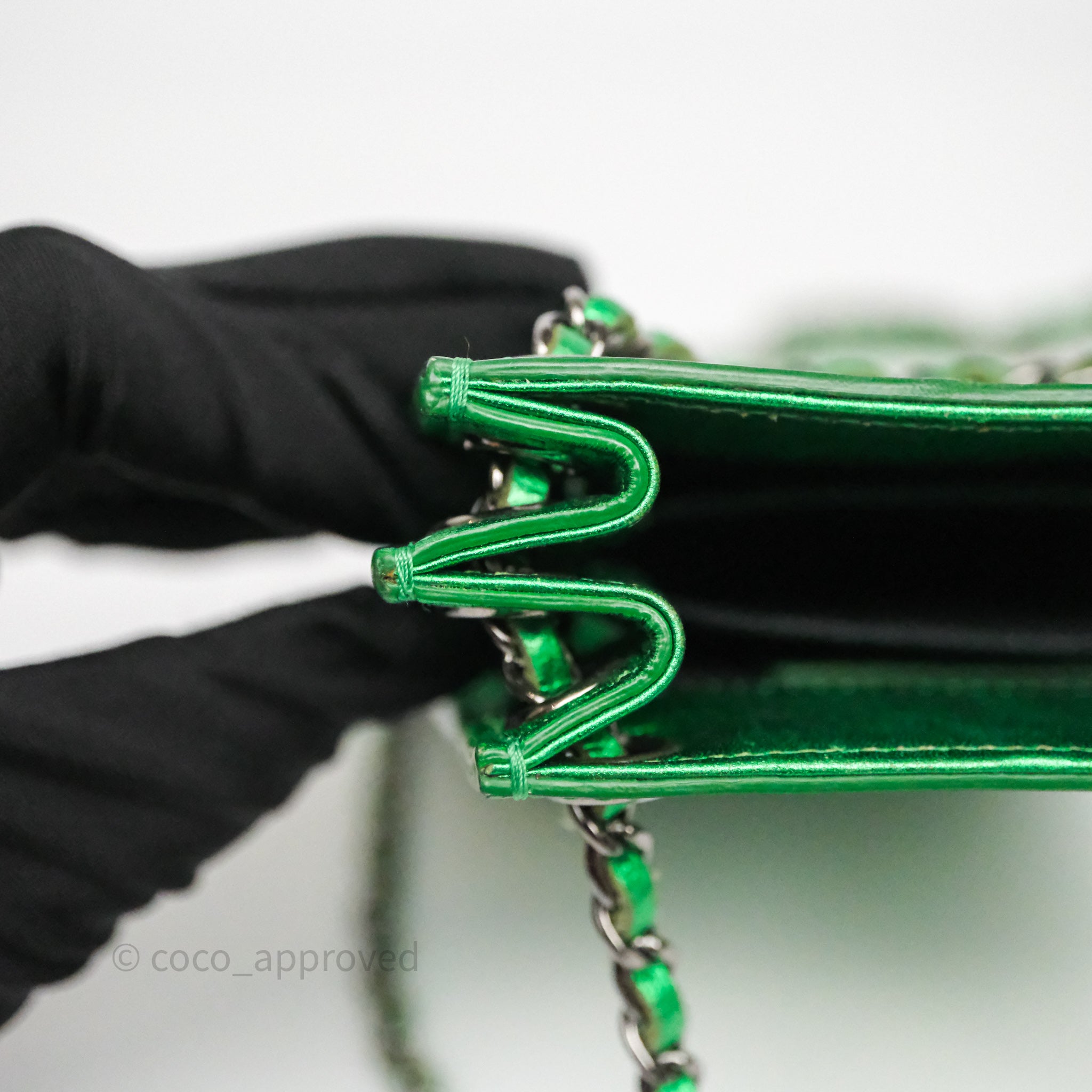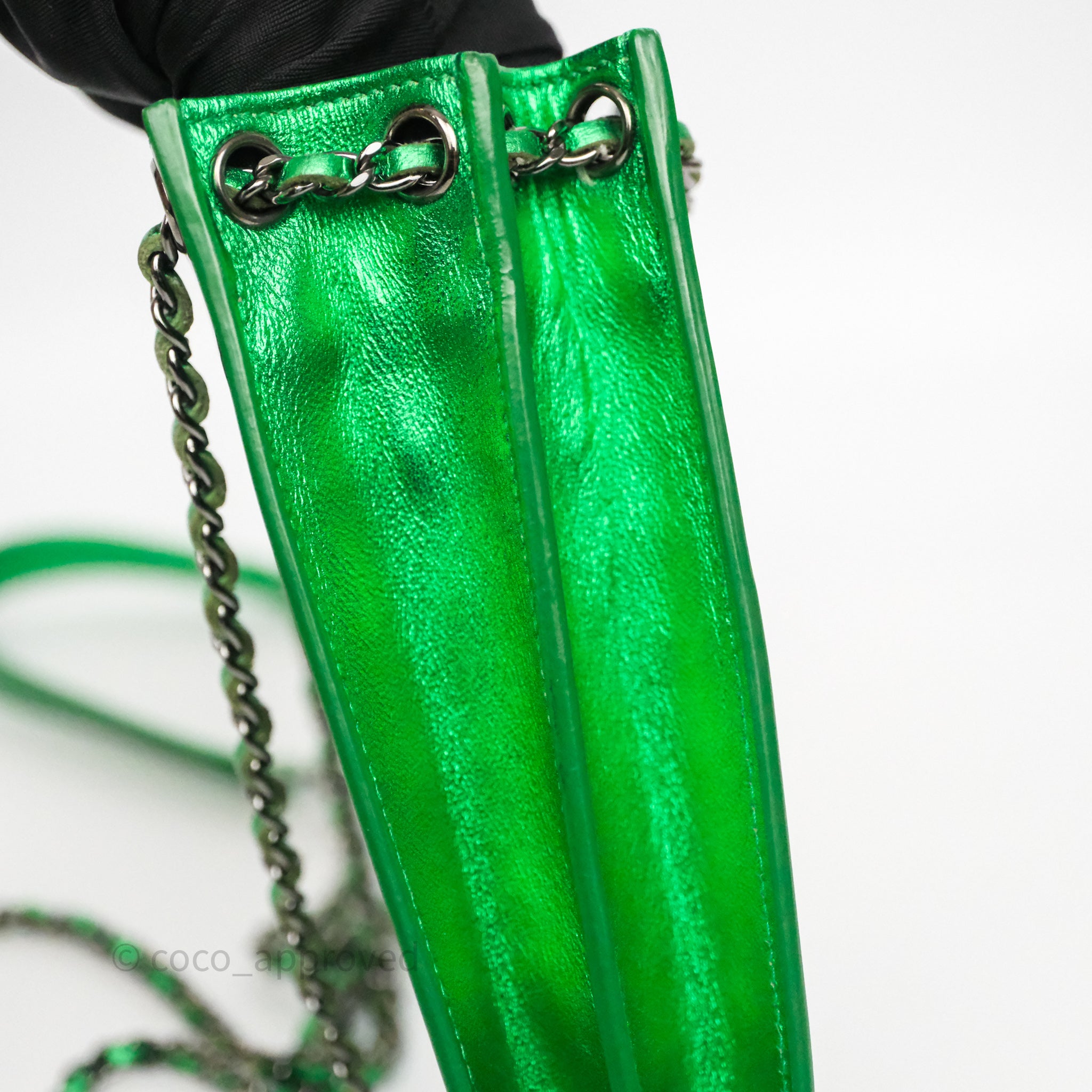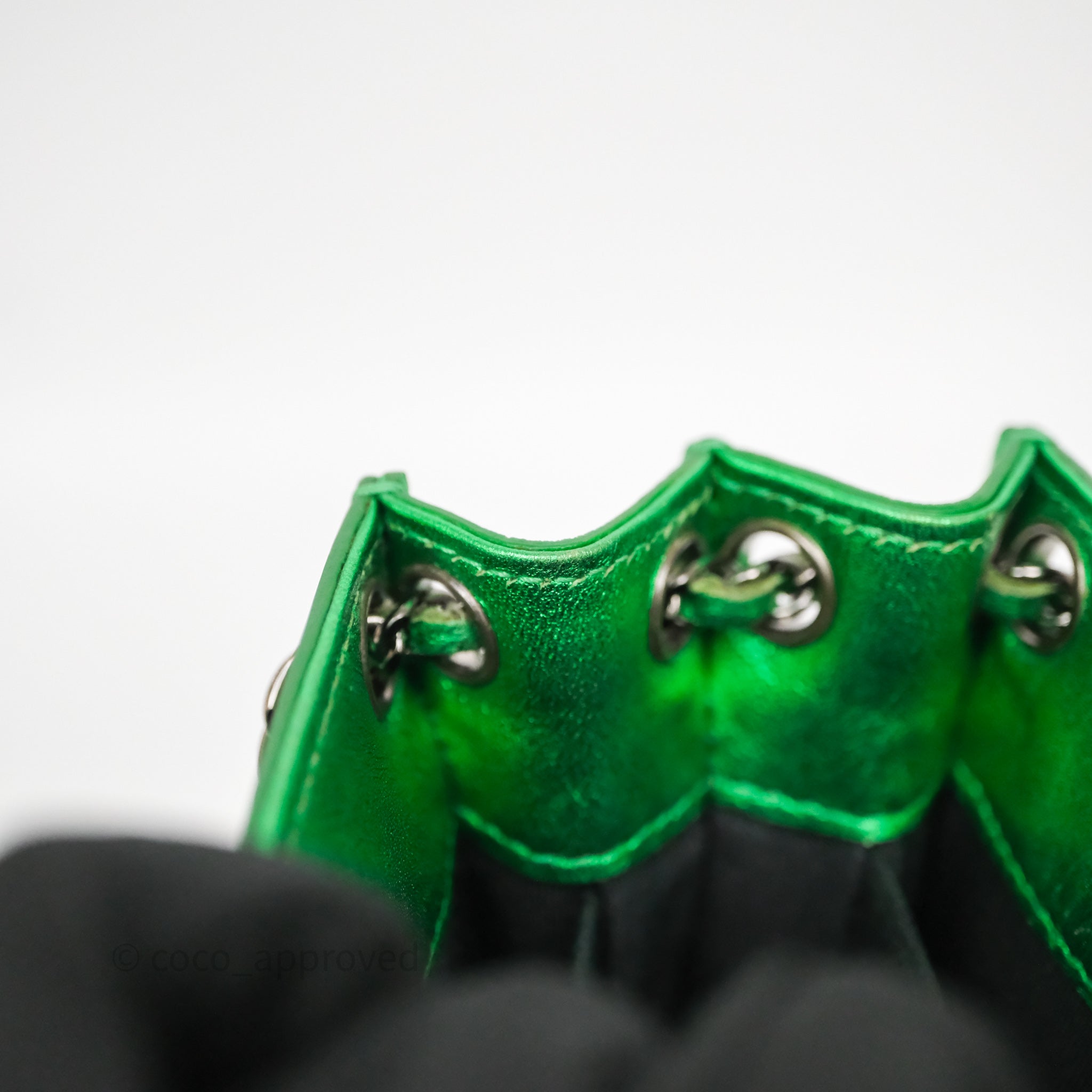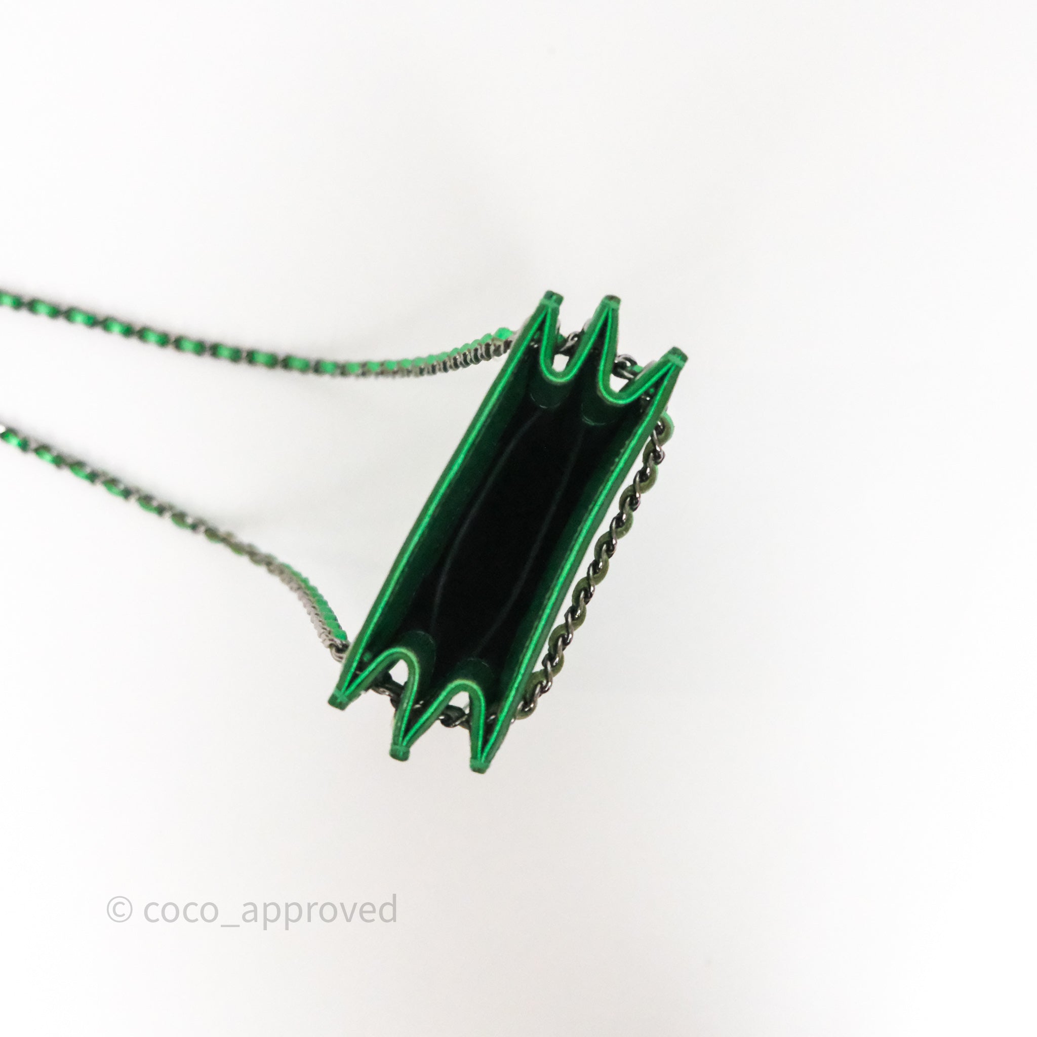 Chanel CC Phone Holder Metallic Green Patent Gun Metal Hardware