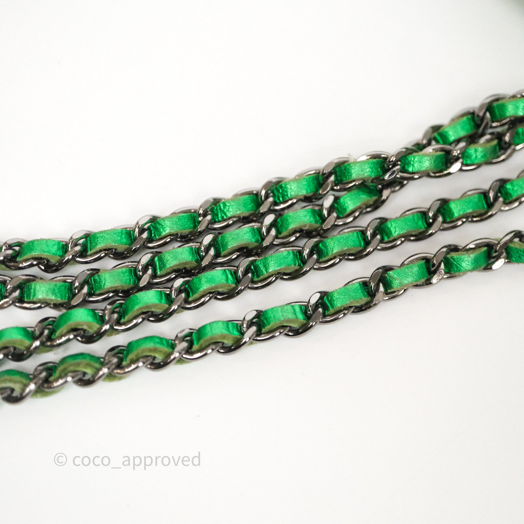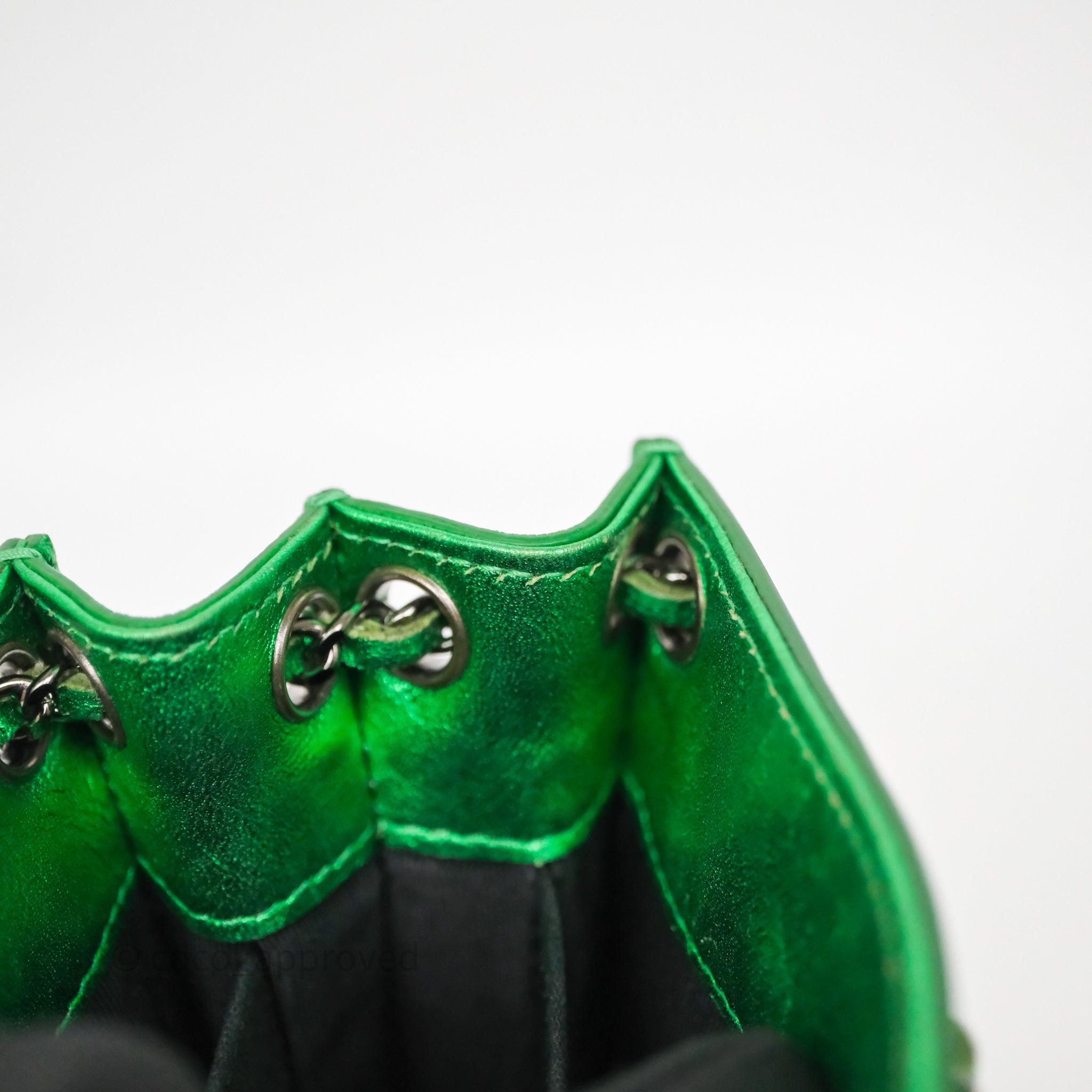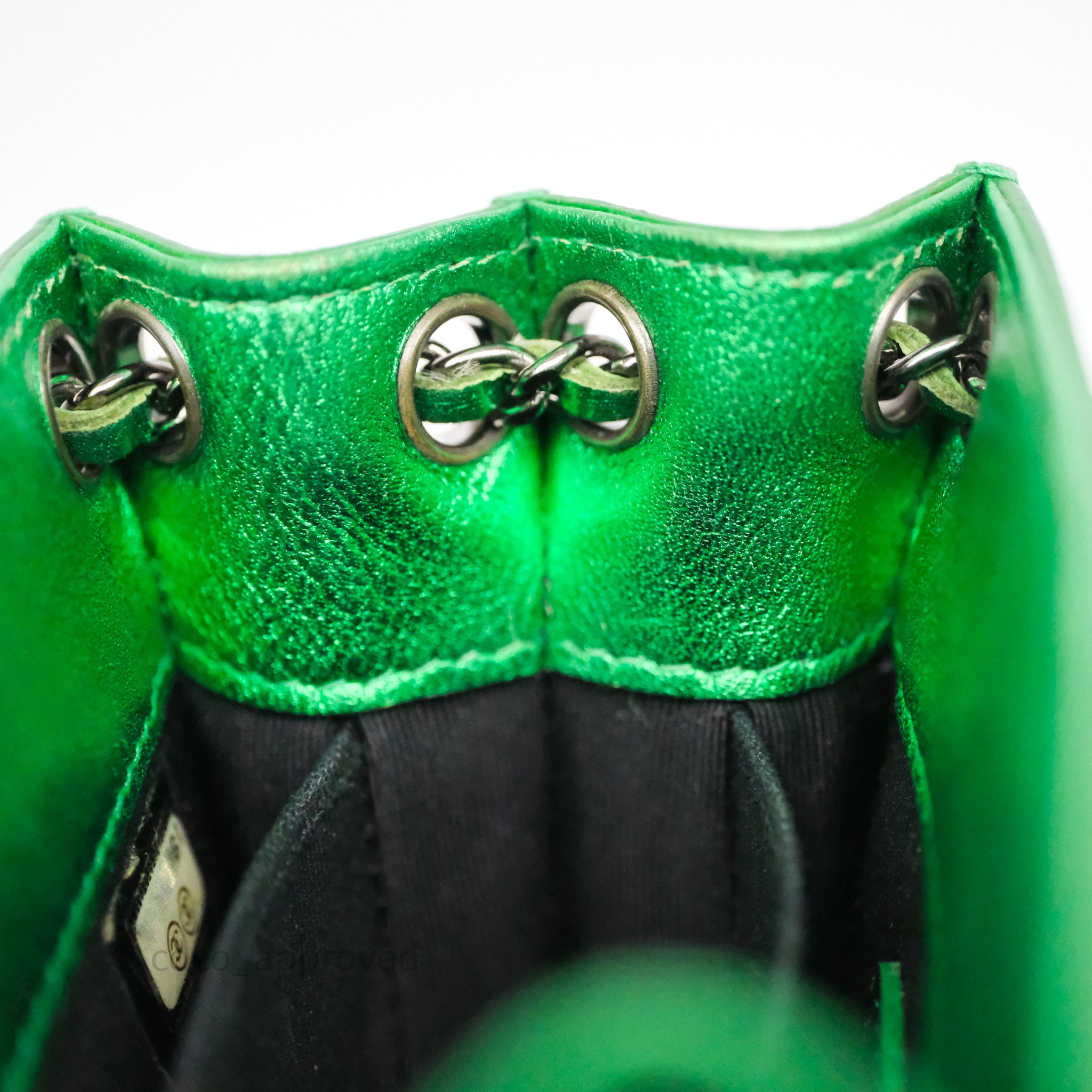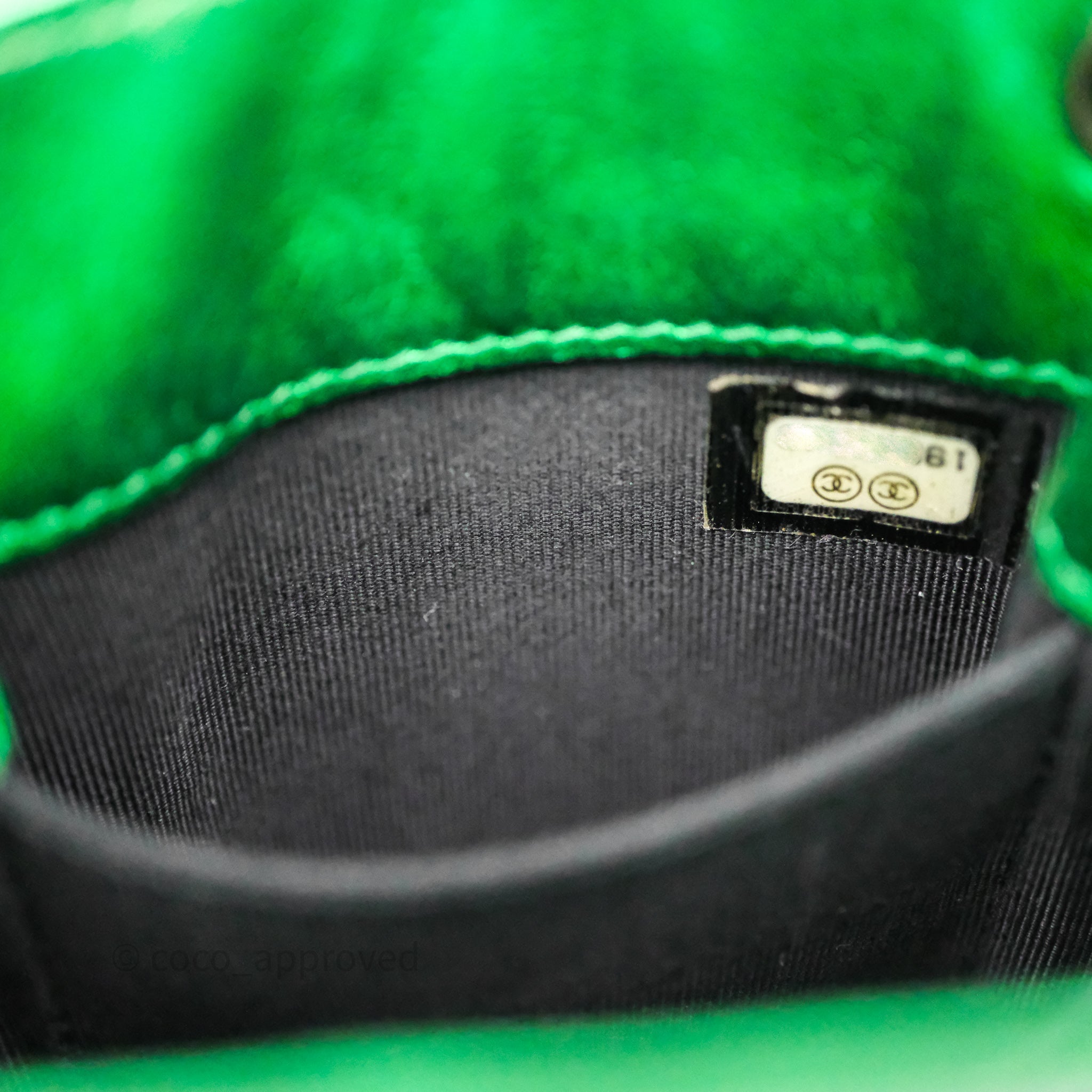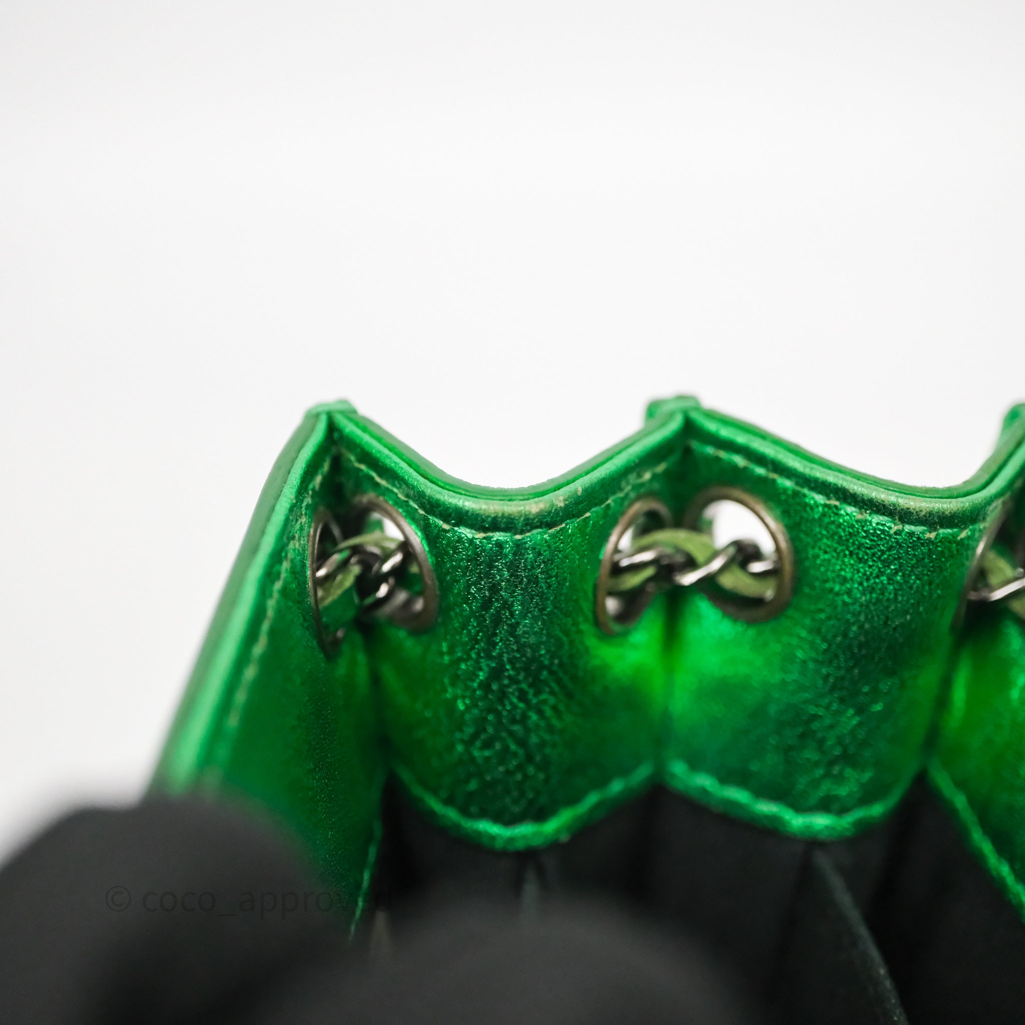 Chanel CC Phone Holder Metallic Green Patent Gun Metal Hardware