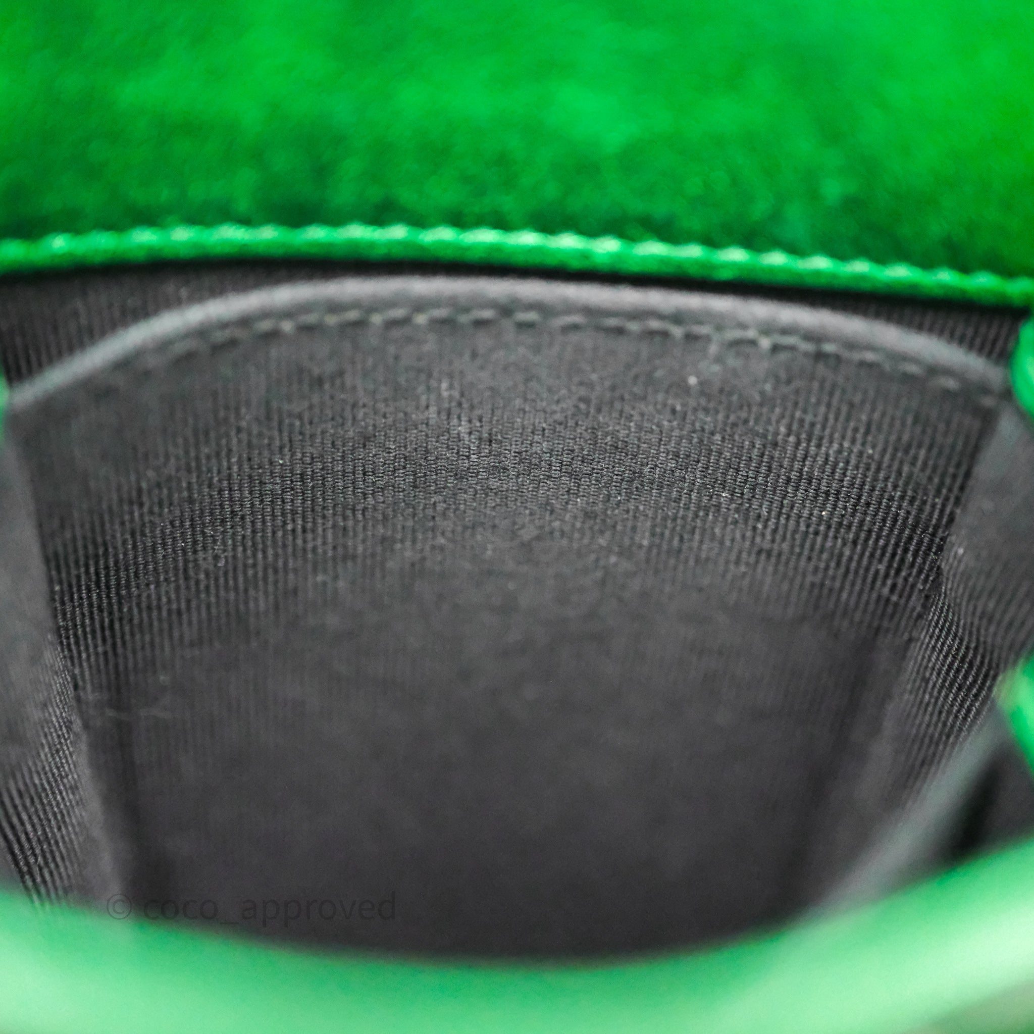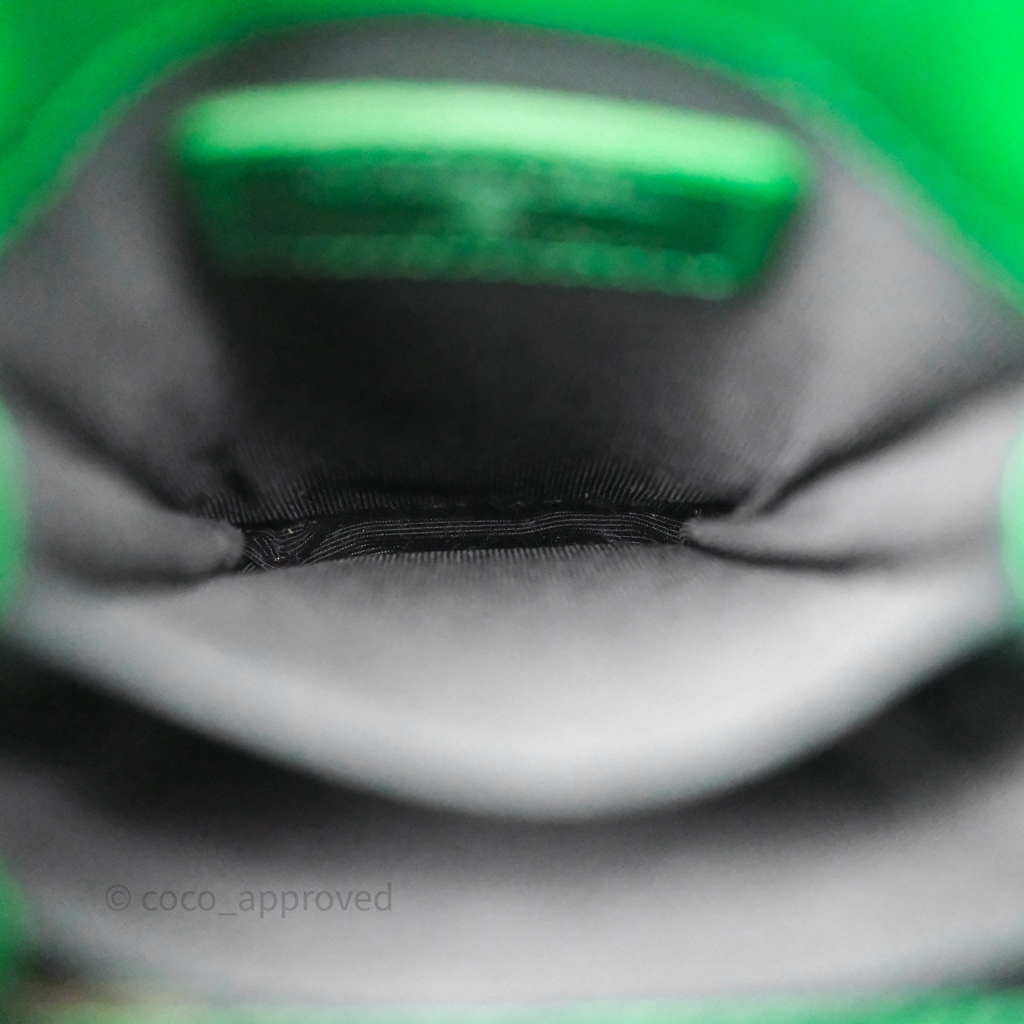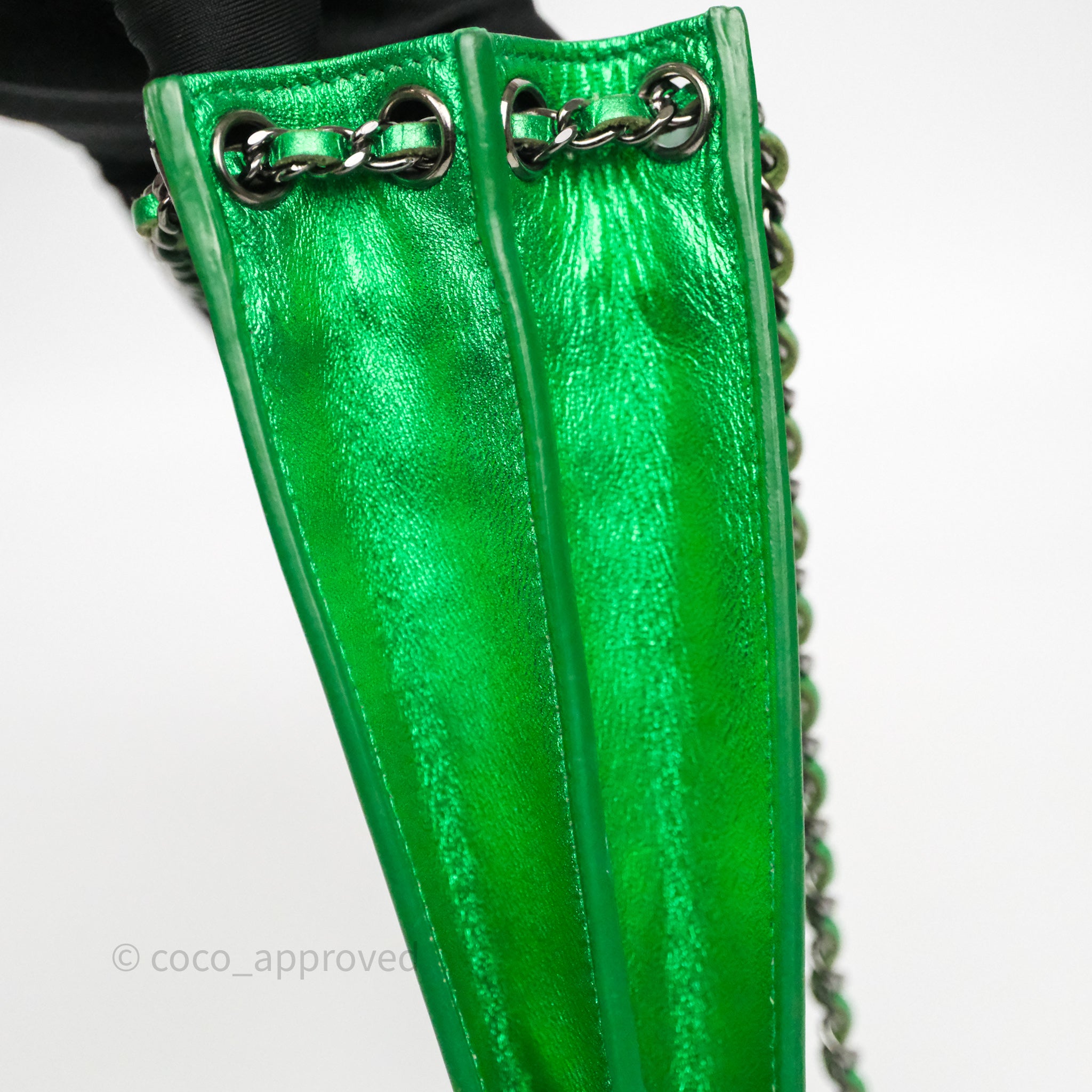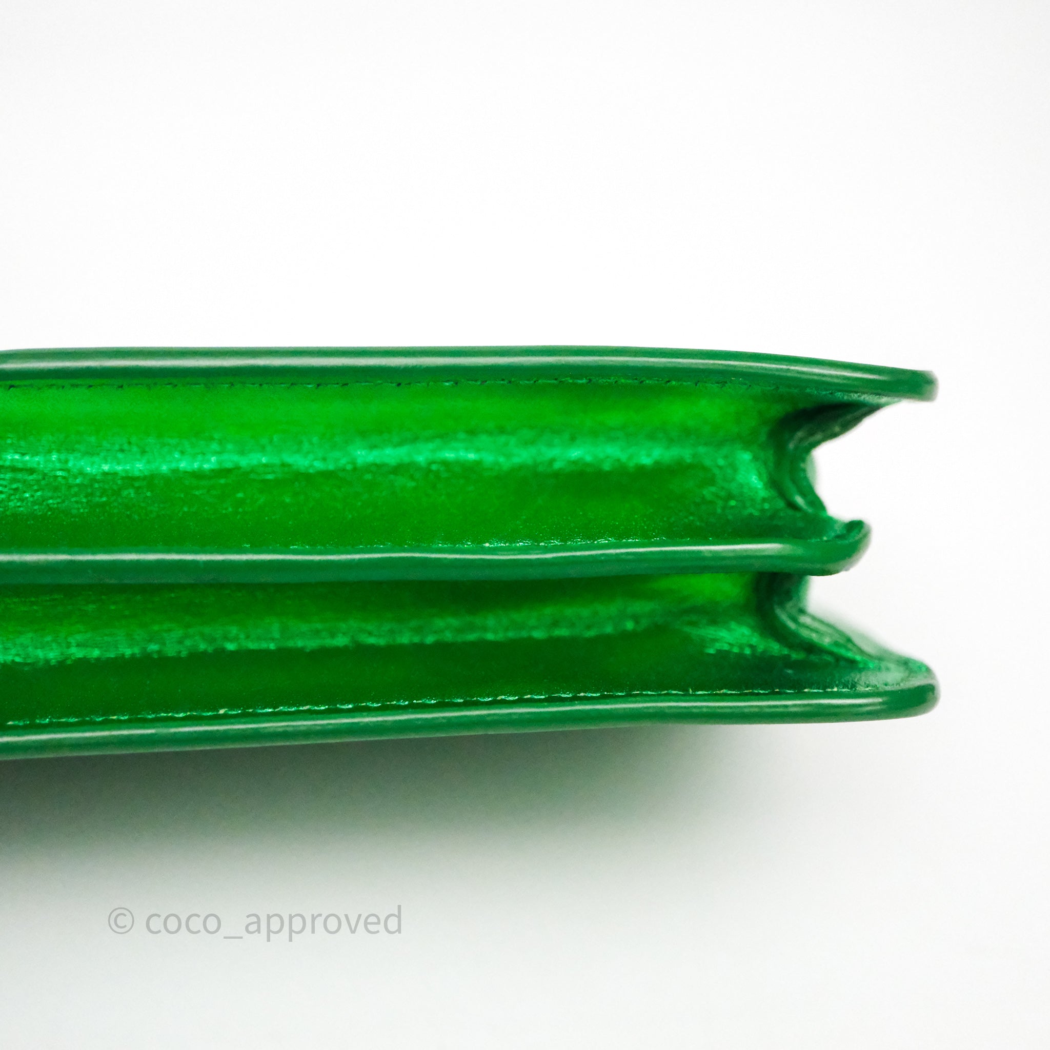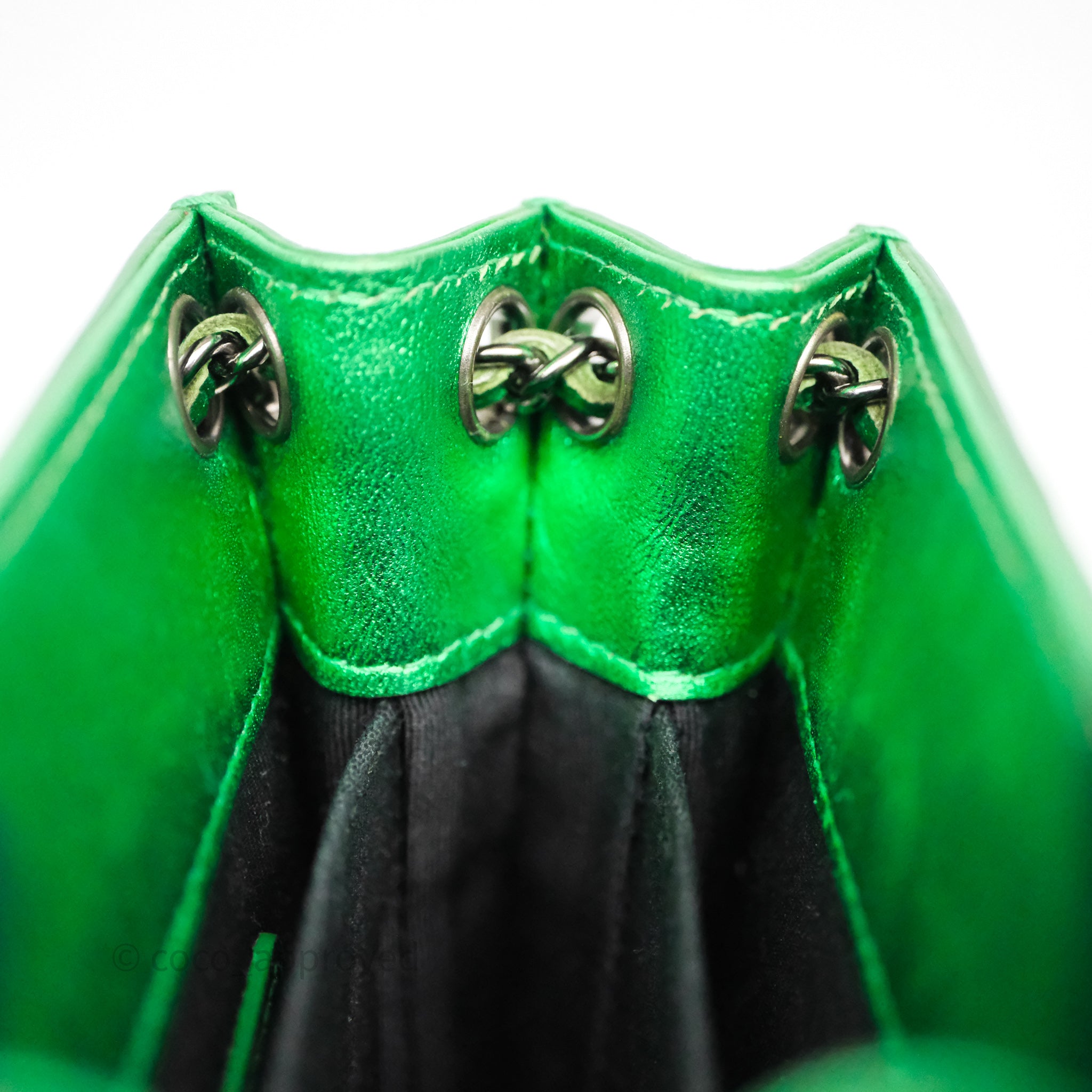 Chanel CC Phone Holder Metallic Green Patent Gun Metal Hardware