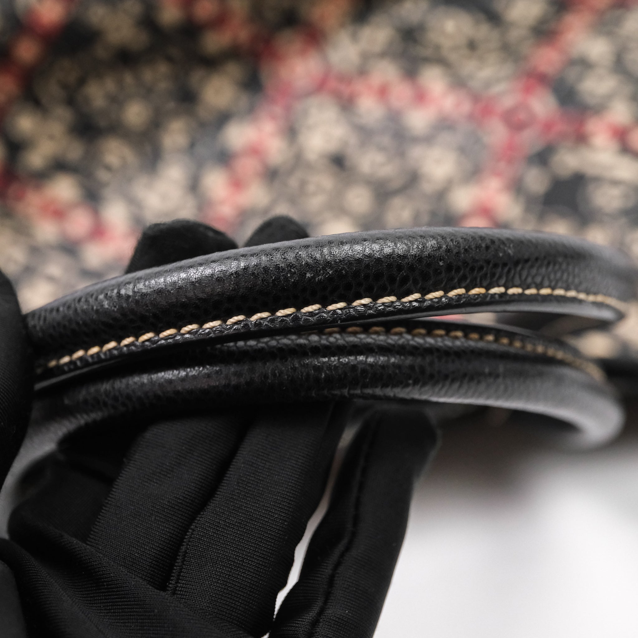 8.8/10 very good condition. Marks in interior and surface. Yellowing on stitches. Rubbing on top rims and handle.