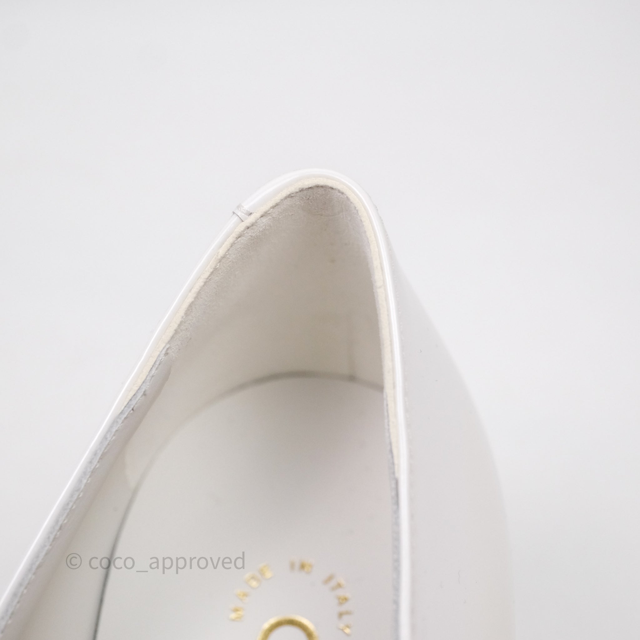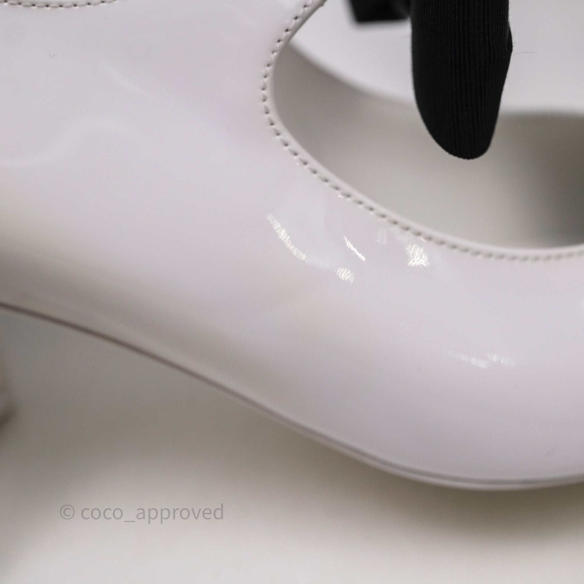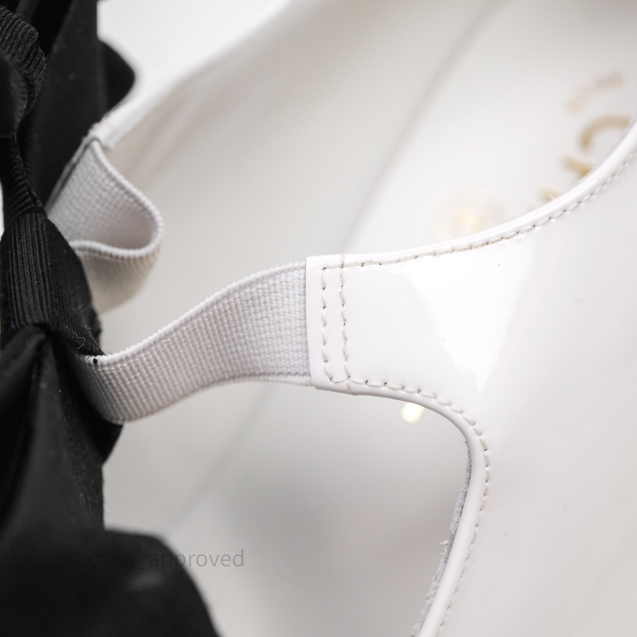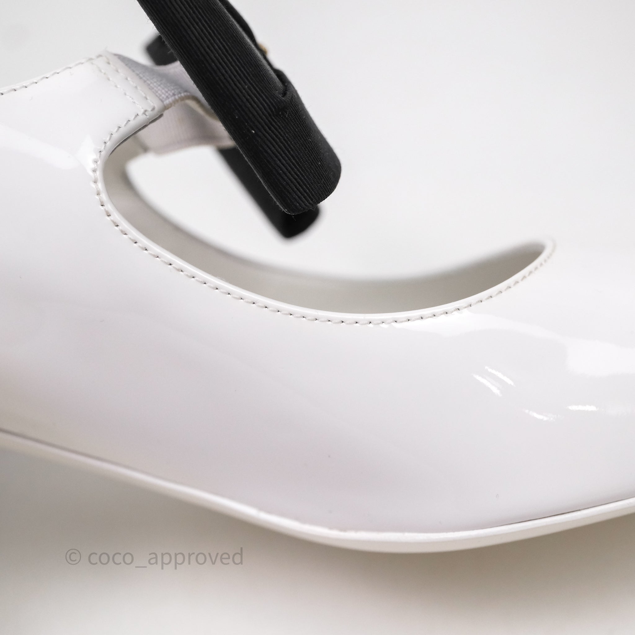 Chanel CC Ribbon Mary Jane Block Heels White Patent Size 39