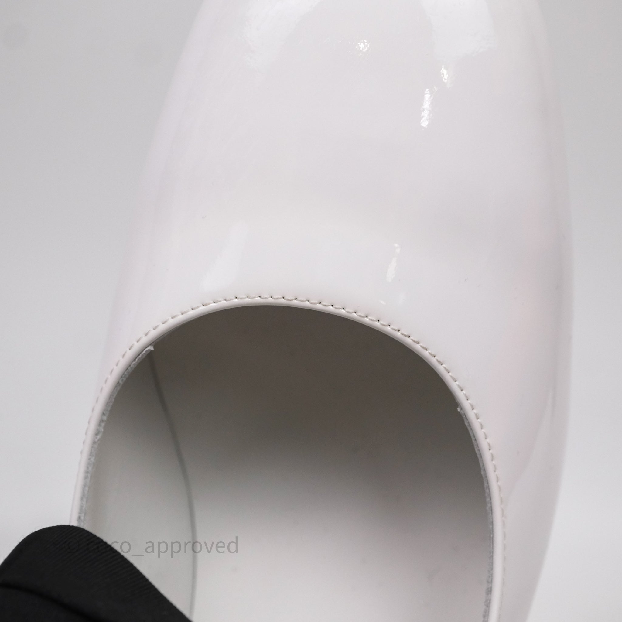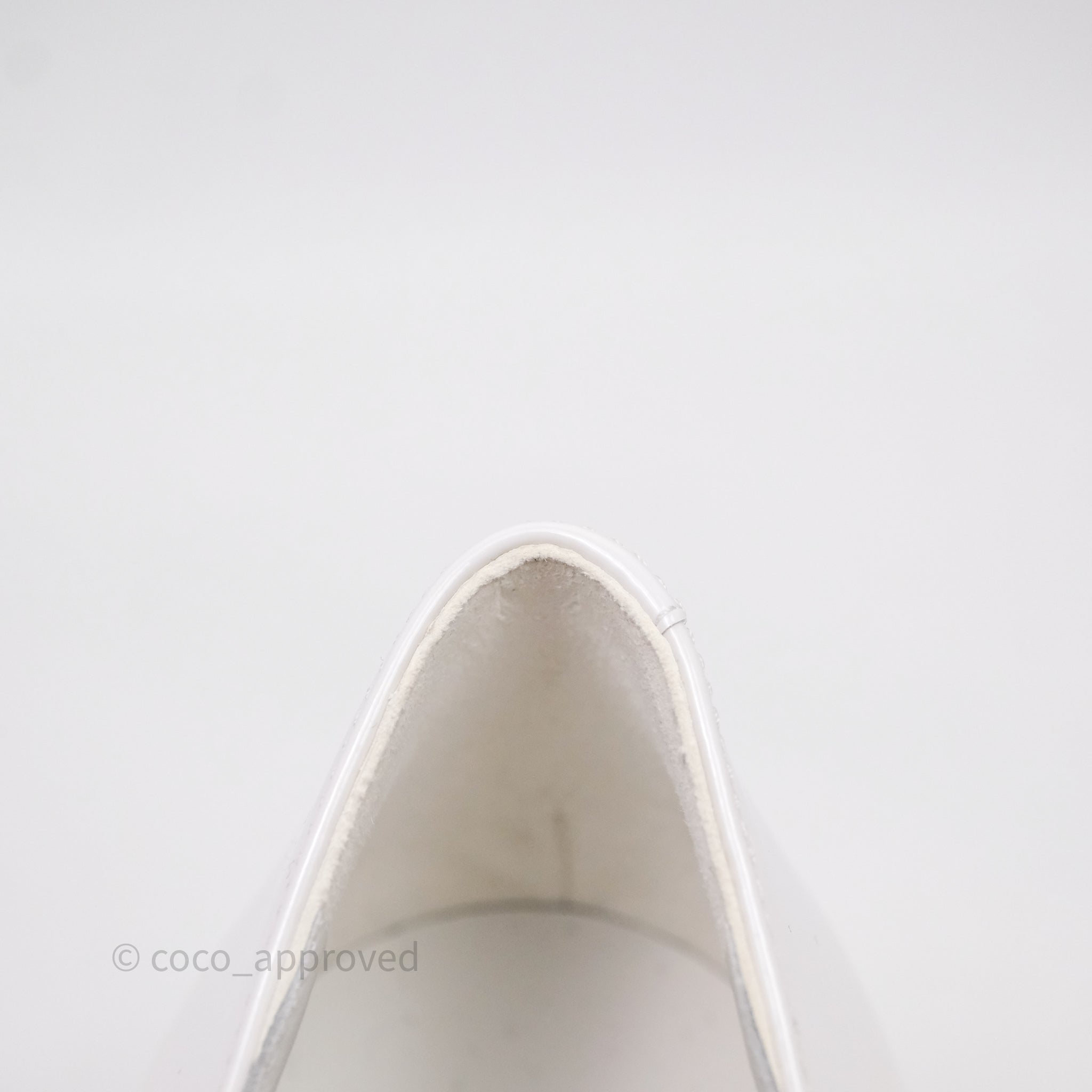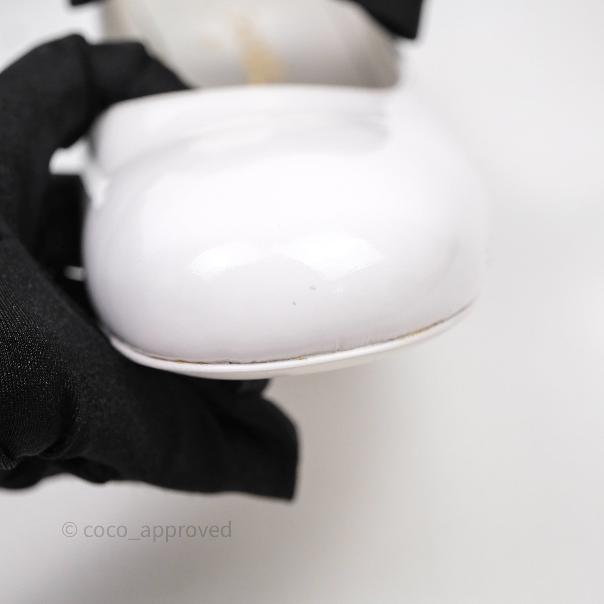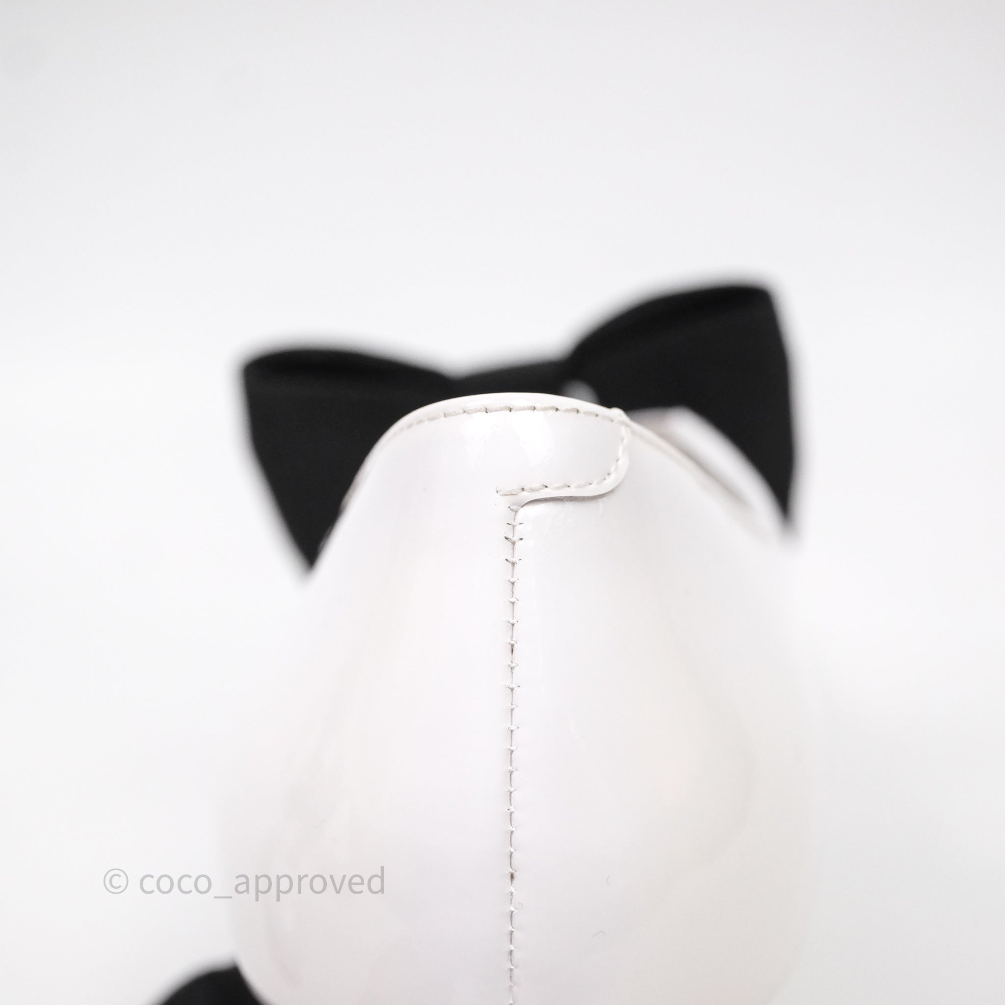 Chanel CC Ribbon Mary Jane Block Heels White Patent Size 39