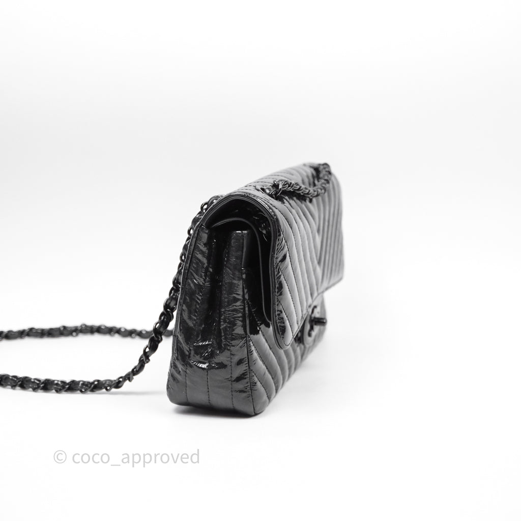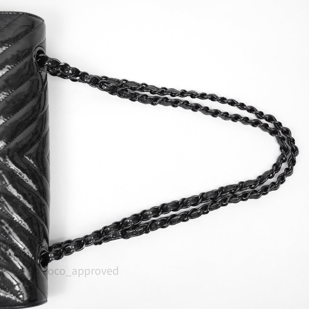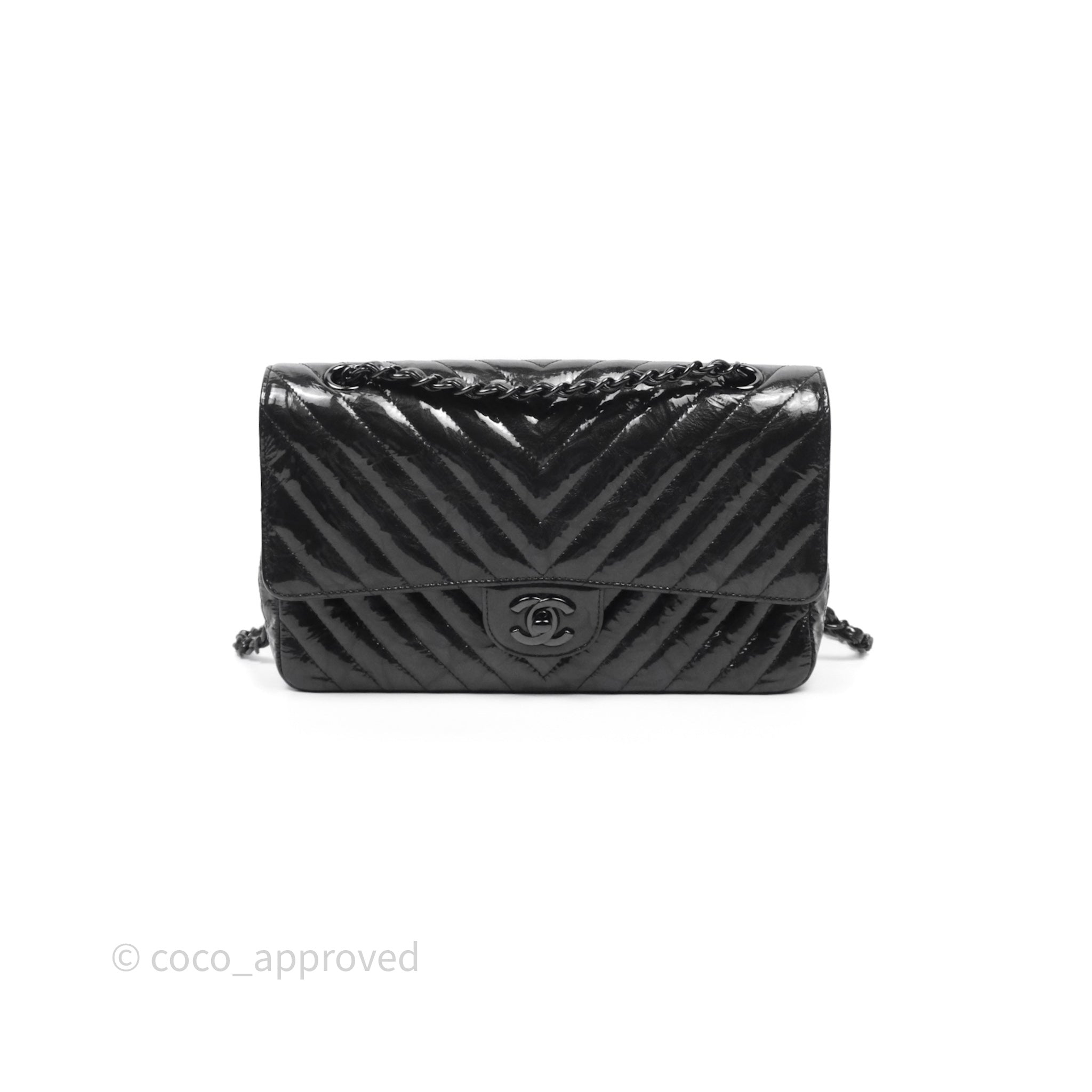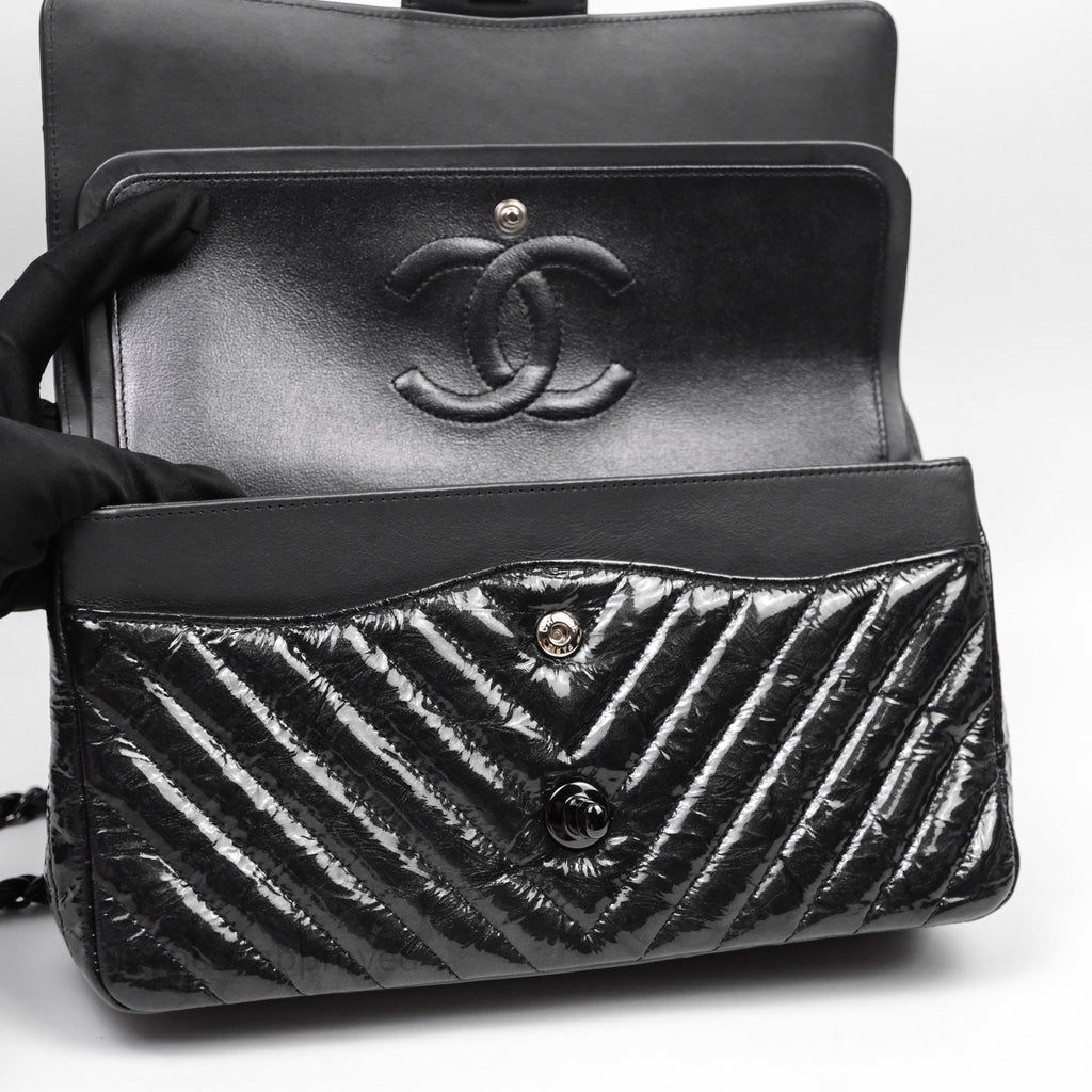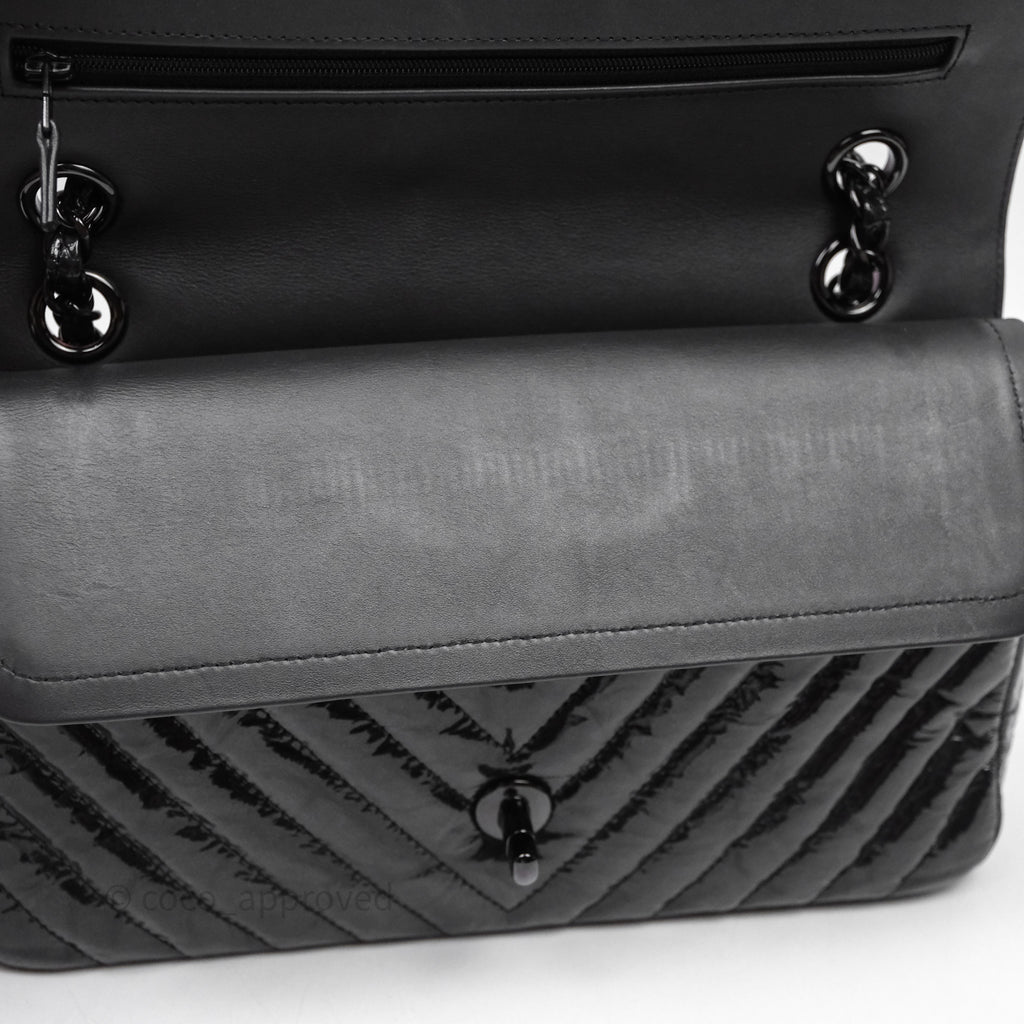 Chanel Classic Chevron M/L Medium Double Flap So Black Patent Calfskin