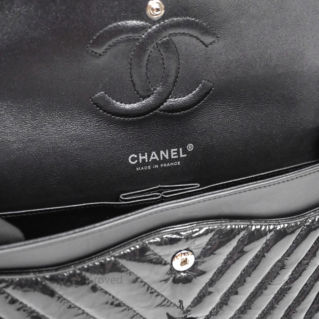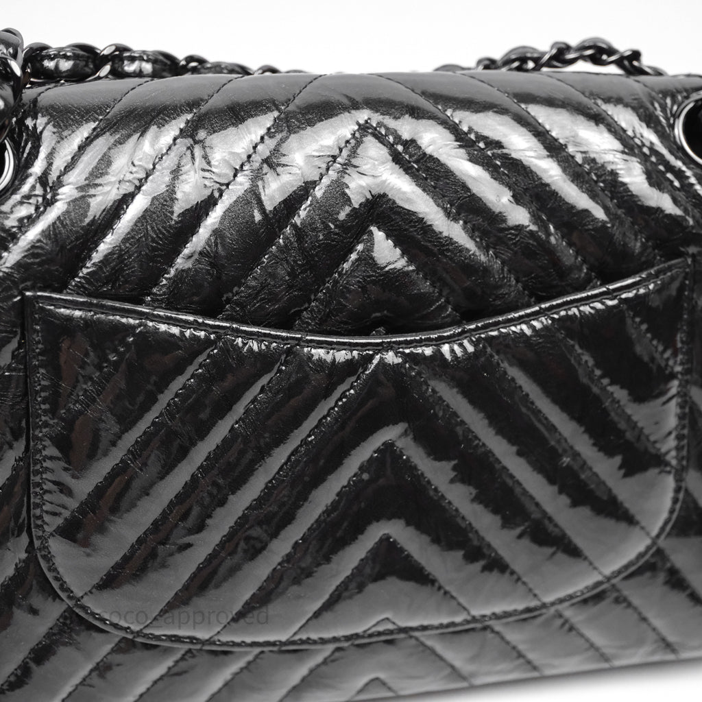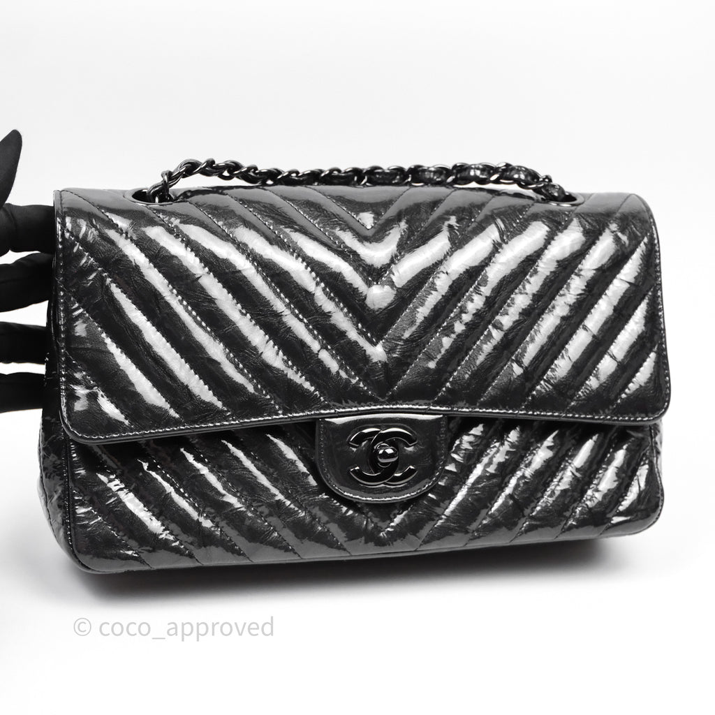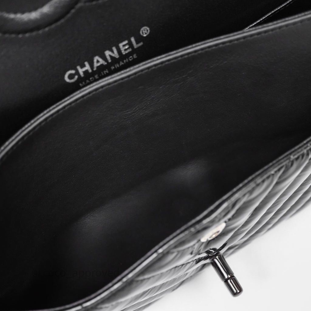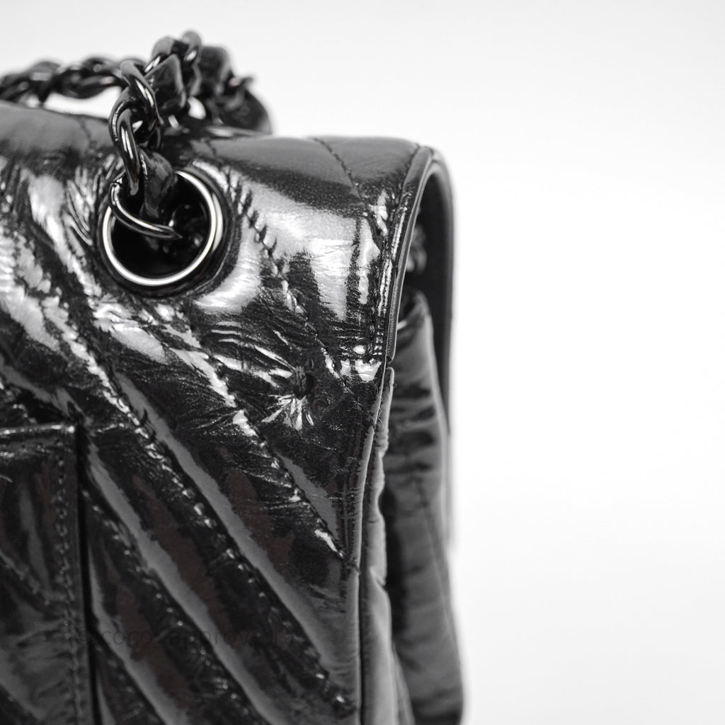 Chanel Classic Chevron M/L Medium Double Flap So Black Patent Calfskin